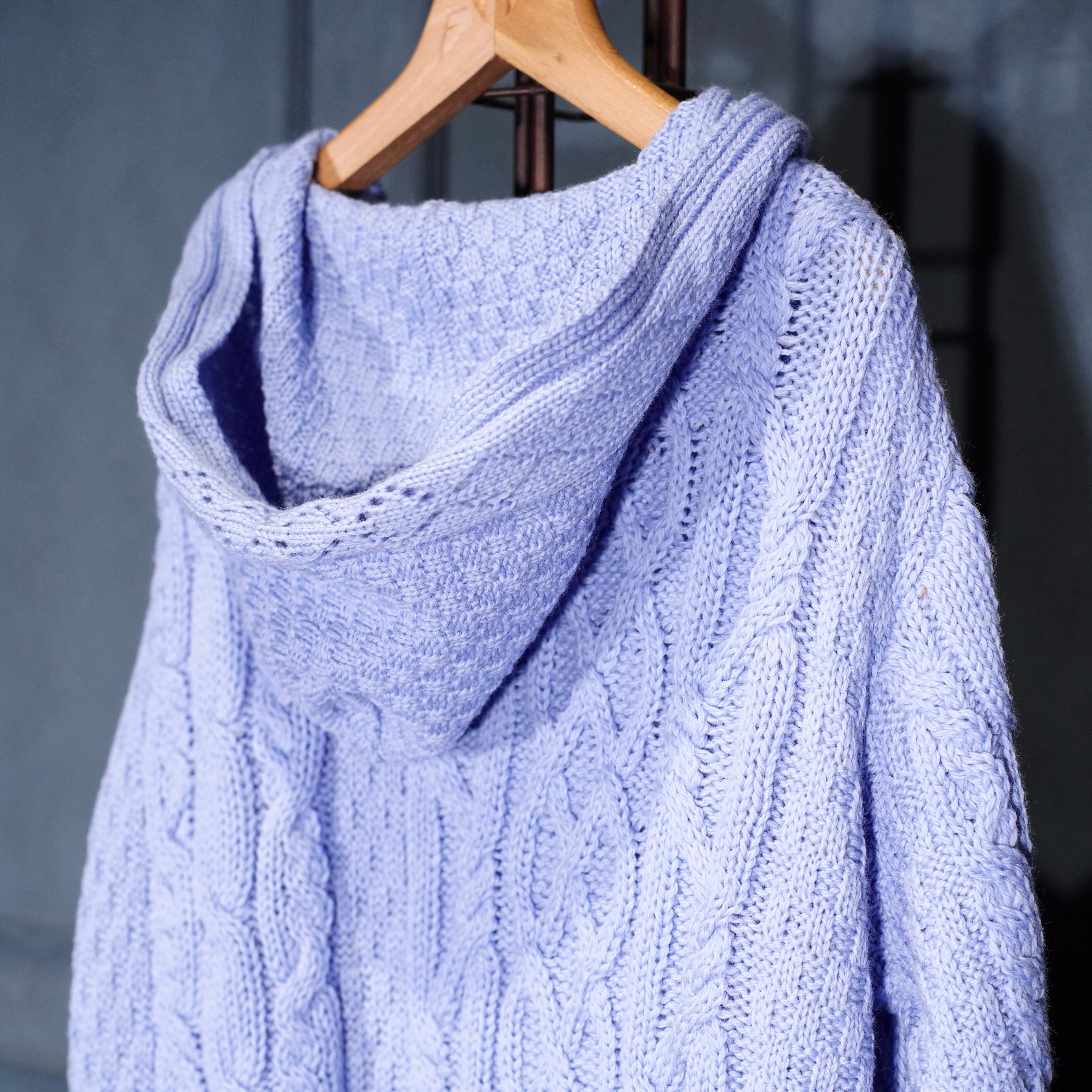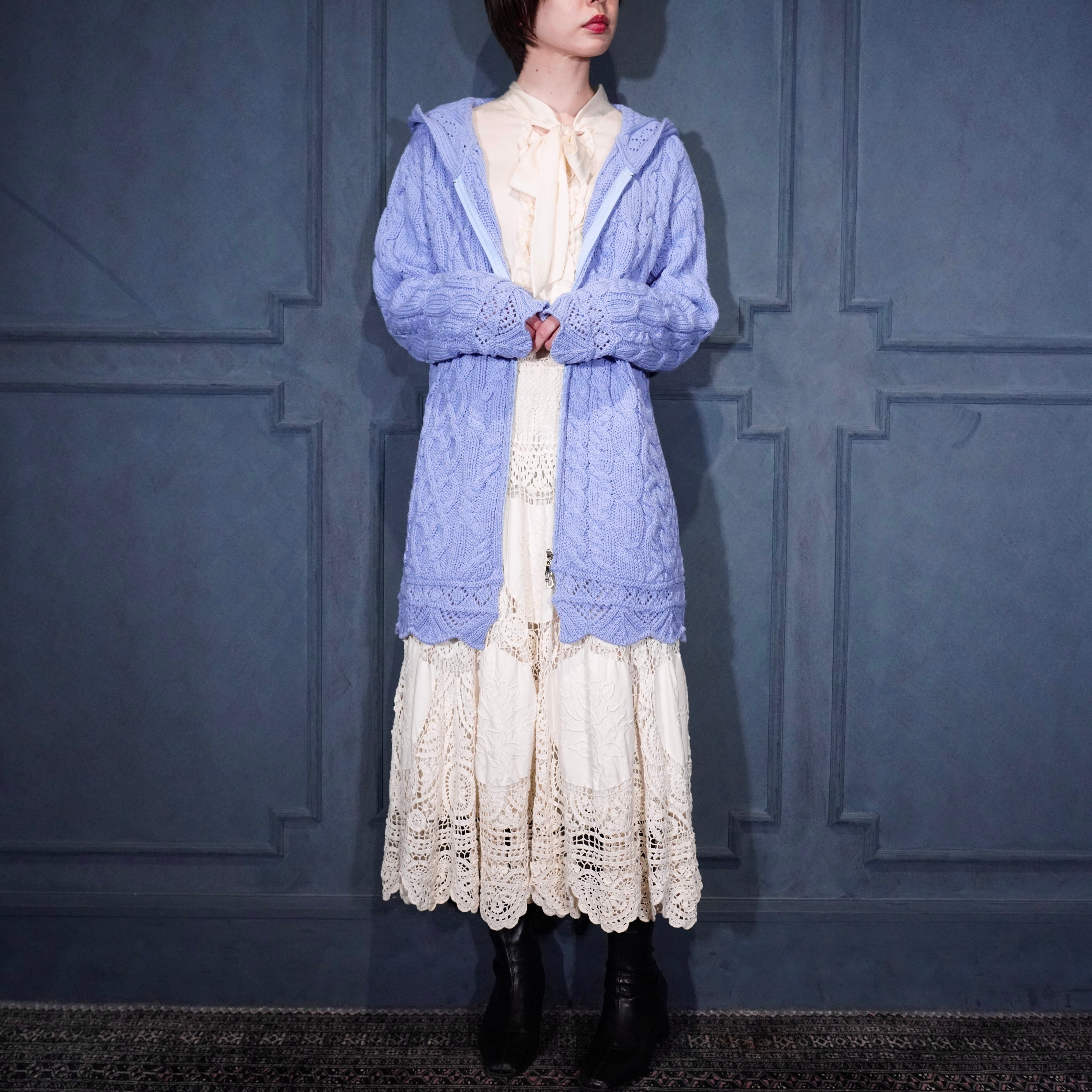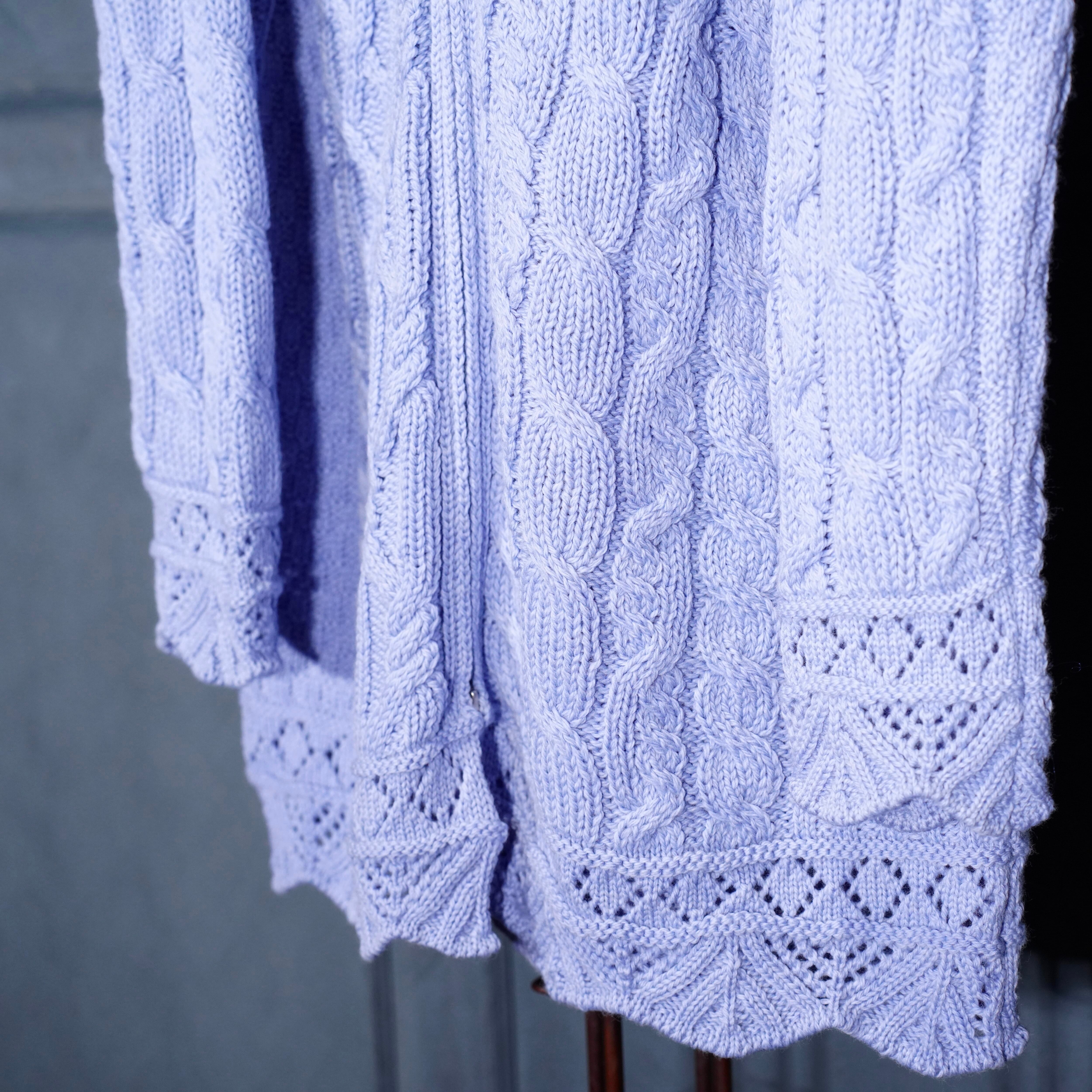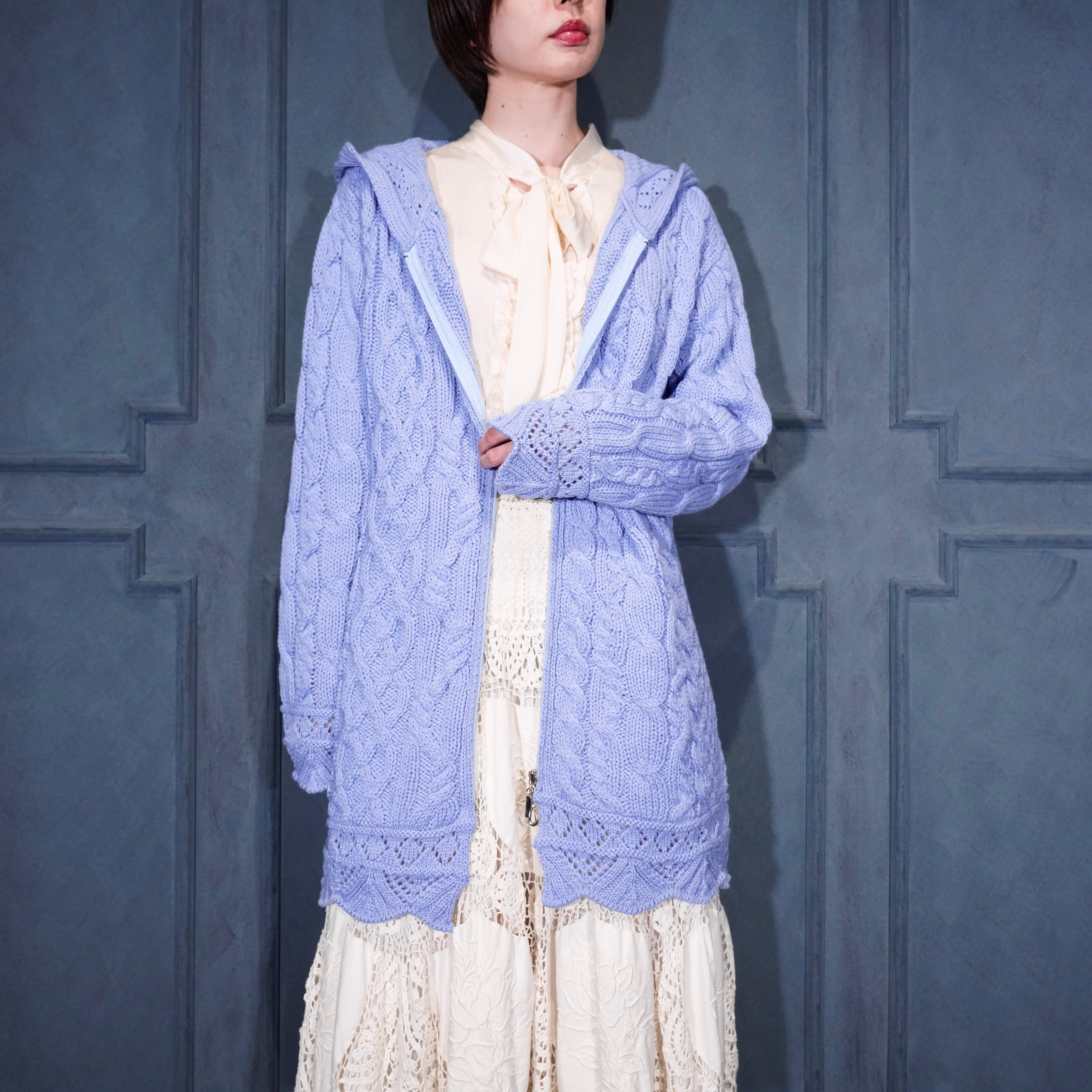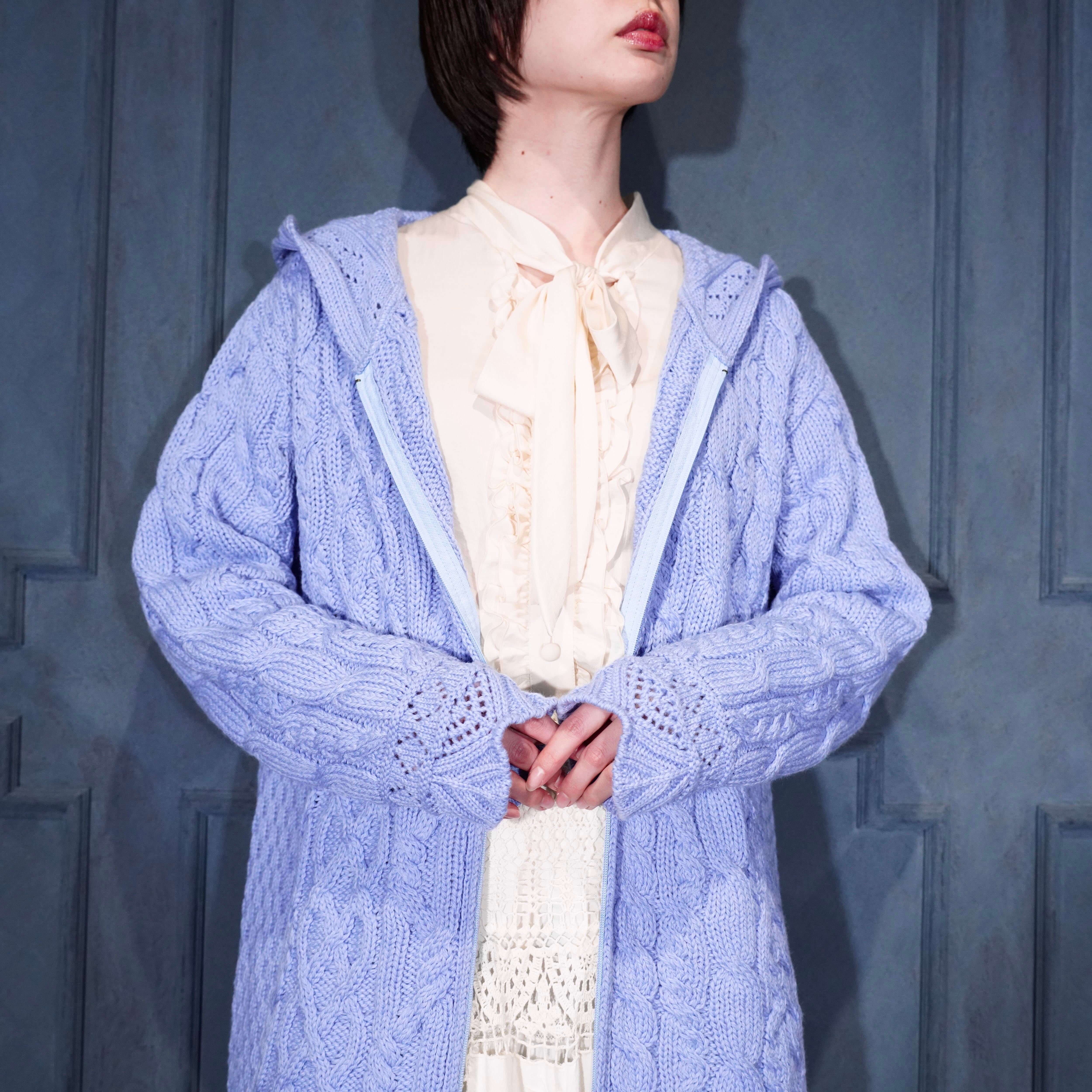 EU VINTAGE aran crafts CABLE DESIGN ZIP UP KNIT HOODIE MADE IN IRELAND/ヨーロッパ古着ケーブルデザインジップアップニットフーディ(パーカー)