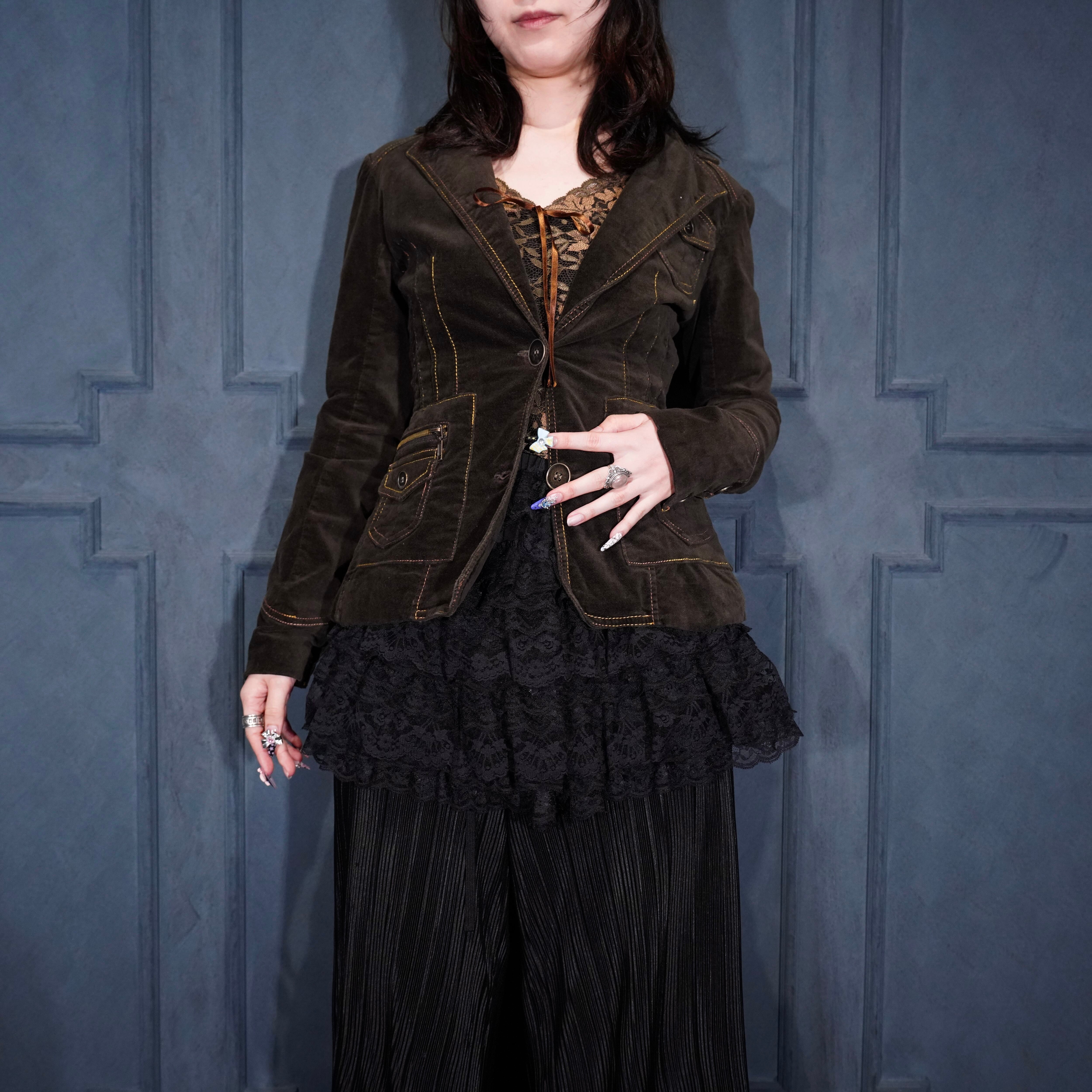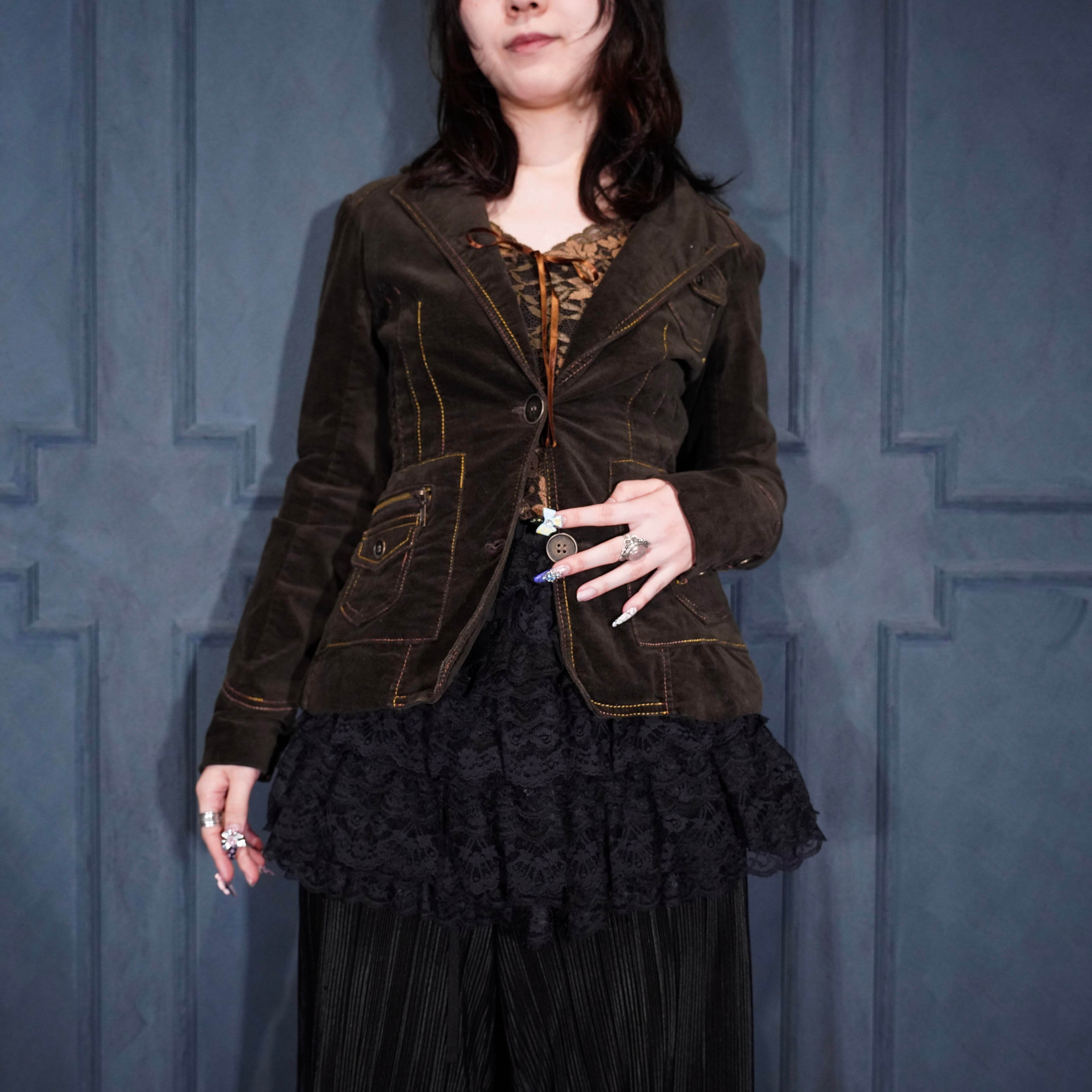EU VINTAGE MAD ZONA BRERA ZIP DESIGN VELOUR TAILORED JACKET/ヨーロッパ古着ジップデザインベロアテーラードジャケット