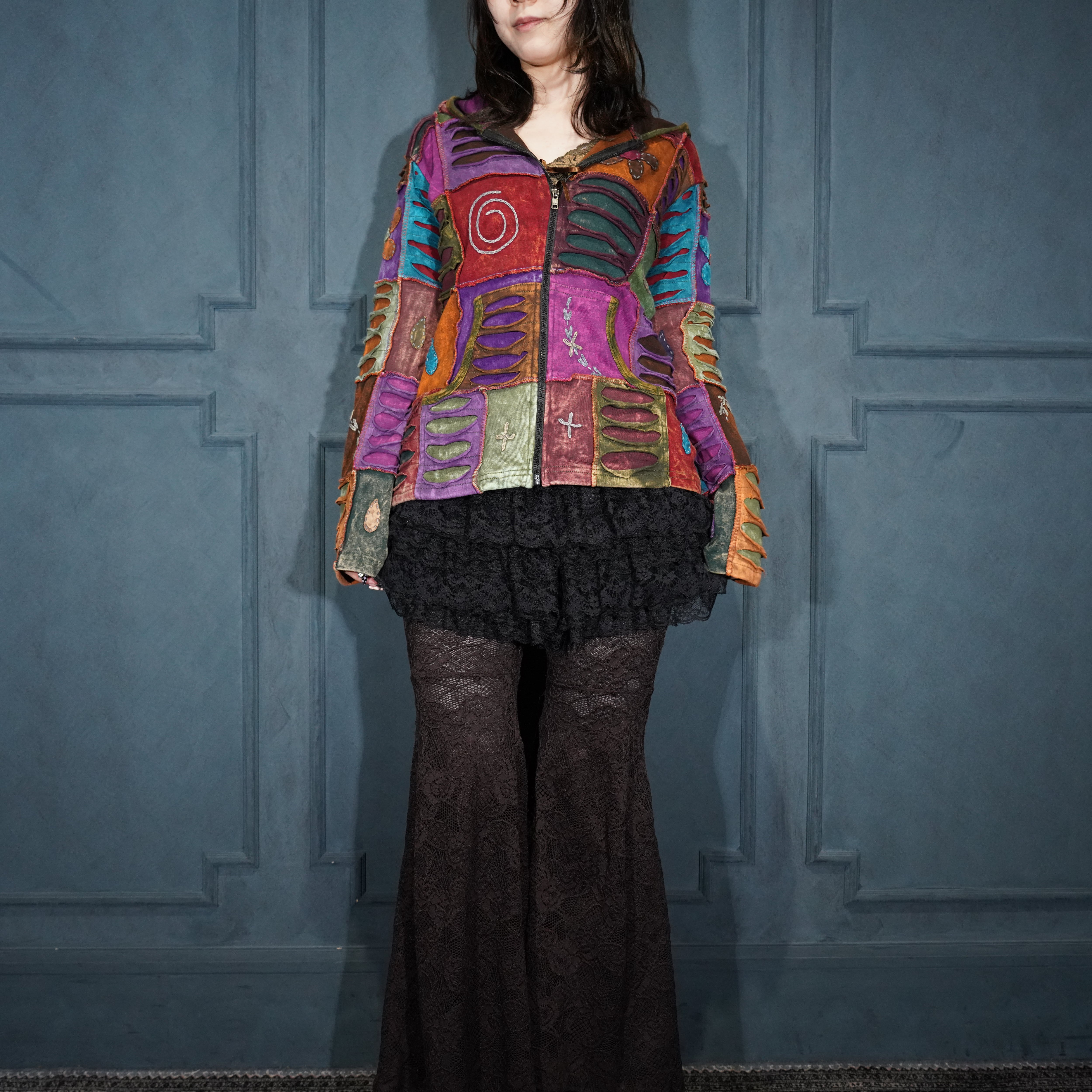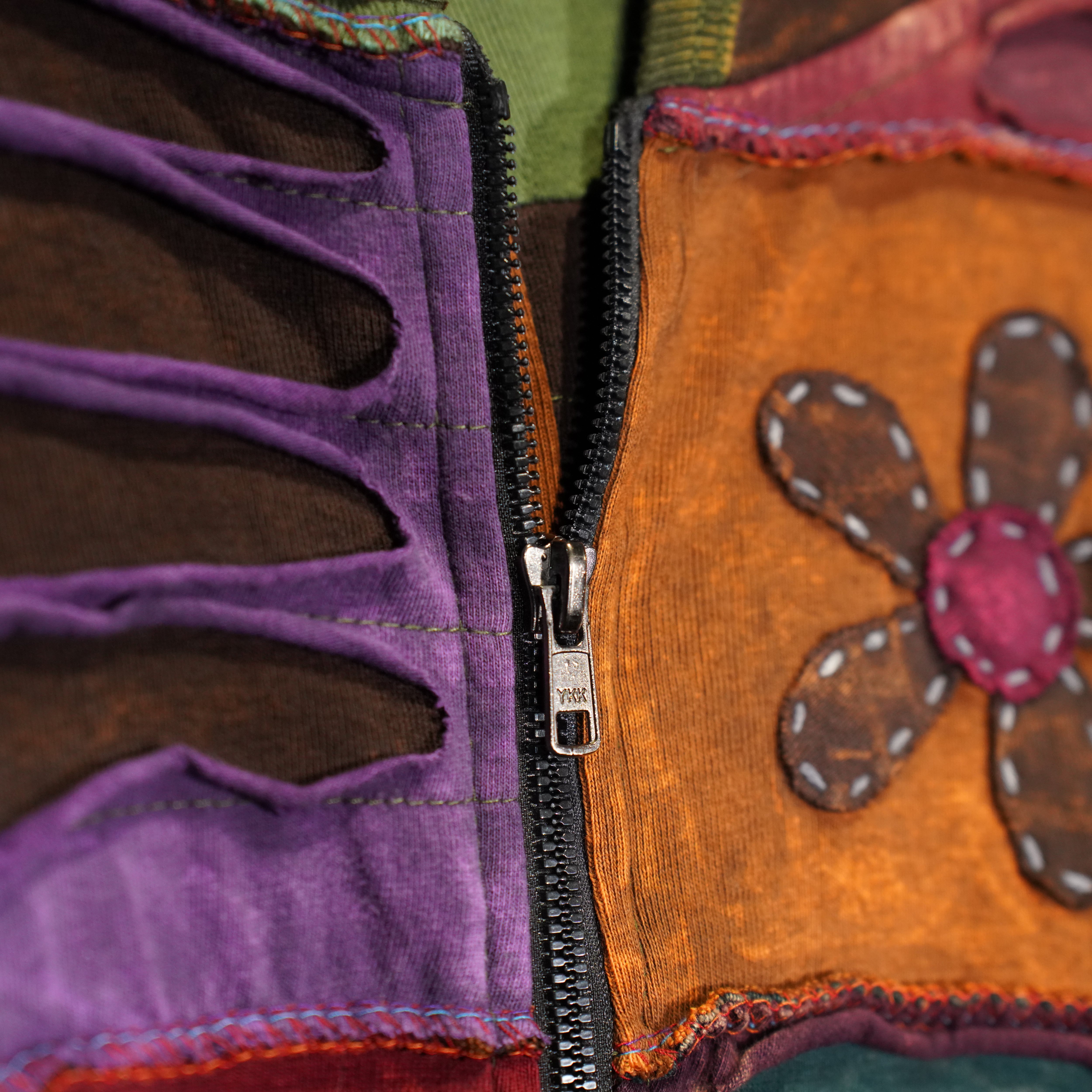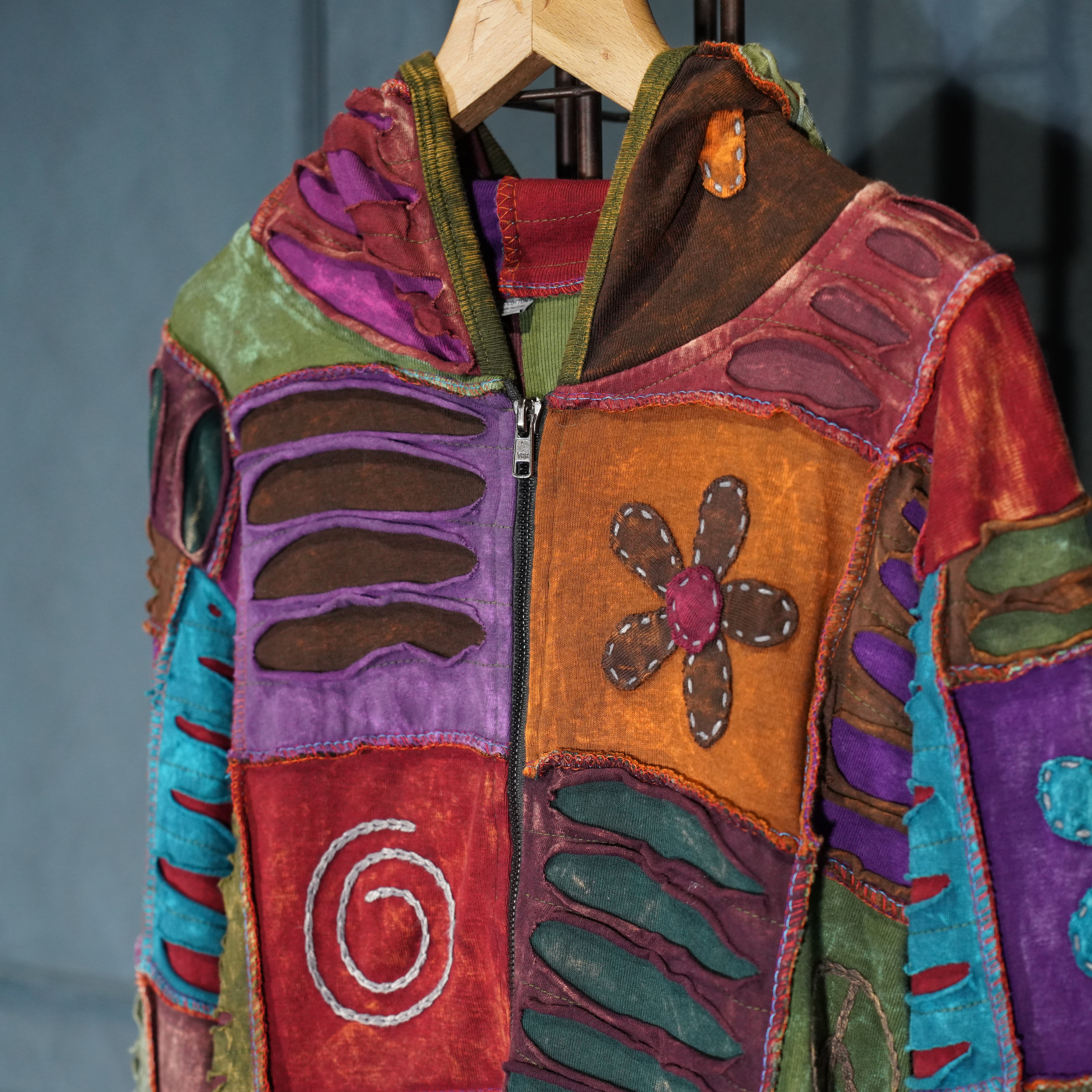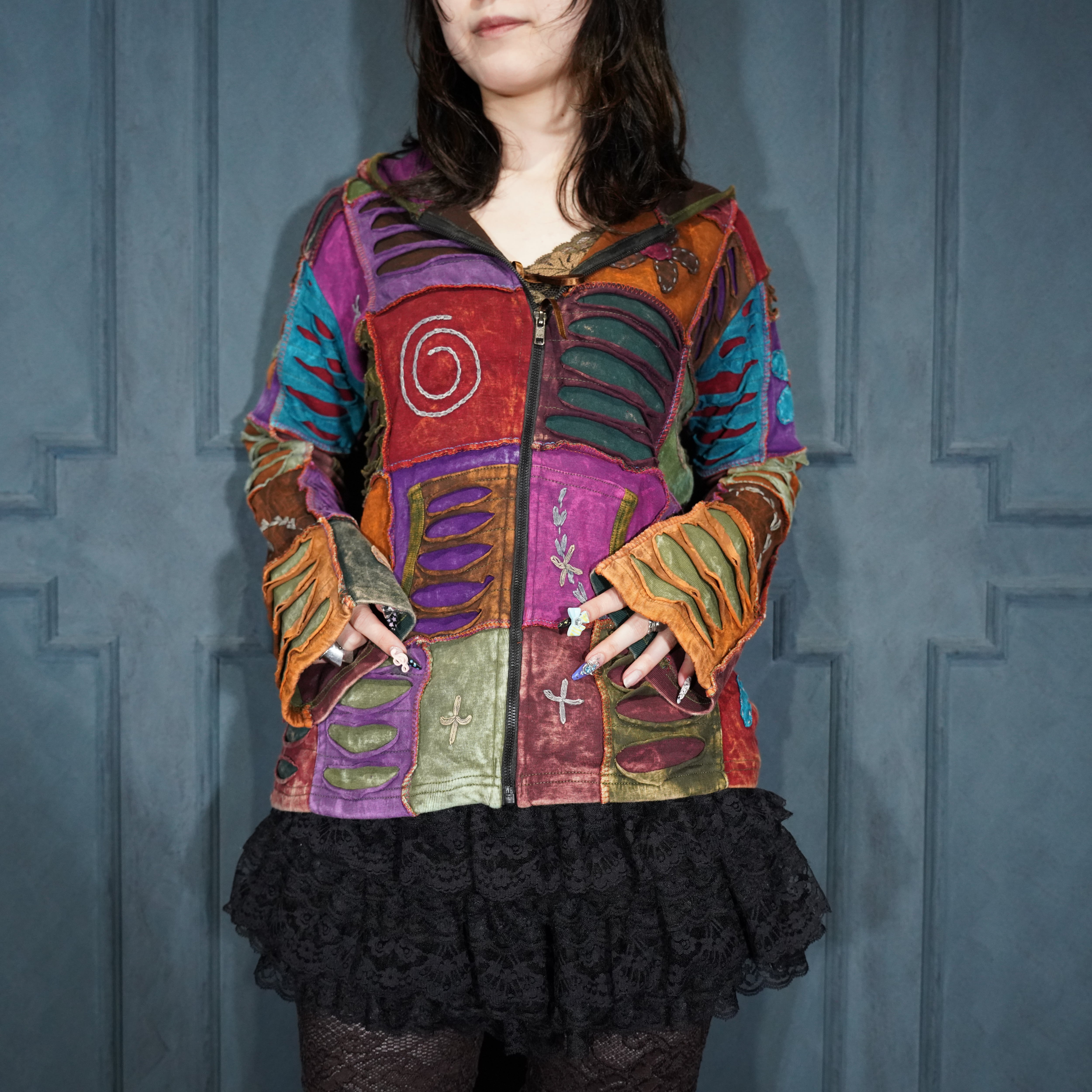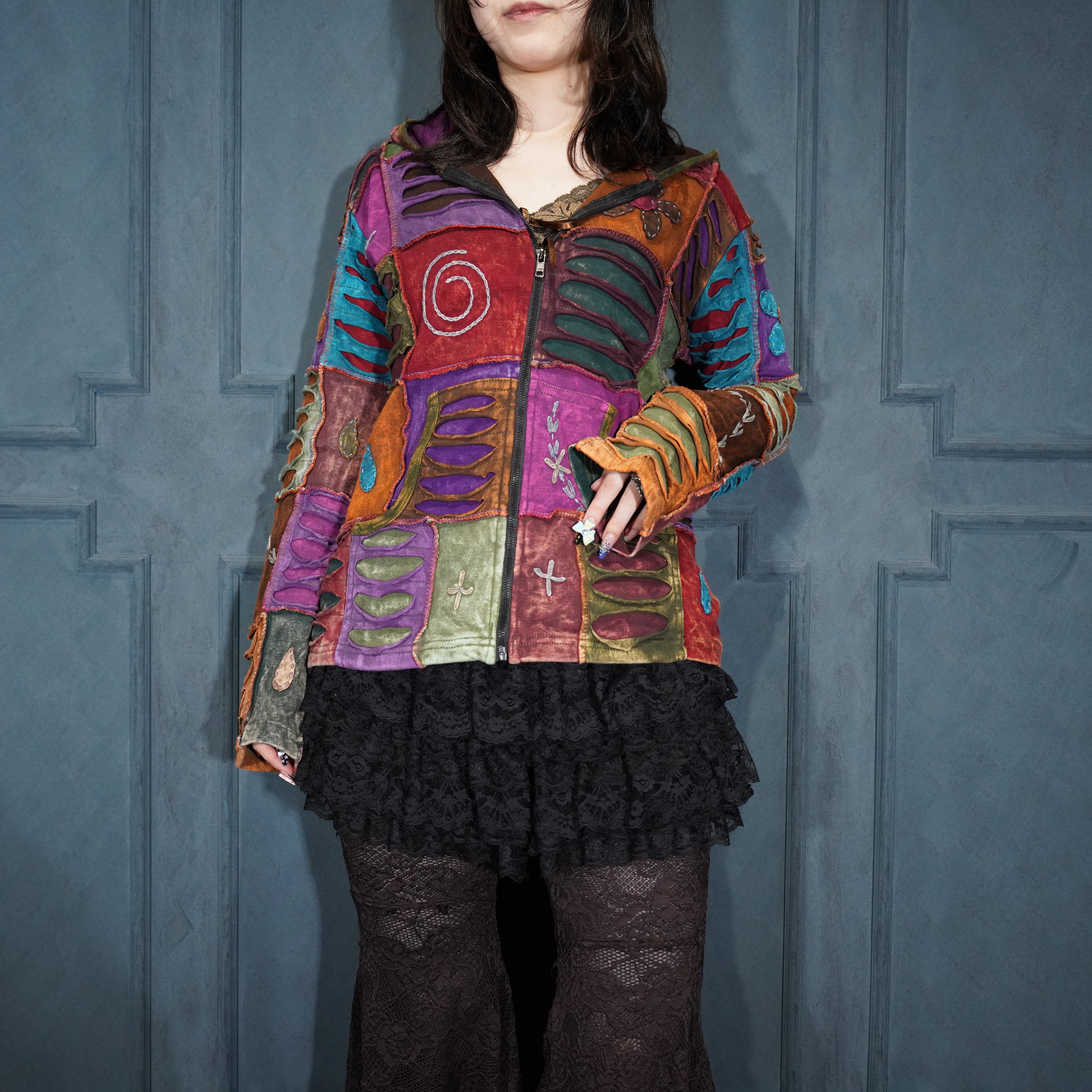 USA VINTAGE PATCHWORK DESIGN ZIP UP HOODIE MADE IN NEPAL/アメリカ古着パッチワークデザインジップアップフーディ(パーカー)