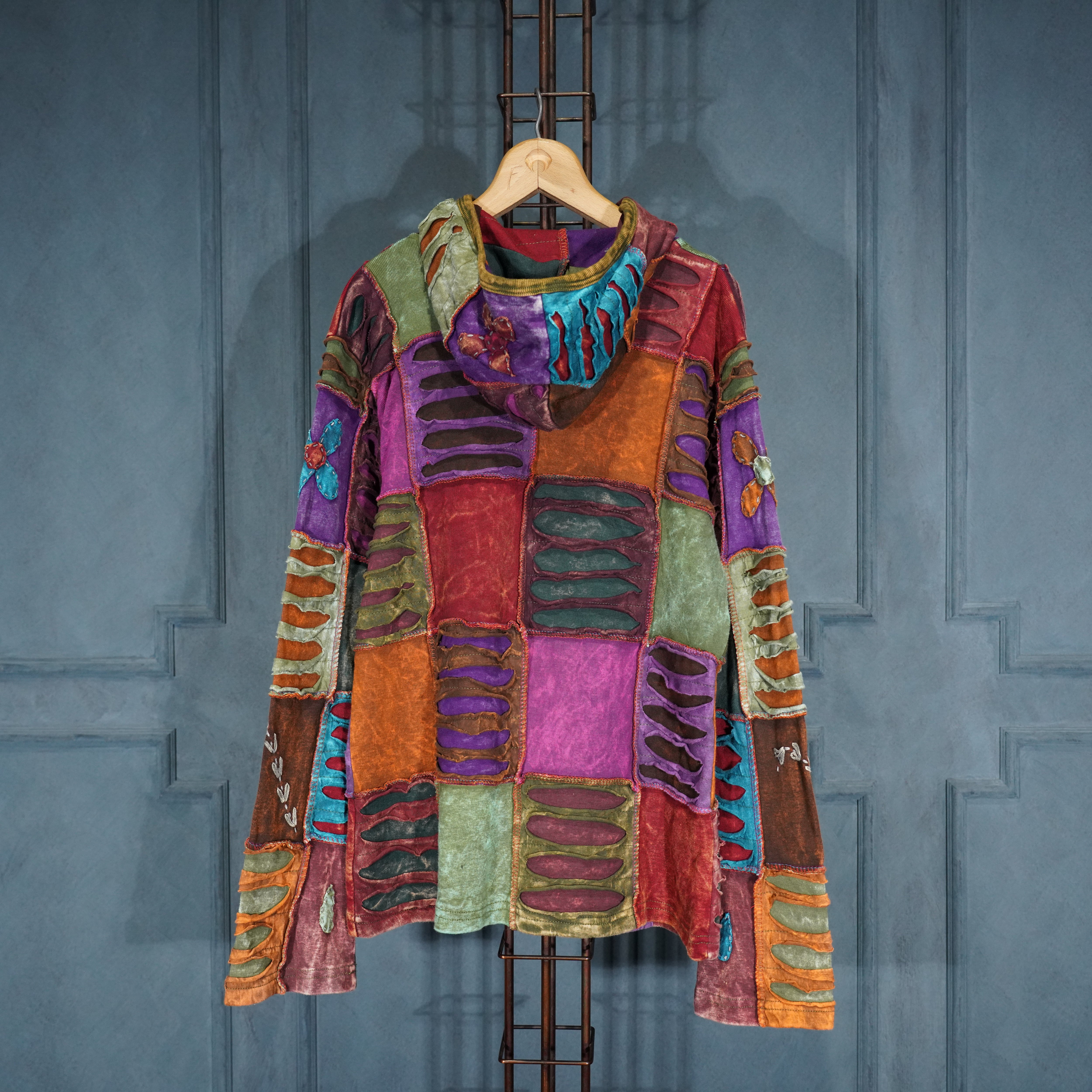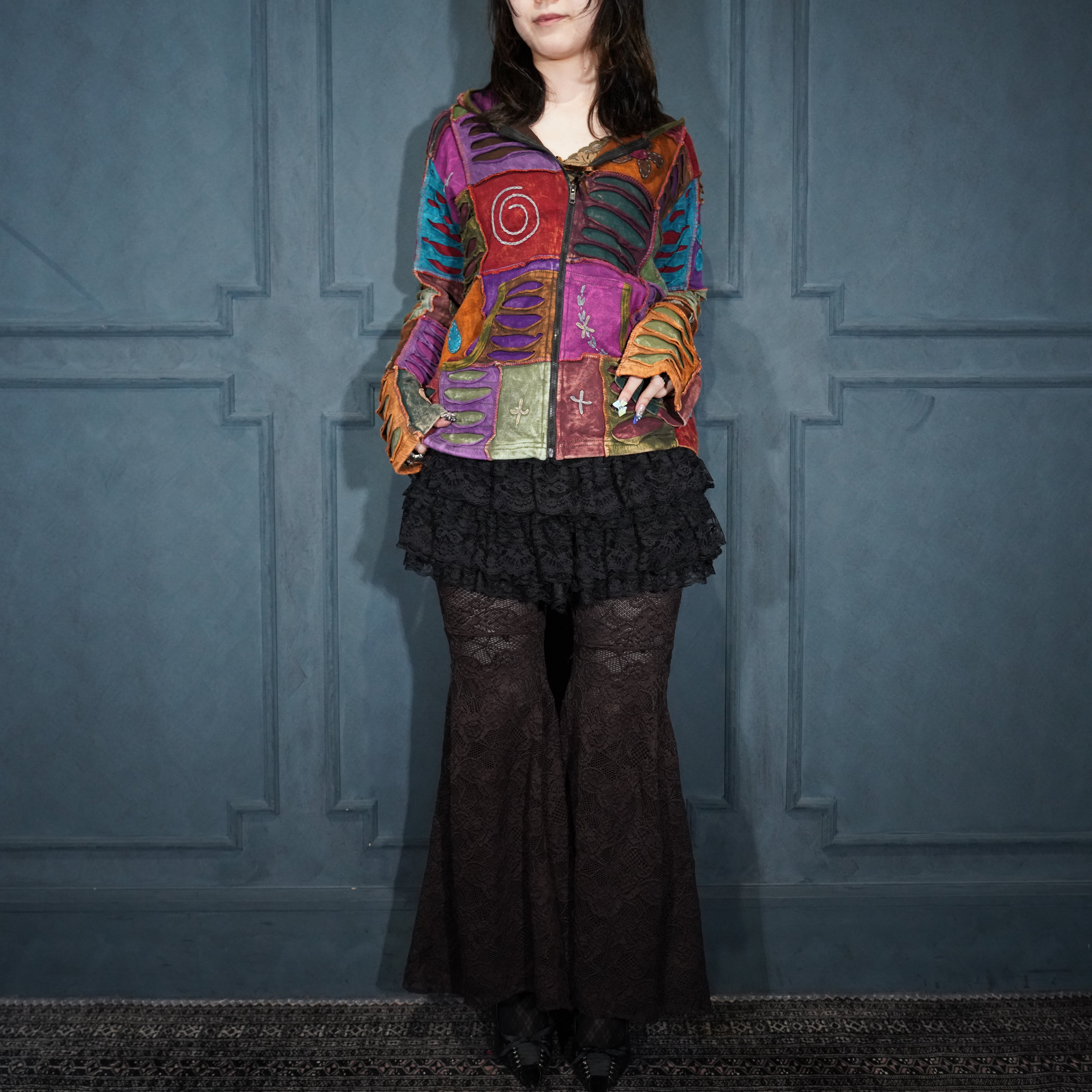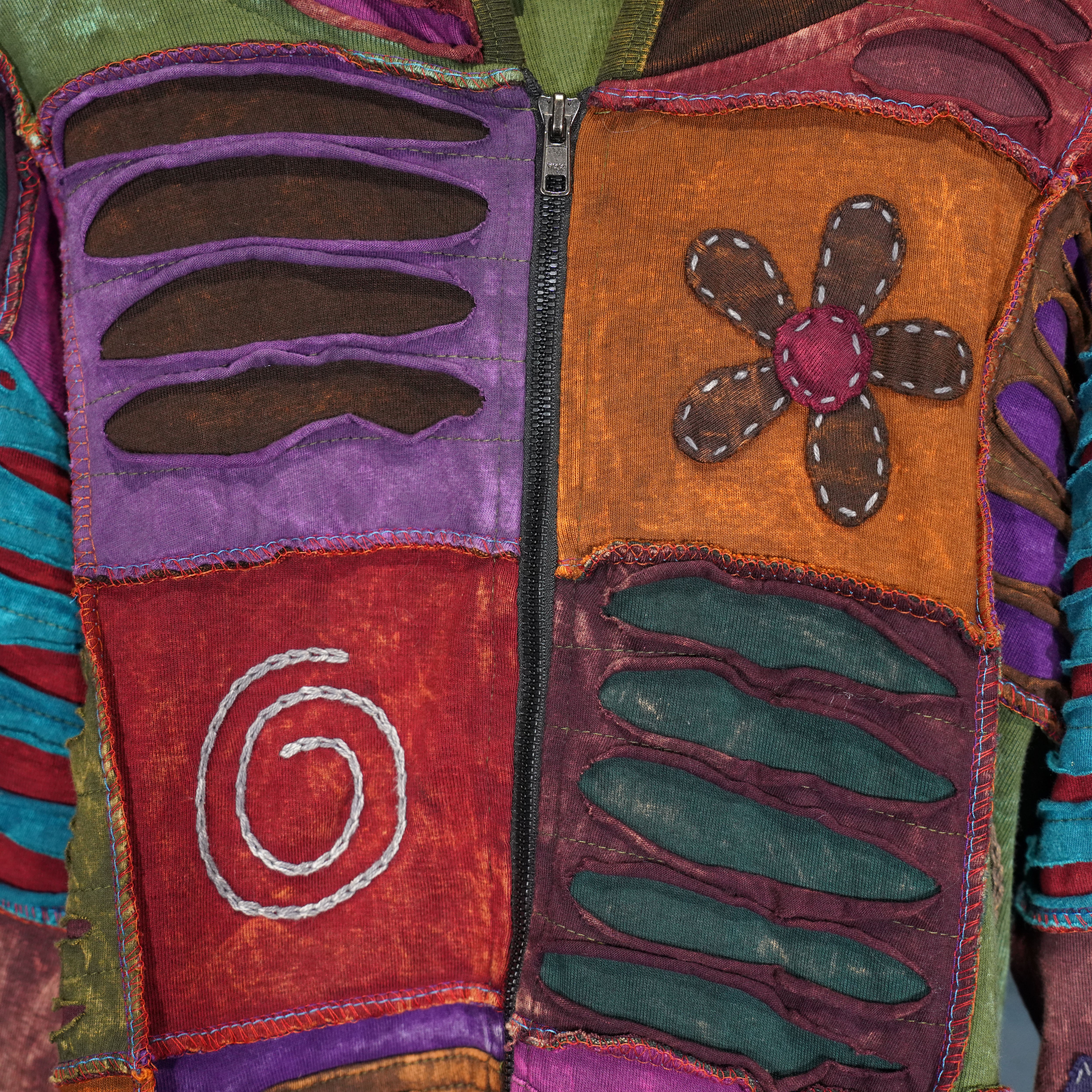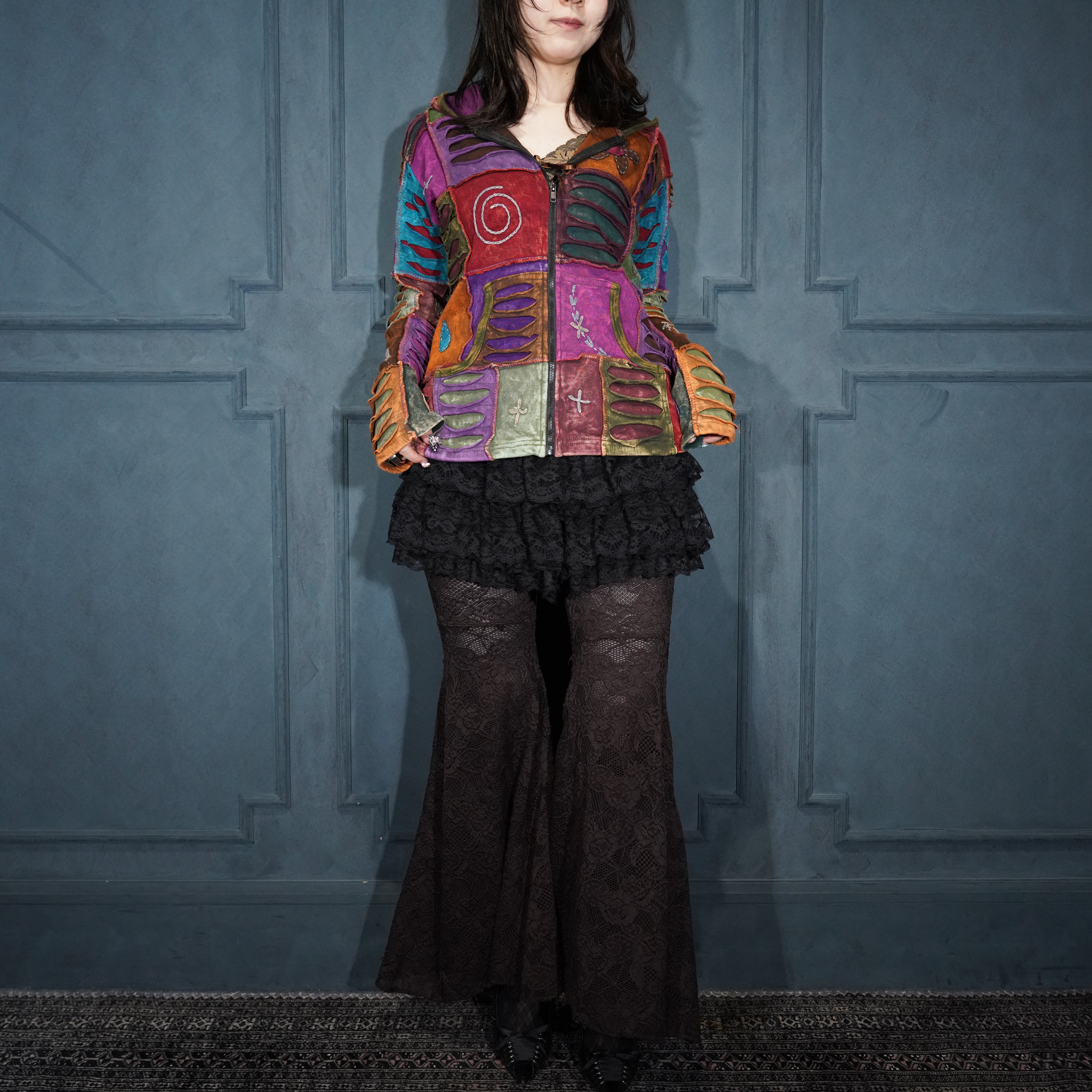 USA VINTAGE PATCHWORK DESIGN ZIP UP HOODIE MADE IN NEPAL/アメリカ古着パッチワークデザインジップアップフーディ(パーカー)