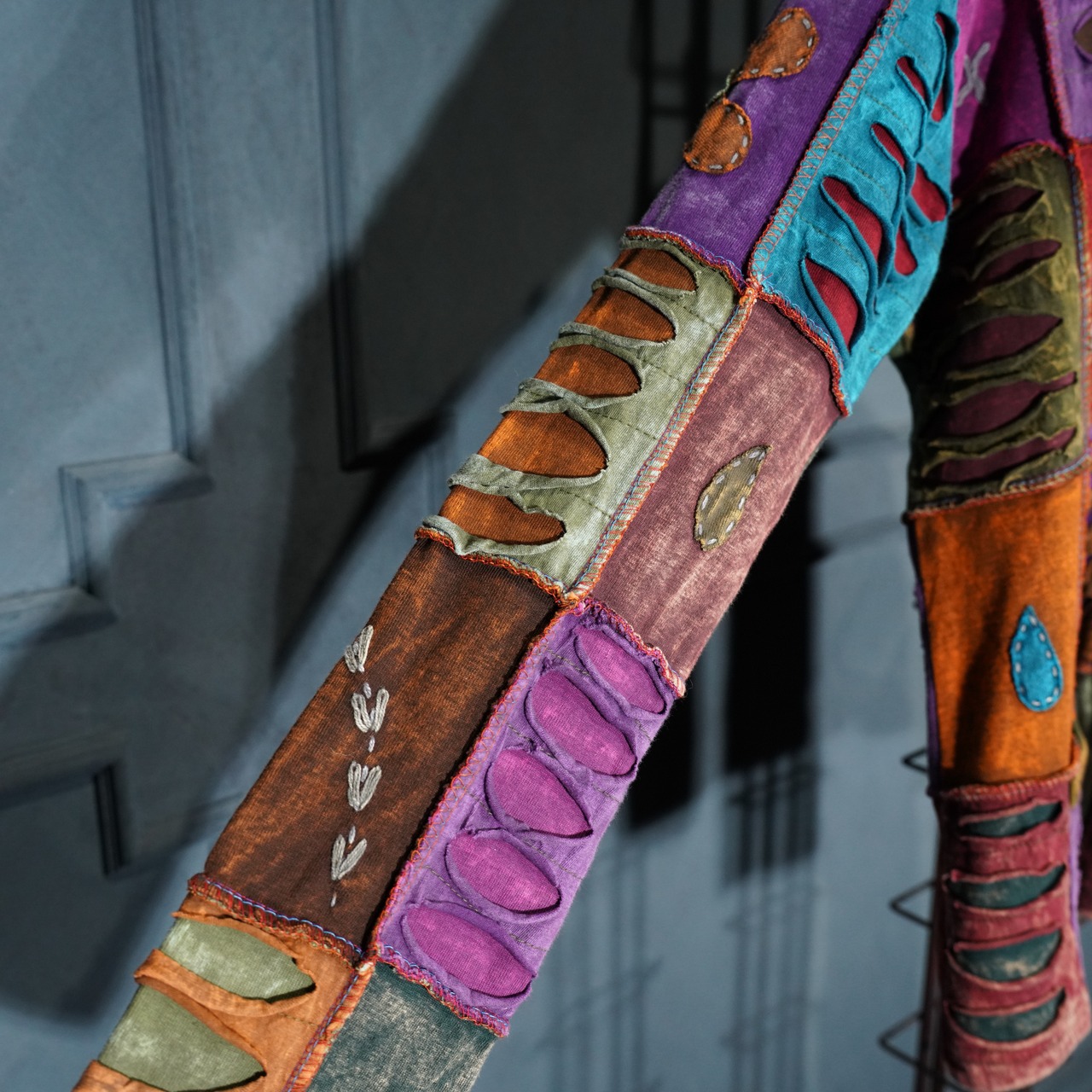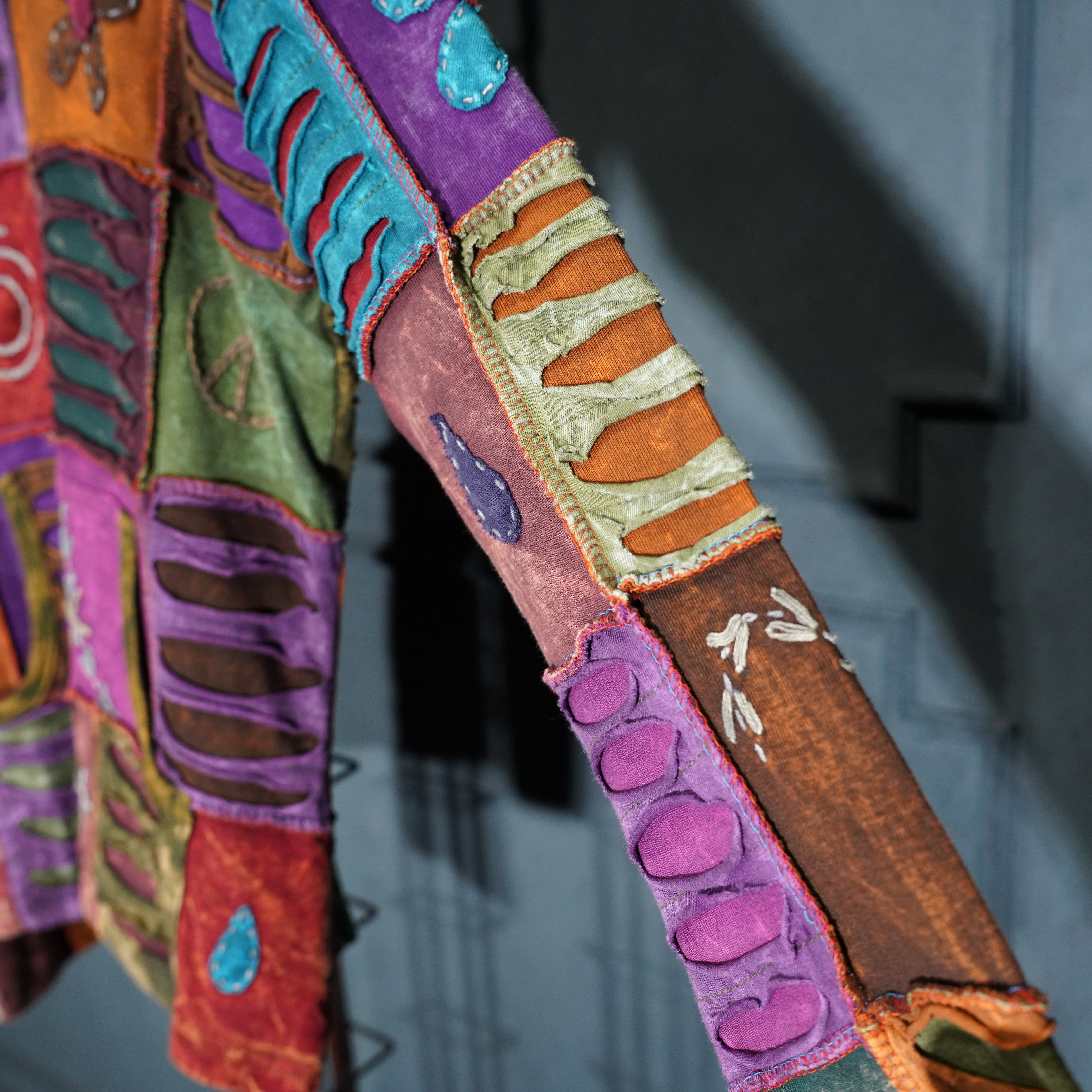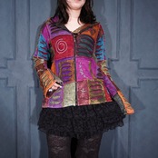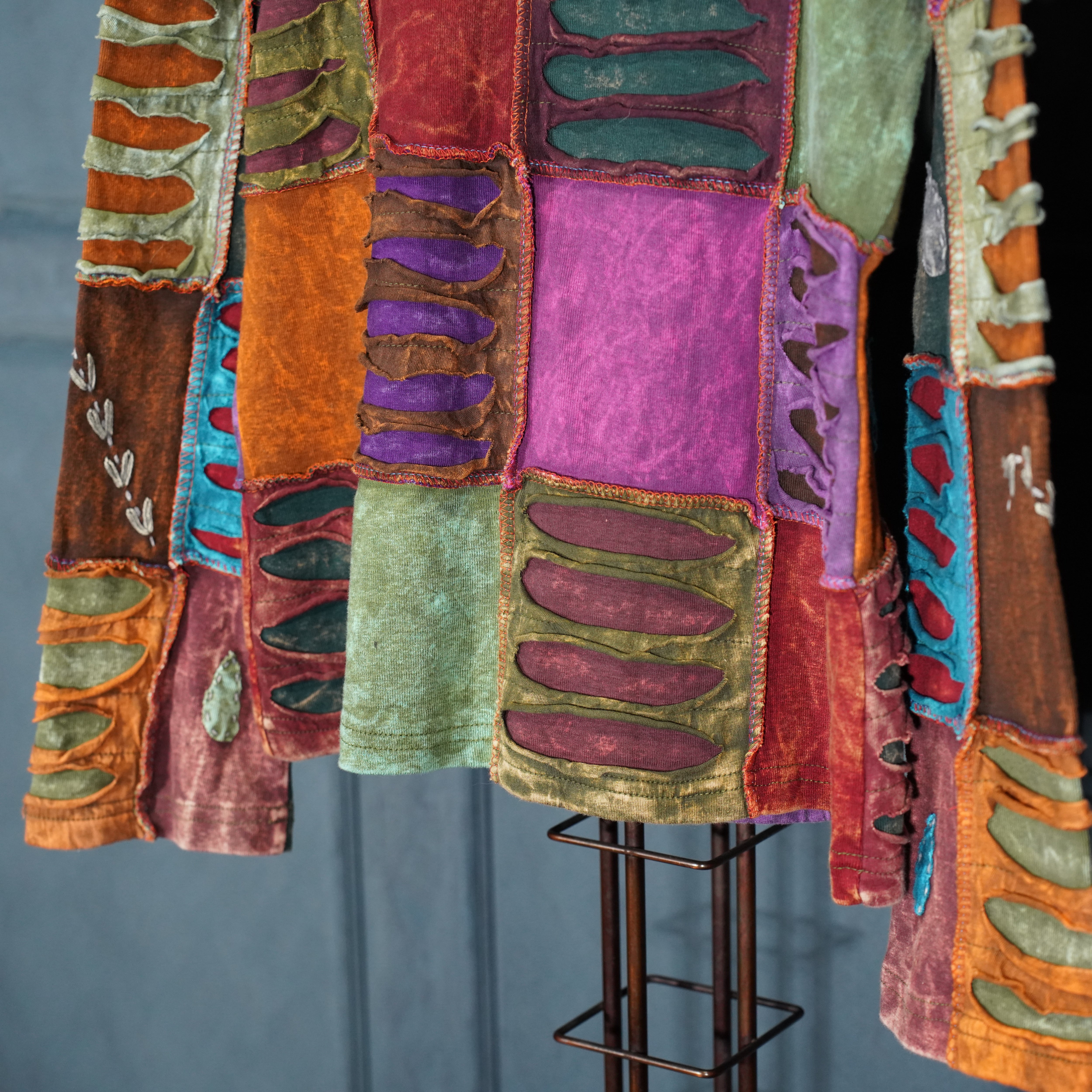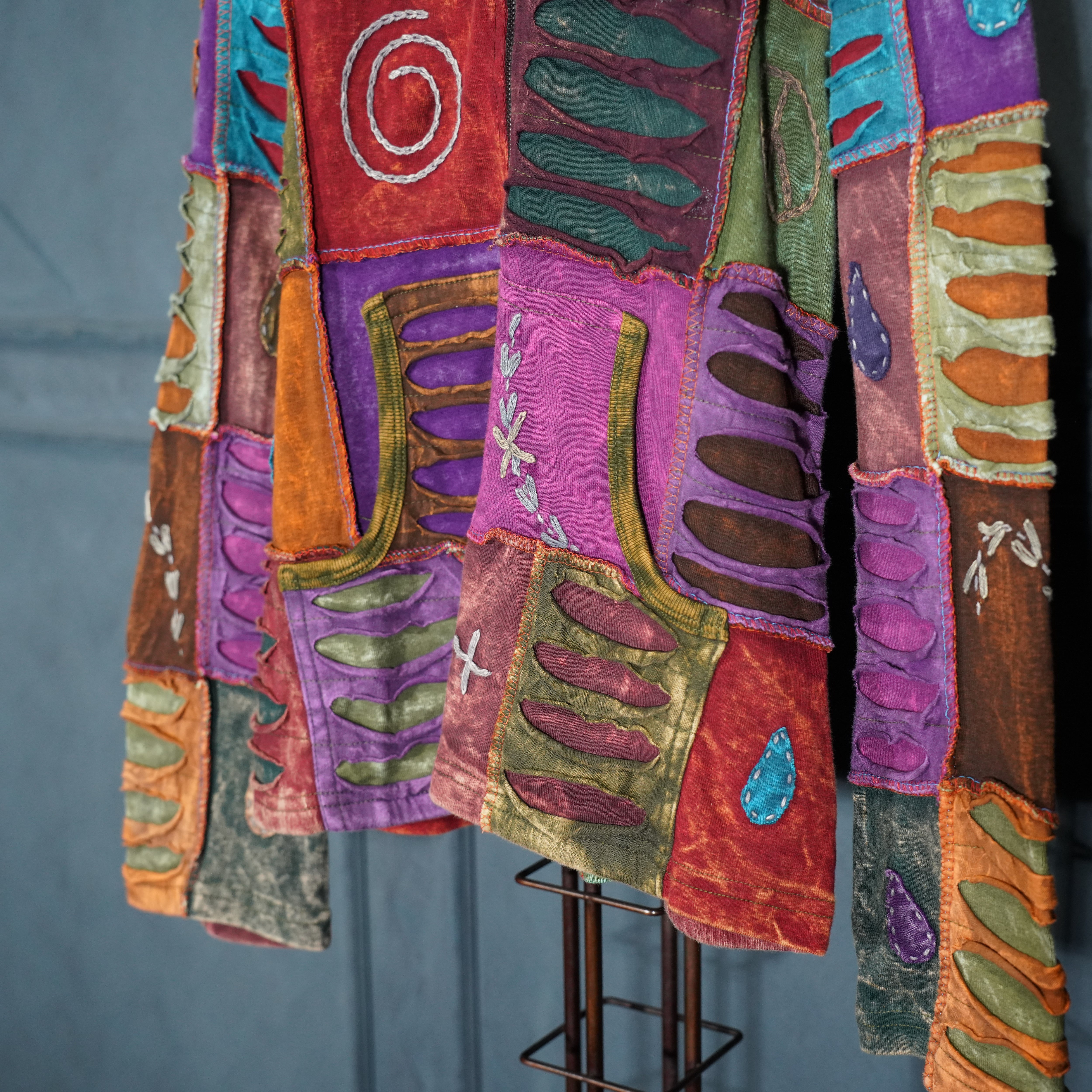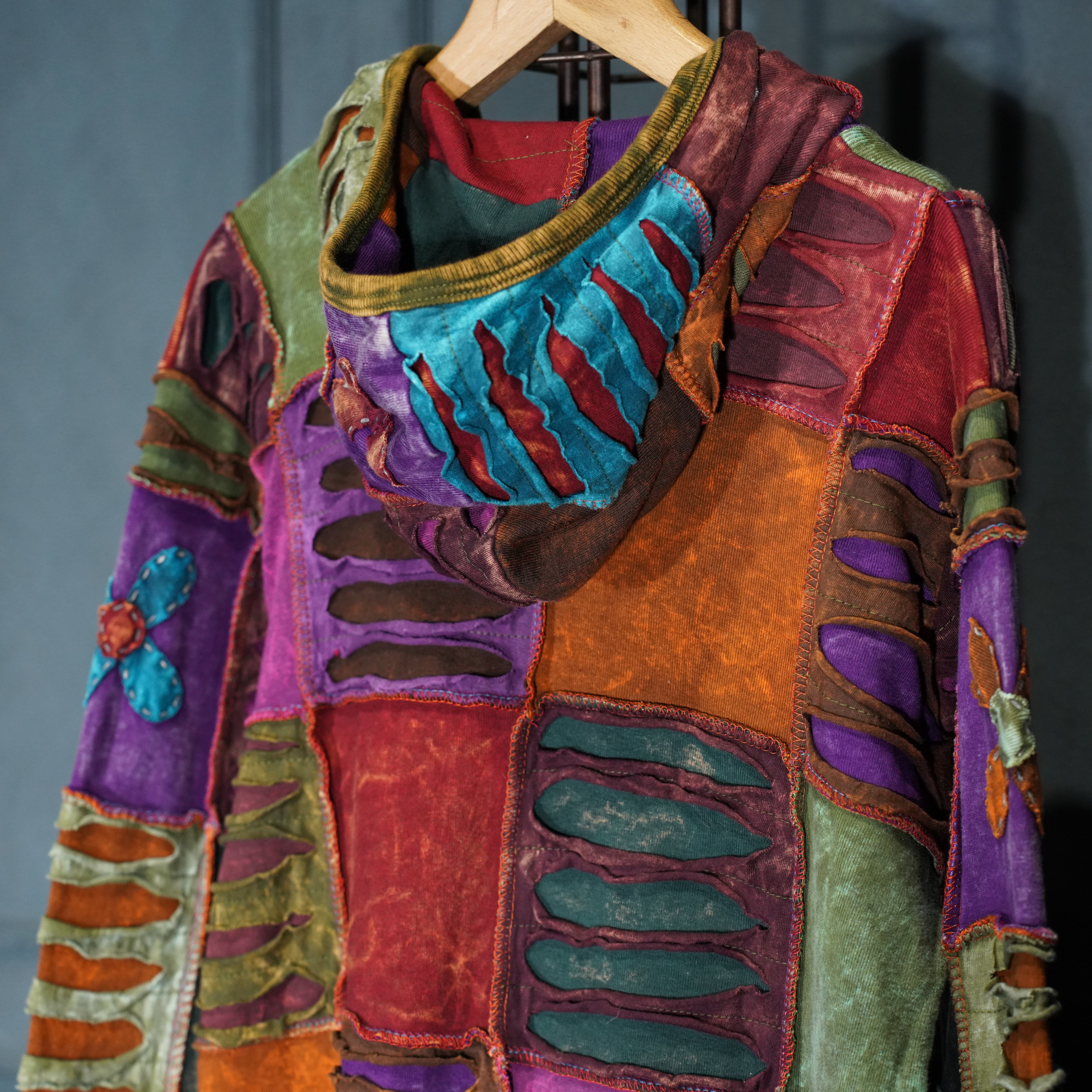 USA VINTAGE PATCHWORK DESIGN ZIP UP HOODIE MADE IN NEPAL/アメリカ古着パッチワークデザインジップアップフーディ(パーカー)