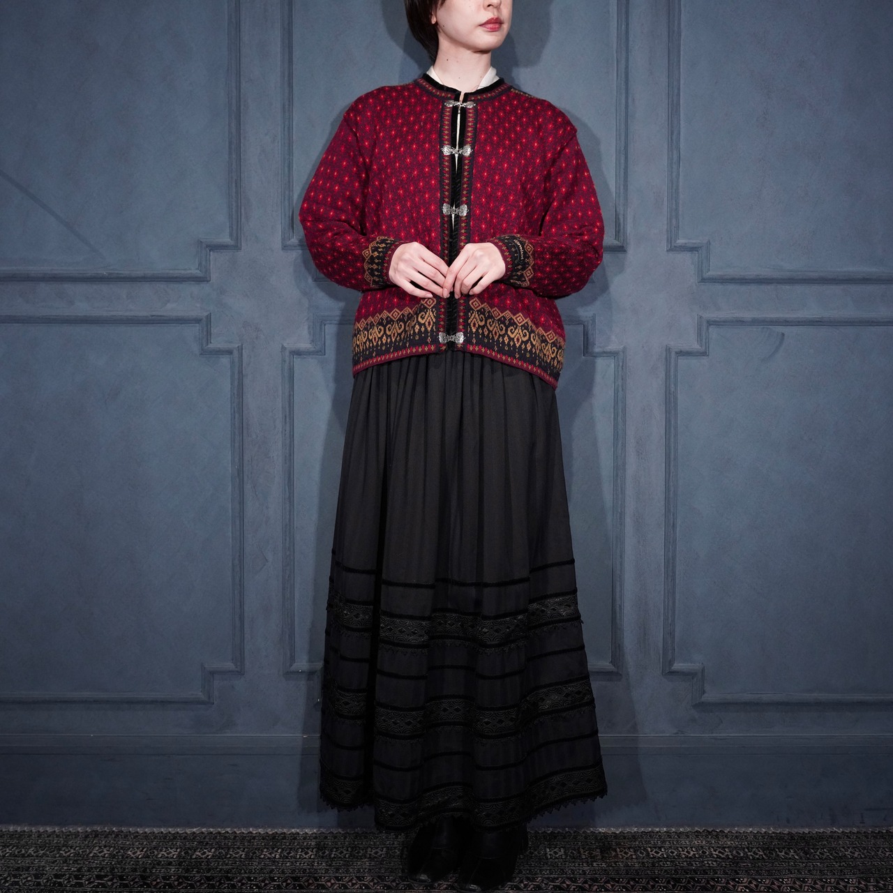 EU VINTAGE Skjaeveland PATTERNED DESIGN WOOL NORDIC KNIT CARDIGAN MADE IN NORWAY/ヨーロッパ古着柄デザインウールノルディックニットカーディガン