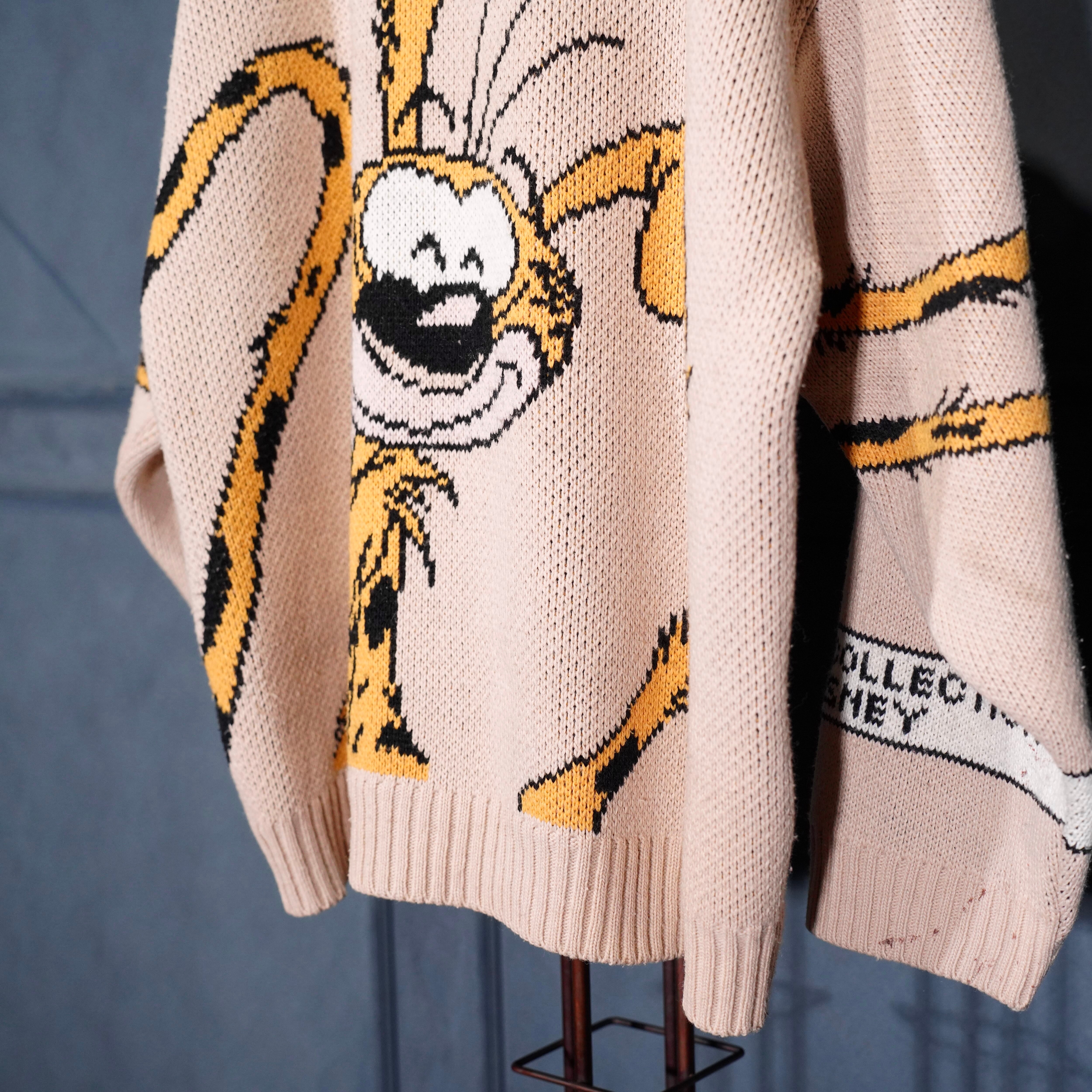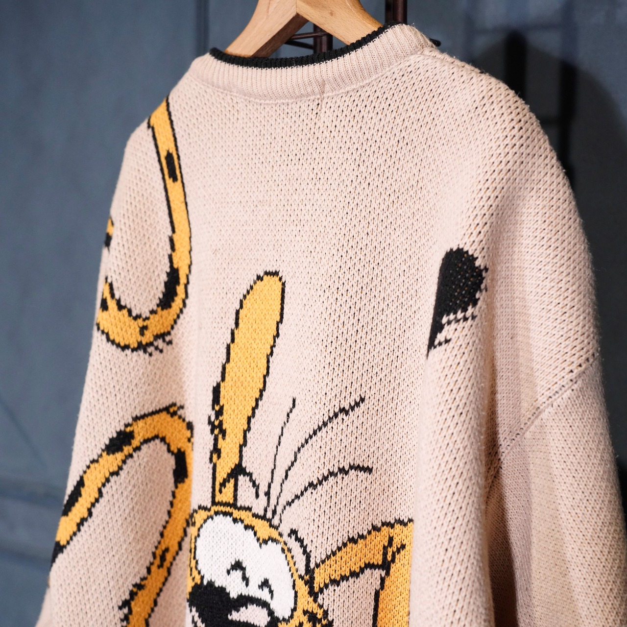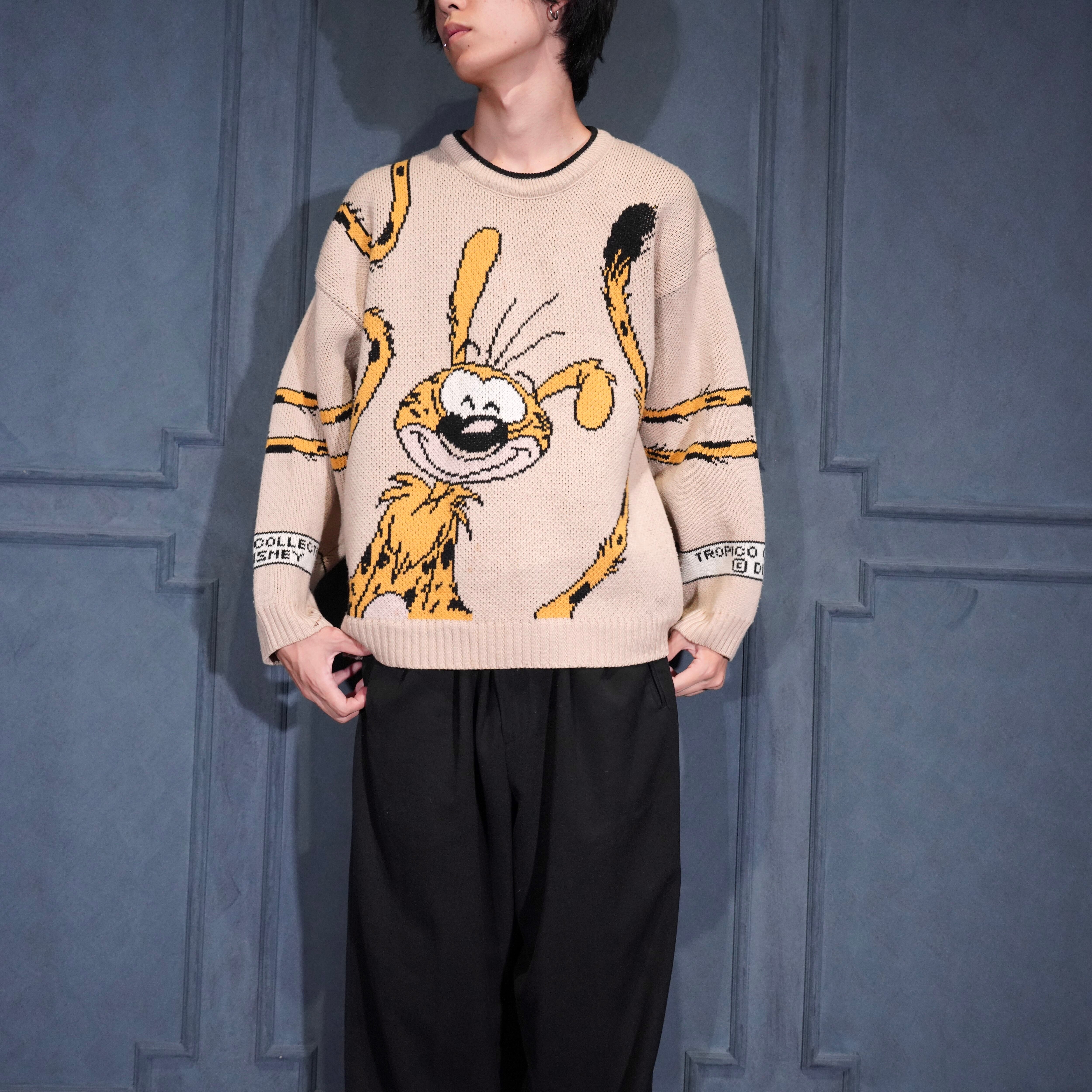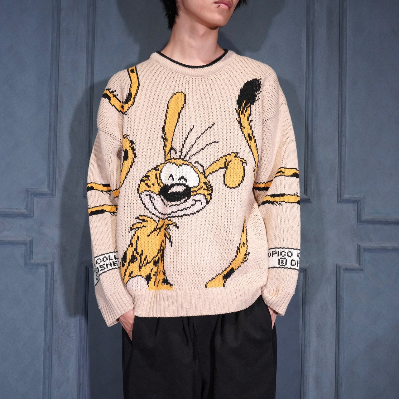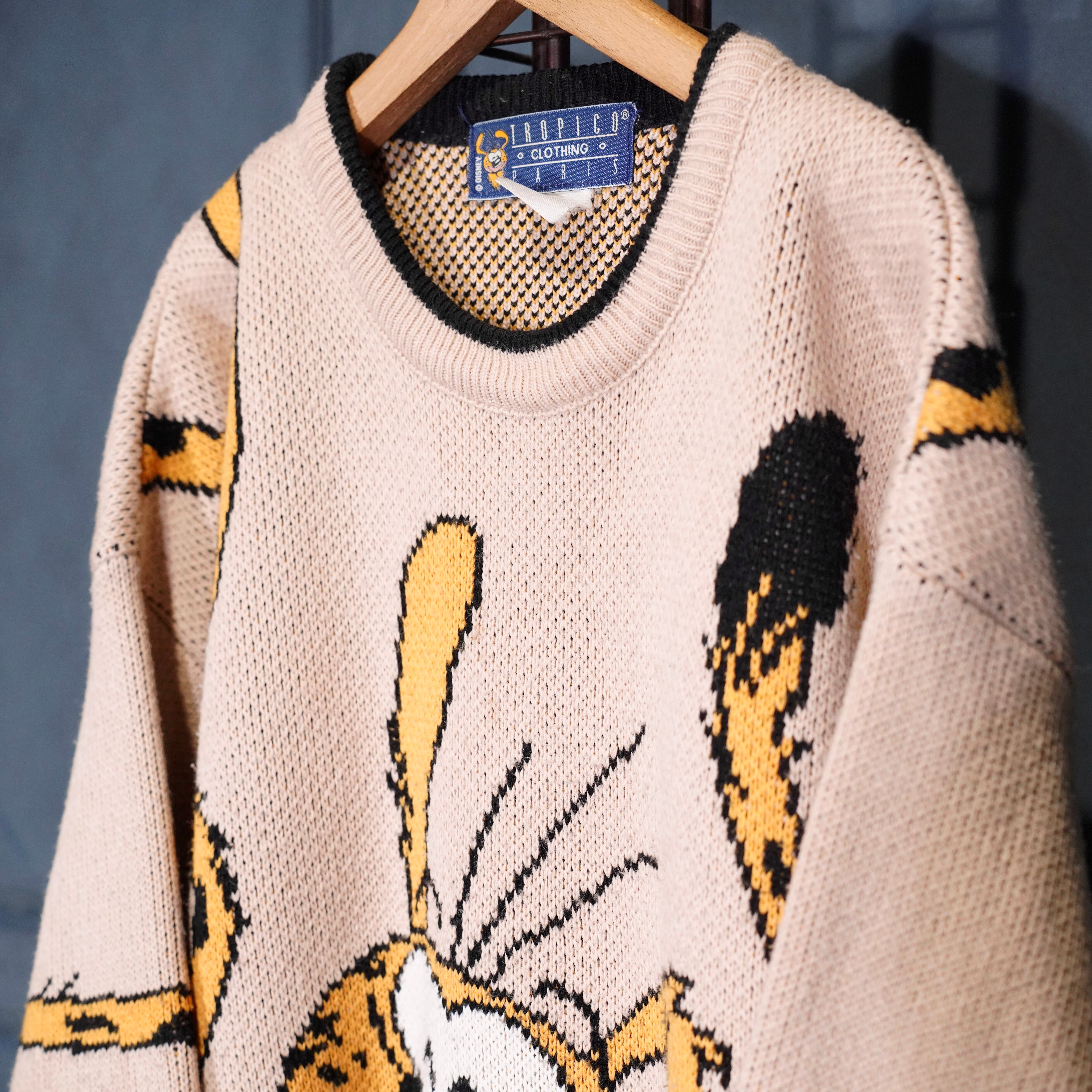 90's USA VINTAGE TROPICO CLOTHING PARIS CHARACTER DESIGN ACRYIC KNIT/90年代アメリカ古着キャラクターデザインアクリルニット