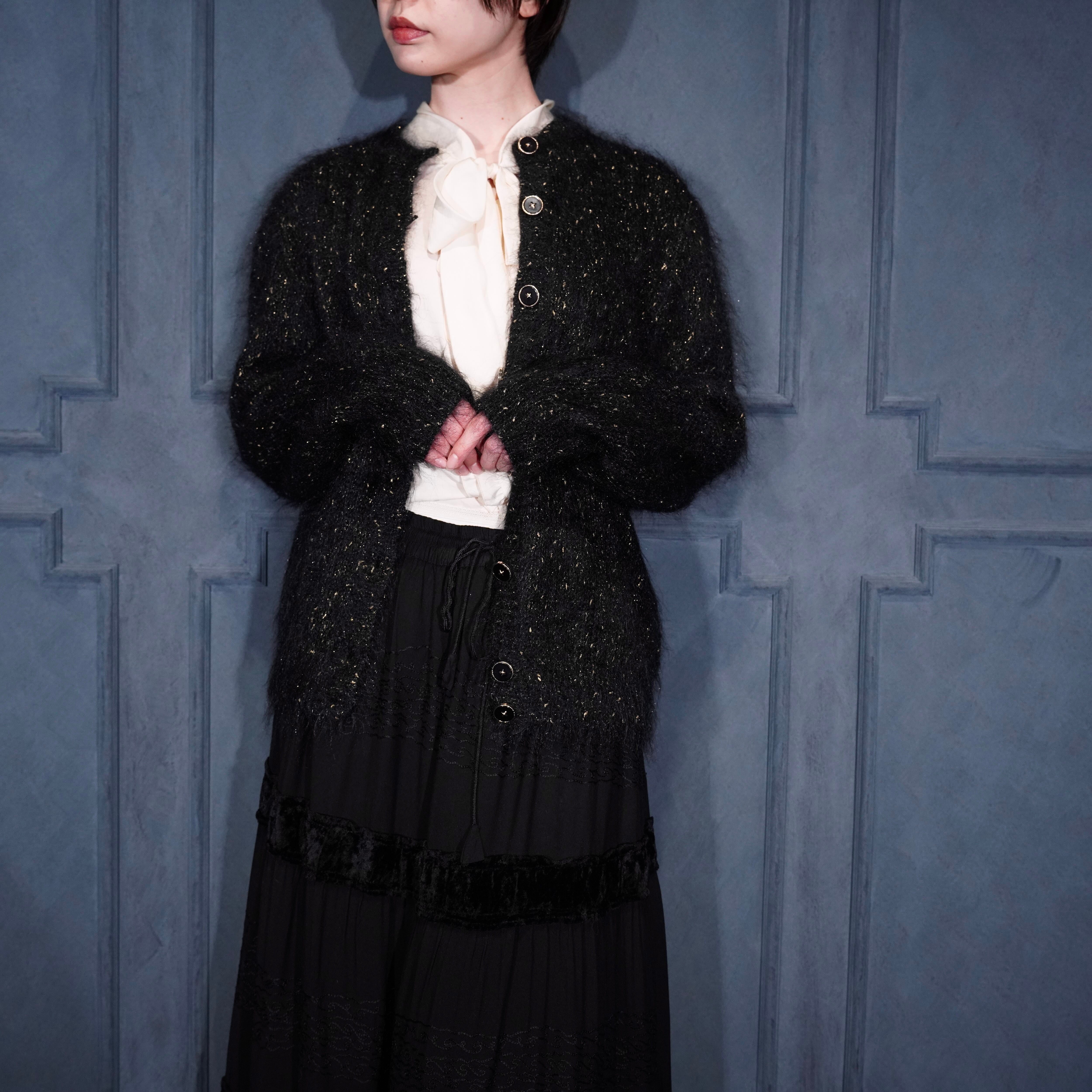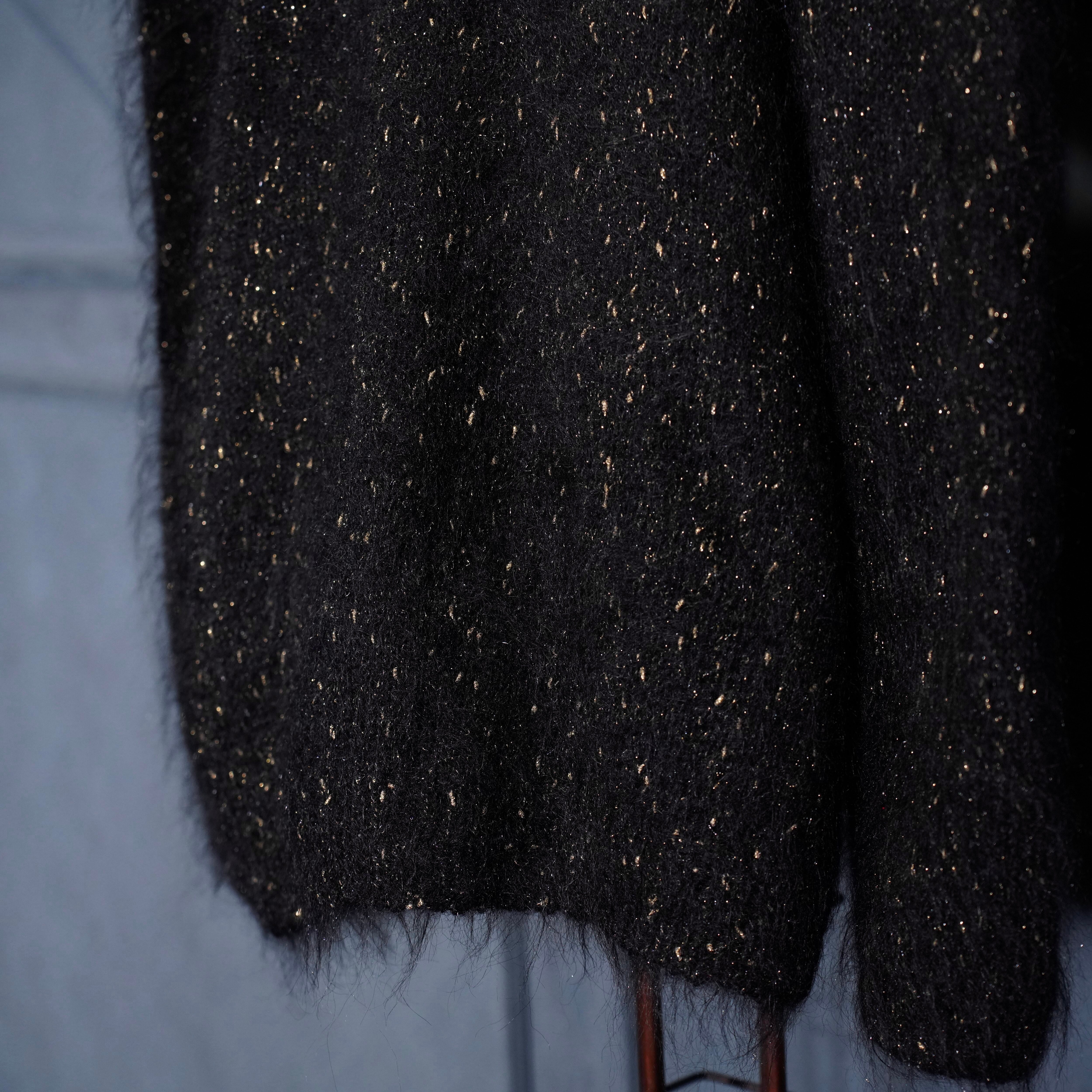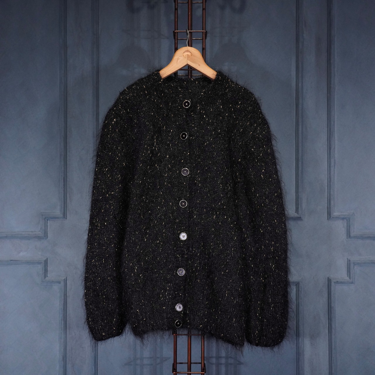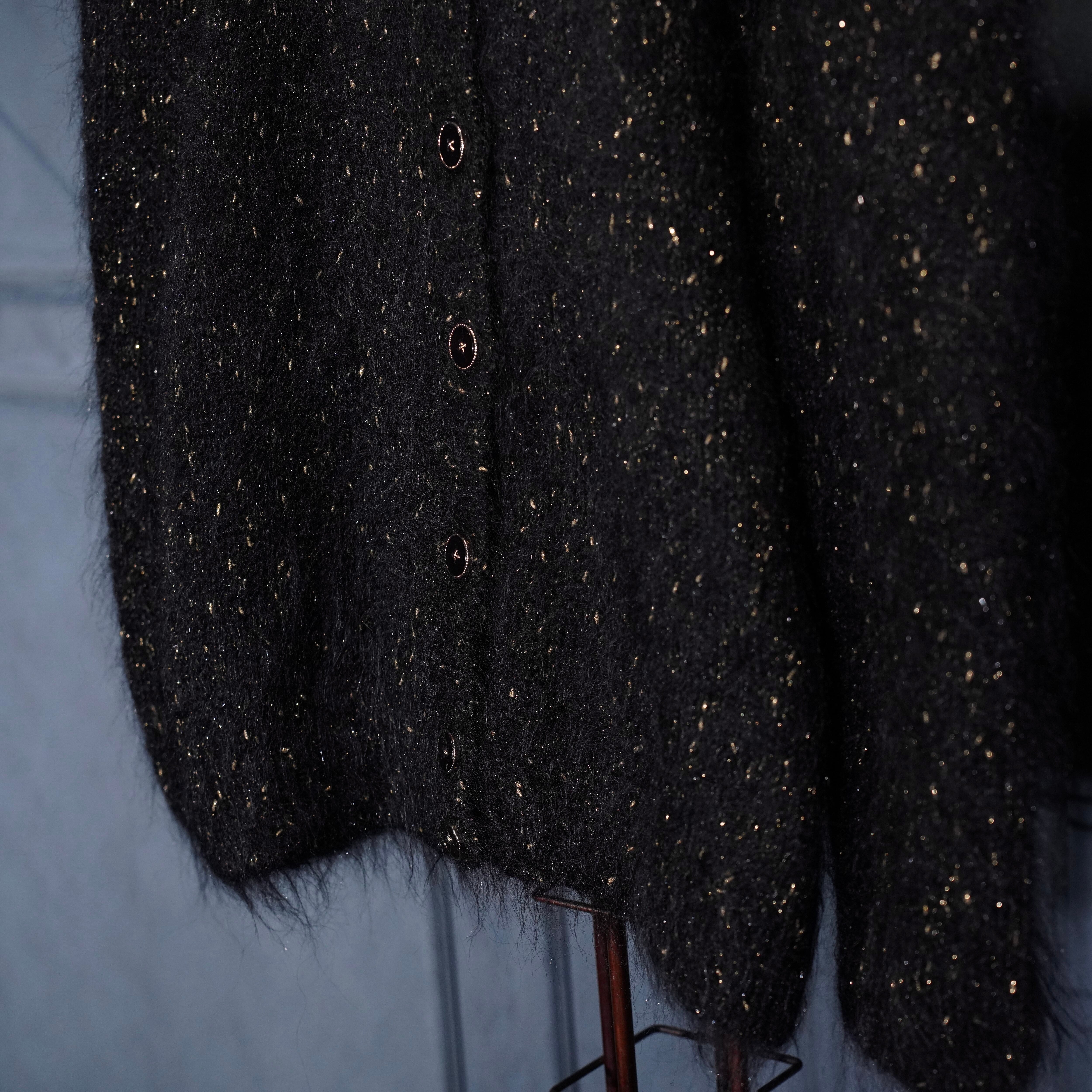 USA VINTAGE GRITTER DESIGN MOHAIR LIKE SHAGGY KNIT CARDIGAN/アメリカ古着グリッターデザインモヘア風シャギーニットカーディガン