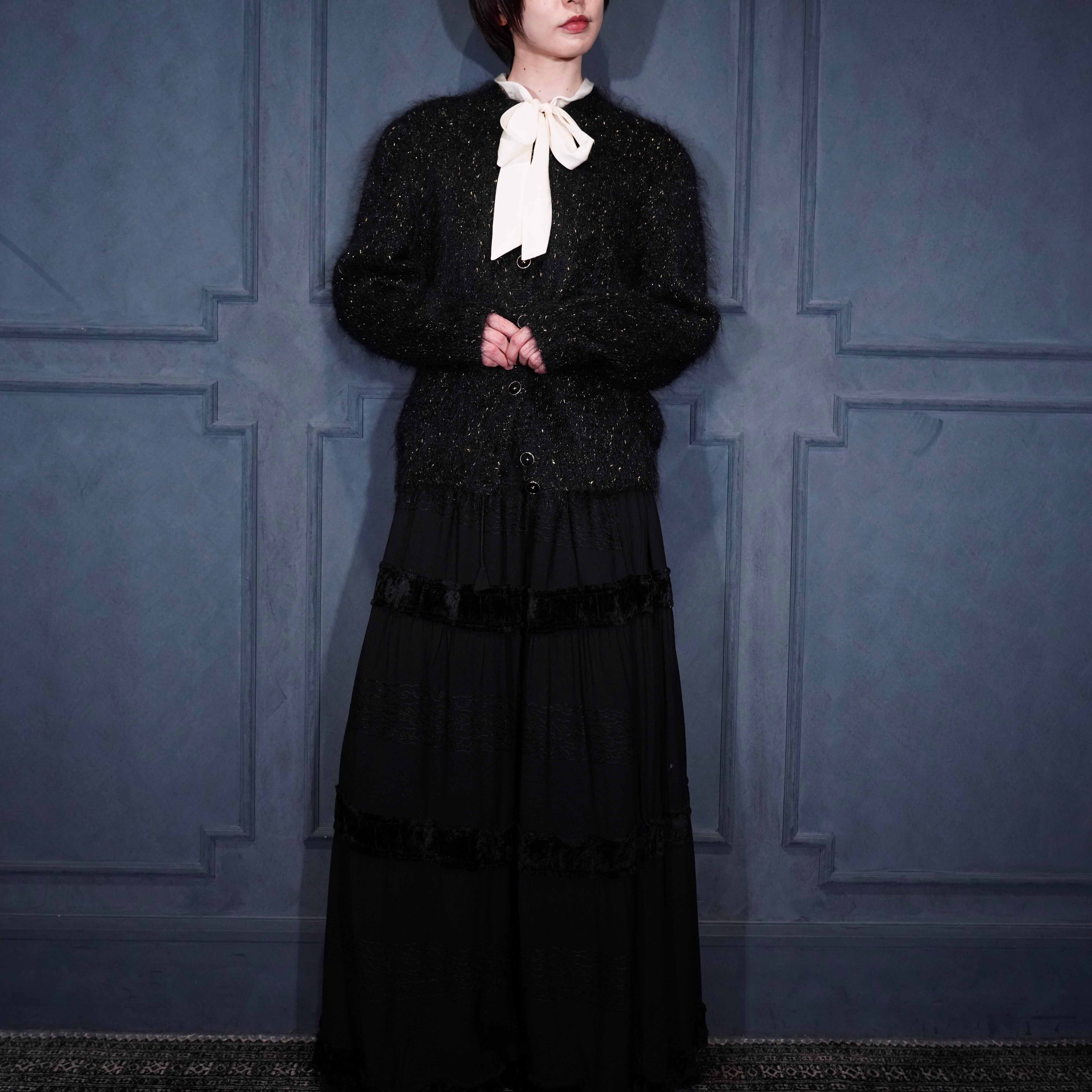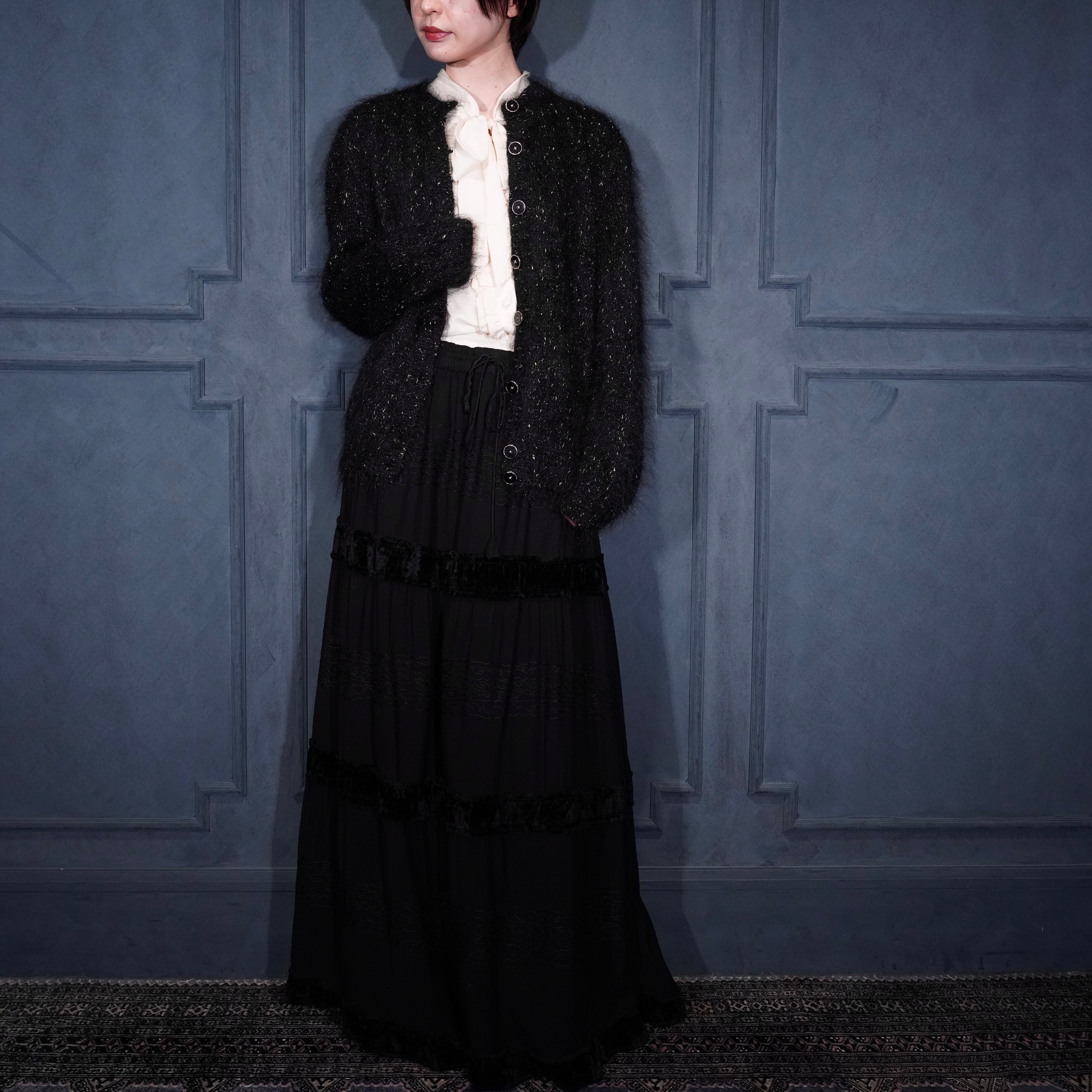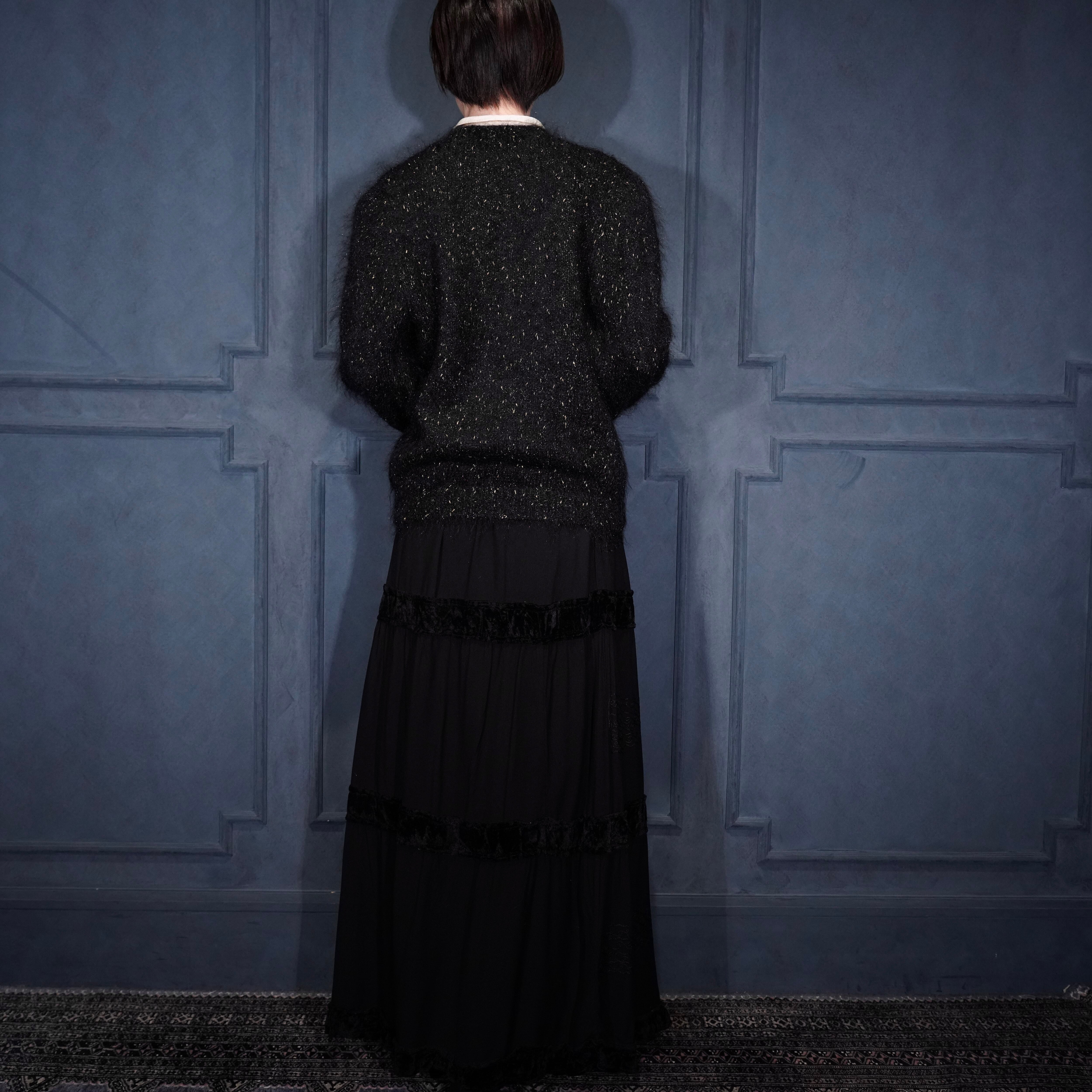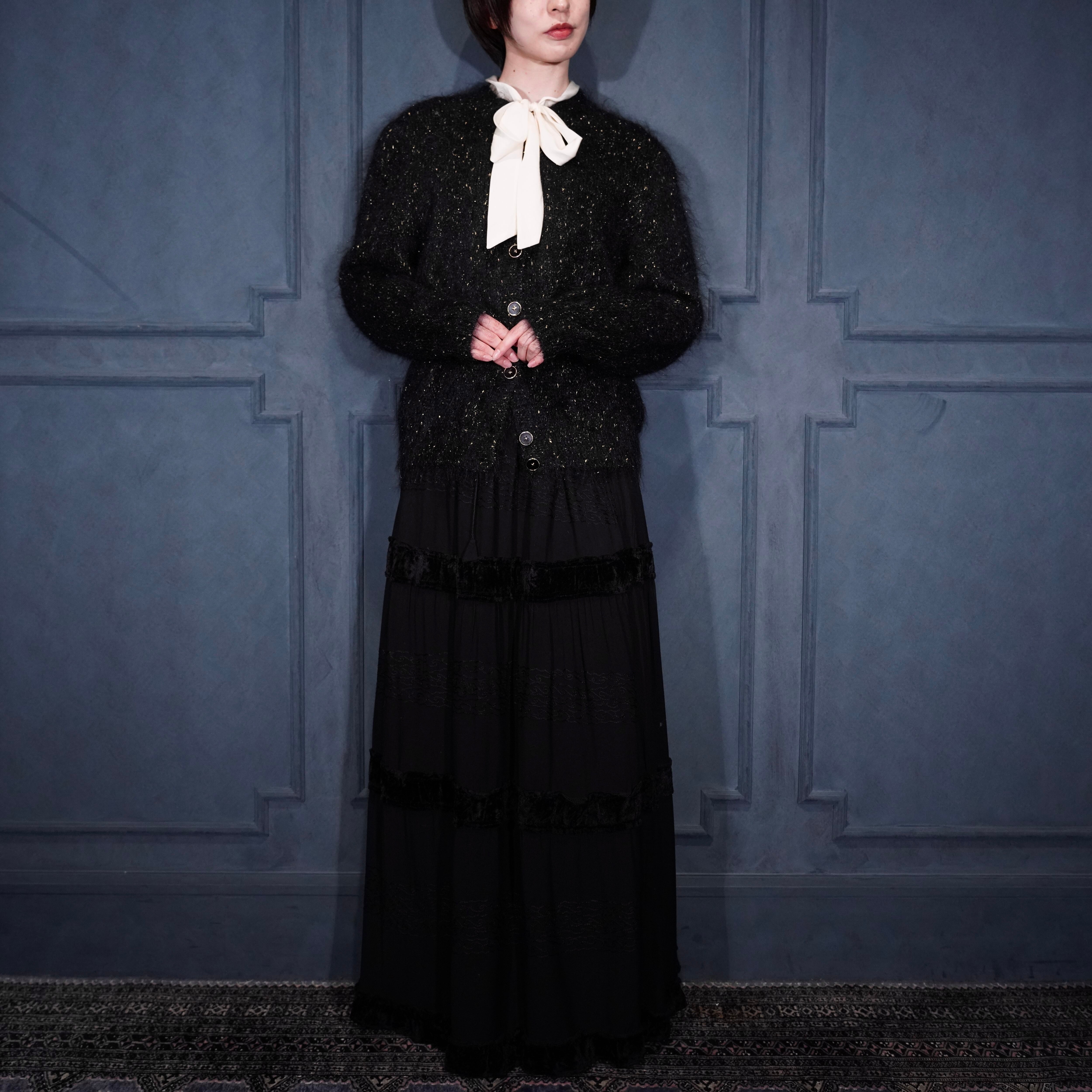 USA VINTAGE GRITTER DESIGN MOHAIR LIKE SHAGGY KNIT CARDIGAN/アメリカ古着グリッターデザインモヘア風シャギーニットカーディガン
