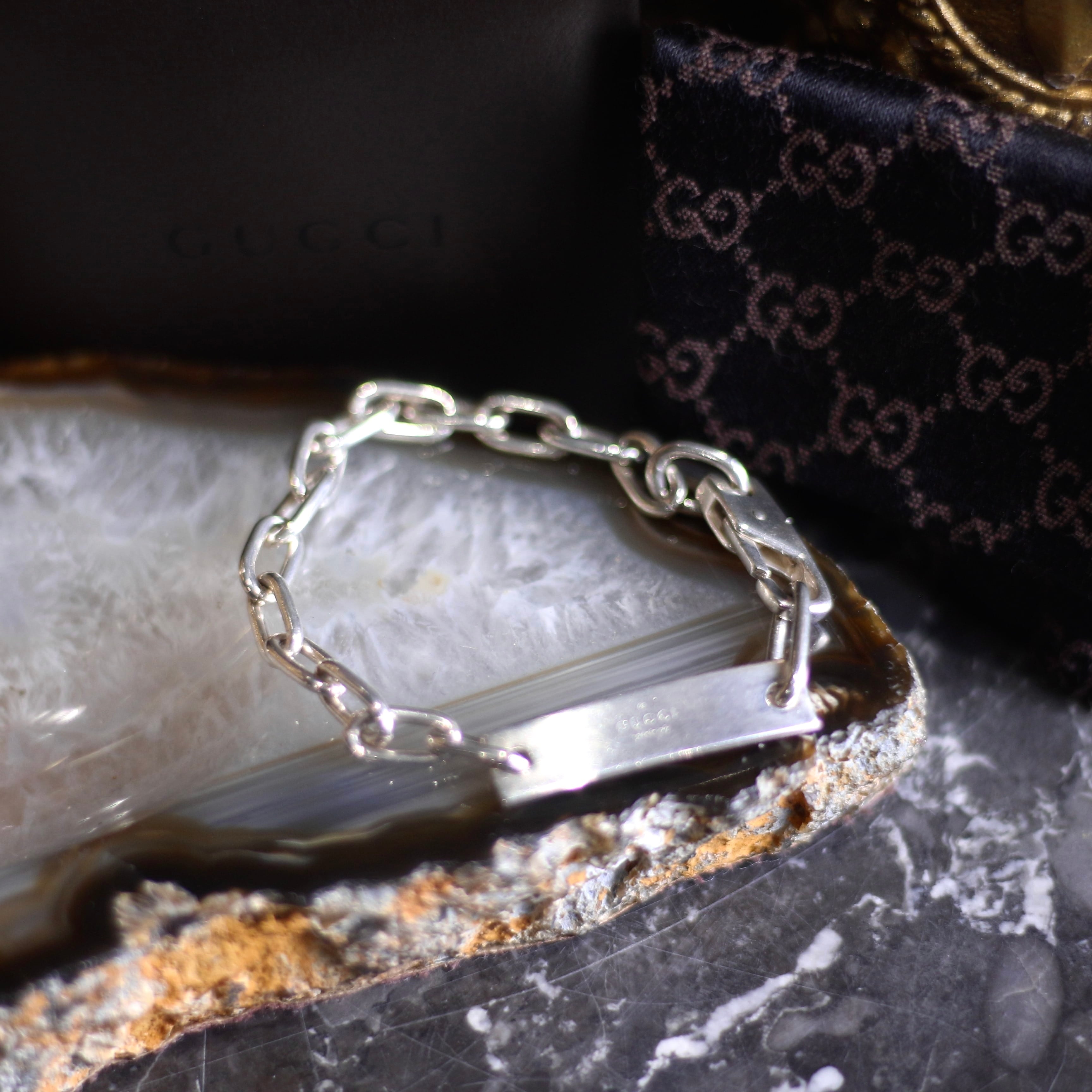 GUCCI LOGO PLATE SILVER CHAIN BRACELET/グッチロゴプレートシルバーチェーンブレスレット