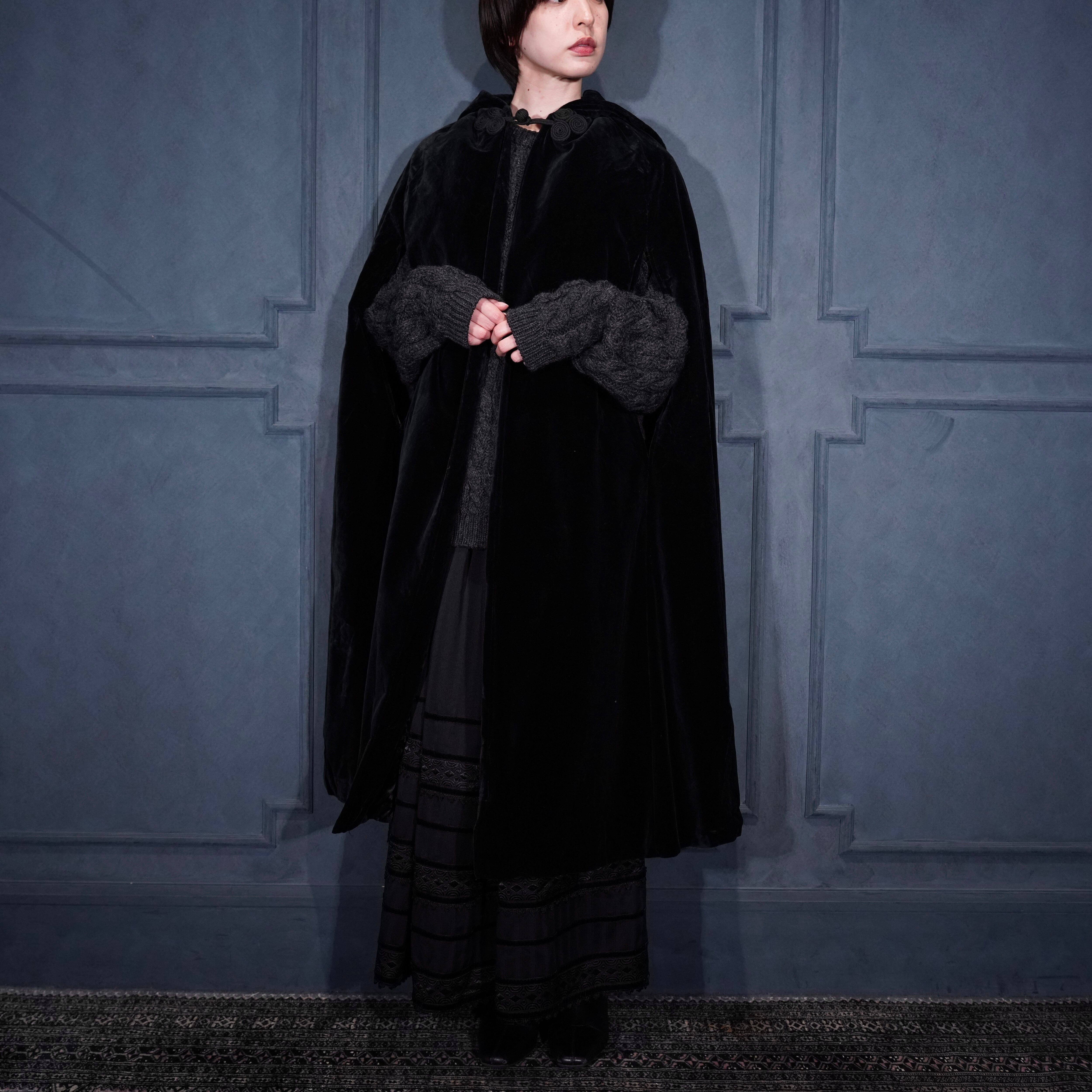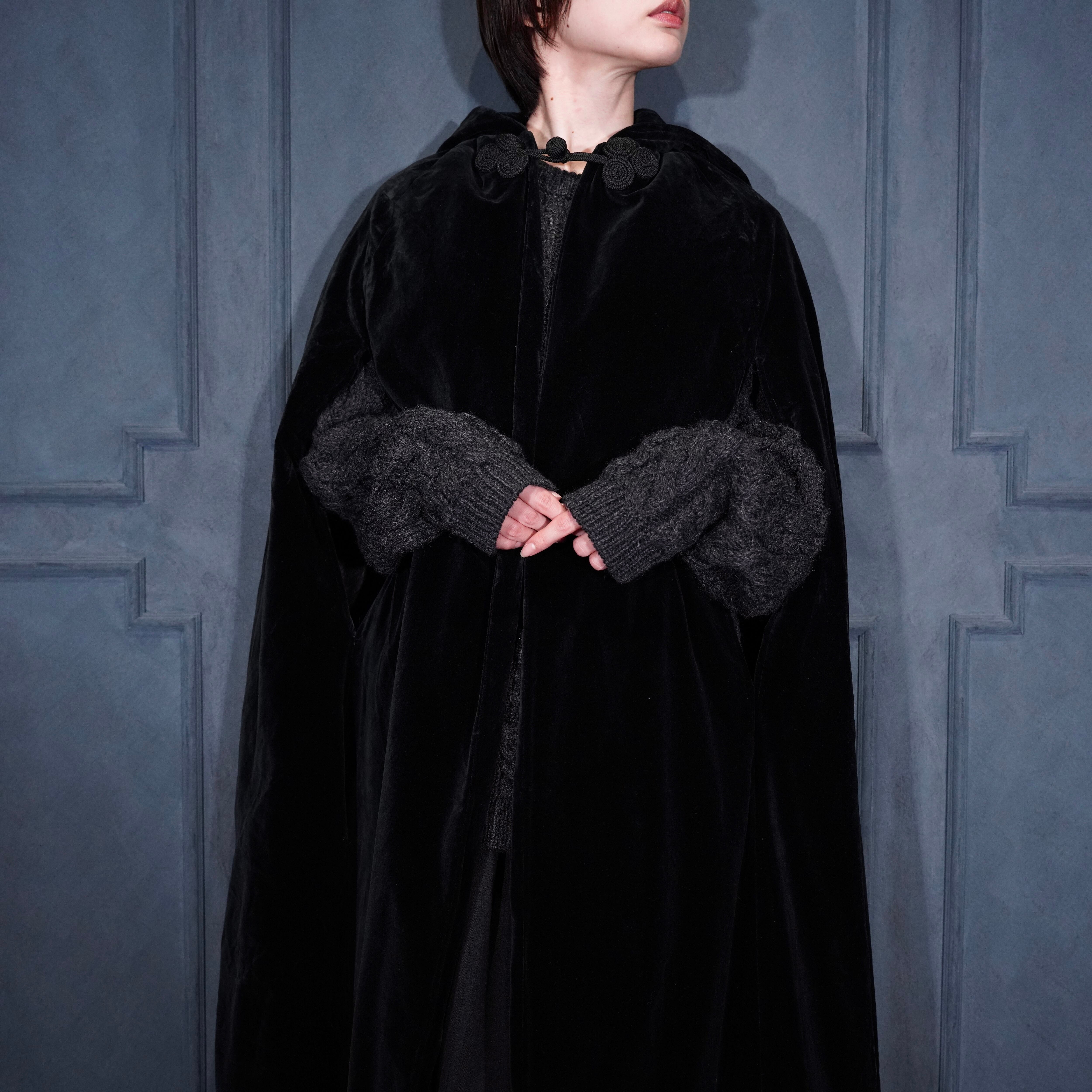 EU VINTAGE Boyonne CHINA BUTTON DESIGN HOODIE VELOUR CAPE COAT/ヨーロッパ古着チャイナボタンデザインフーディベロアケープコート(ポンチョ)