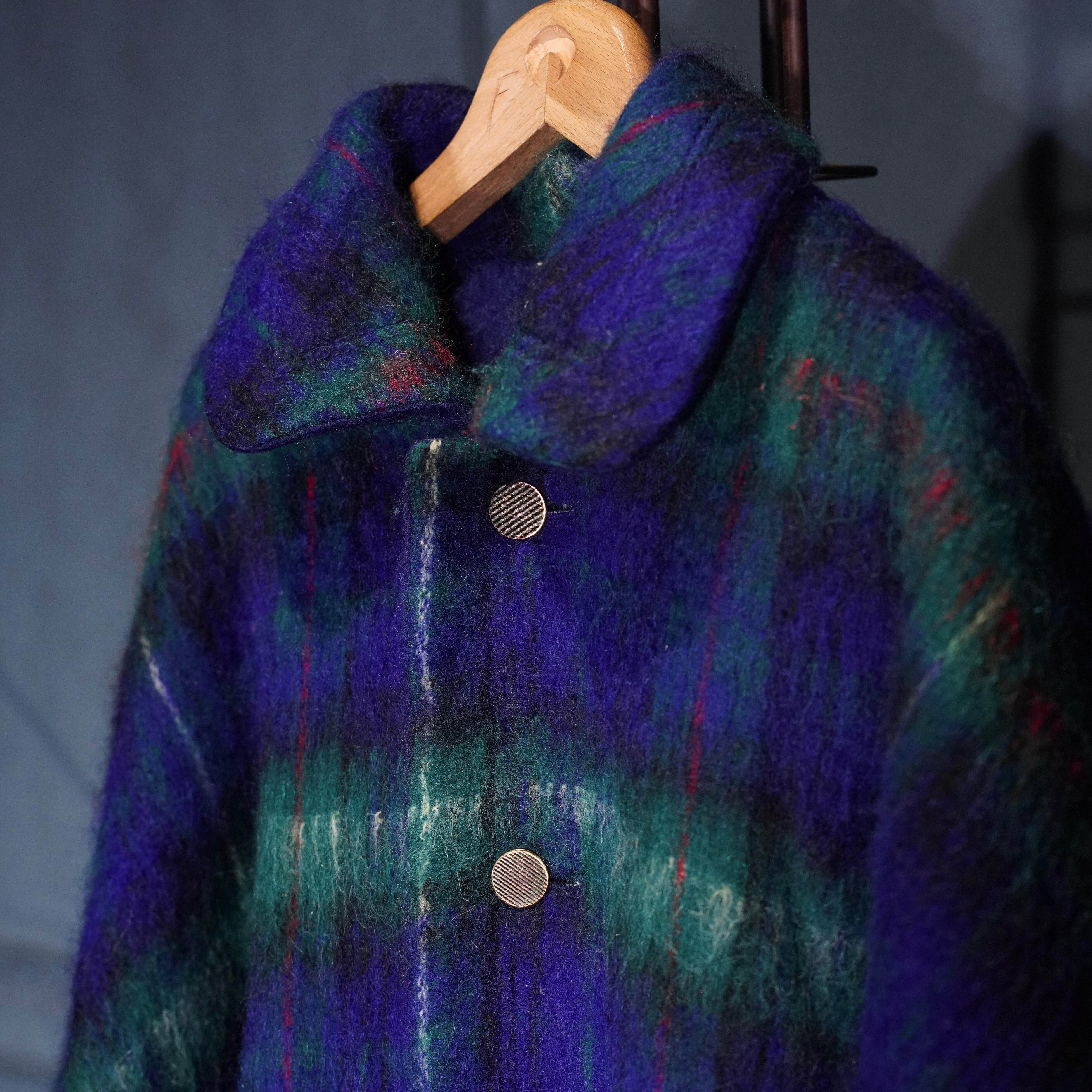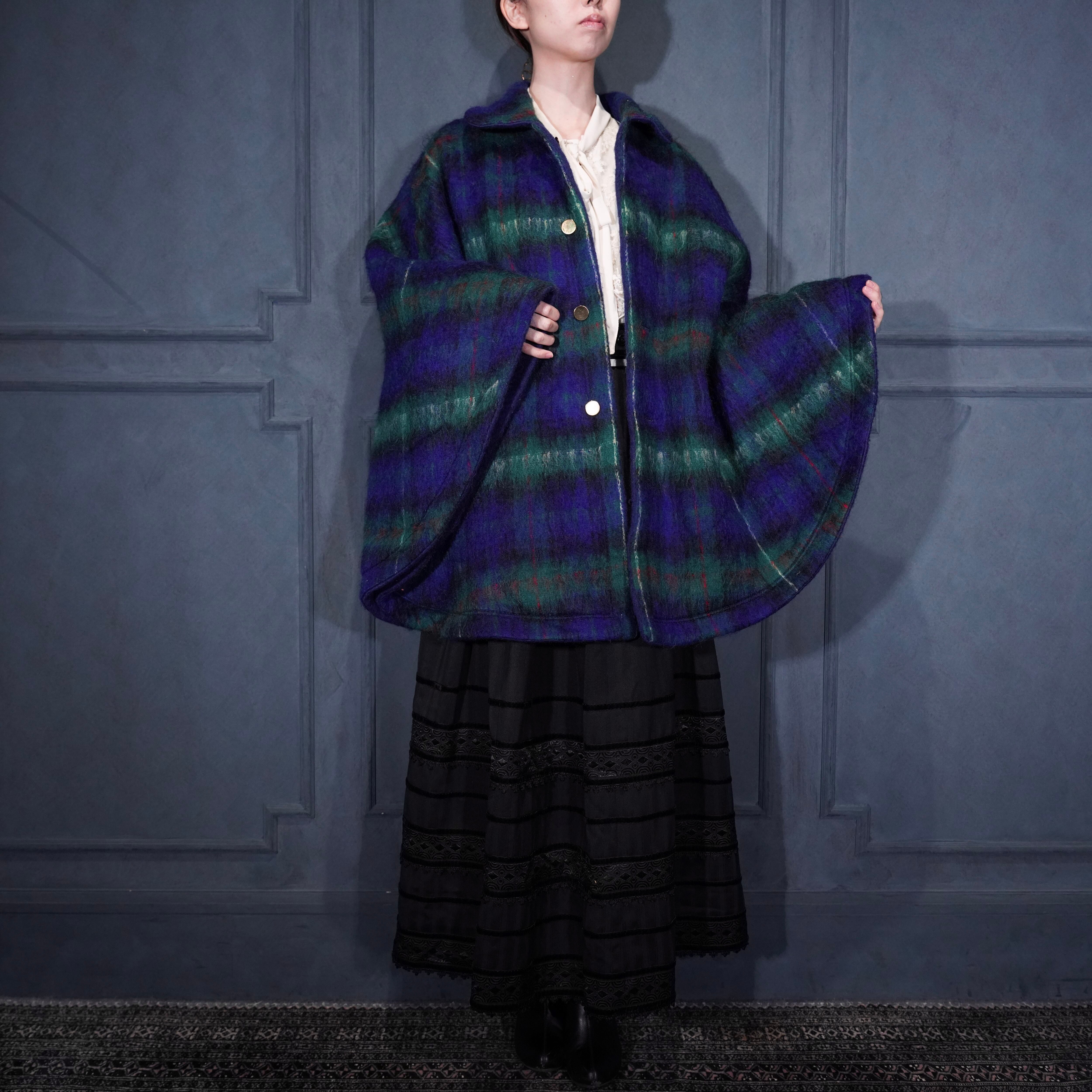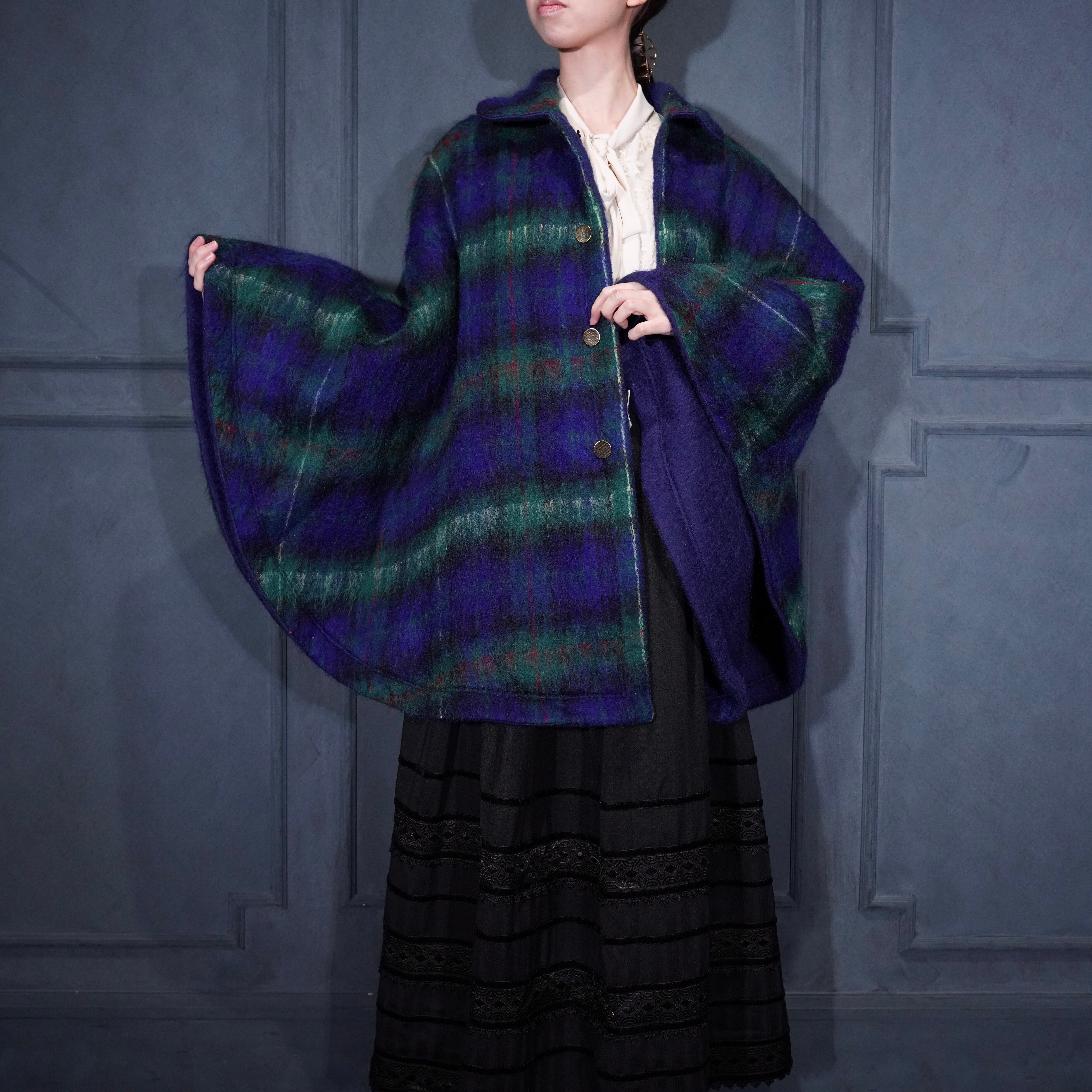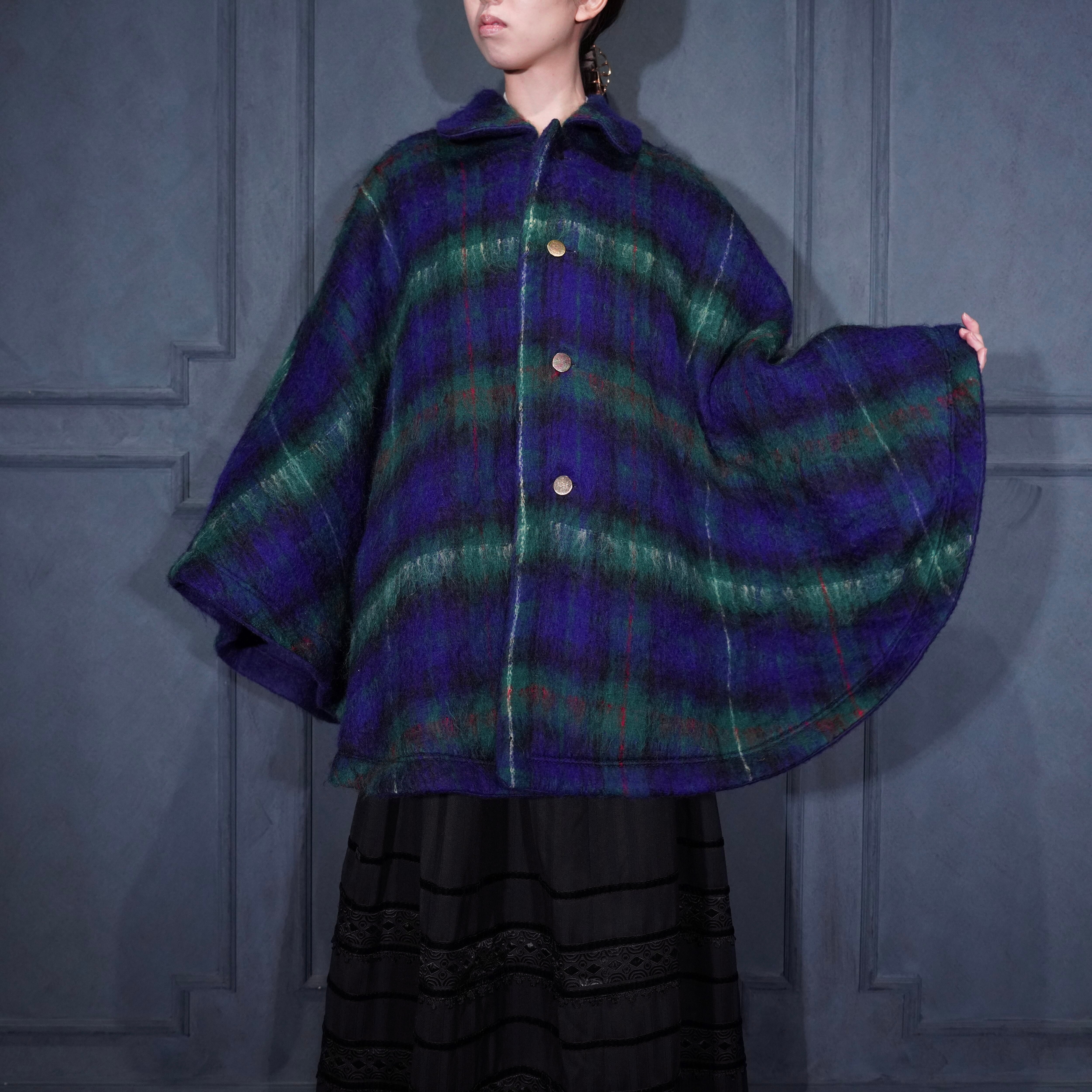 *SPECIAL ITEM* EU VINTAGE BOGNER MUNCHEN CHECK PATTERNED MOHAIR WOOL CAPE COAT/ヨーロッパ古着チェック柄モヘアウールケープコート(ポンチョ)