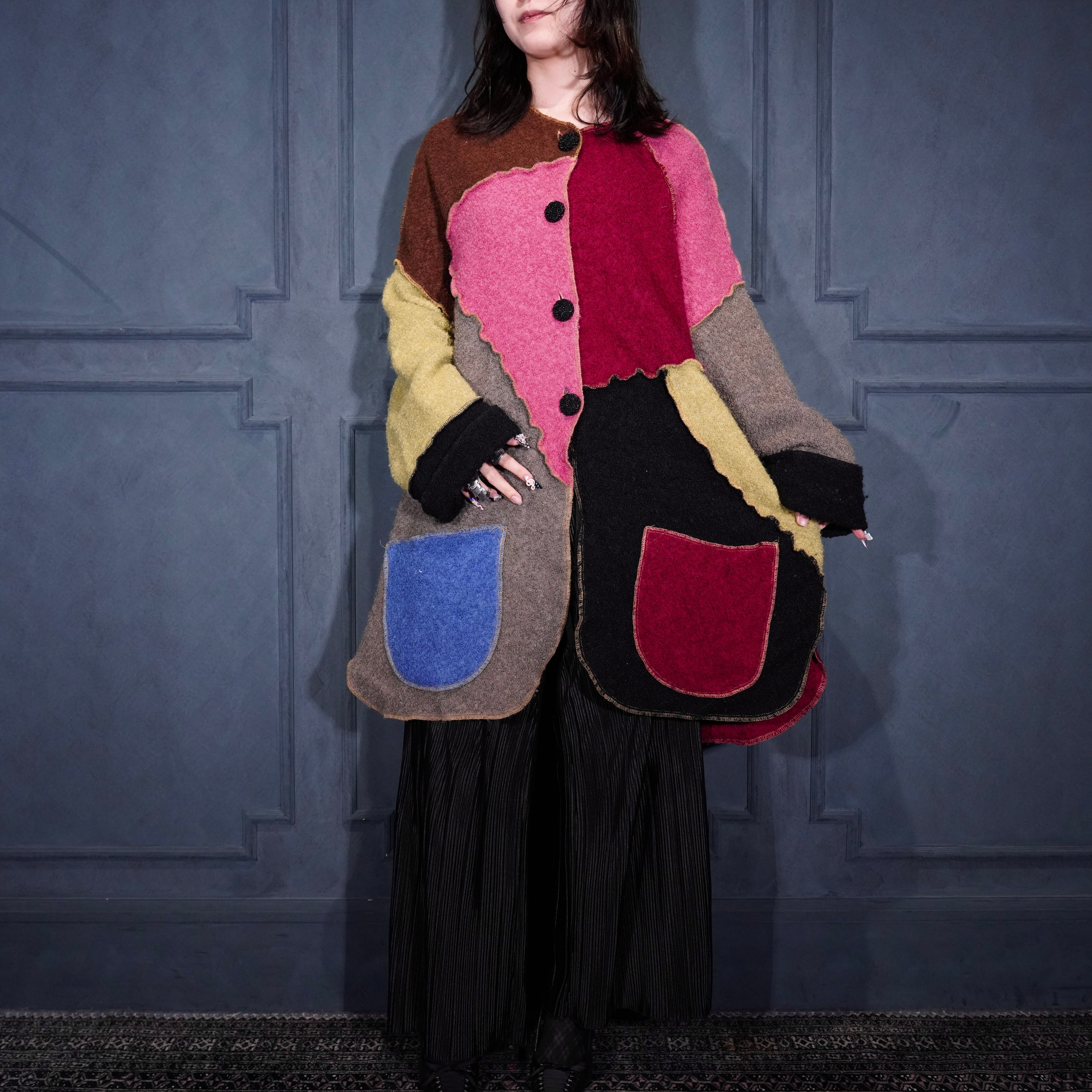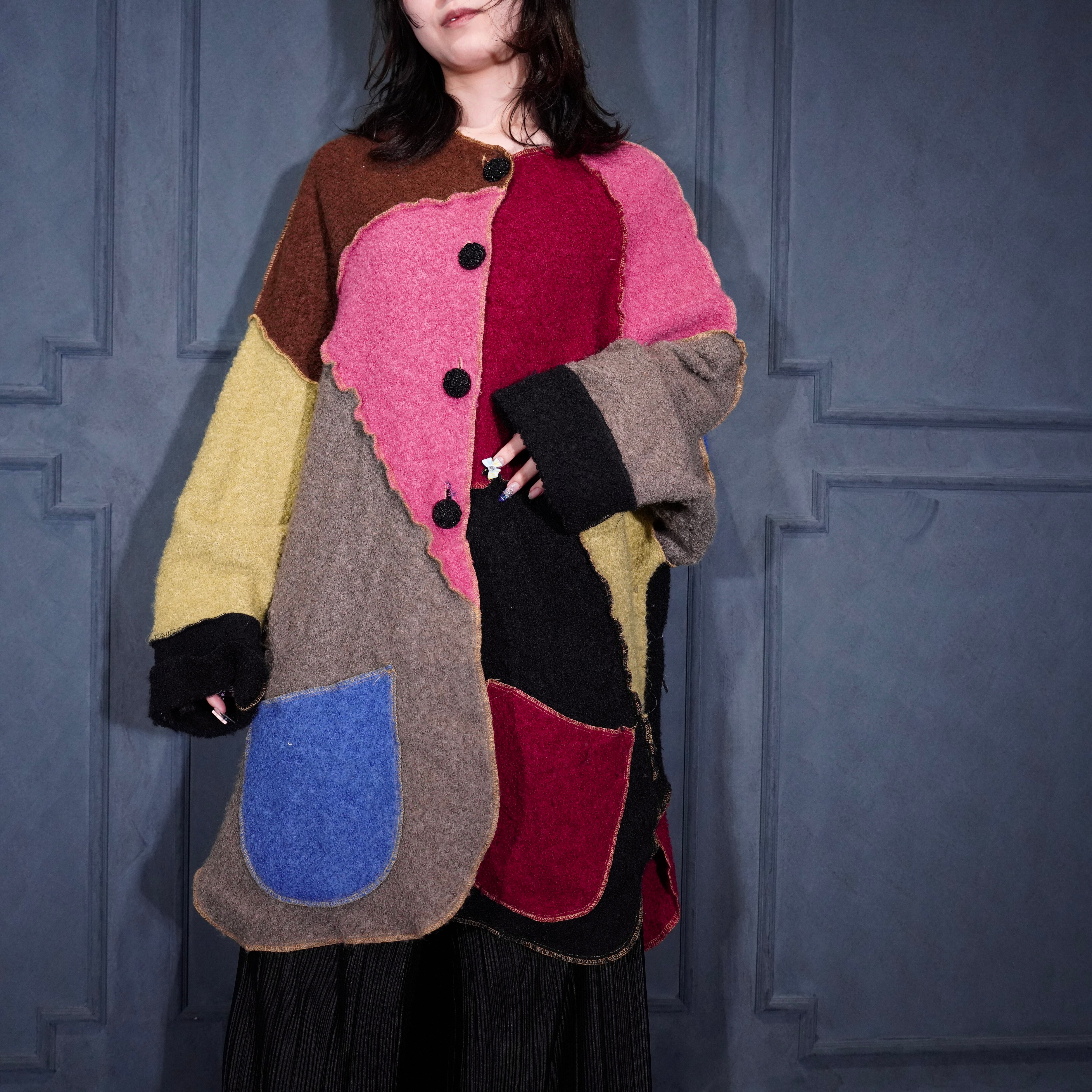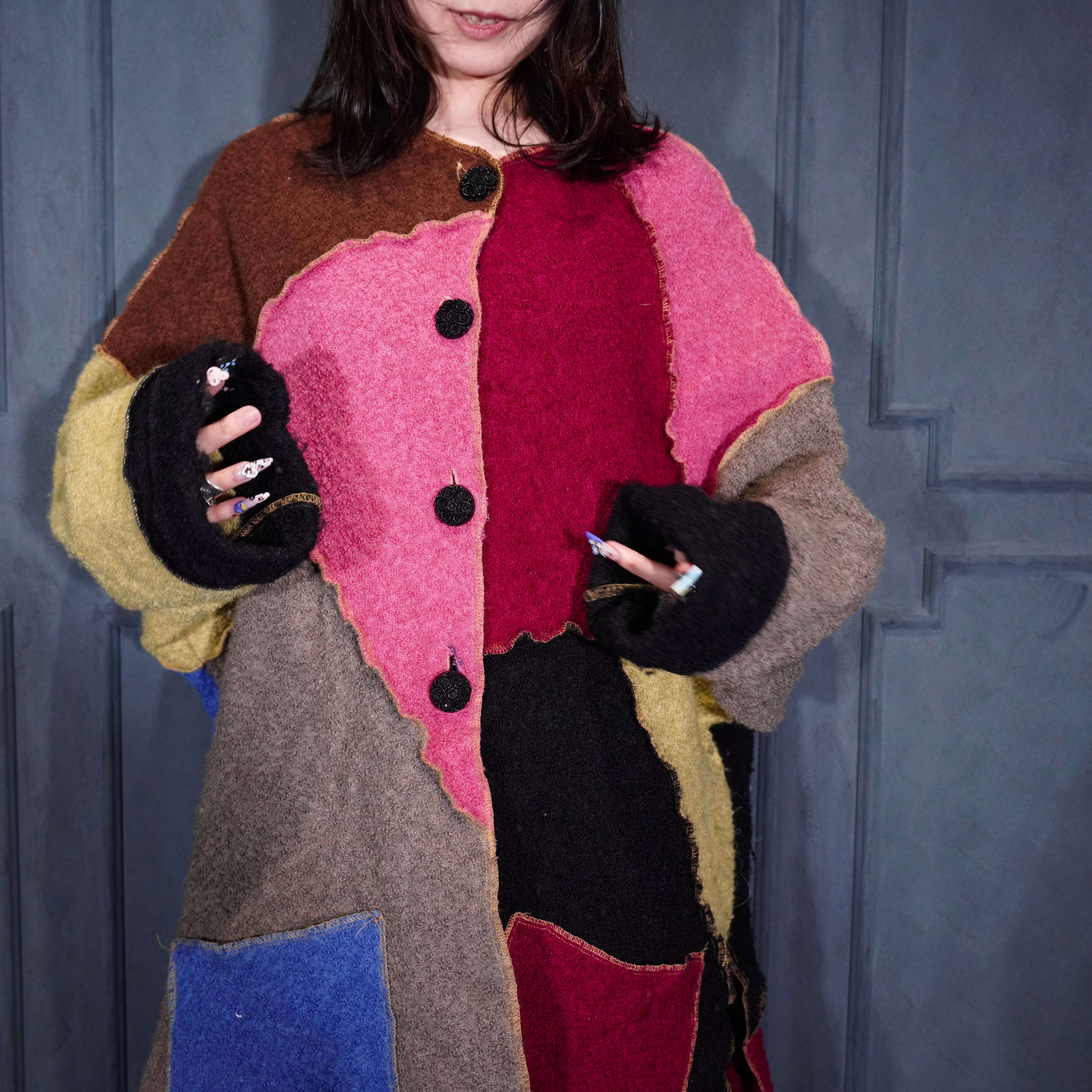 USA VINTAGE mink coats PATCHWORK DESIGN WOOL COAT MADE IN USA/アメリカ古着パッチワークデザインウールコート