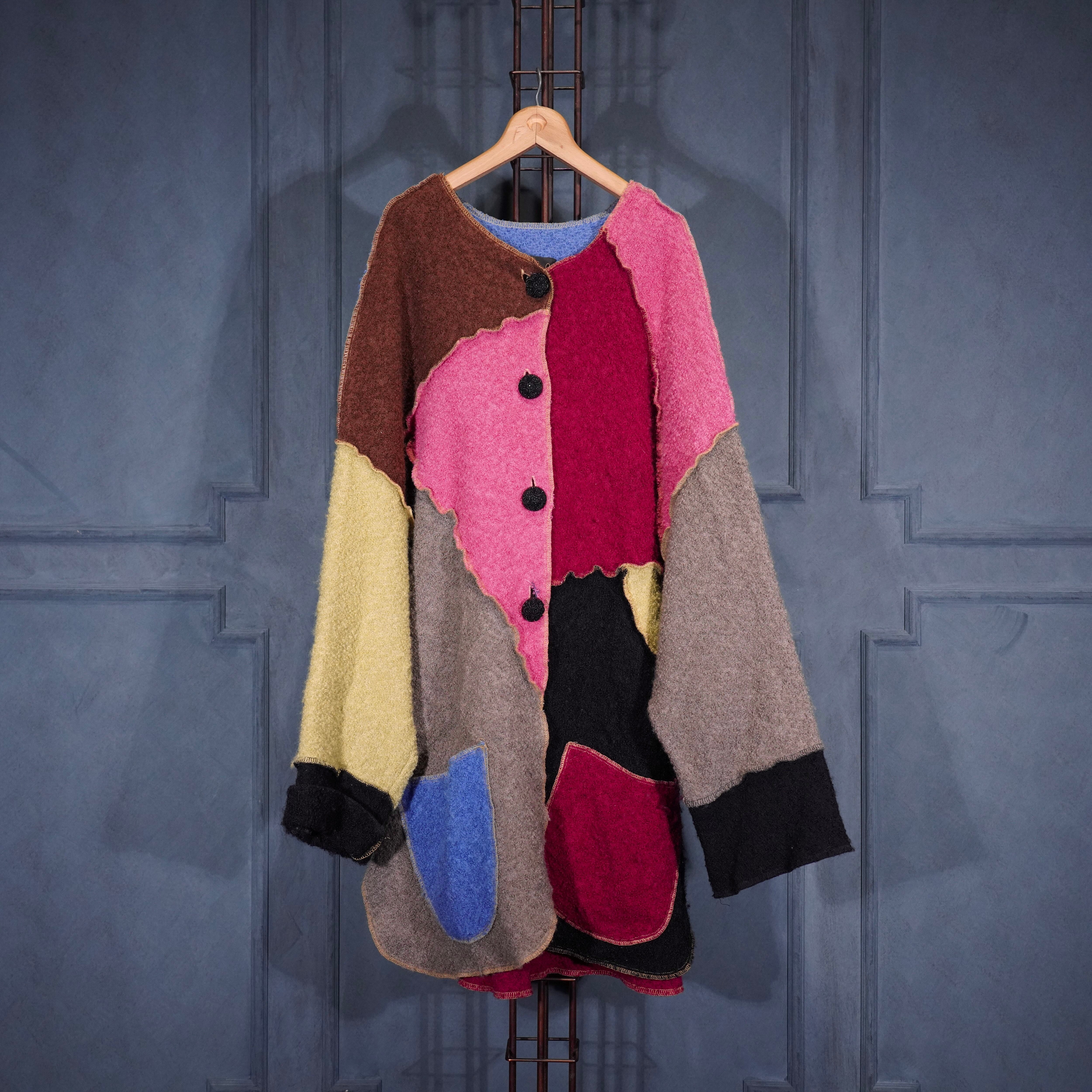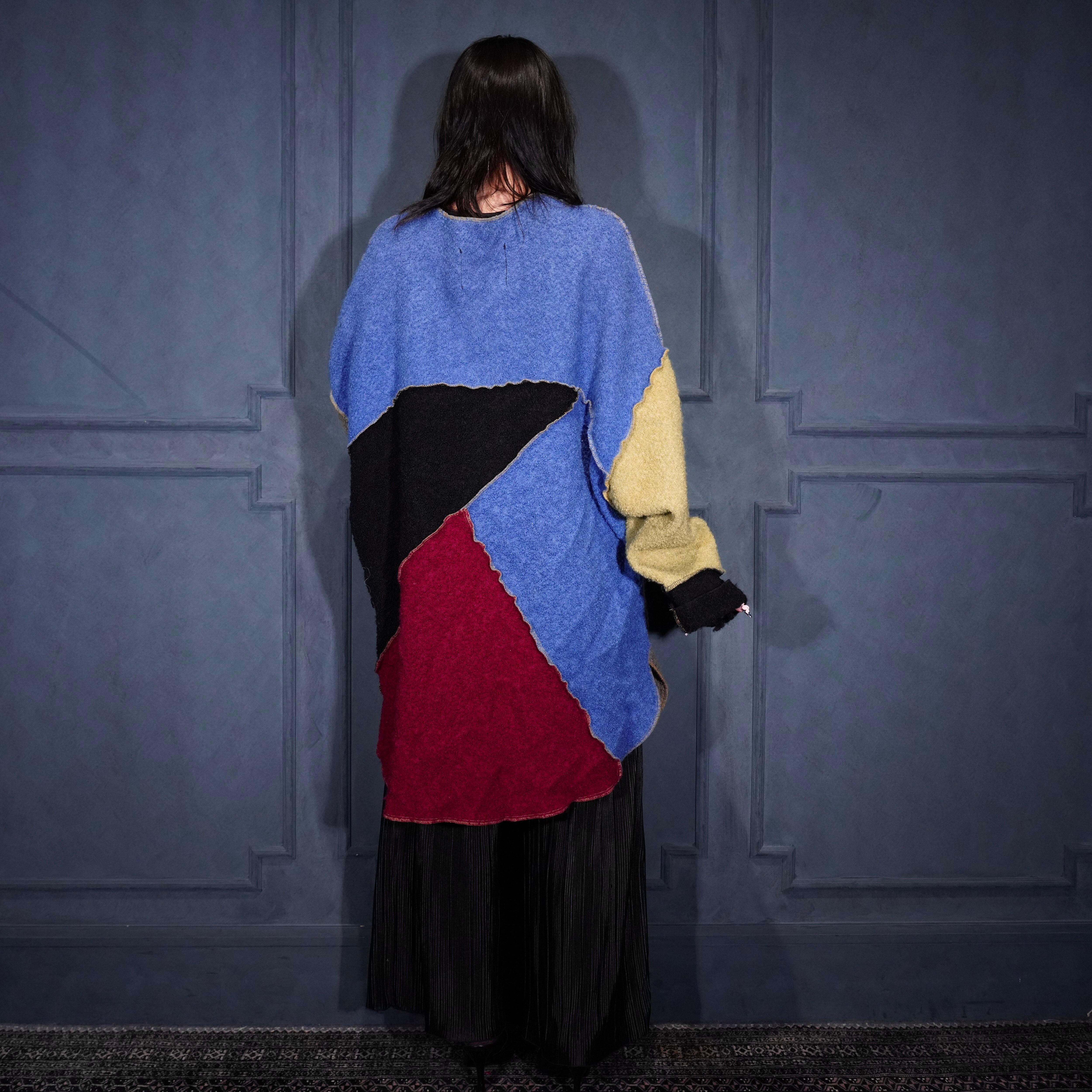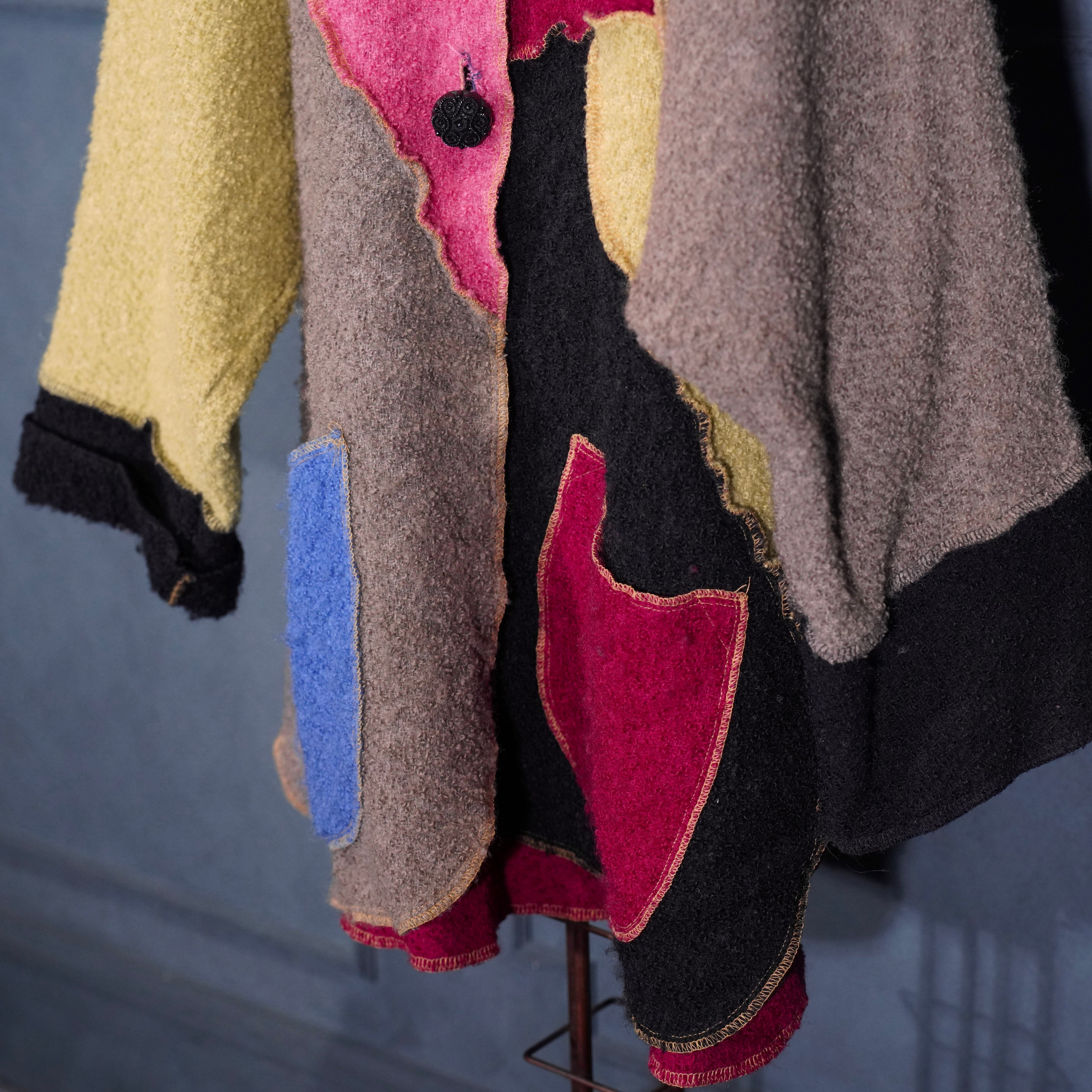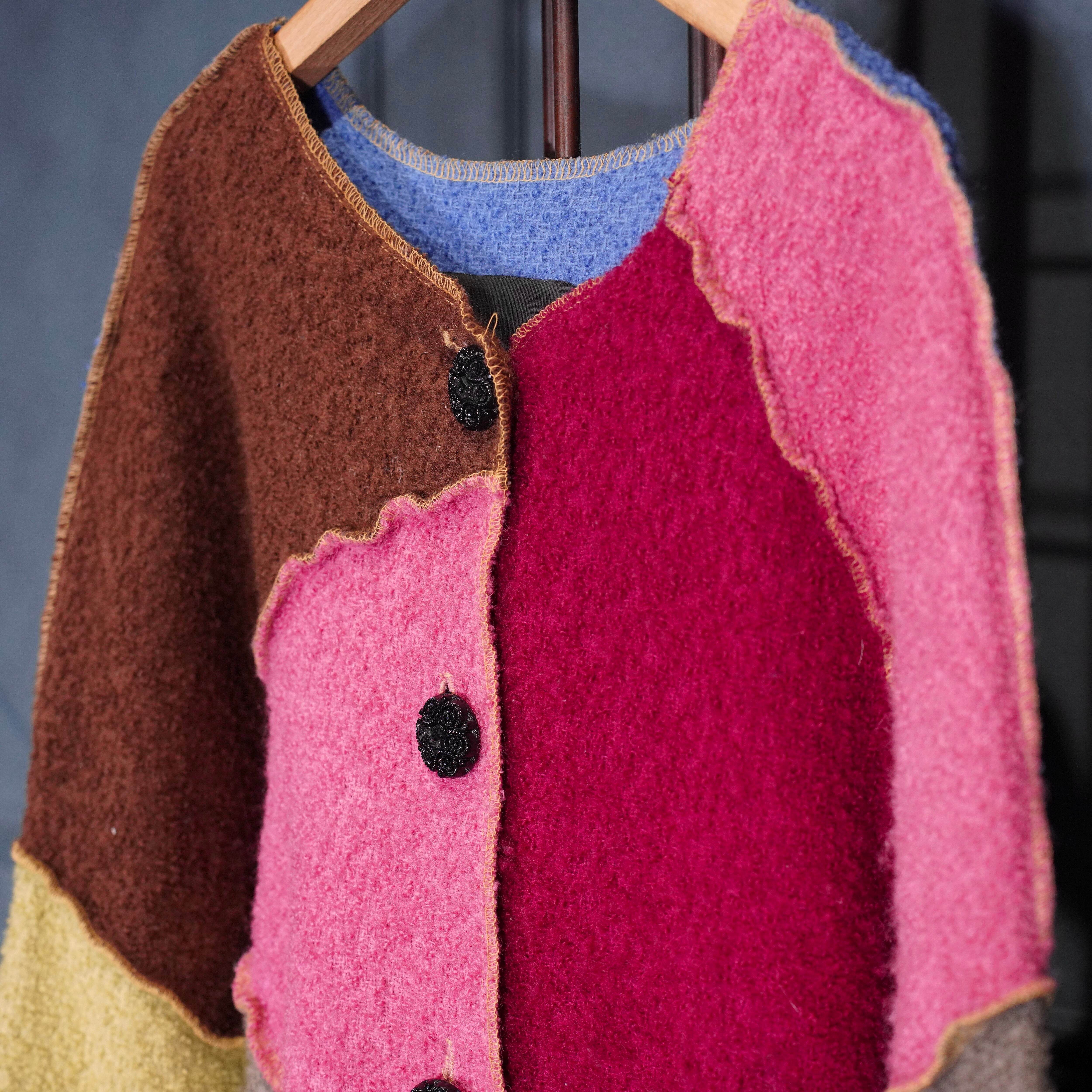 USA VINTAGE mink coats PATCHWORK DESIGN WOOL COAT MADE IN USA/アメリカ古着パッチワークデザインウールコート