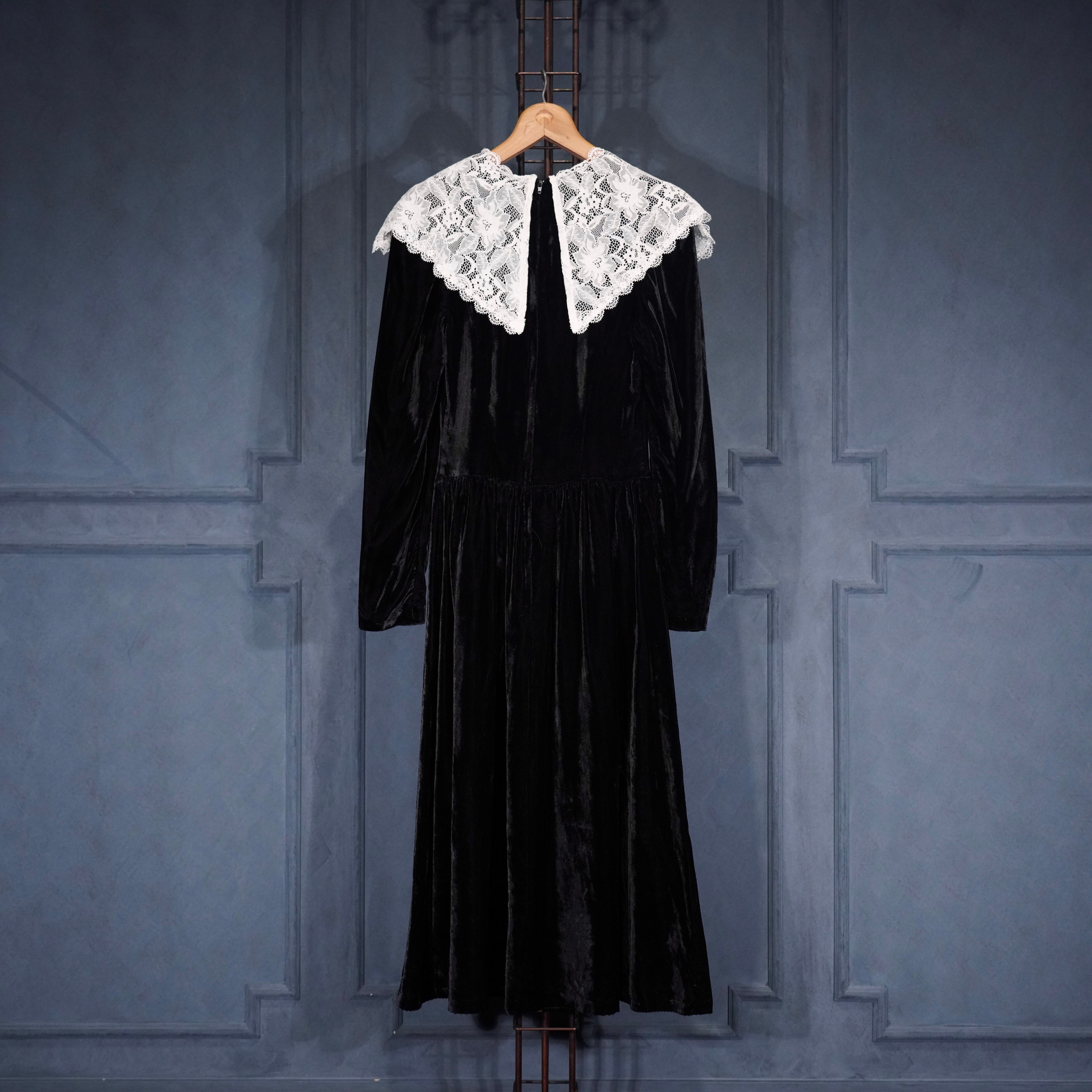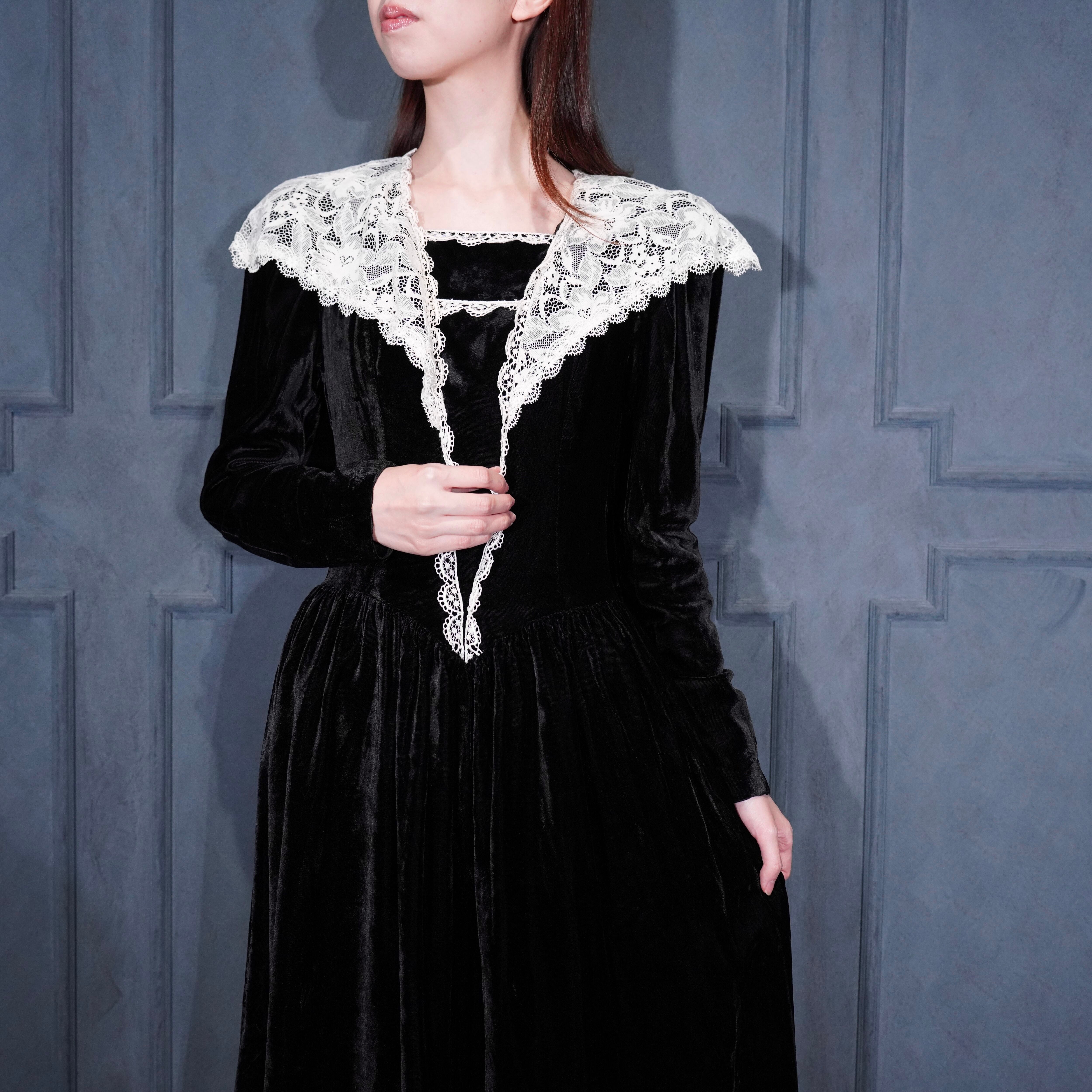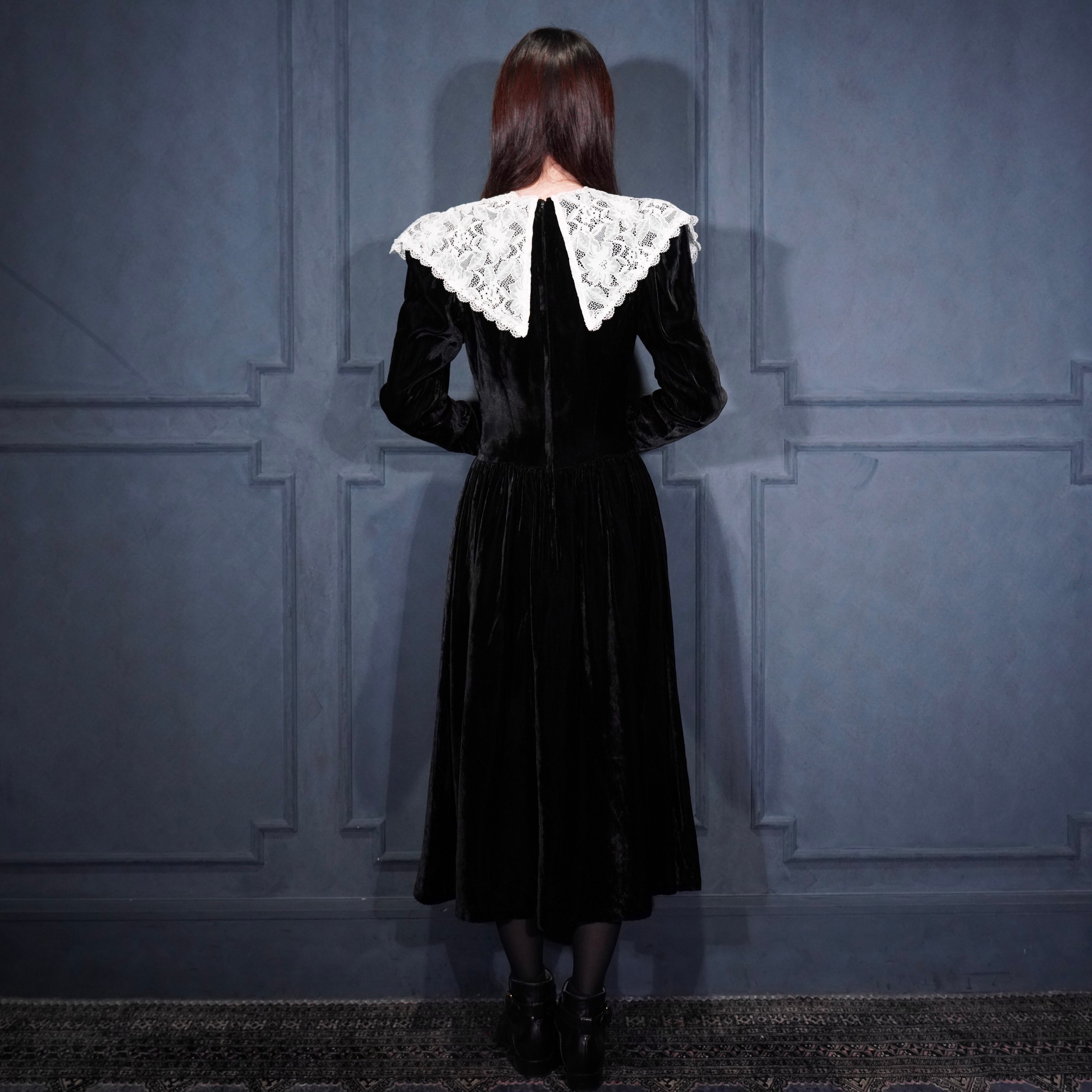 *SPECIAL ITEM* USA VINTAGE GUNNE SAX By JESSICA McCLINTOCK LACE COLLAR DESIGN VELOUR DRESS ONE PIECE/アメリカ古着ガニーサックスレースカラーデザインベロアドレスワンピース