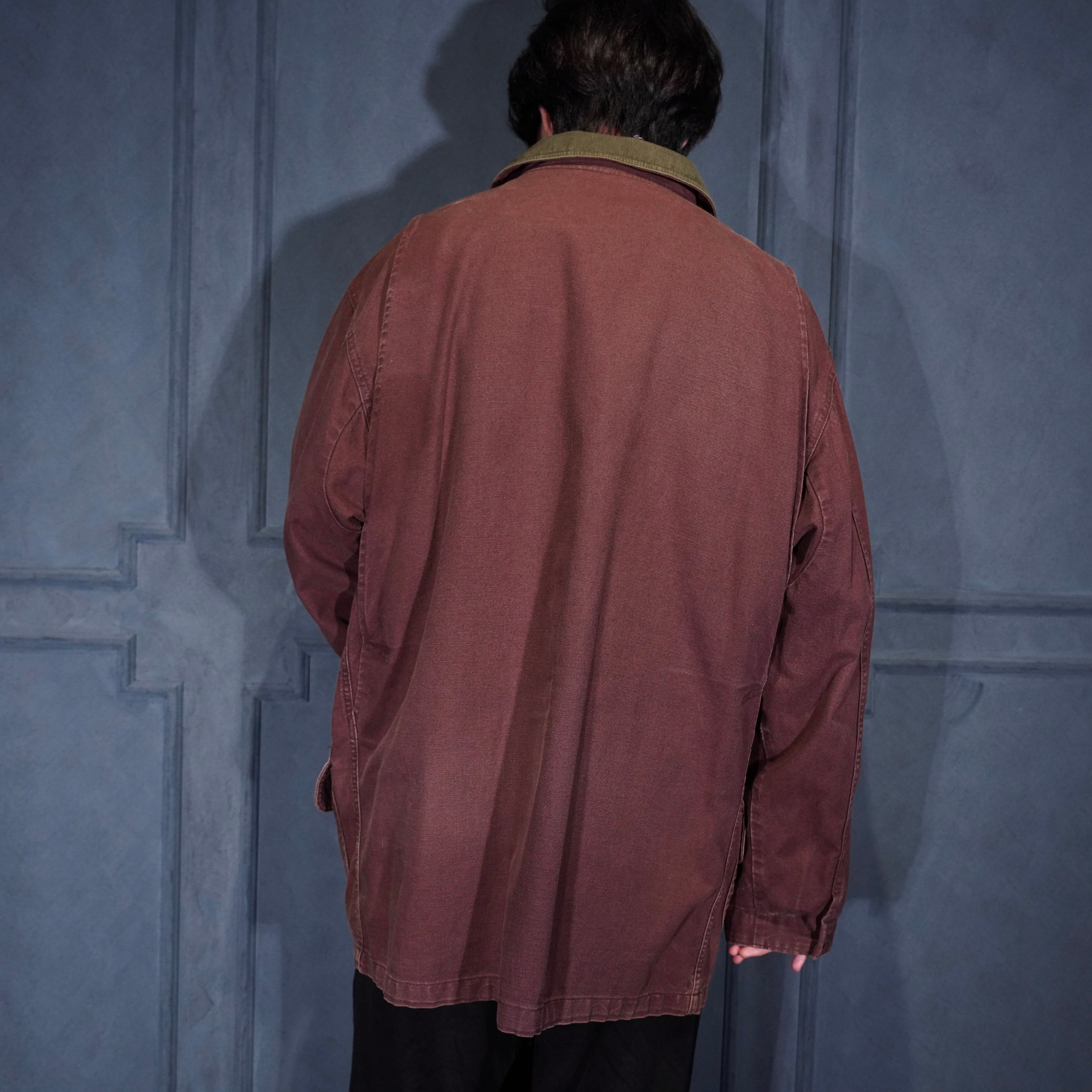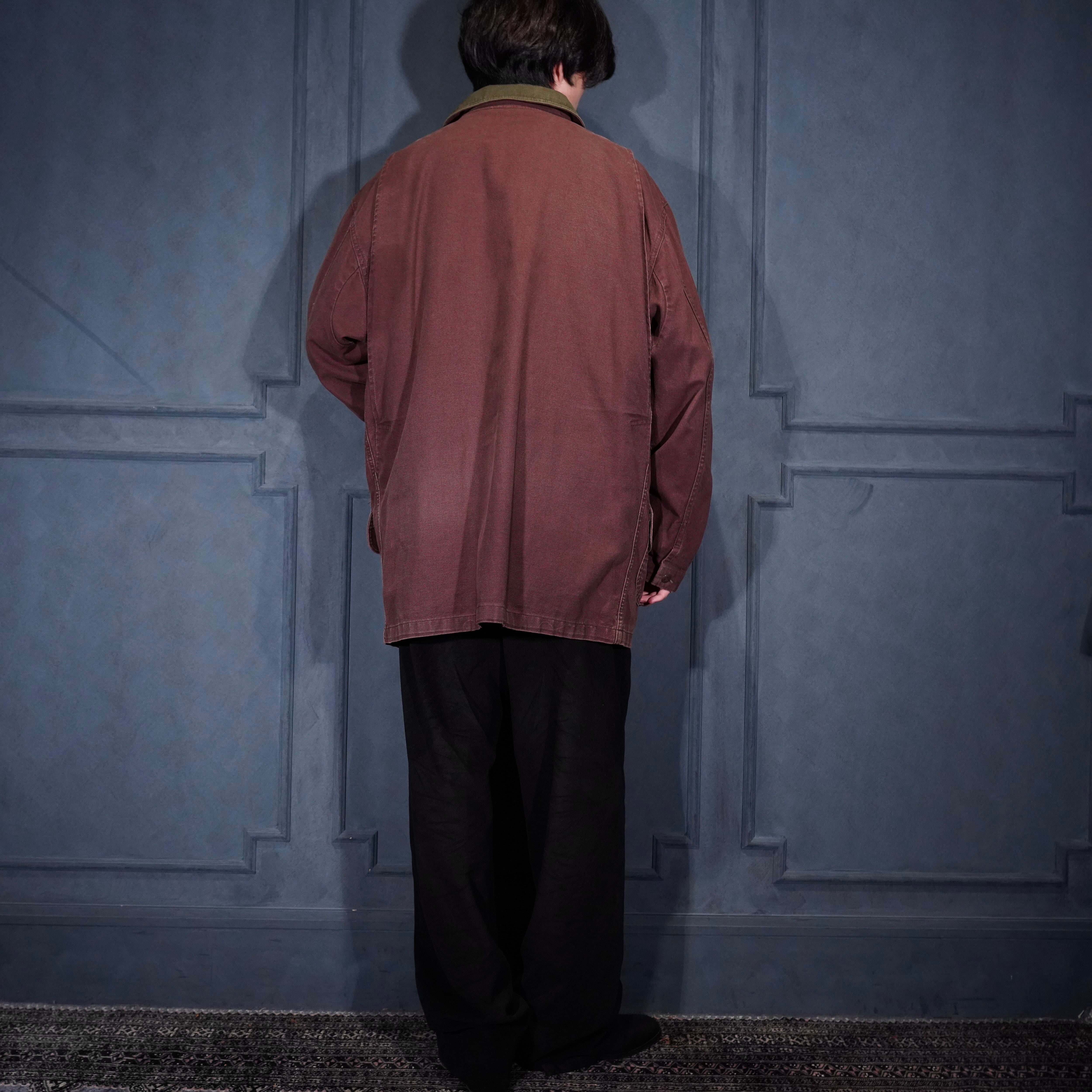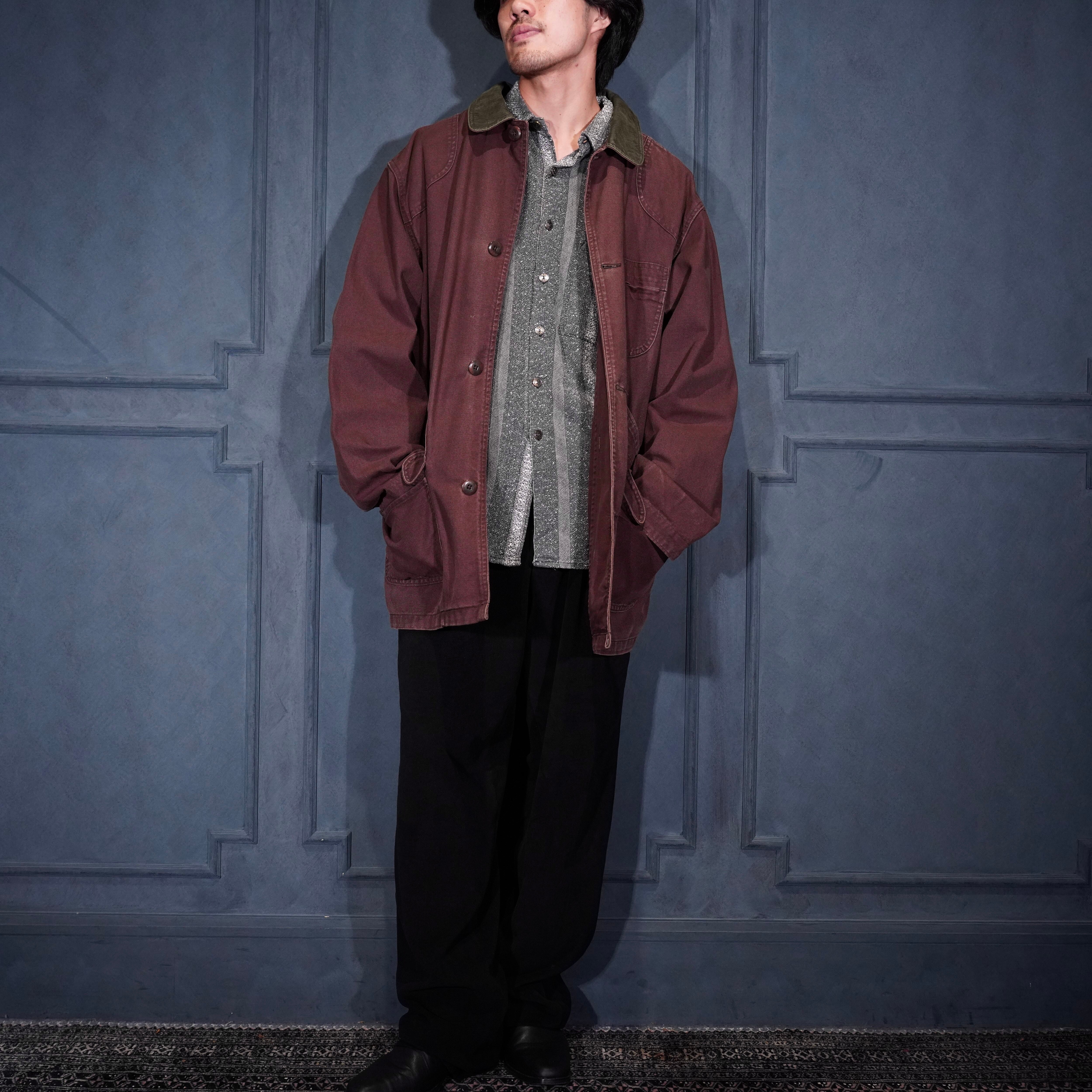 80’s USA VINTAGE LL Bean CORDULOY COLLAR DESIGN DUCK COVERALL JACKET MADE IN USA/80年代アメリカ古着エルエルビーンコーデュロイ襟デザインダックカバーオールジャケット
