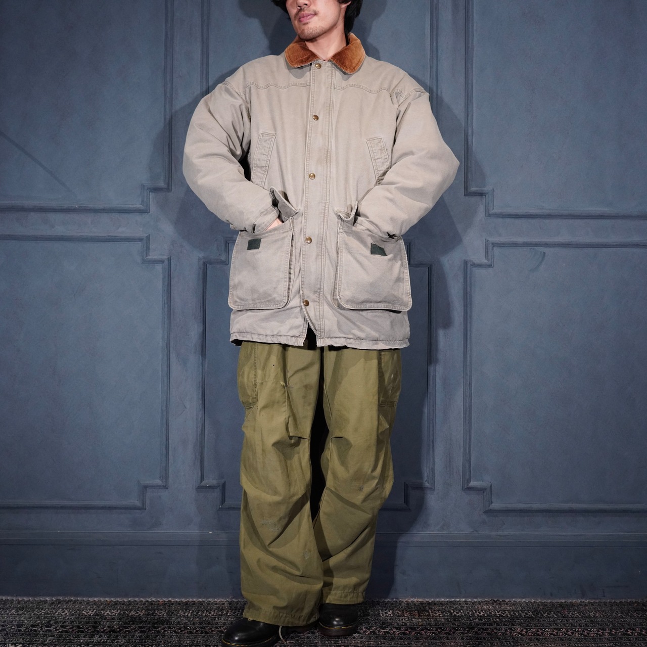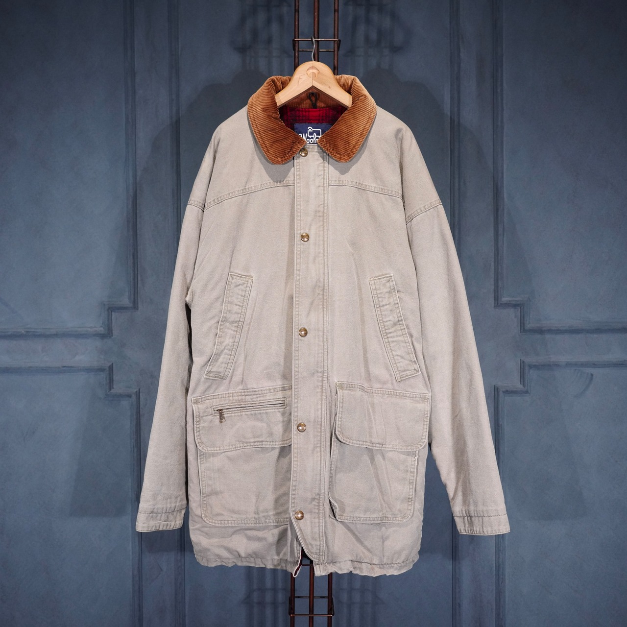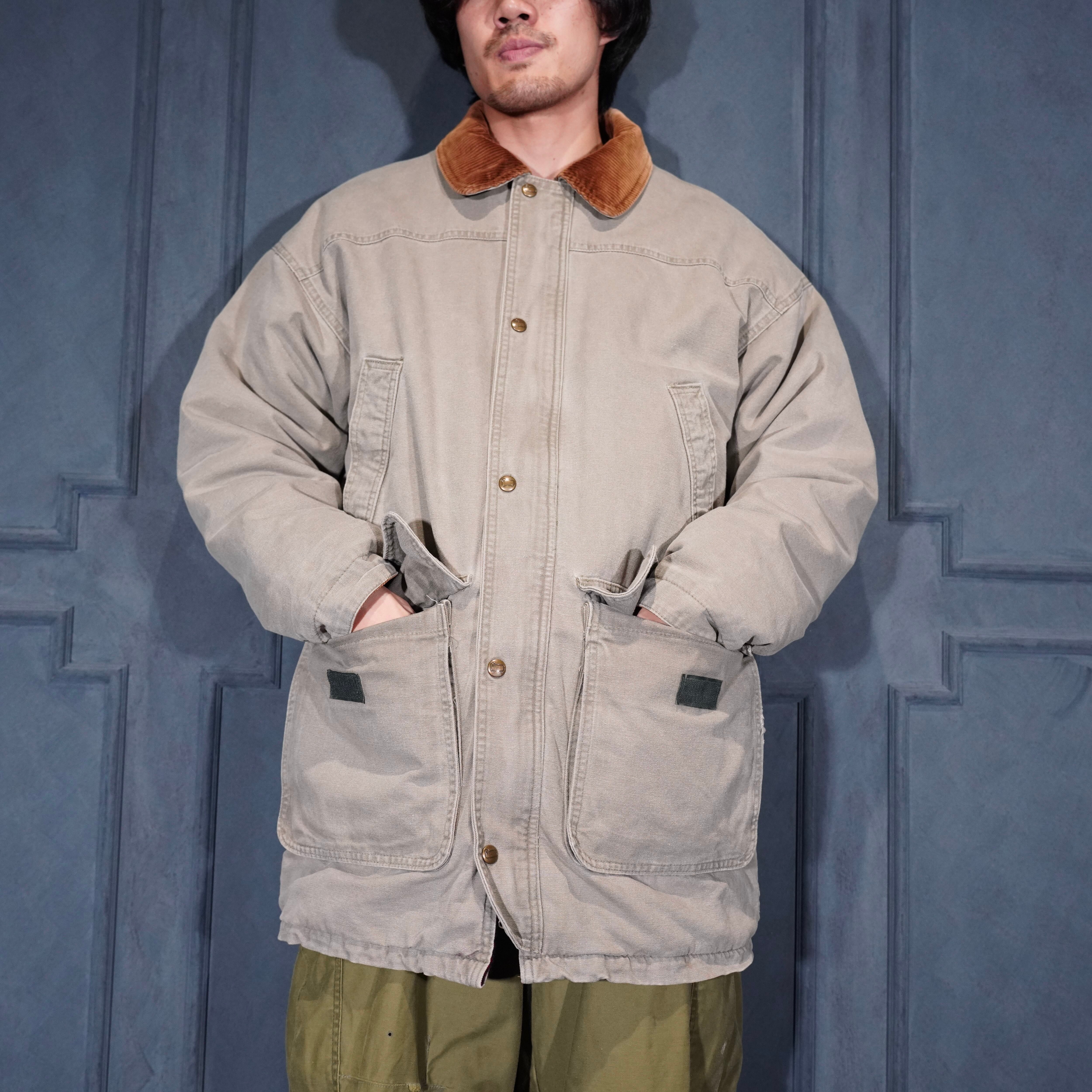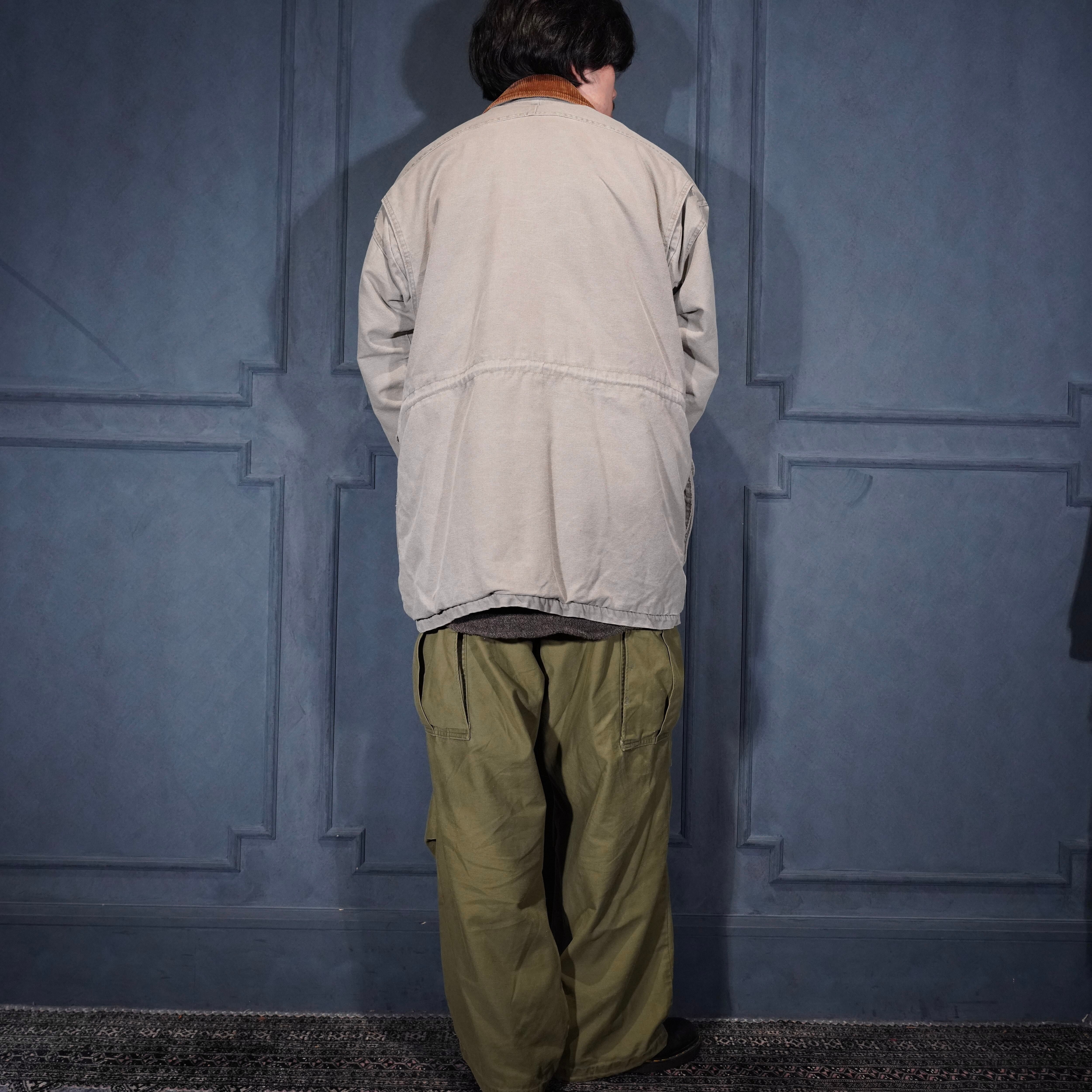 80’s USA VINTAGE Woolrich CORDULOY COLLAR DESIGN COTTON COVERALL JACKET/80年代アメリカ古着ウールリッチコーデュロイ襟デザインコットンカバーオールジャケット