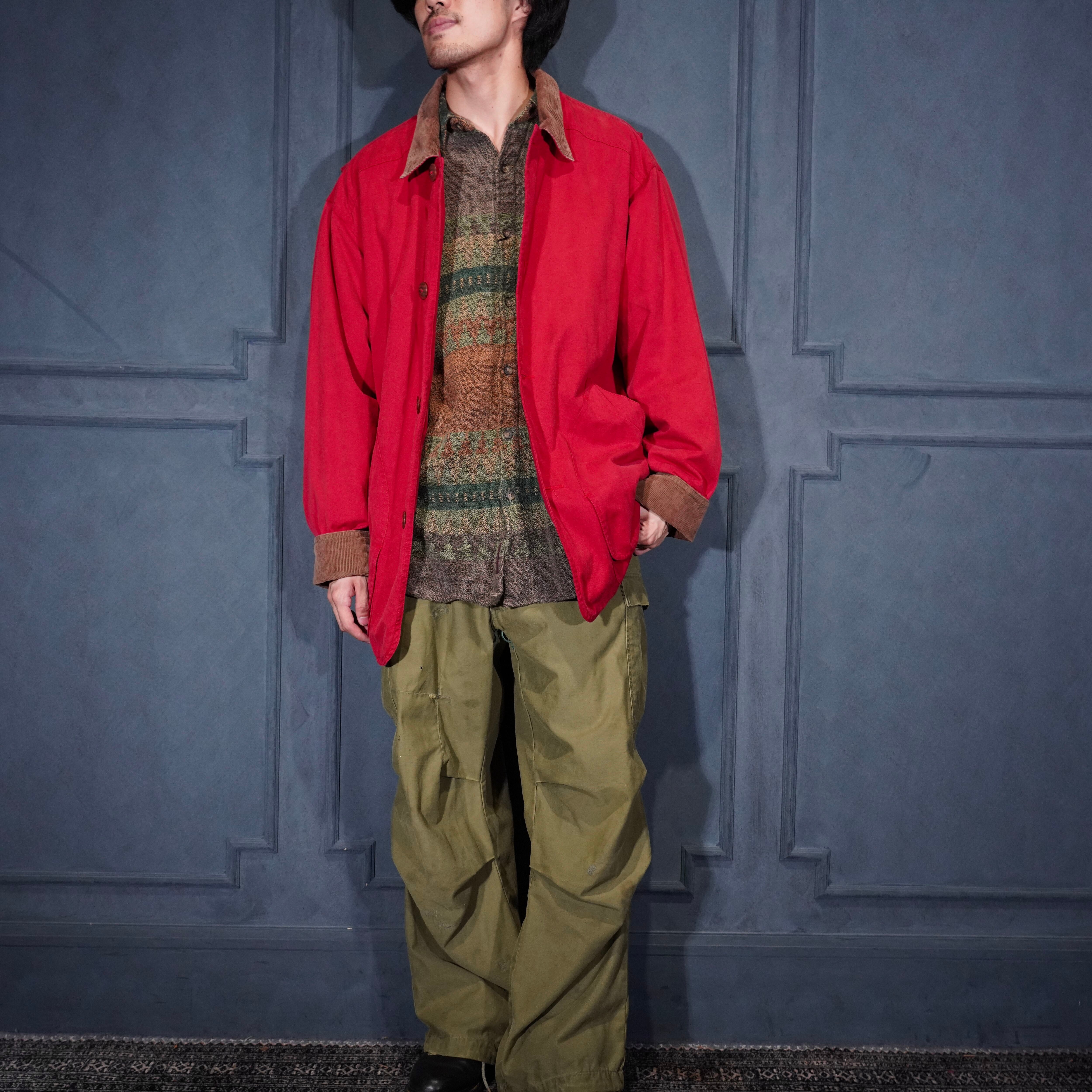 USA VINTAGE DASH CORDULOY COLLAR DESIGN COTTON COVERALL JACKET/アメリカ古着コーデュロイ襟デザインコットンカバーオールジャケット