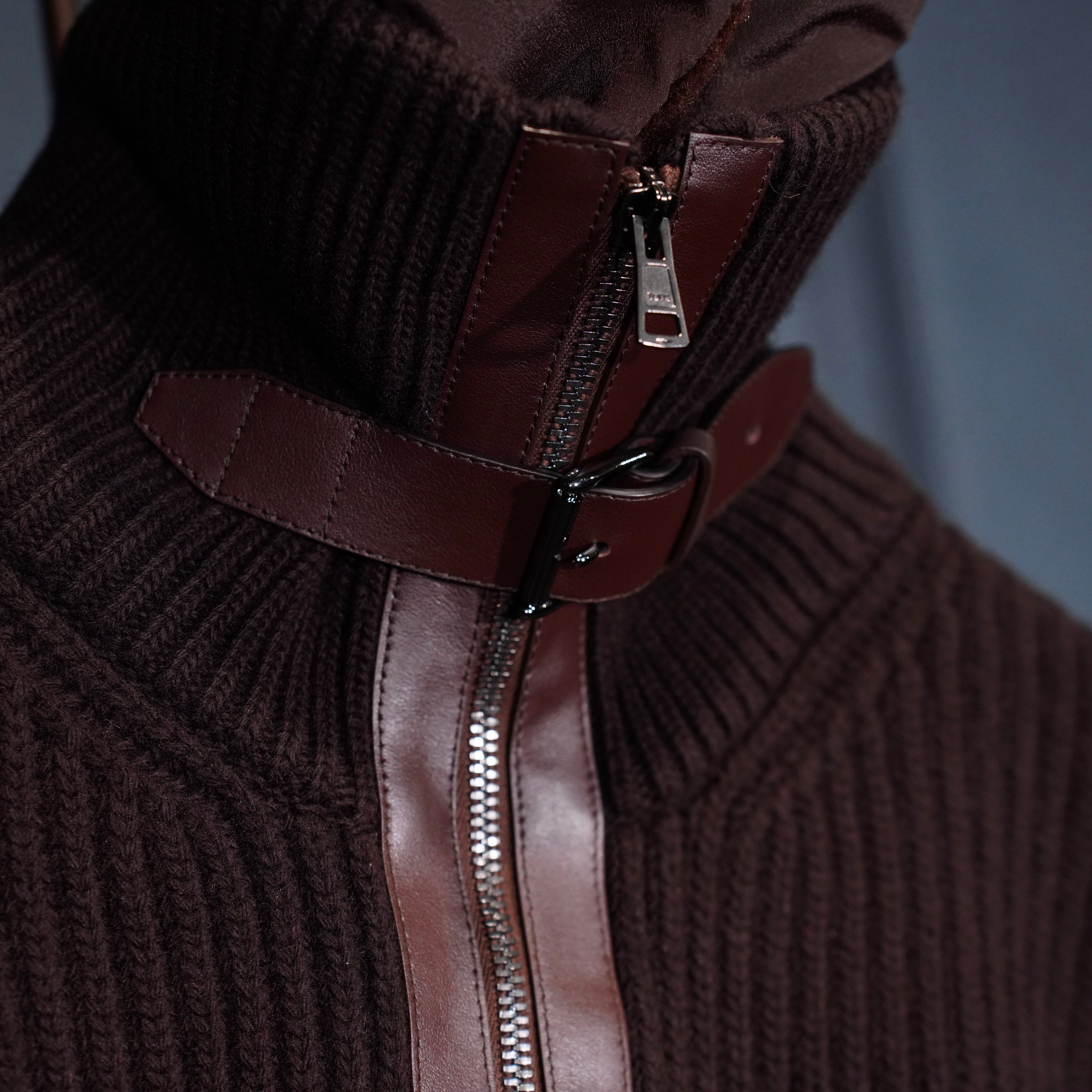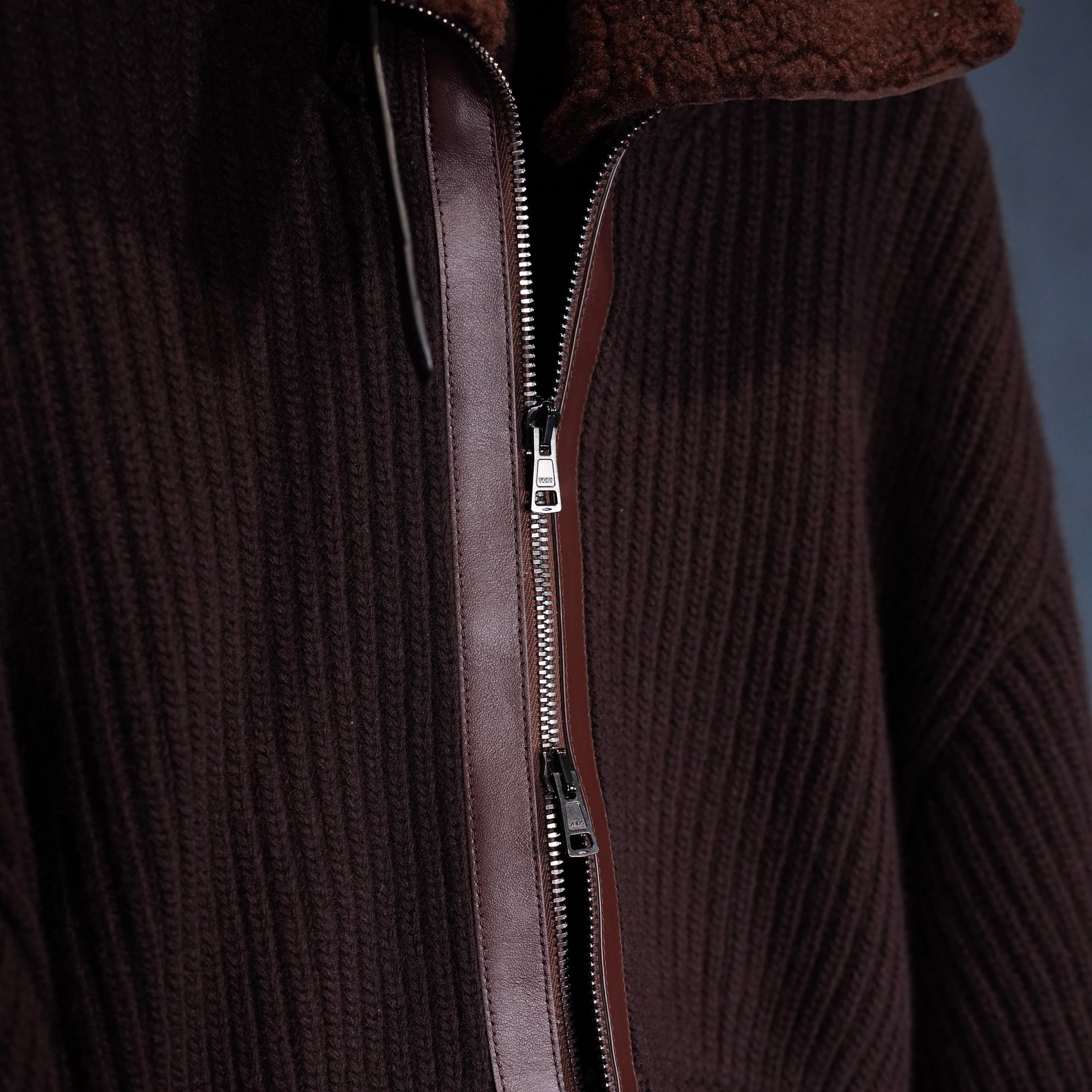 .23AW TOD'S LEATHER SWITCHED WOOL BOA ZIP UP CARDIGAN BLOUSON/23年秋冬モデルトッズレザー切替ウールボアジップアップカーディガンブルゾン(定価¥256300) 2000000074252