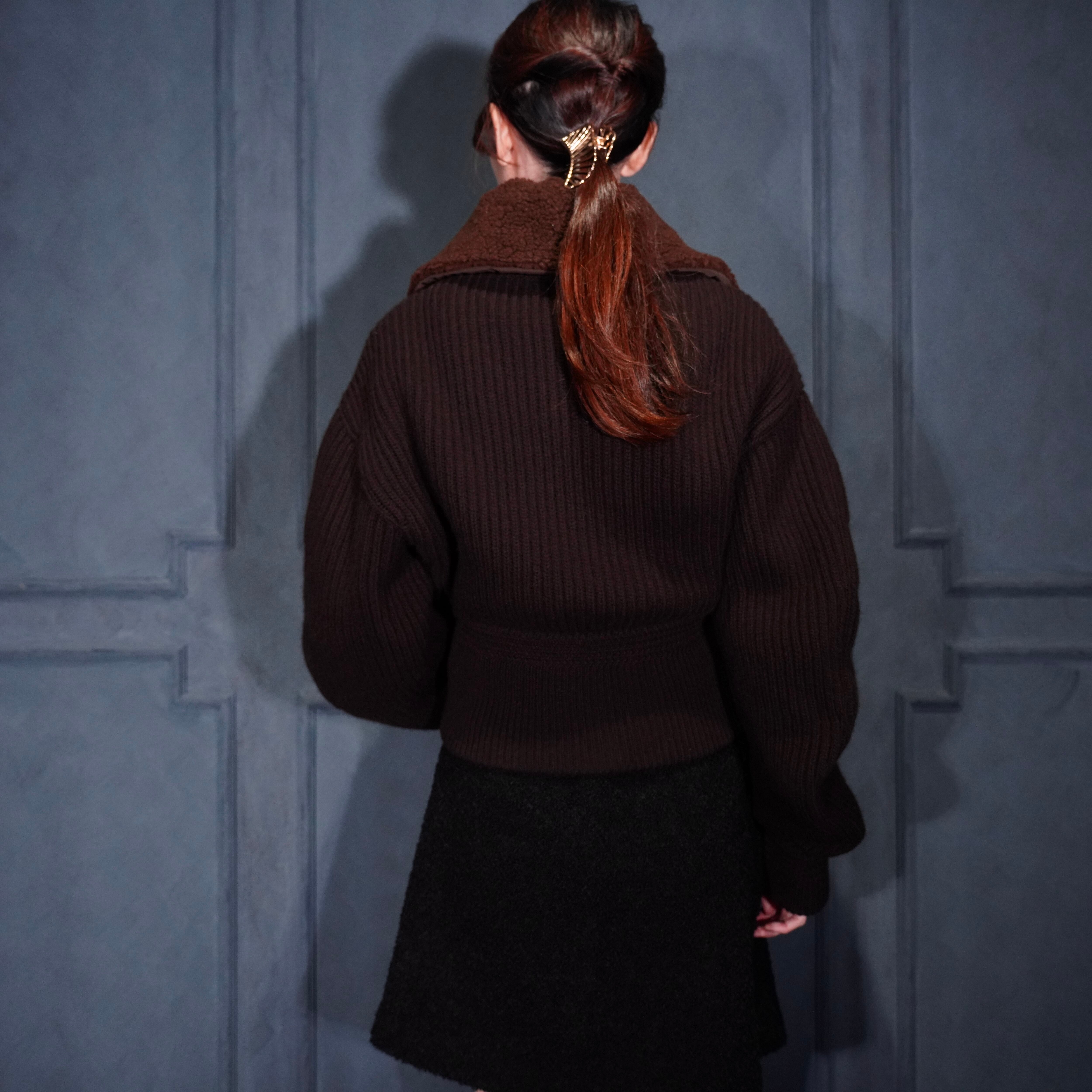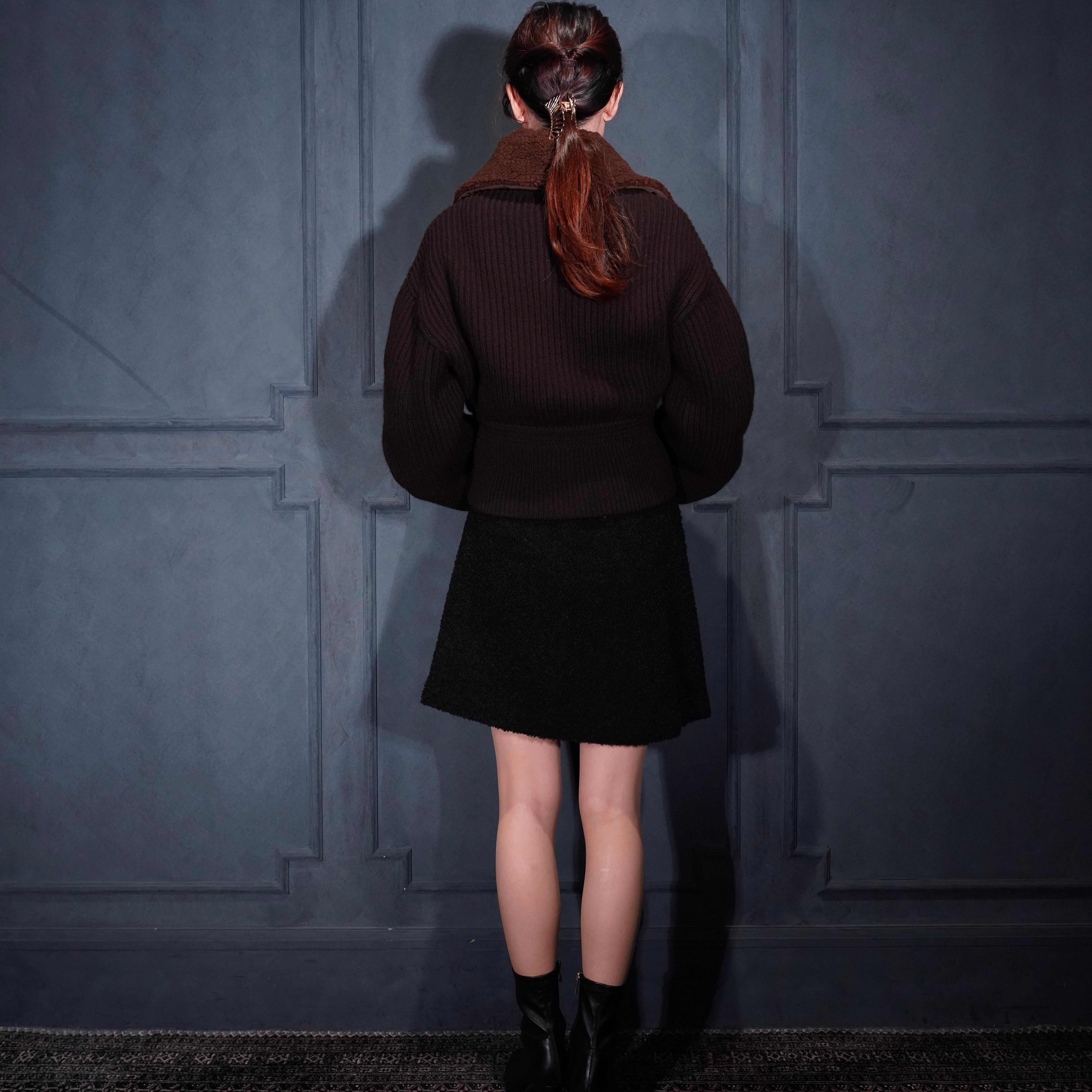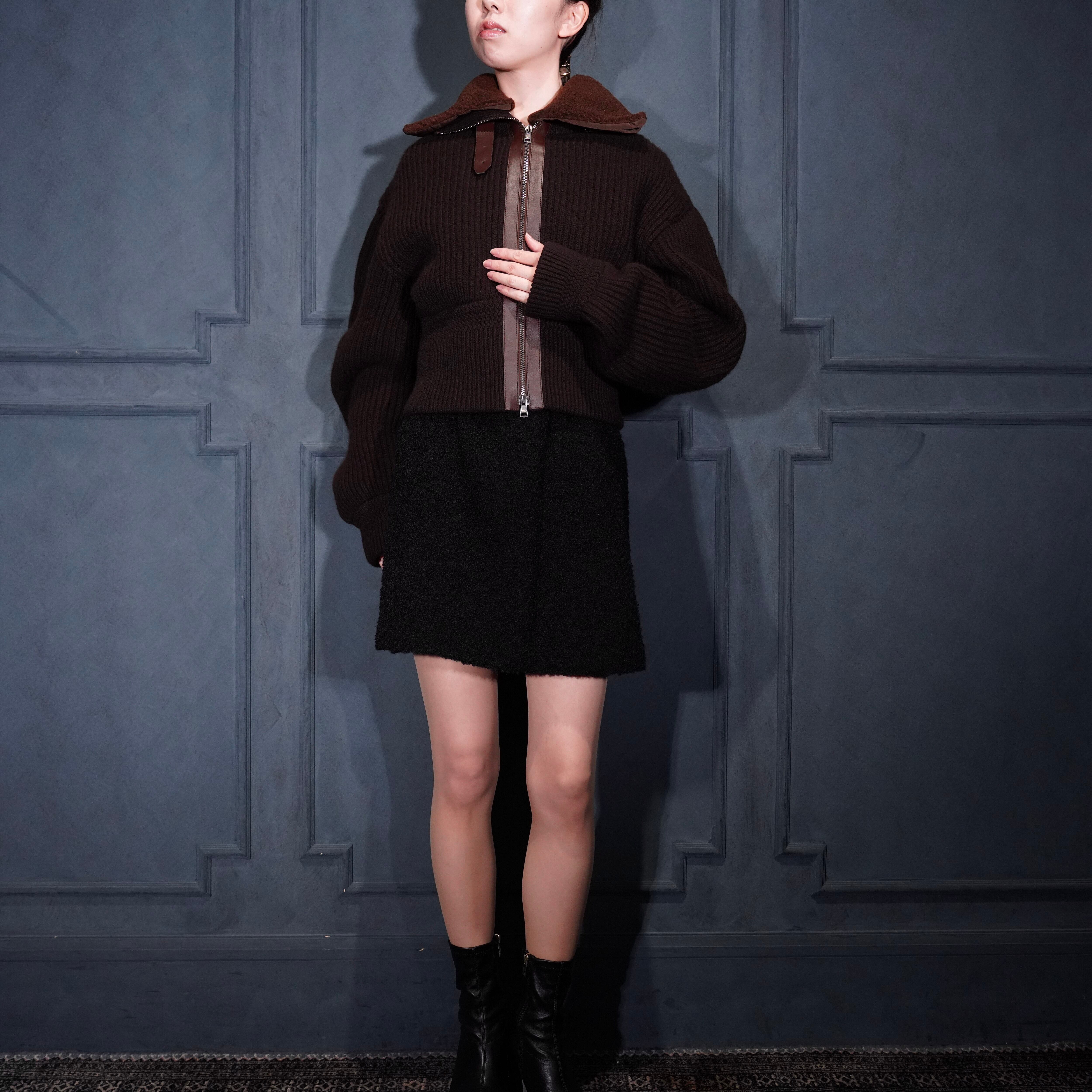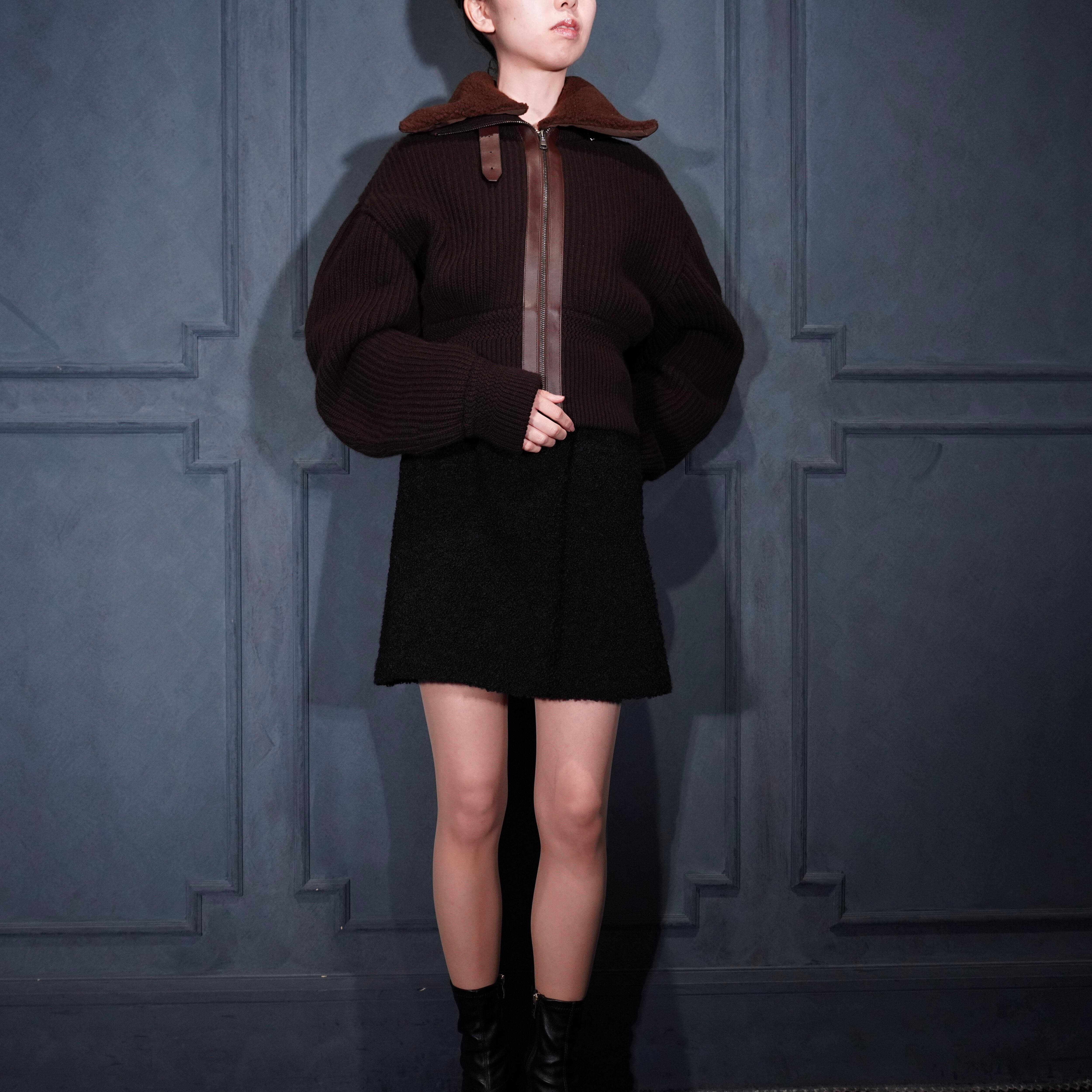 23AW TOD'S LEATHER SWITCHED WOOL BOA ZIP UP CARDIGAN BLOUSON/23年秋冬モデルトッズレザー切替ウールボアジップアップカーディガンブルゾン(定価¥256300)