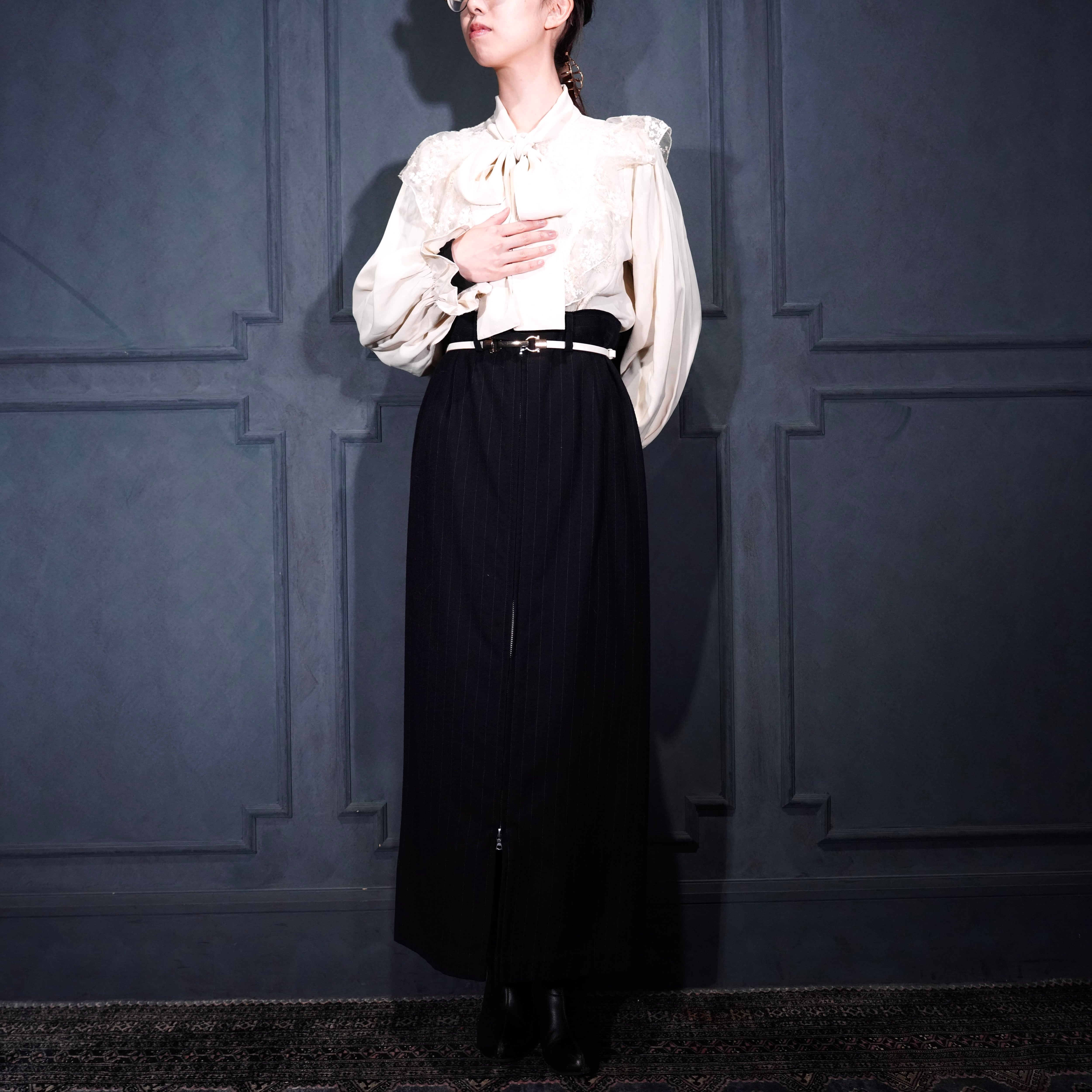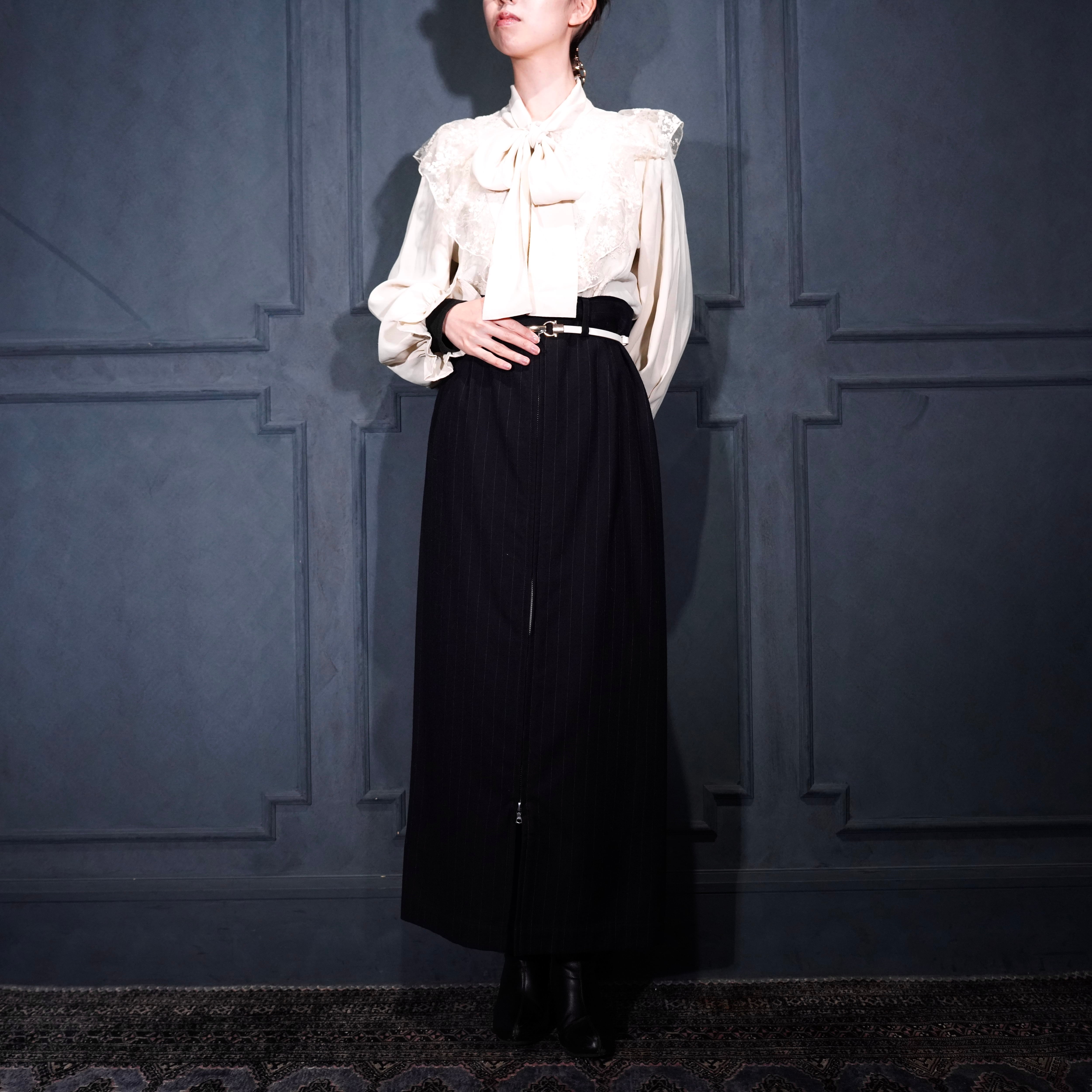 Y's YOHJIYAMAMOTO STRIPE PATTERNED WOOL LONG SKIRT/ワイズヨウジヤマモトストライプ柄ウールロングスカート