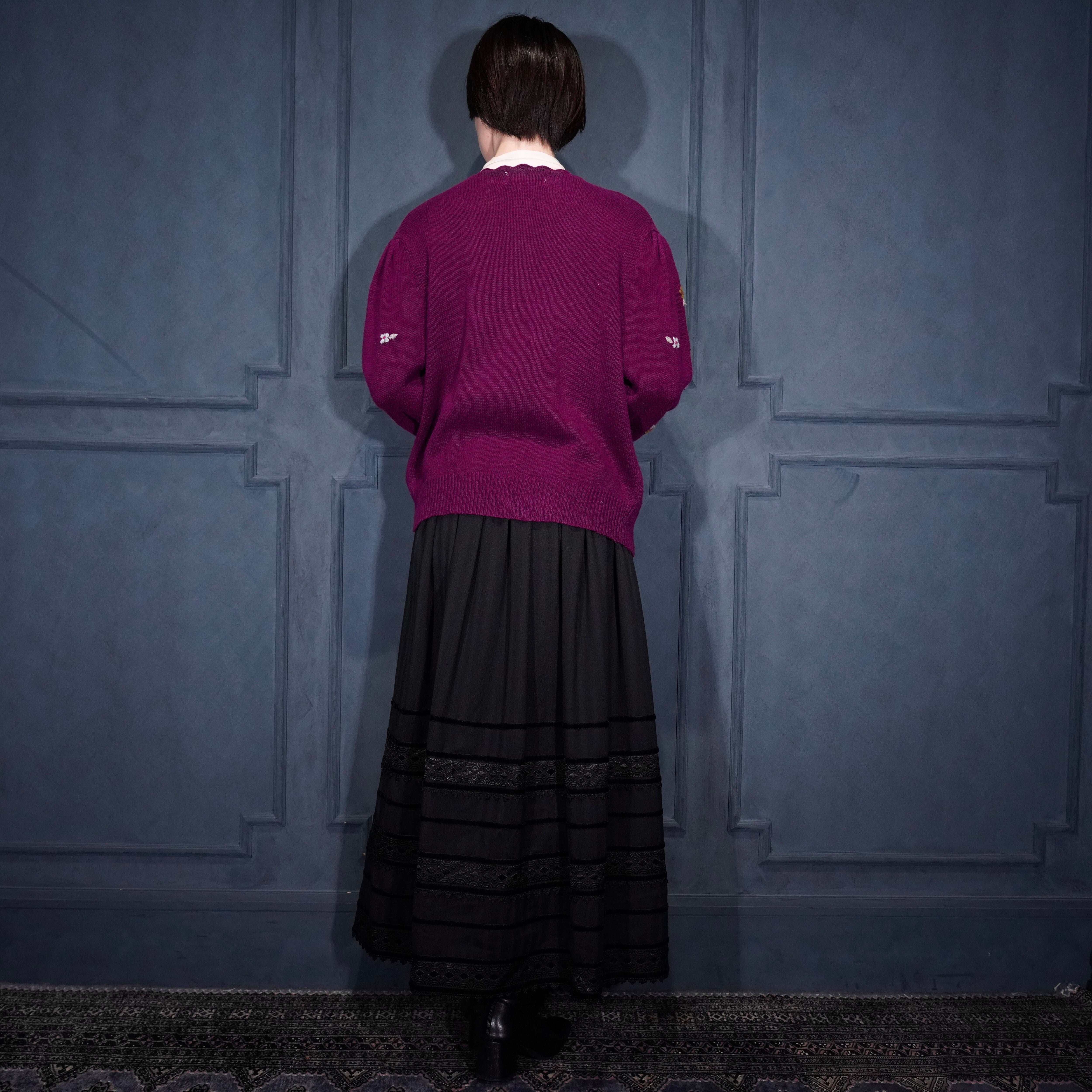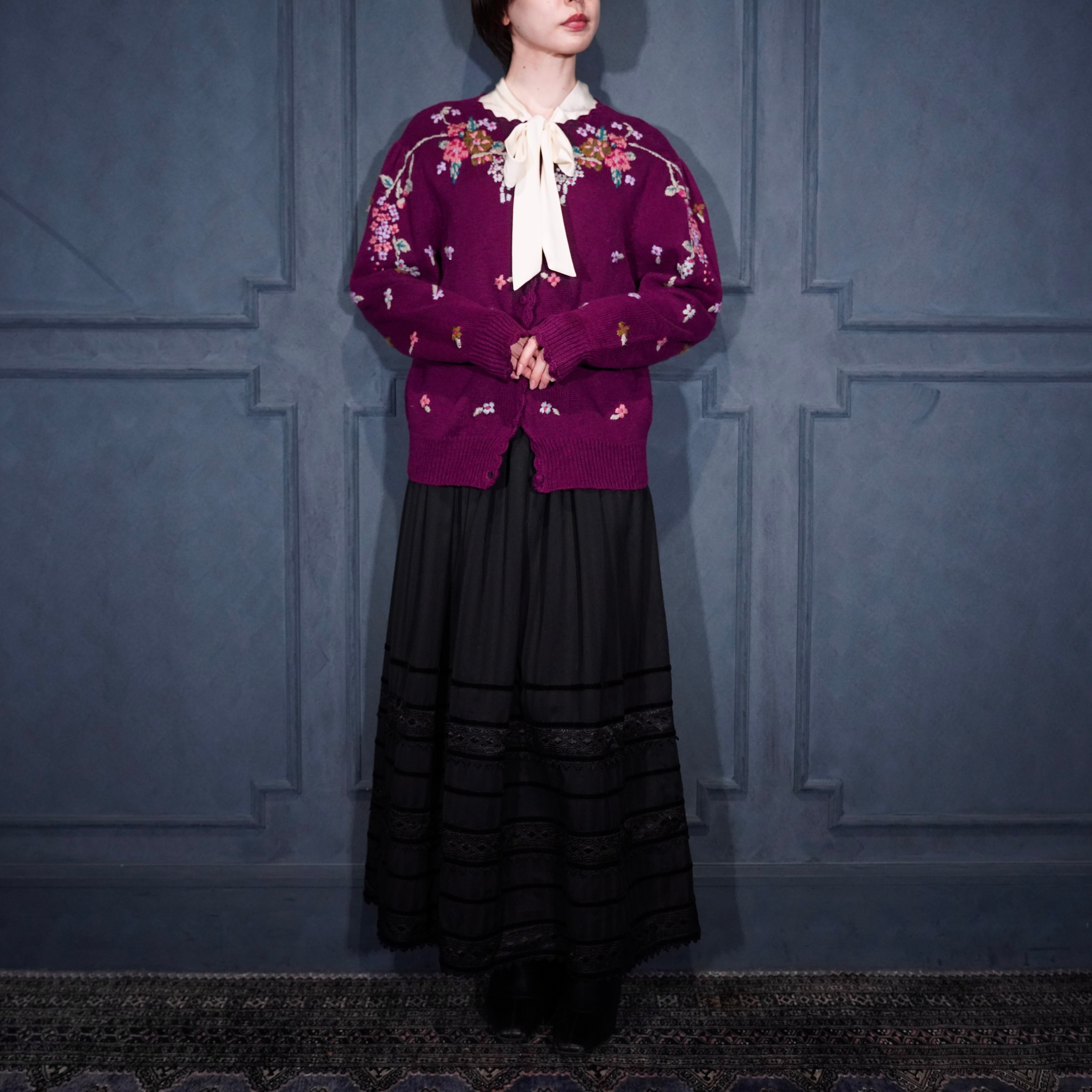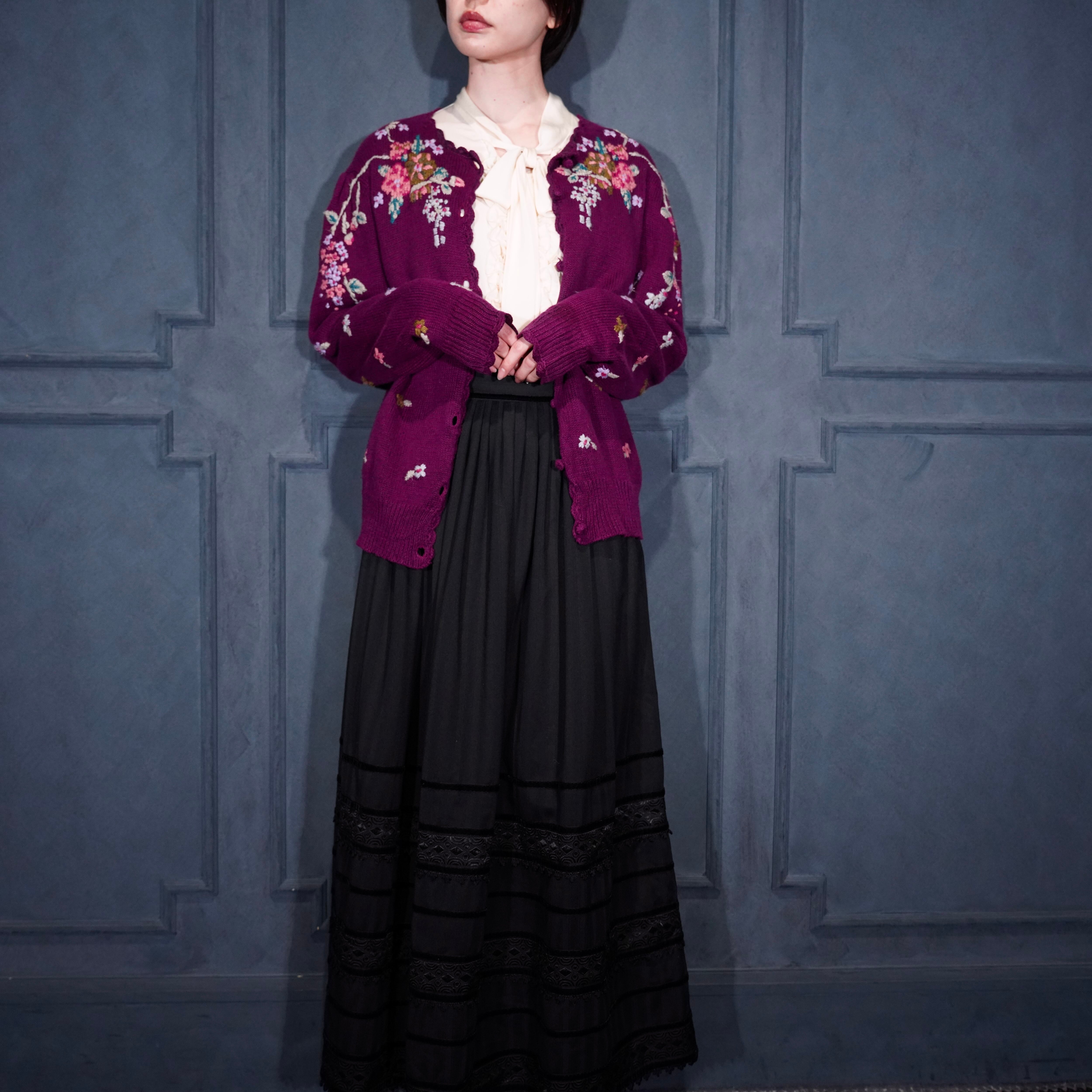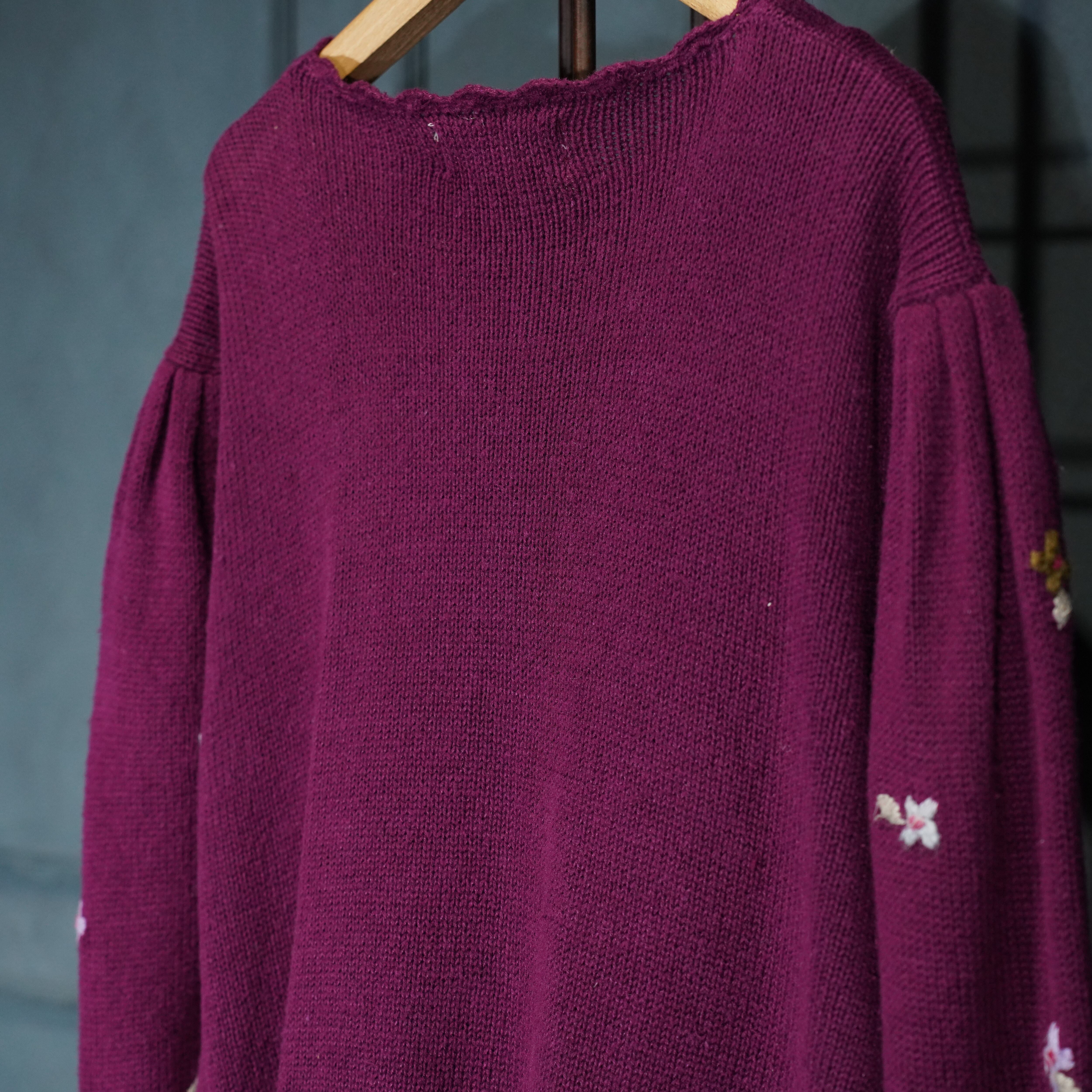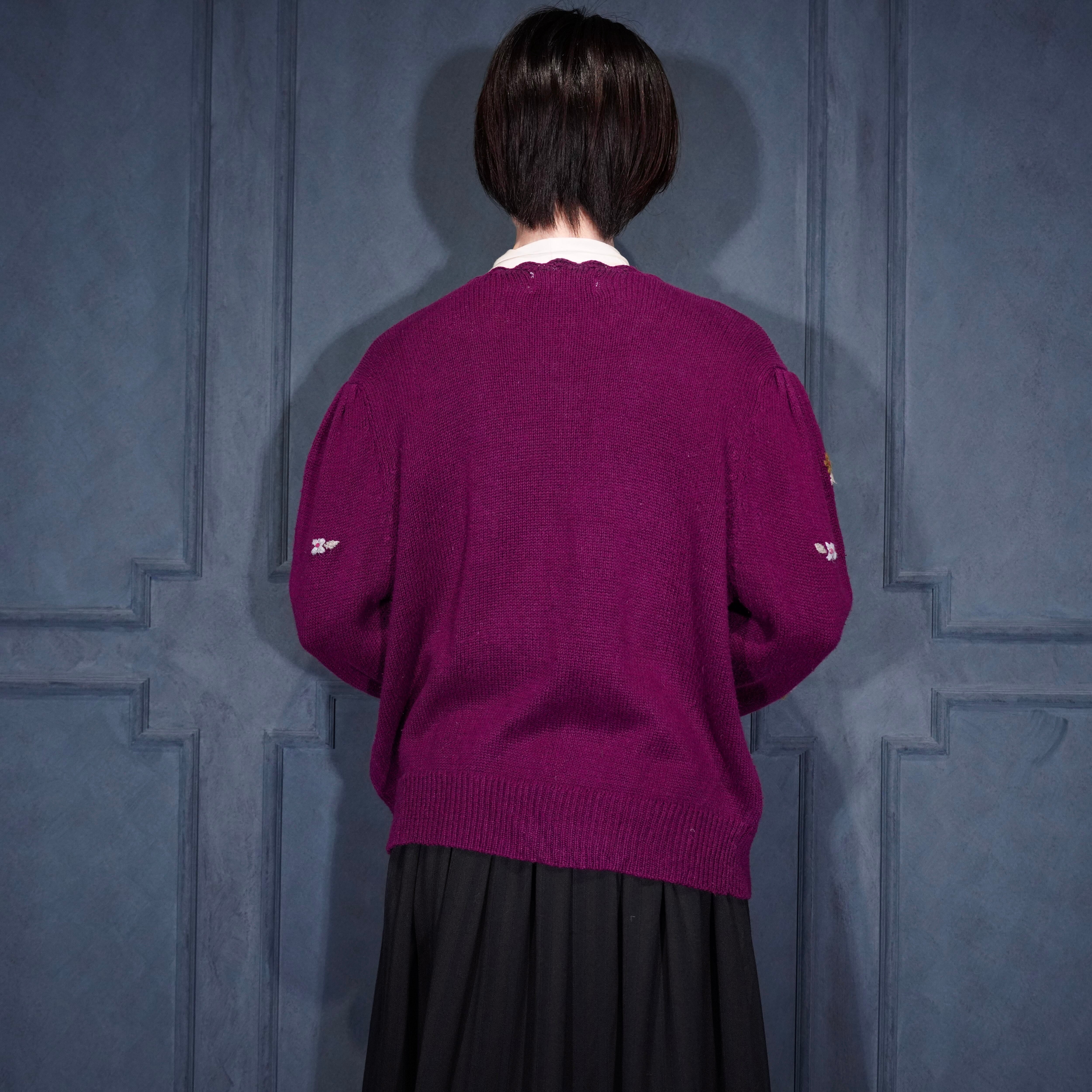 USA VINTAGE Petite iLLUStRAtions FLOWER EMBROIDERY SCALLOPED DESIGN COTTON RAMIE KNIT CARDIGAN/アメリカ古着お花刺繍スカラップデザインコットンラミーニットカーディガン