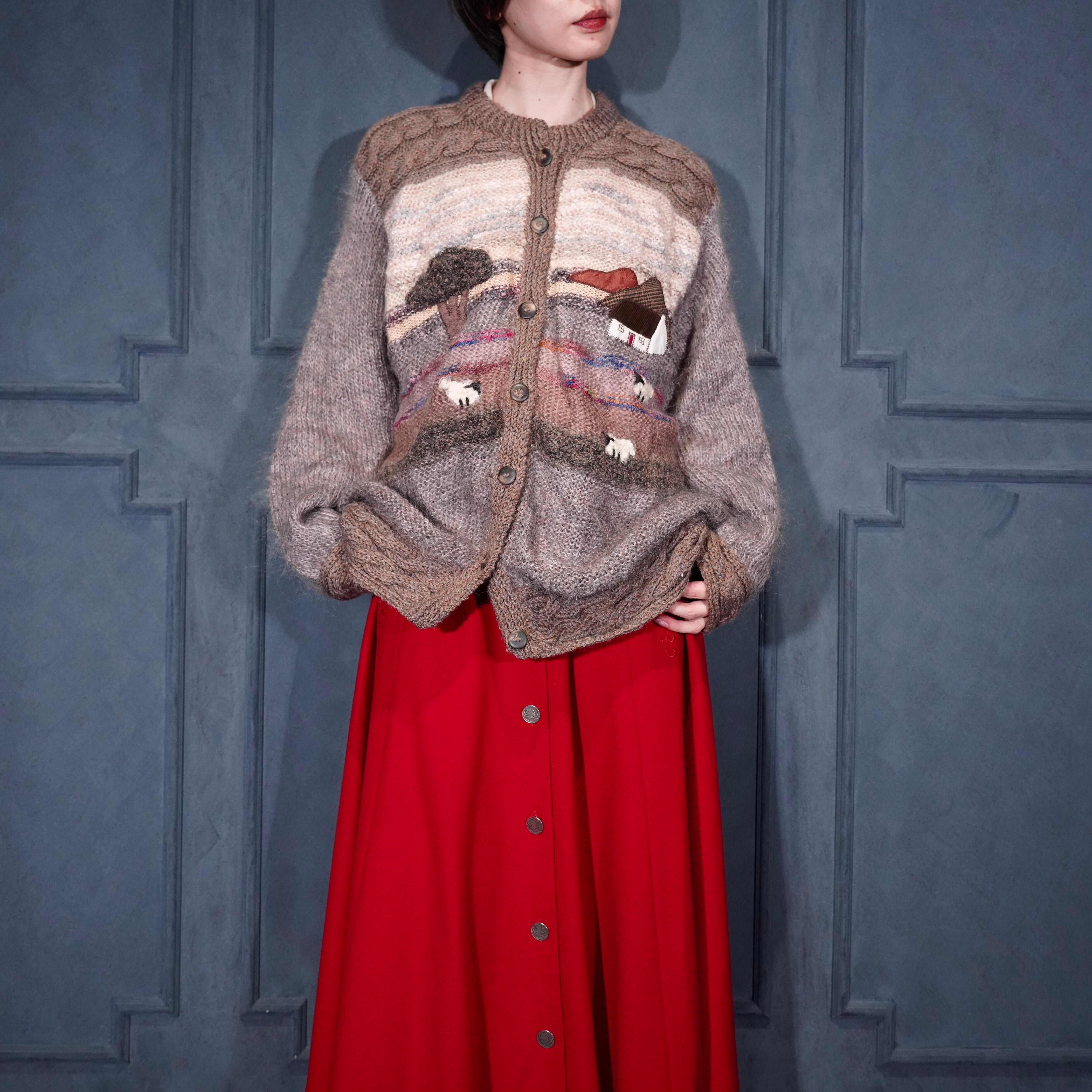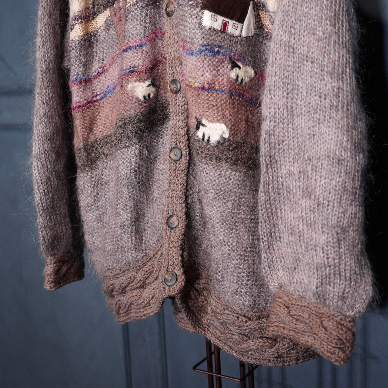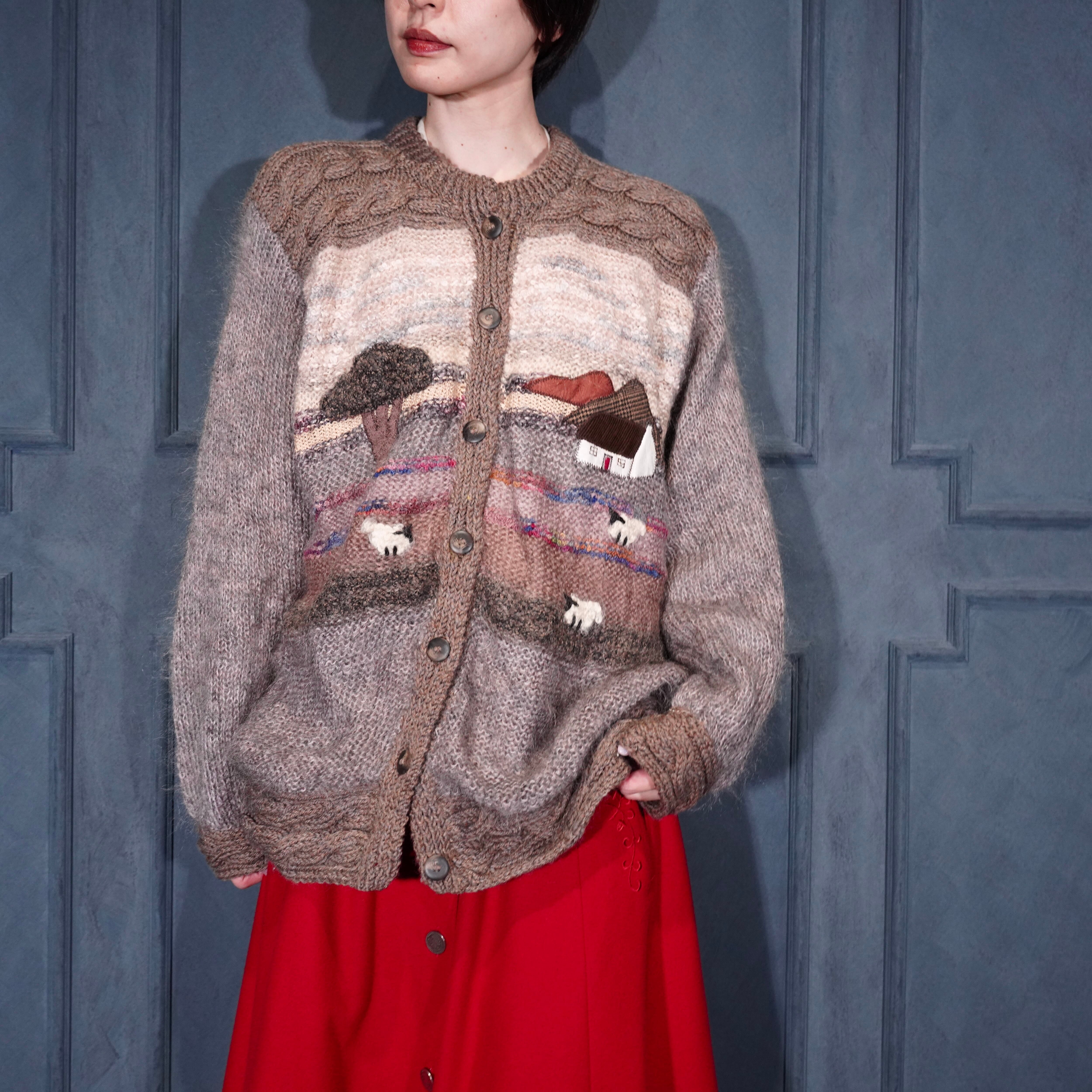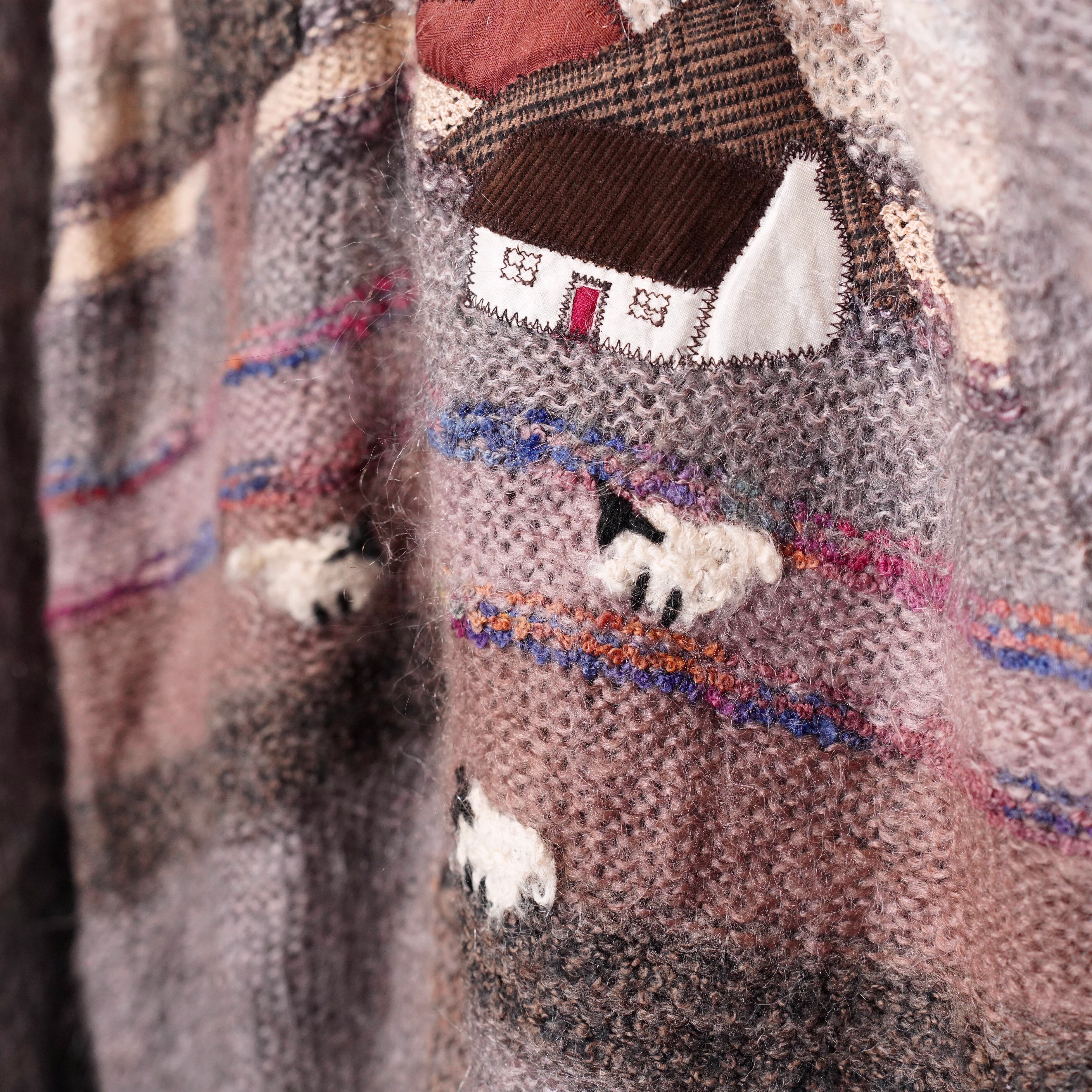 EU VINTAGE rosemarie b ANIMAL EMBROIDERY PATCHWORK DESIGN MOHAIR KNIT TYROLEAN CARDIGAN/ヨーロッパ古着アニマル刺繍パッチワークデザインモヘアニットチロリアンカーディガン