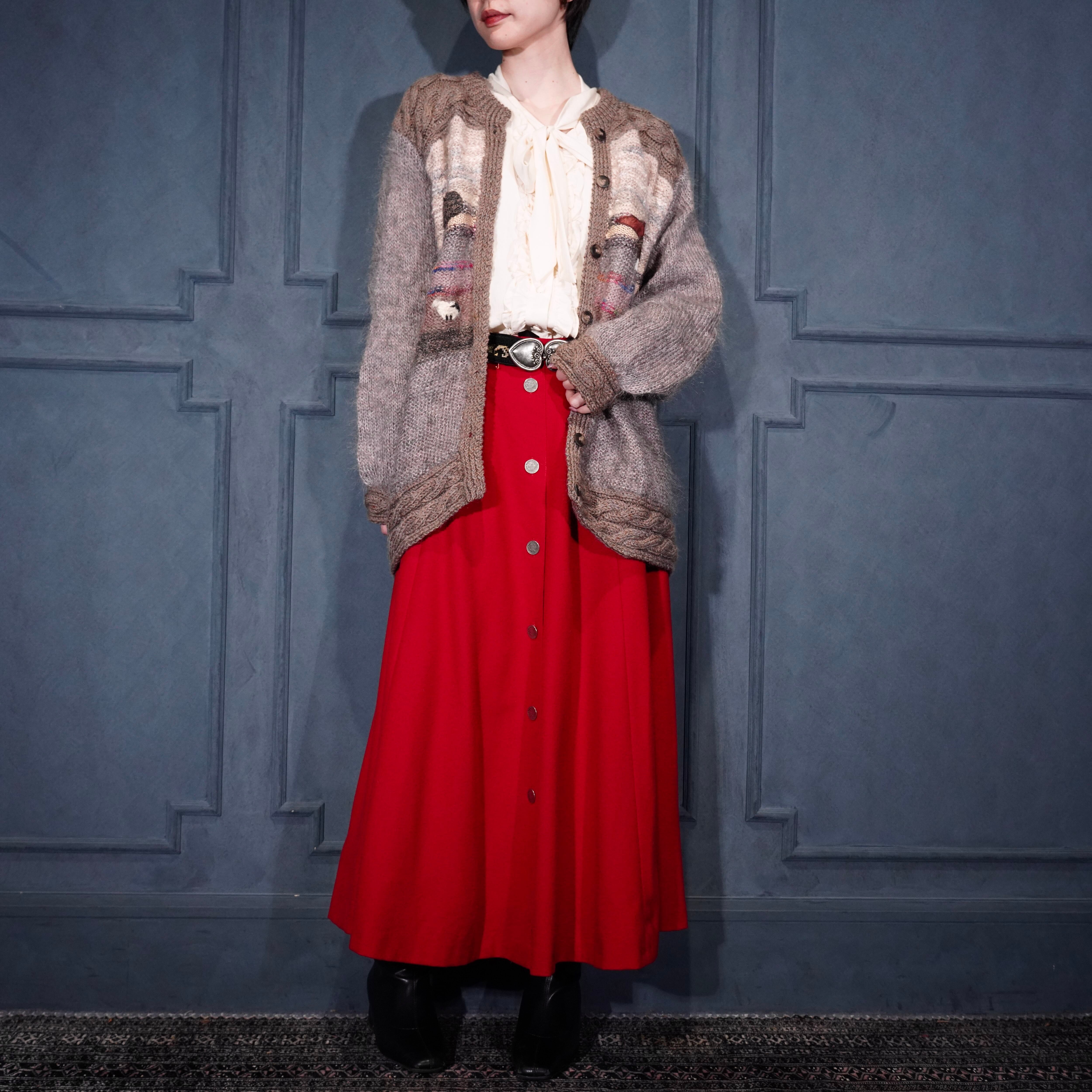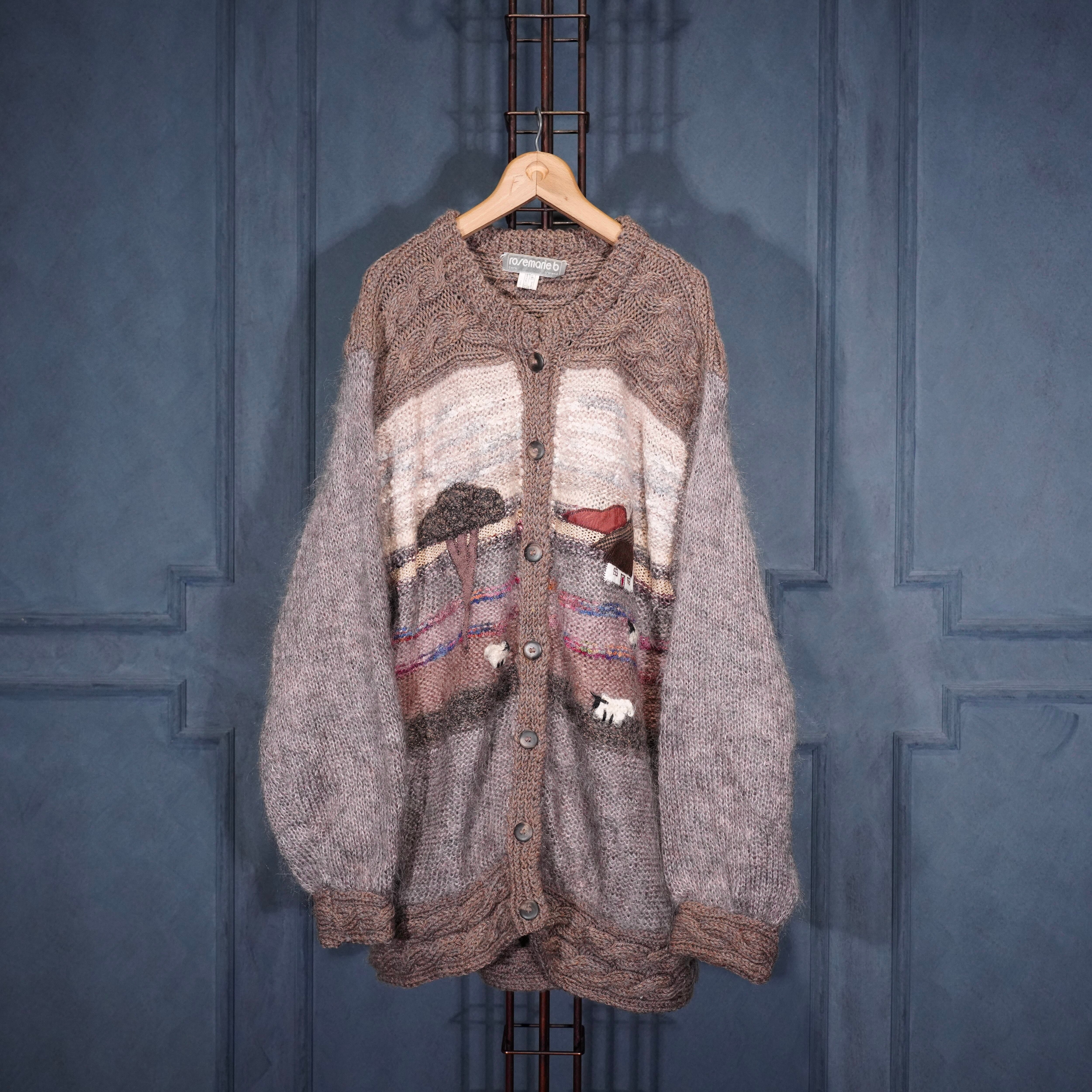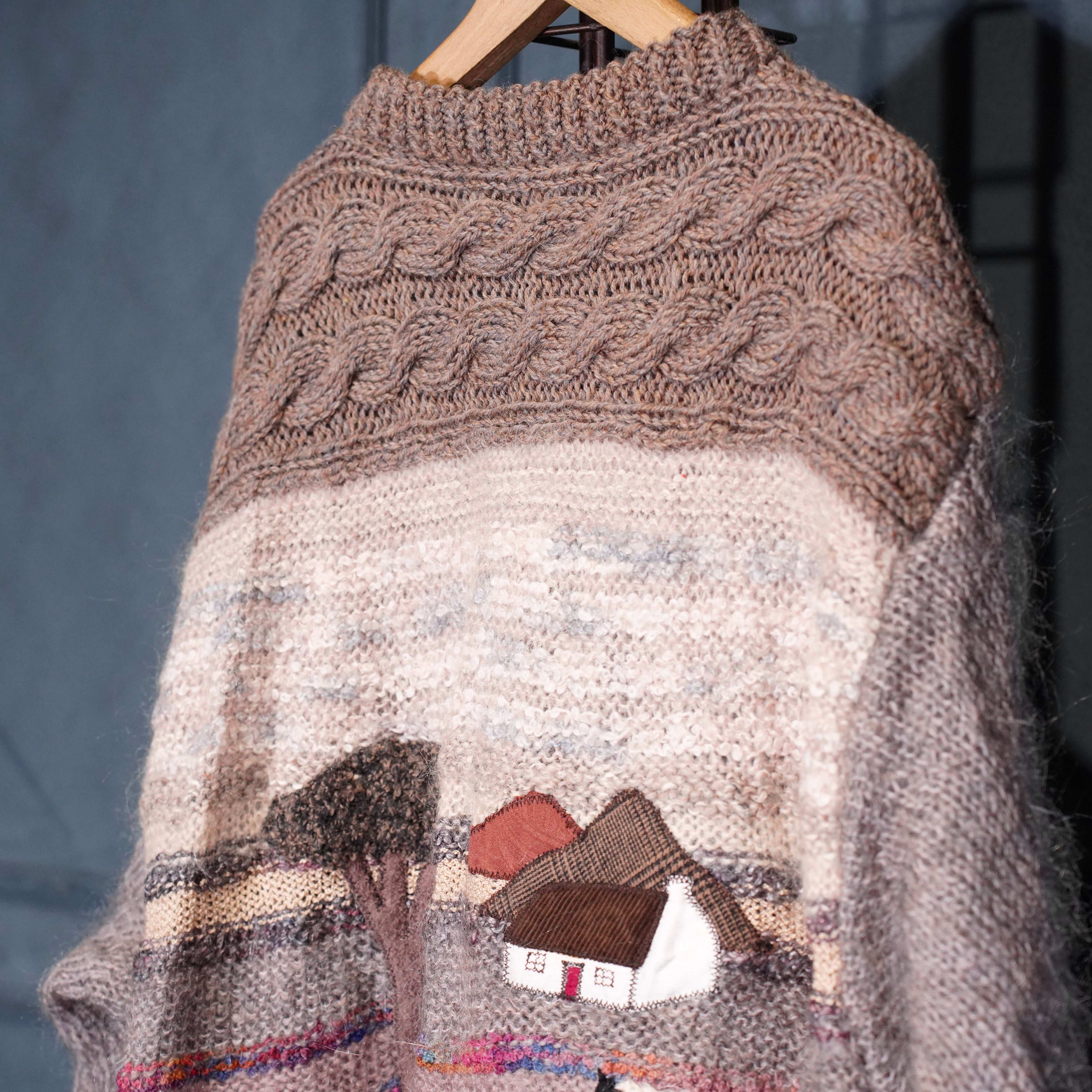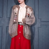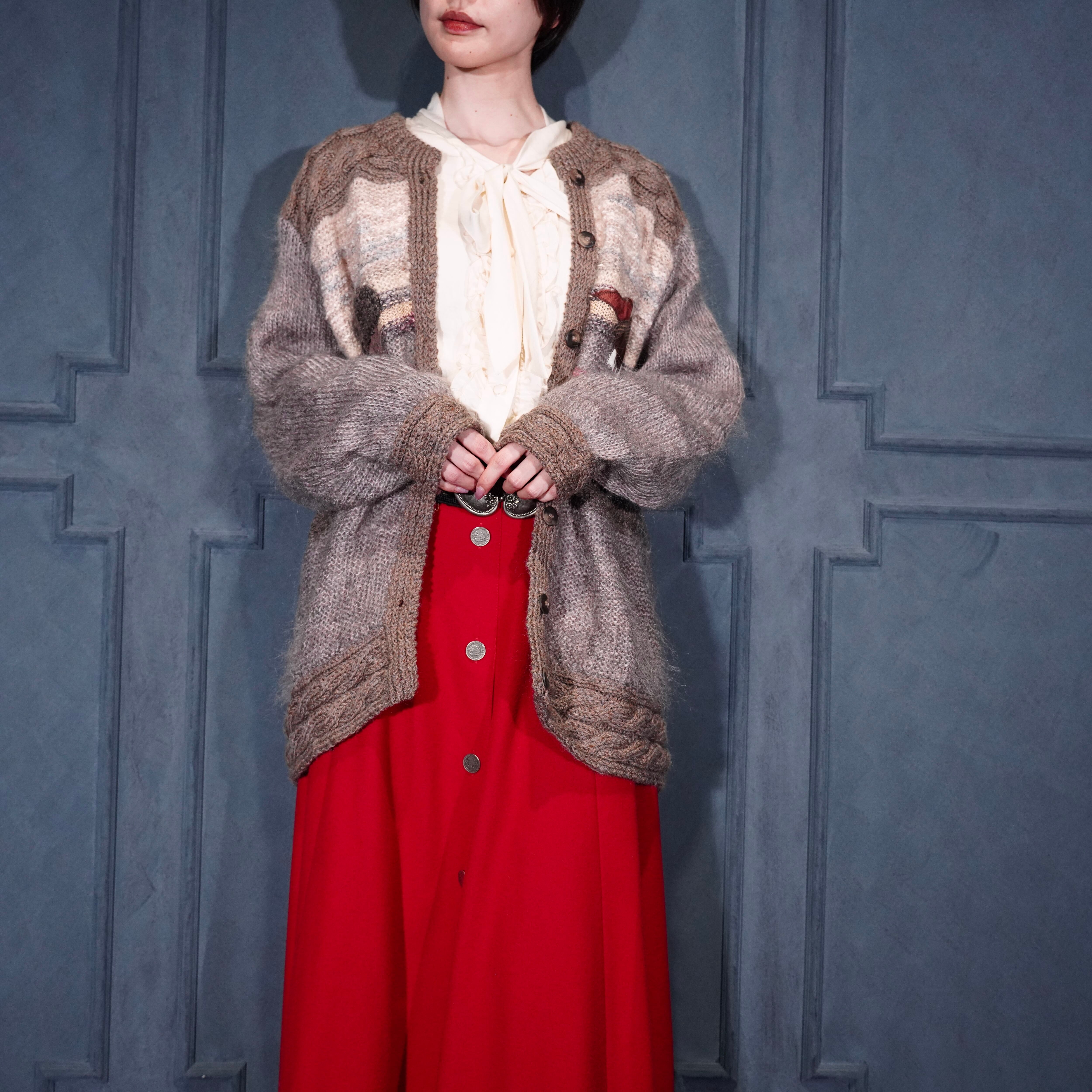 EU VINTAGE rosemarie b ANIMAL EMBROIDERY PATCHWORK DESIGN MOHAIR KNIT TYROLEAN CARDIGAN/ヨーロッパ古着アニマル刺繍パッチワークデザインモヘアニットチロリアンカーディガン