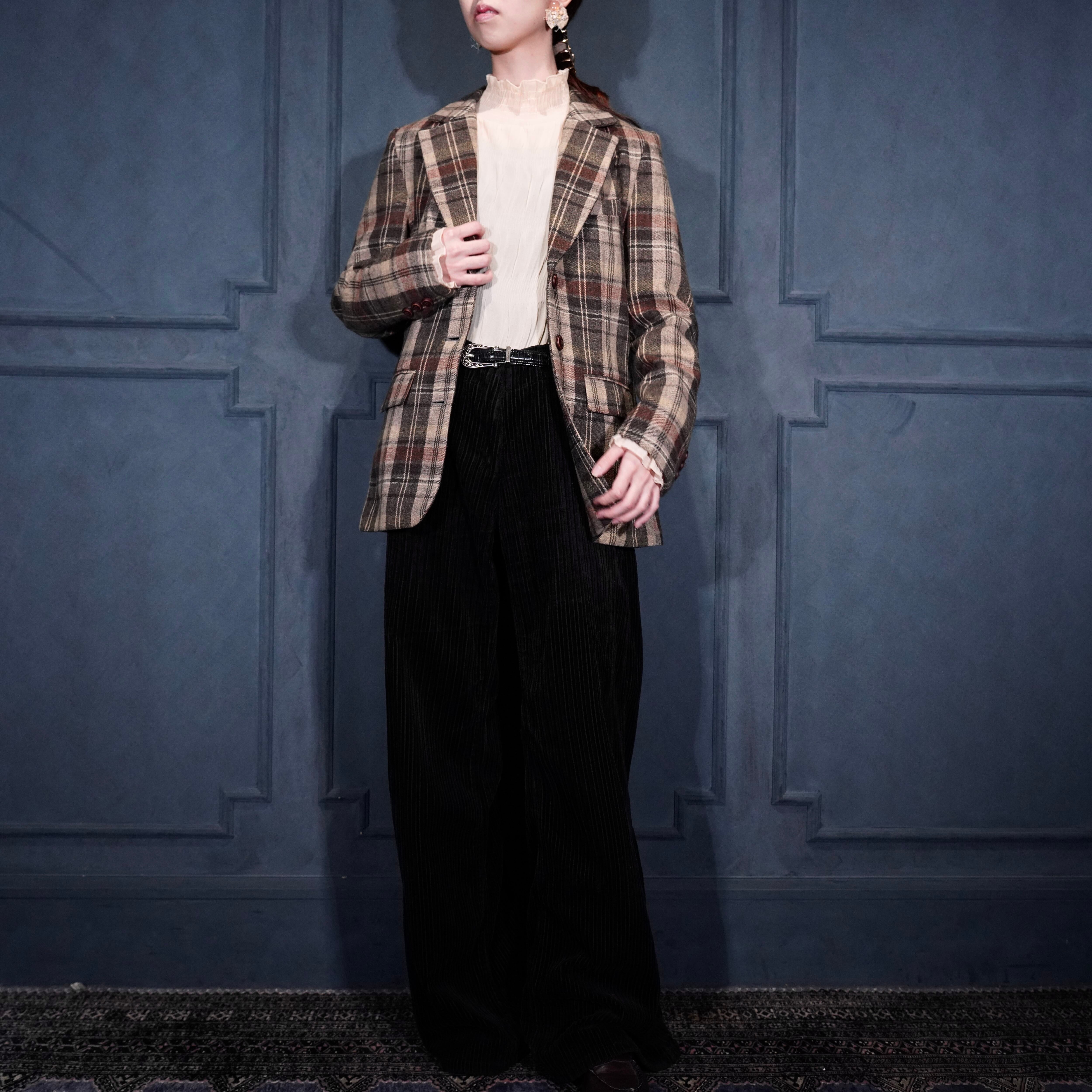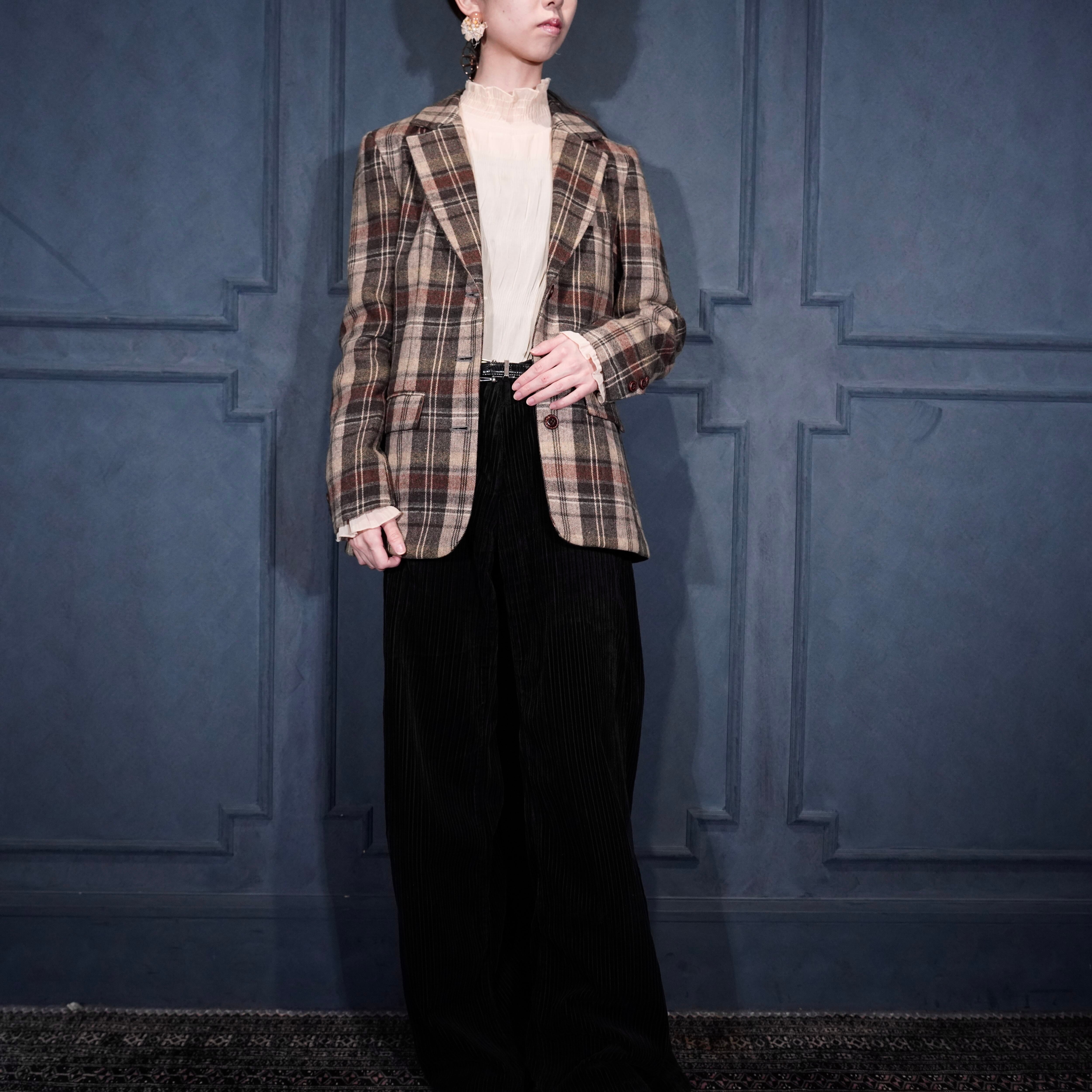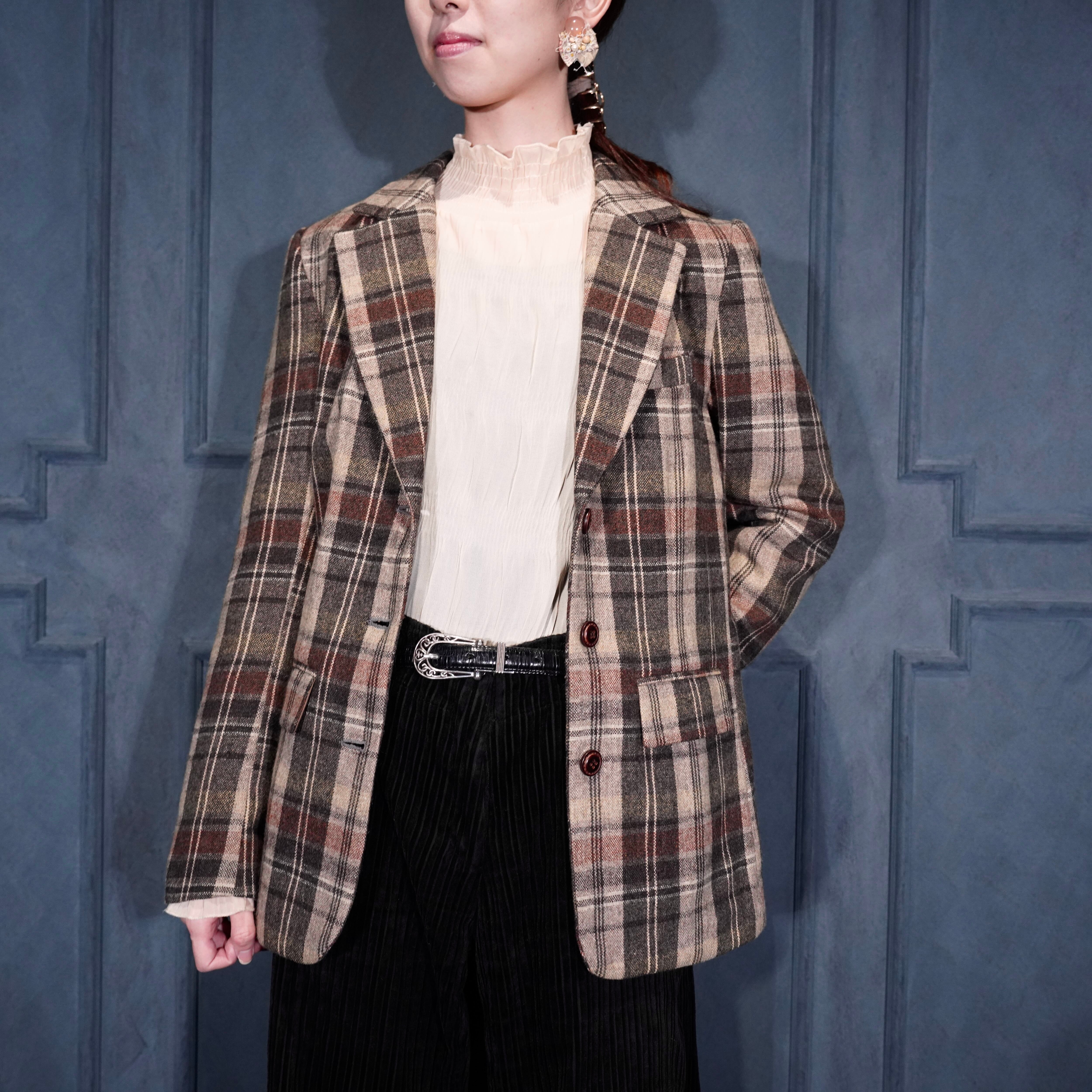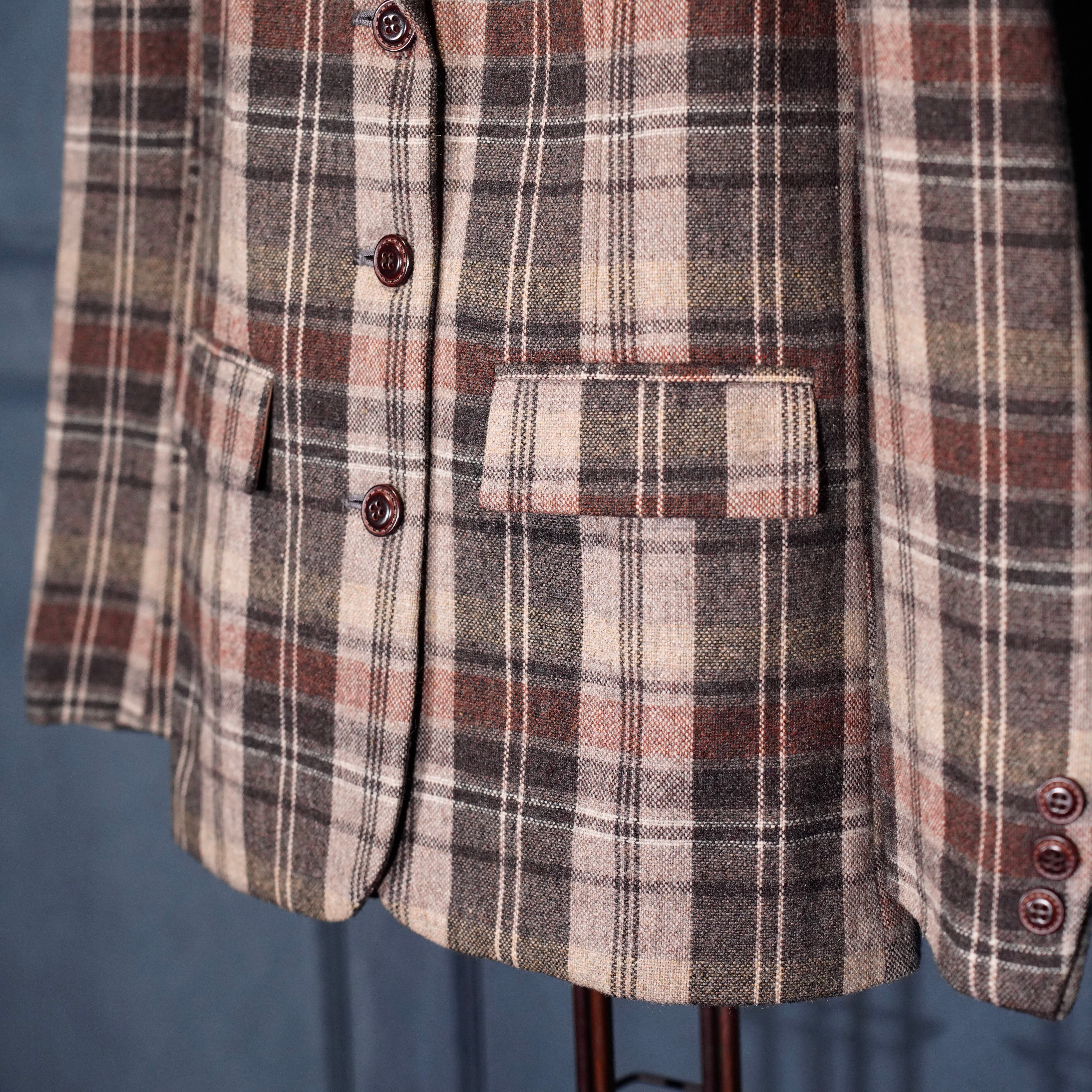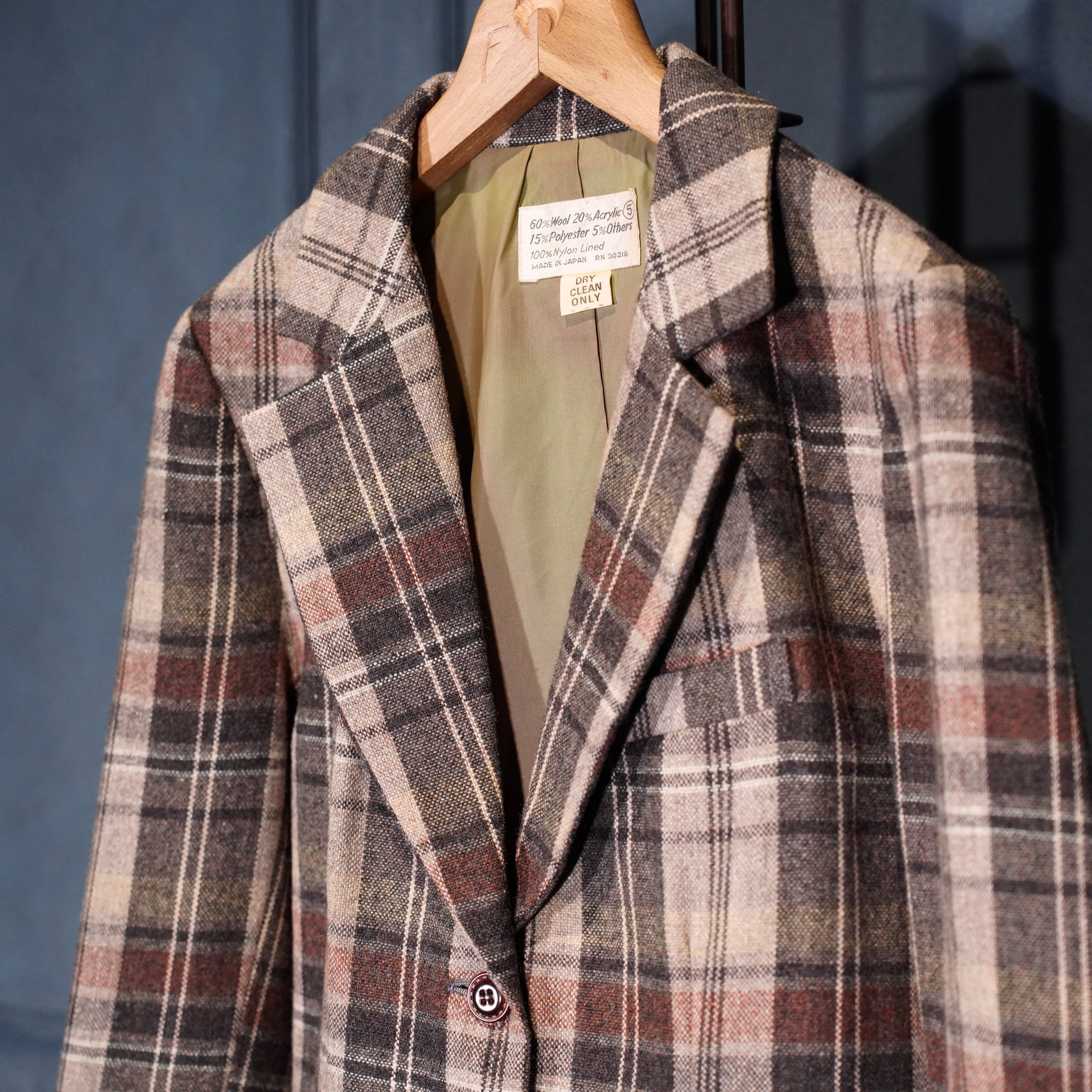 70’s〜 USA VINTAGE CHECK PATTERNED WOOL TAILORED JACKET MADE IN JAPAN/70年代〜アメリカ古着チェック柄ウールテーラードジャケット