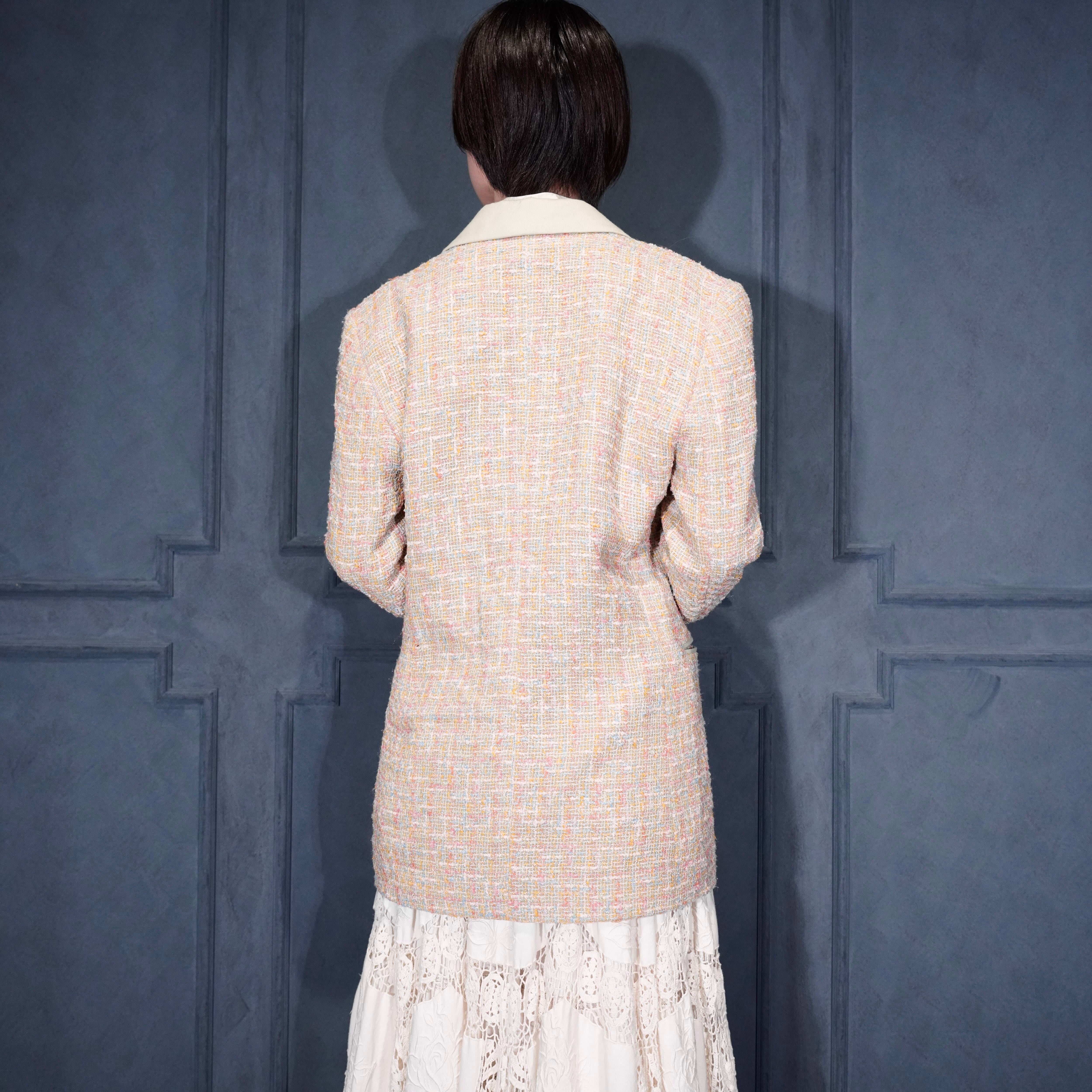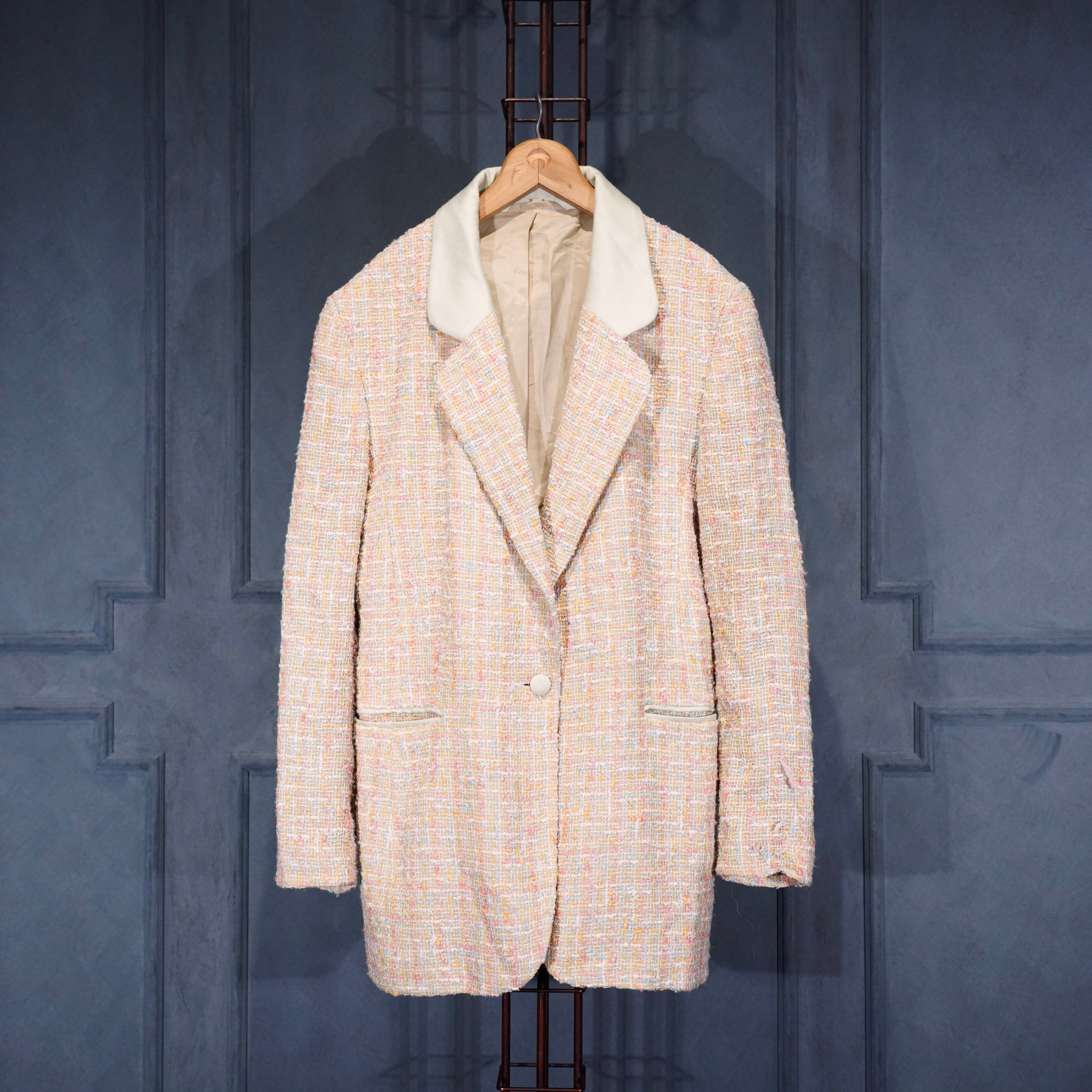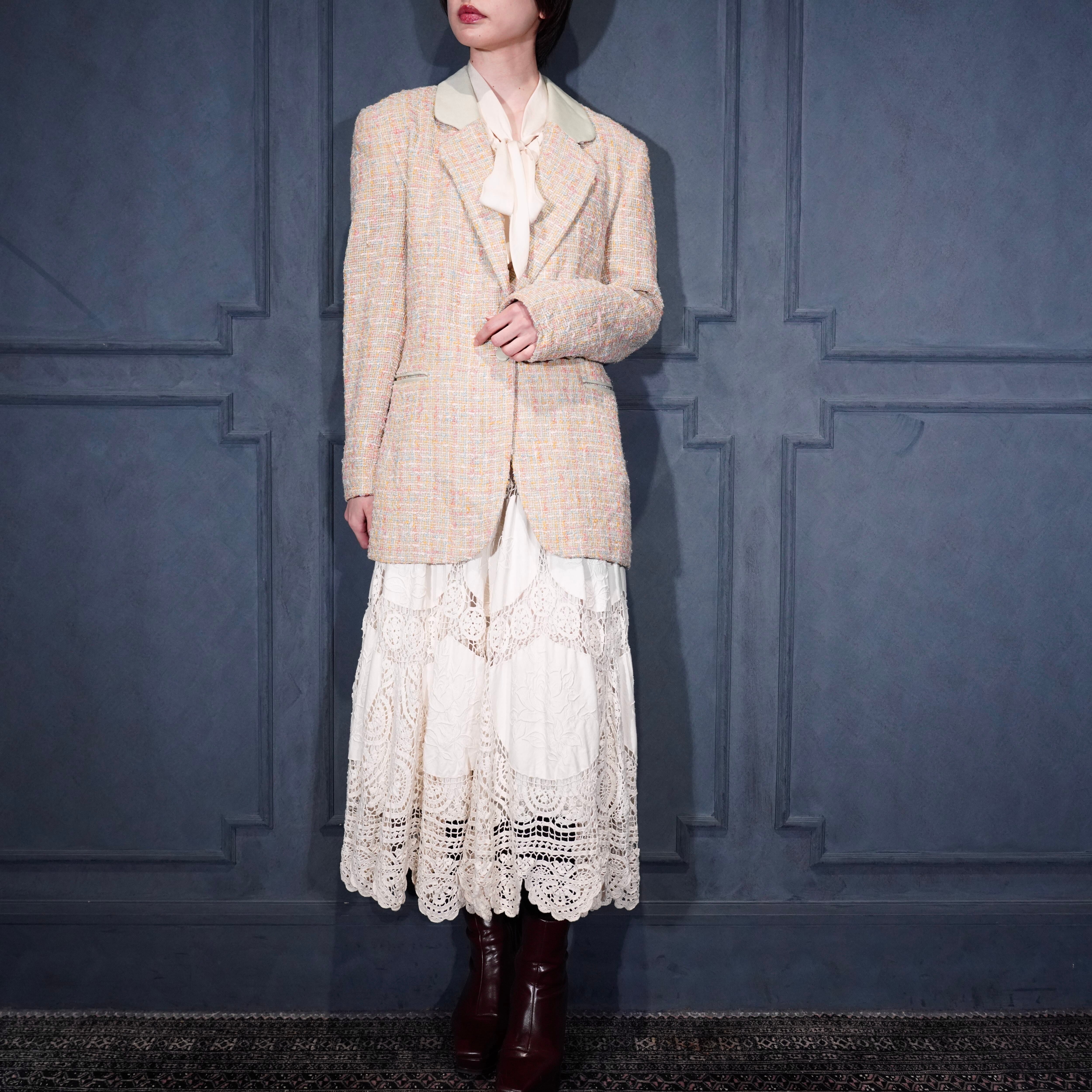 EU VINTAGE PASTEL MIX COLOR DESIGN TWEED TAILORED JACKET/ヨーロッパ古着パステルミックスカラーデザインツイードテーラードジャケット