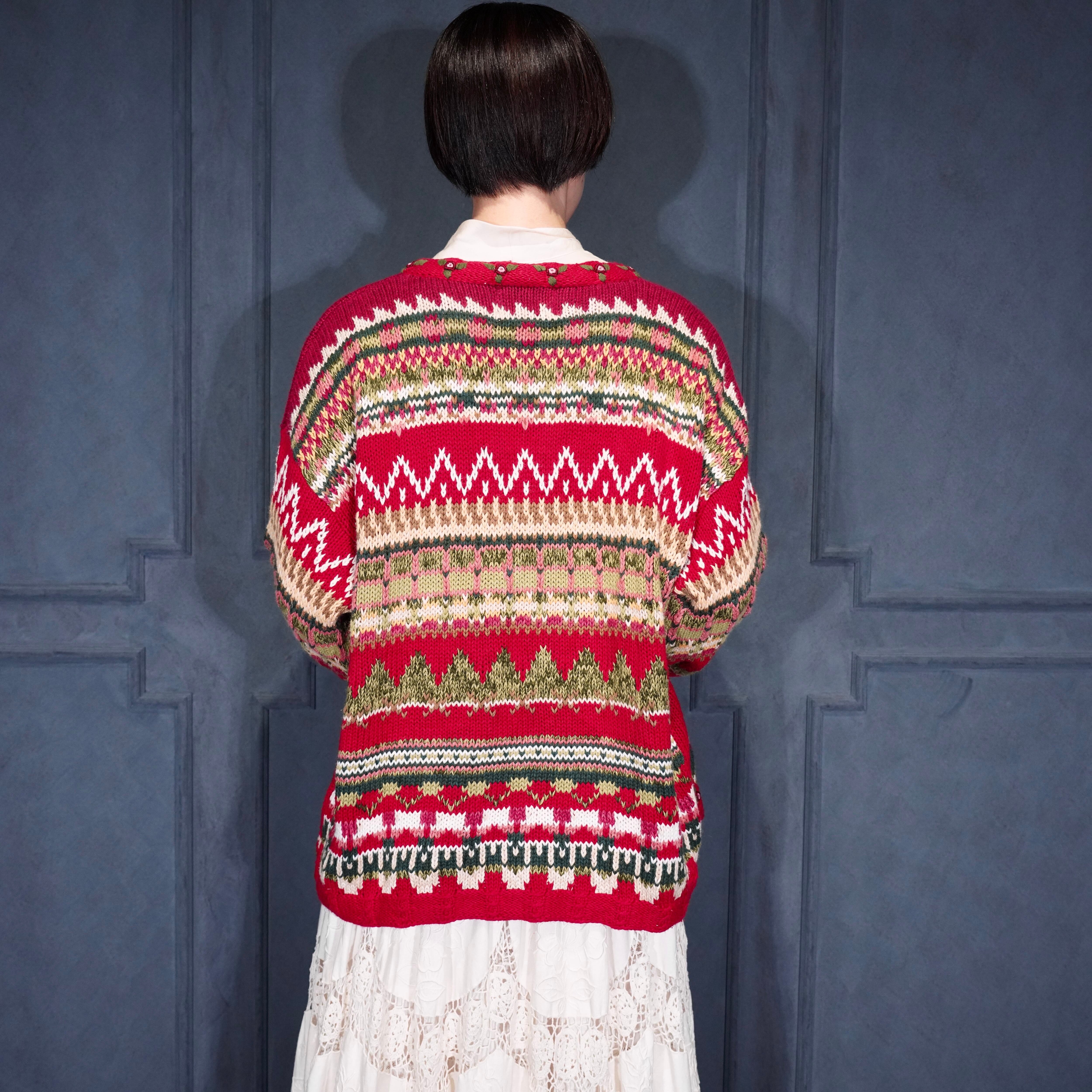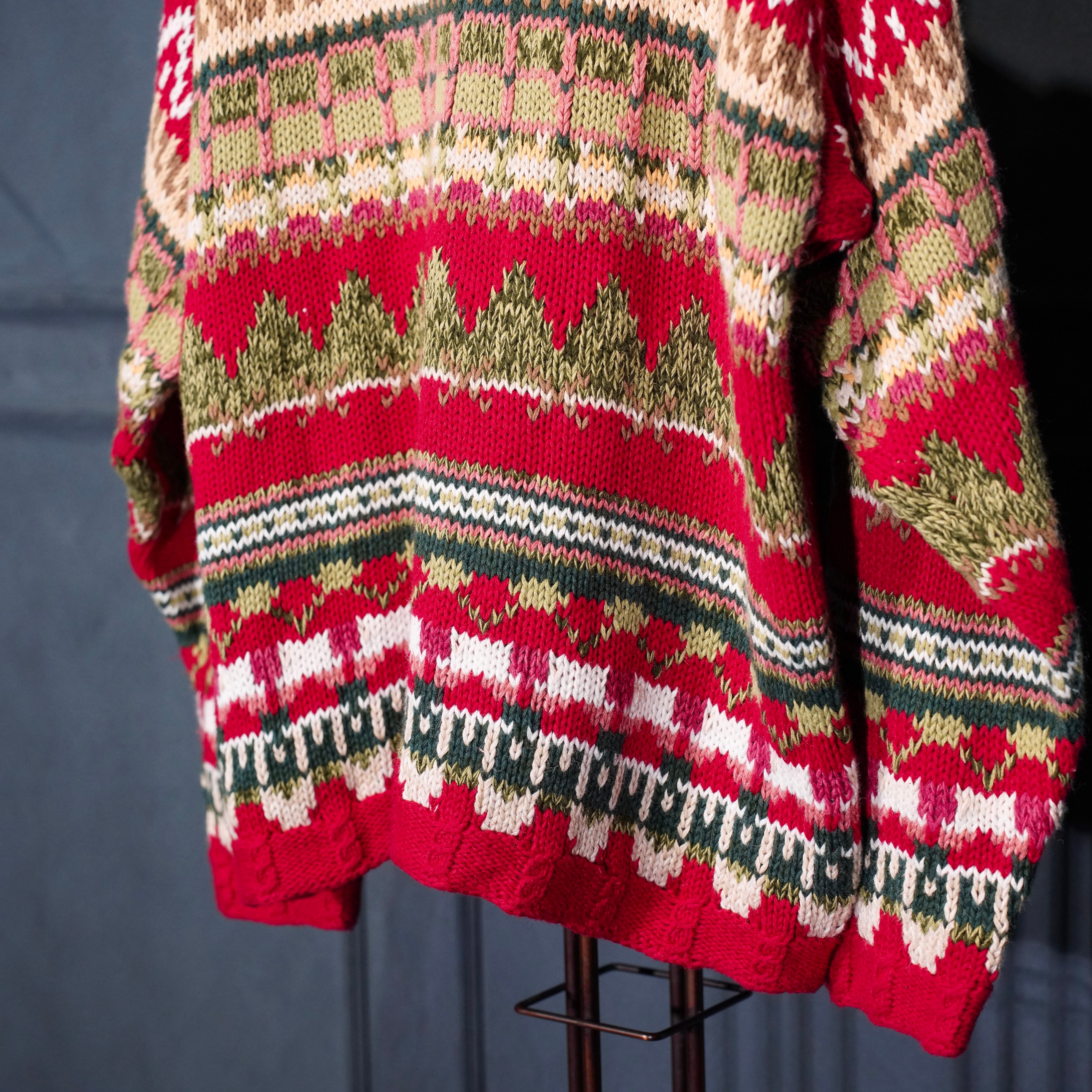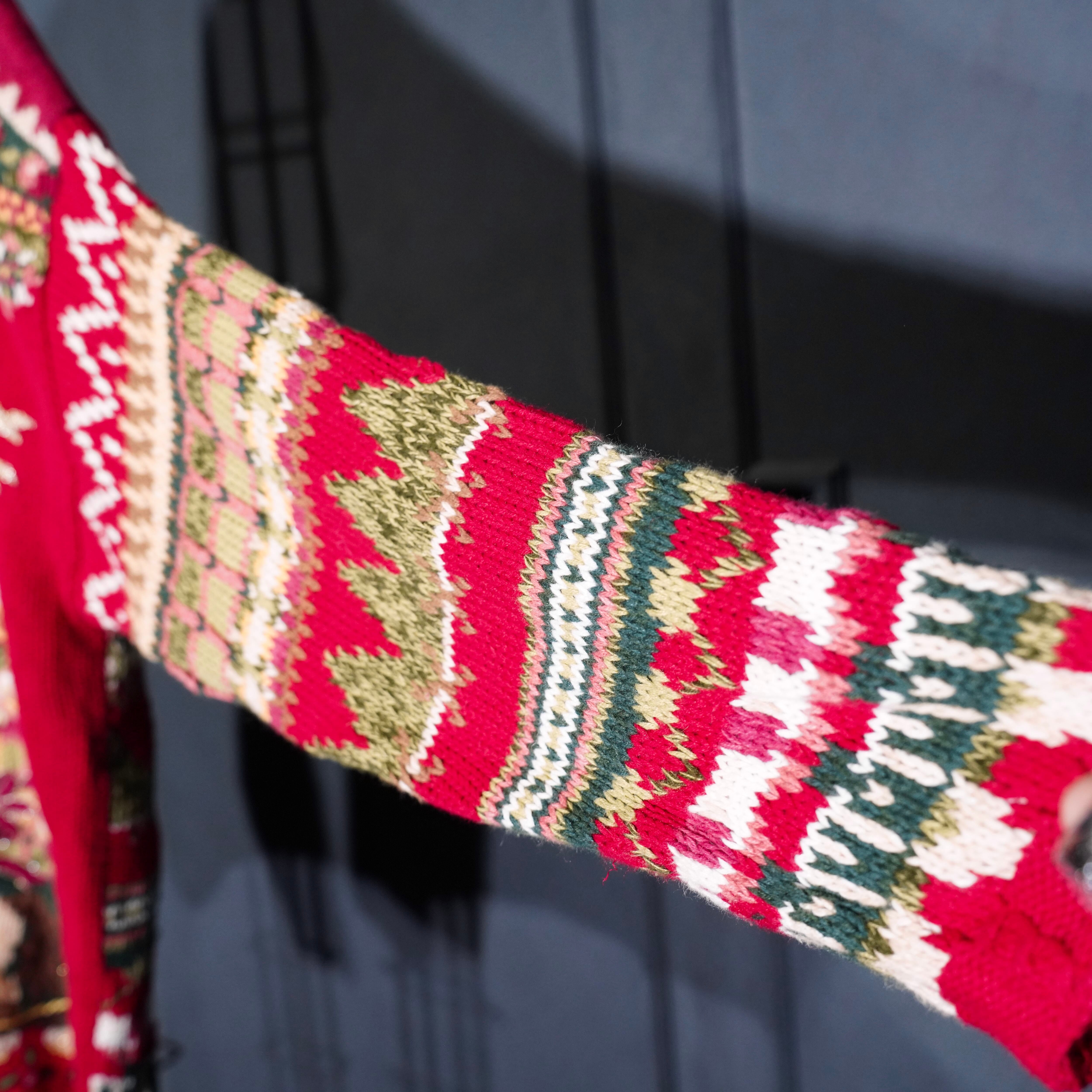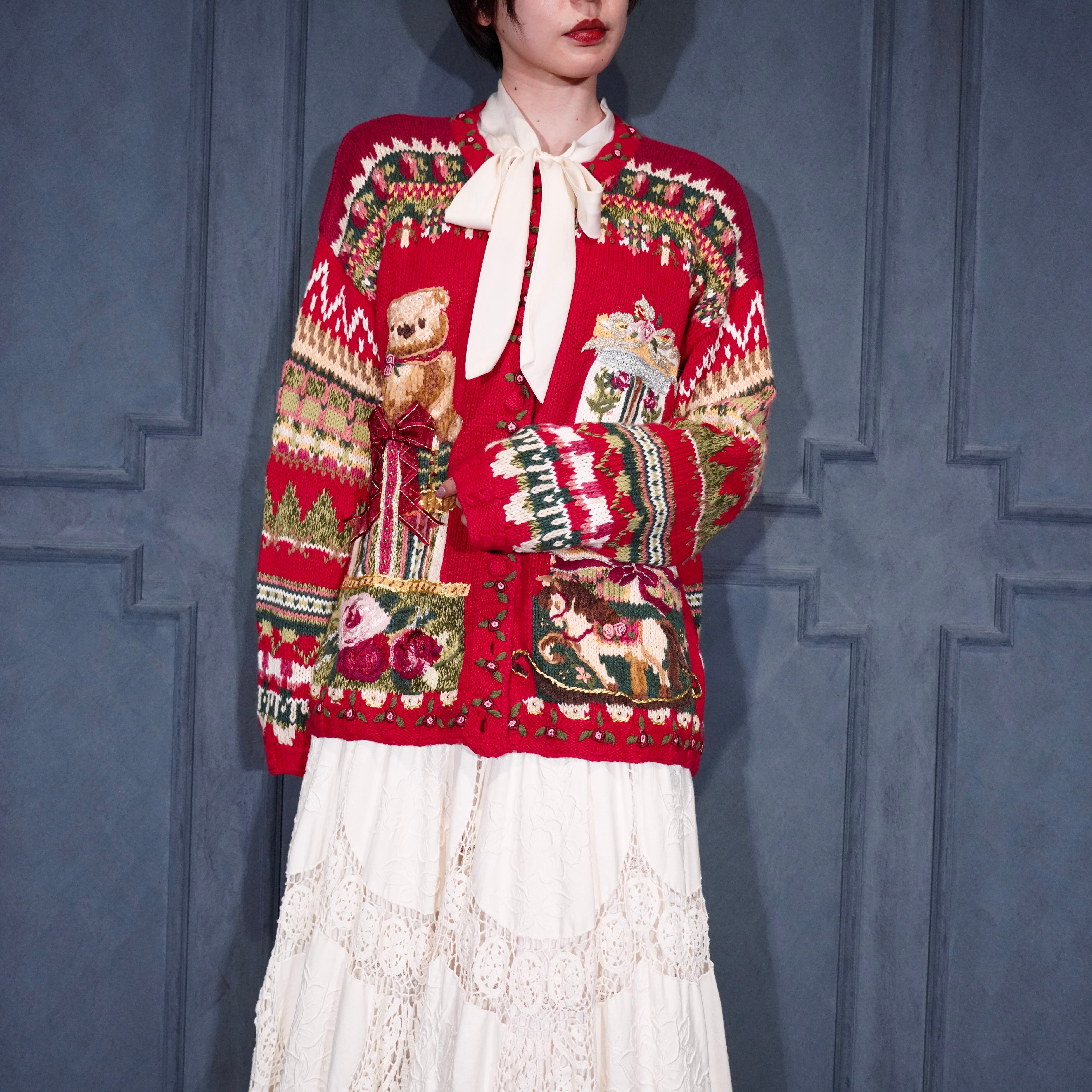 USA VINTAGE Heirloom Collectibles TEDDY BEAR PRESENT DESIGN COTTON RAMIE XMAS KNIT CARDIGAN/アメリカ古着テディベアプレゼントデザインコットンラミークリスマスニットカーディガン