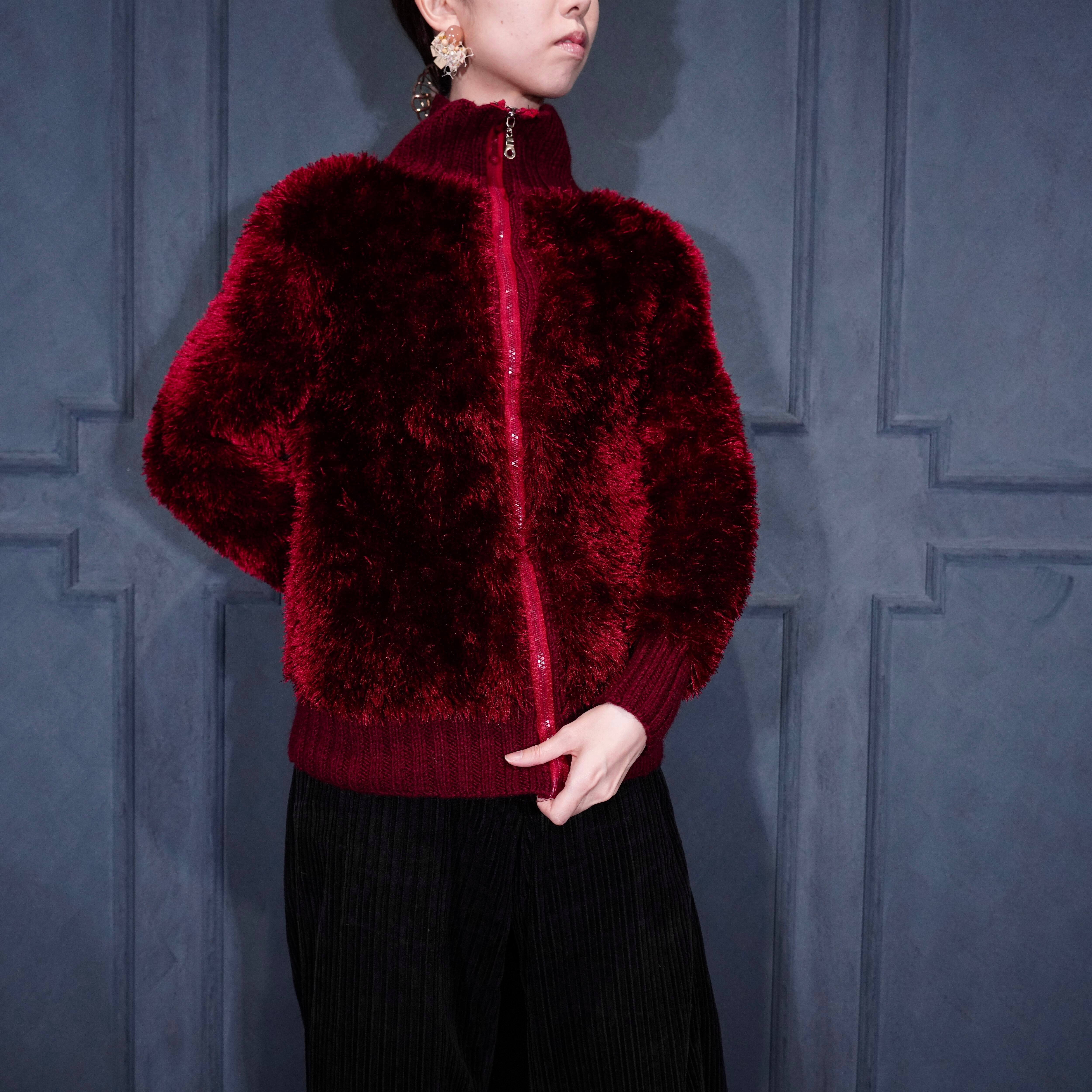 EU VINTAGE ZIP UP SHAGGY KNIT BLOUSON/ヨーロッパ古着ジップアップシャギーニットブルゾン
