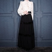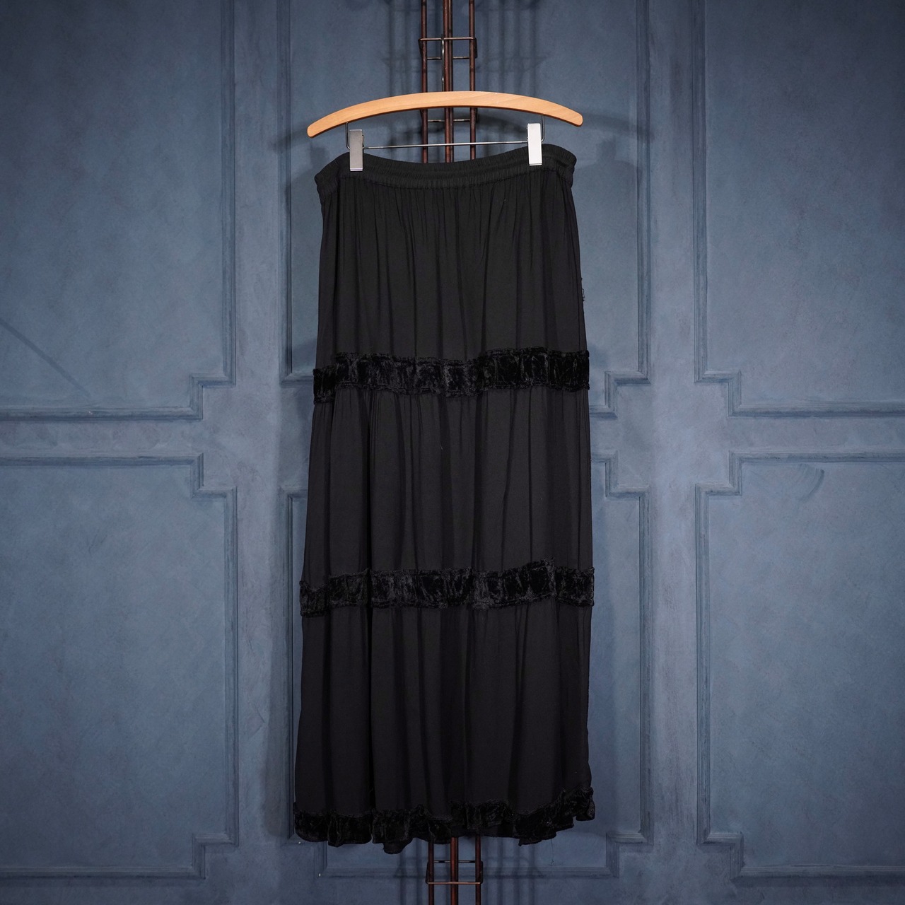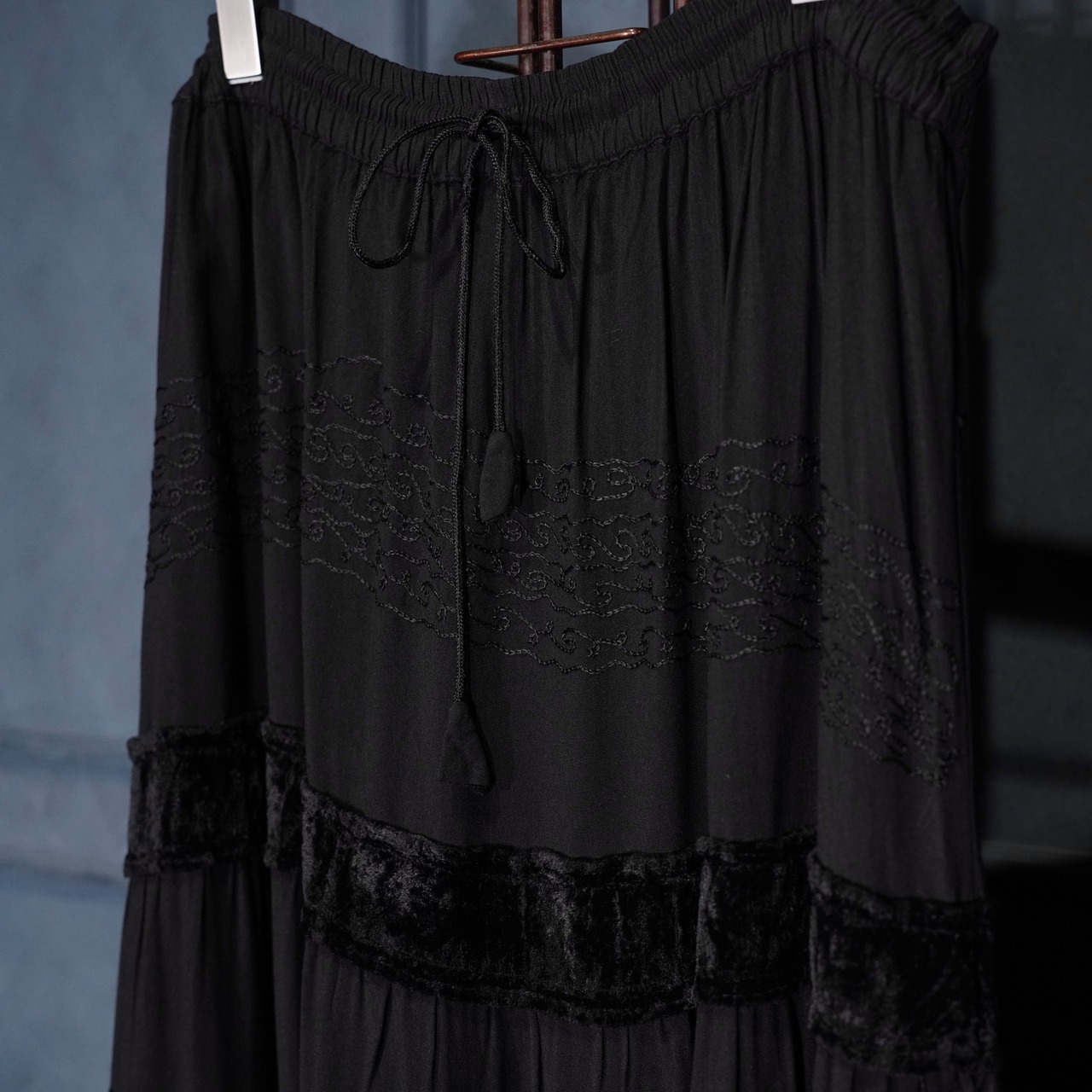 EU VINTAGE VELOUR LINE EMBROIDERY DESIGN LONG SKIRT/ヨーロッパ古着ベロアライン刺繍デザインロングスカート
