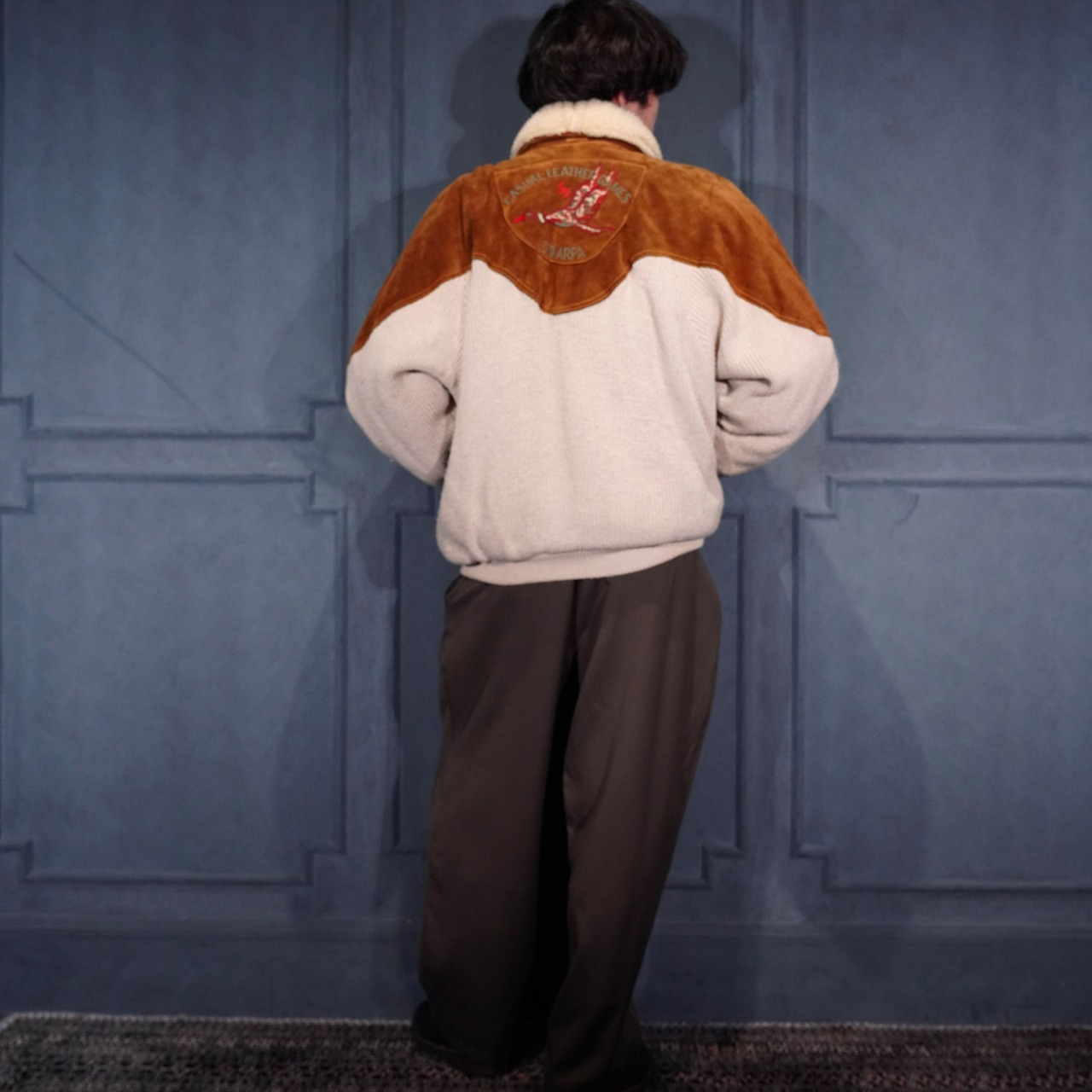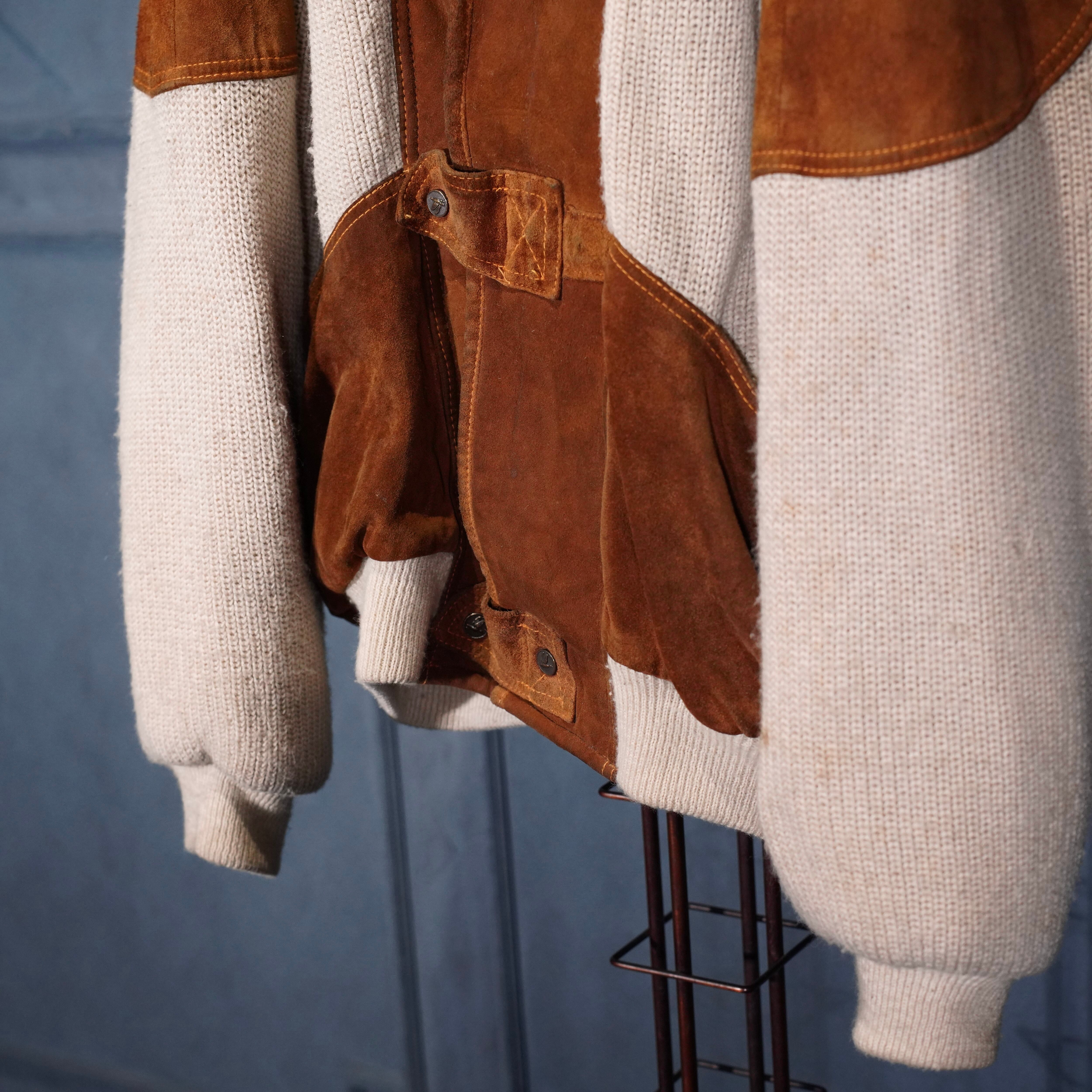 EU VINTAGE DIKARPA BOA COLLAR LEATHER SWITCHED DESIGN KNIT BLOUSON/ヨーロッパ古着ボアカラーレザー切替デザインニットブルゾン
