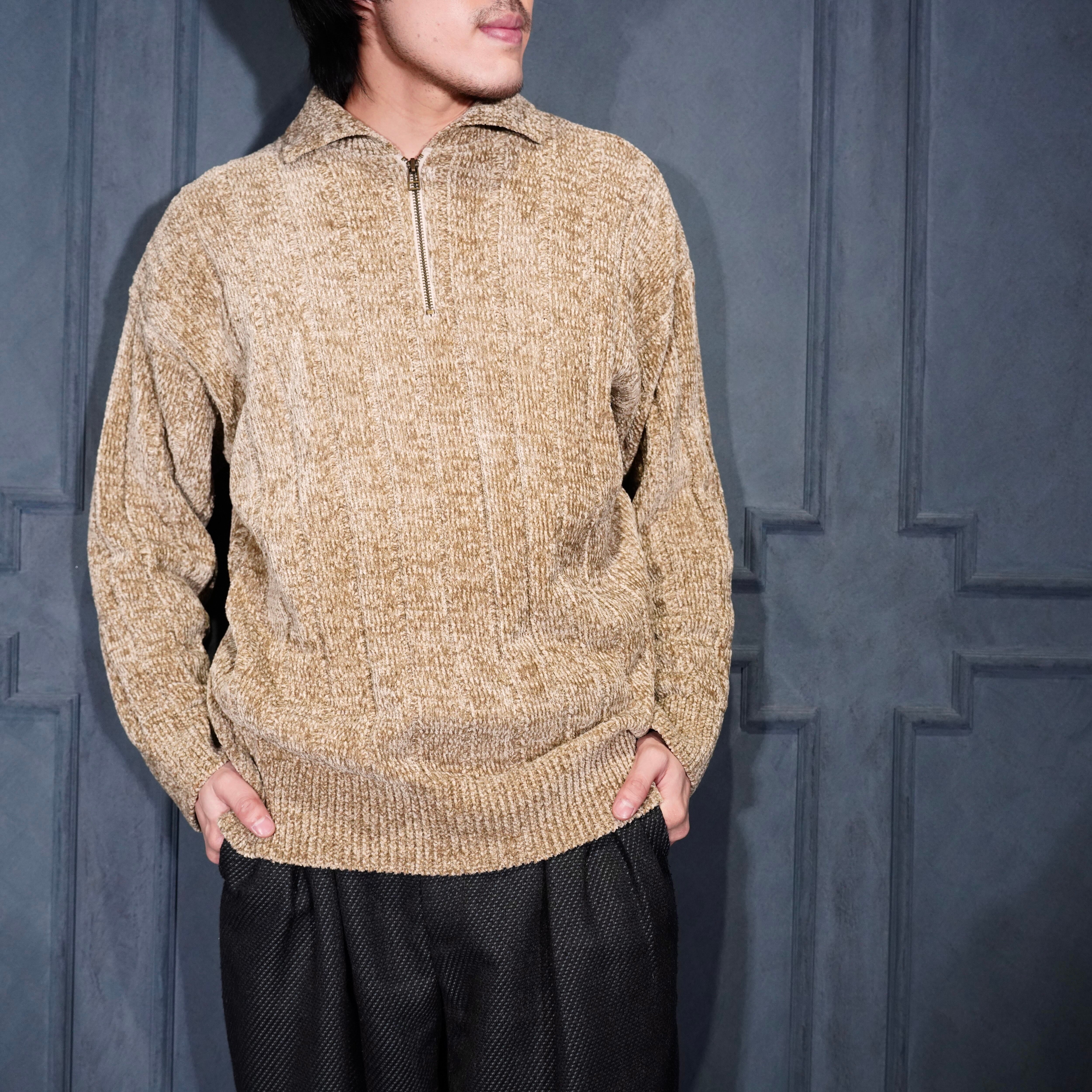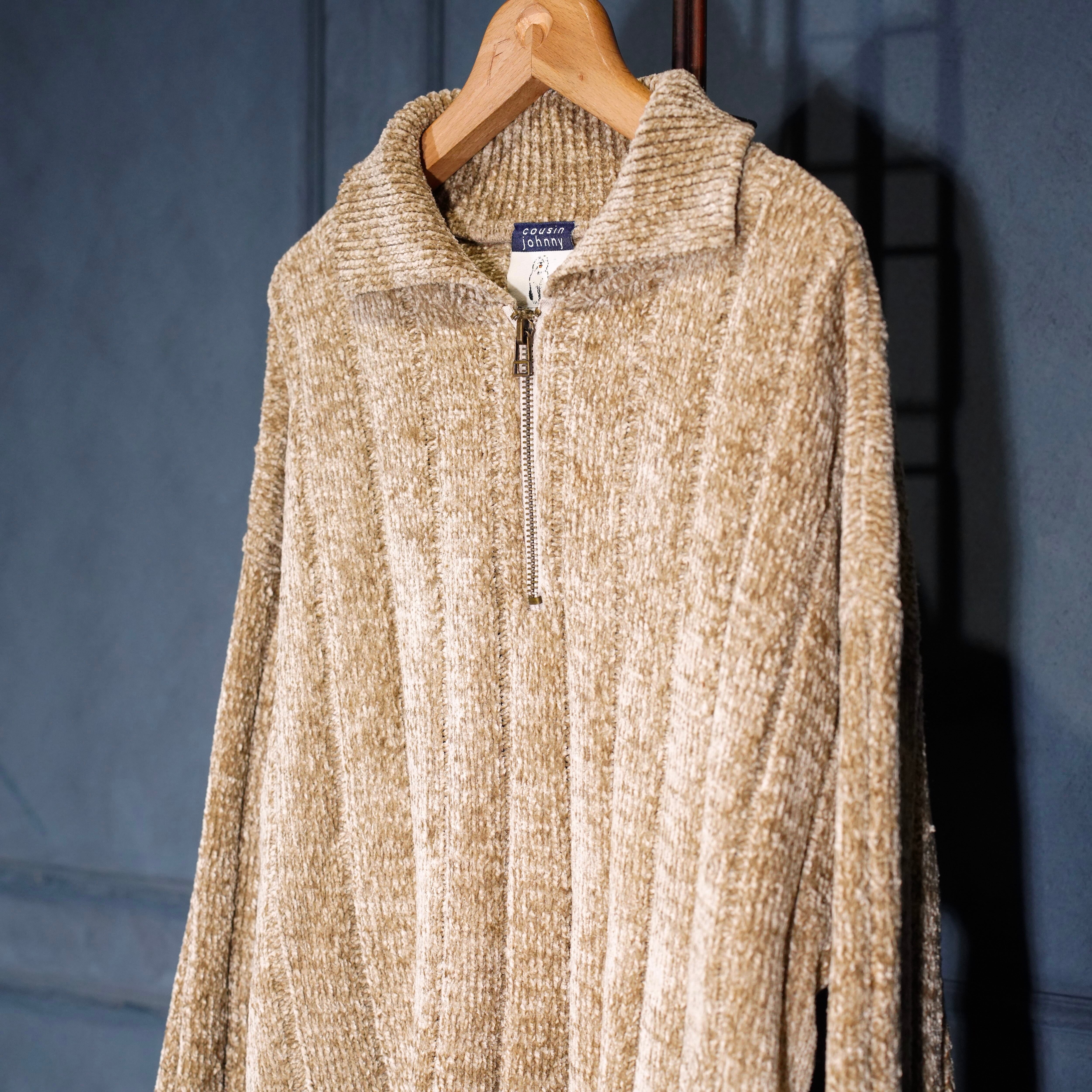 USA VINTAGE cousin johnny HALF ZIP DESIGN PILE KNIT/アメリカ古着ハーフジップデザインパイルニット
