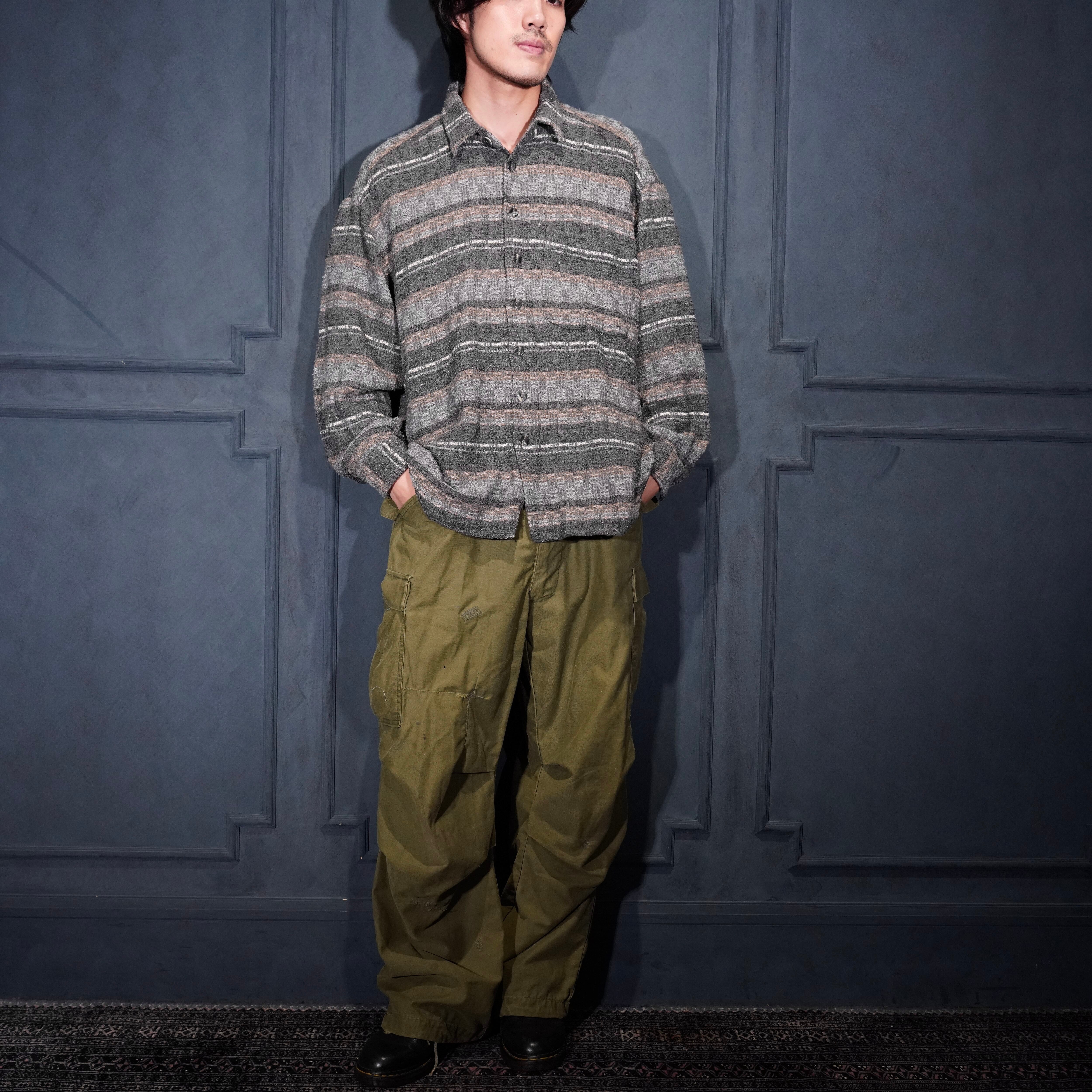EU VINTAGE CLUB D'AMINGO BORDER PATTERNED WOVEN DESIGN SHIRT/ヨーロッパ古着ボーダー柄織デザインシャツ