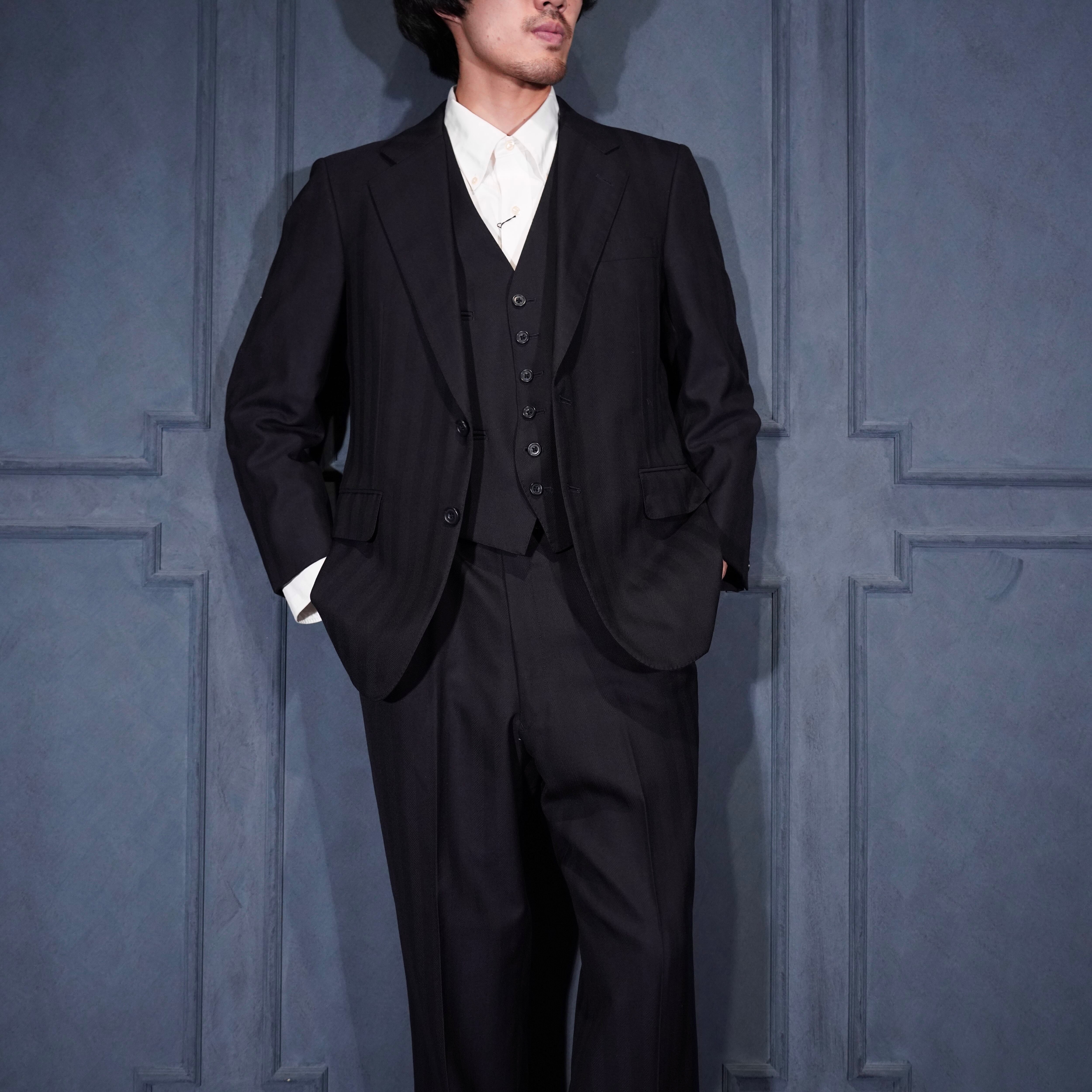 Burberrys DARK STRIPE PATTERNED WOOL 3PIECE SET UP SUIT/バーバリーズダークストライプ柄ウールスリーピースセットアップスーツ