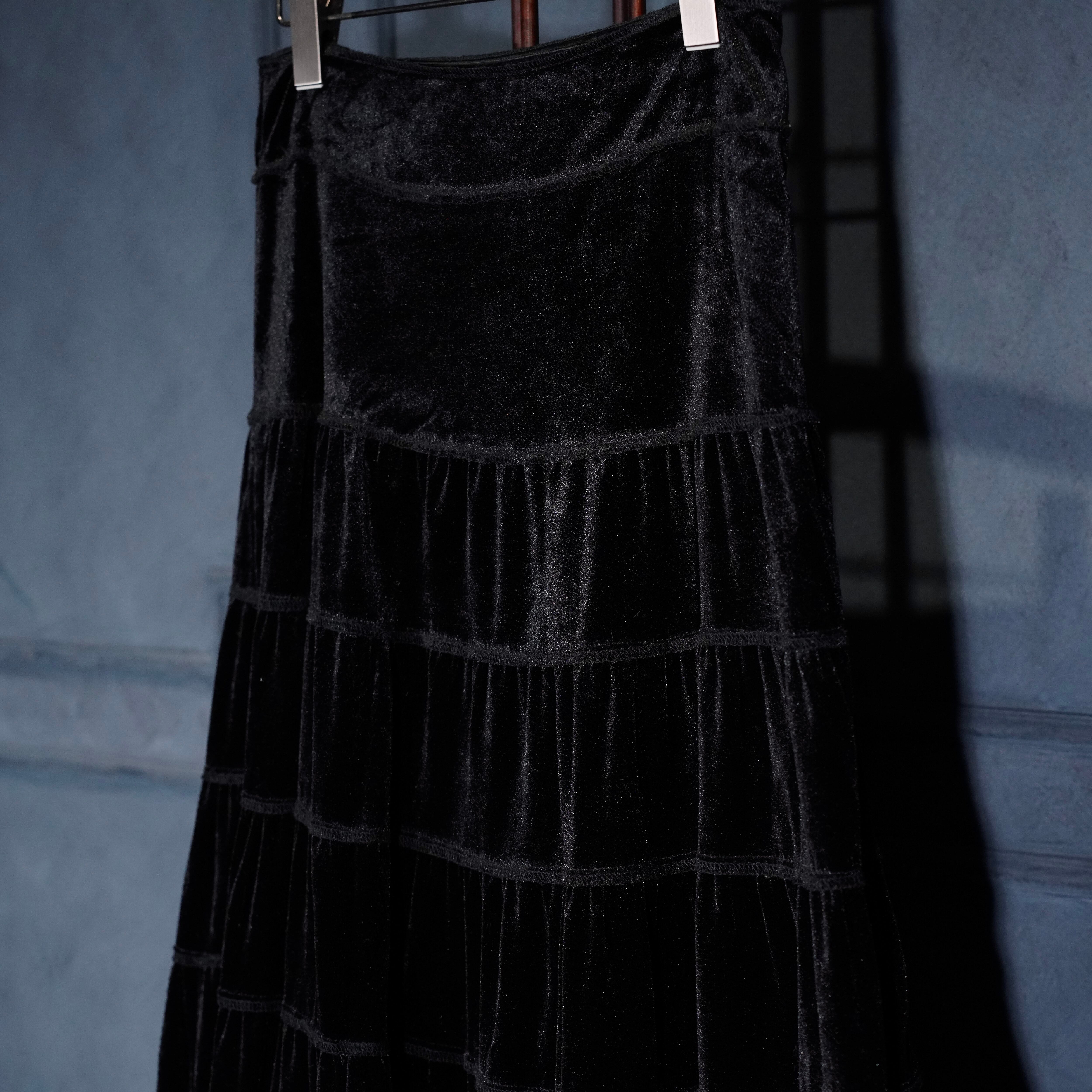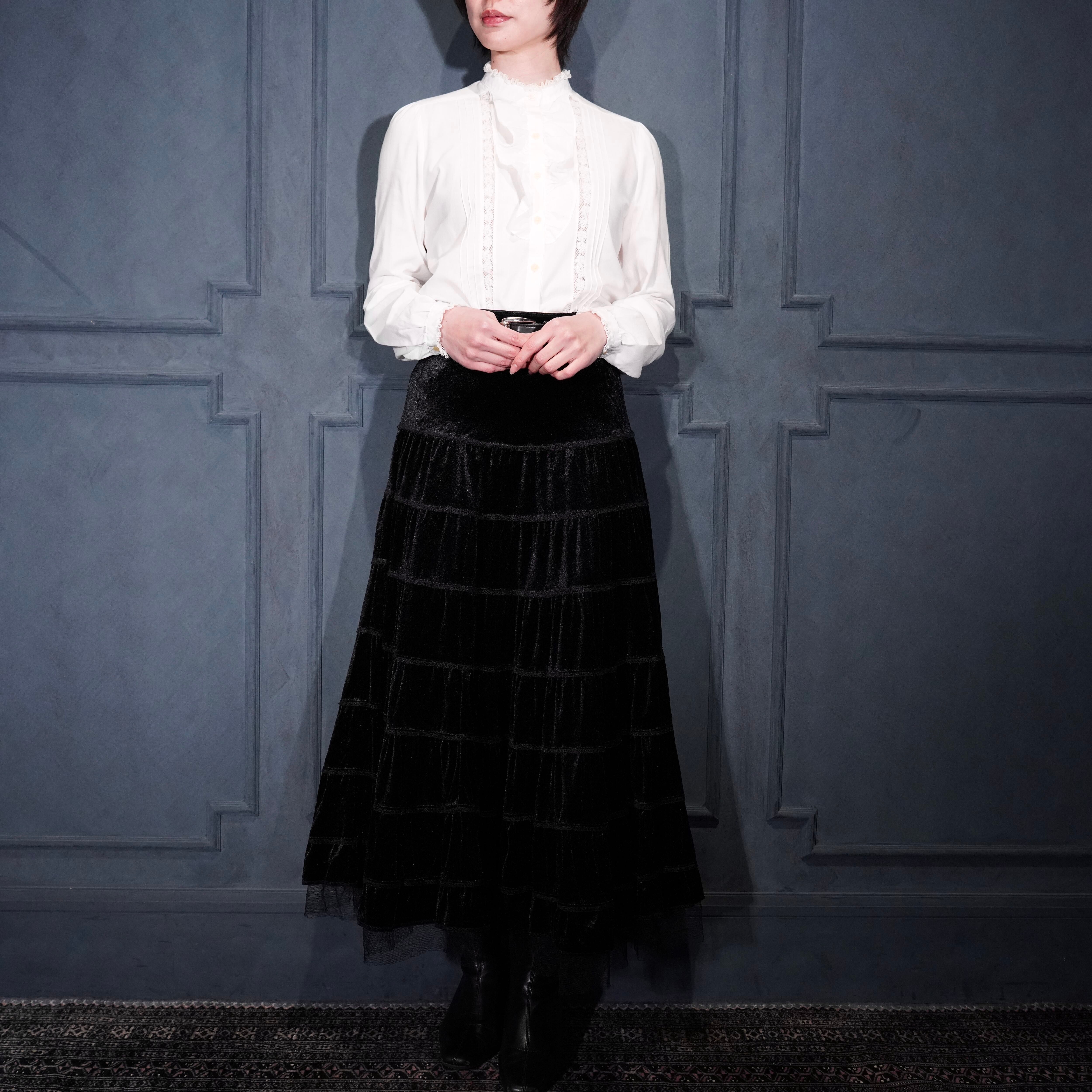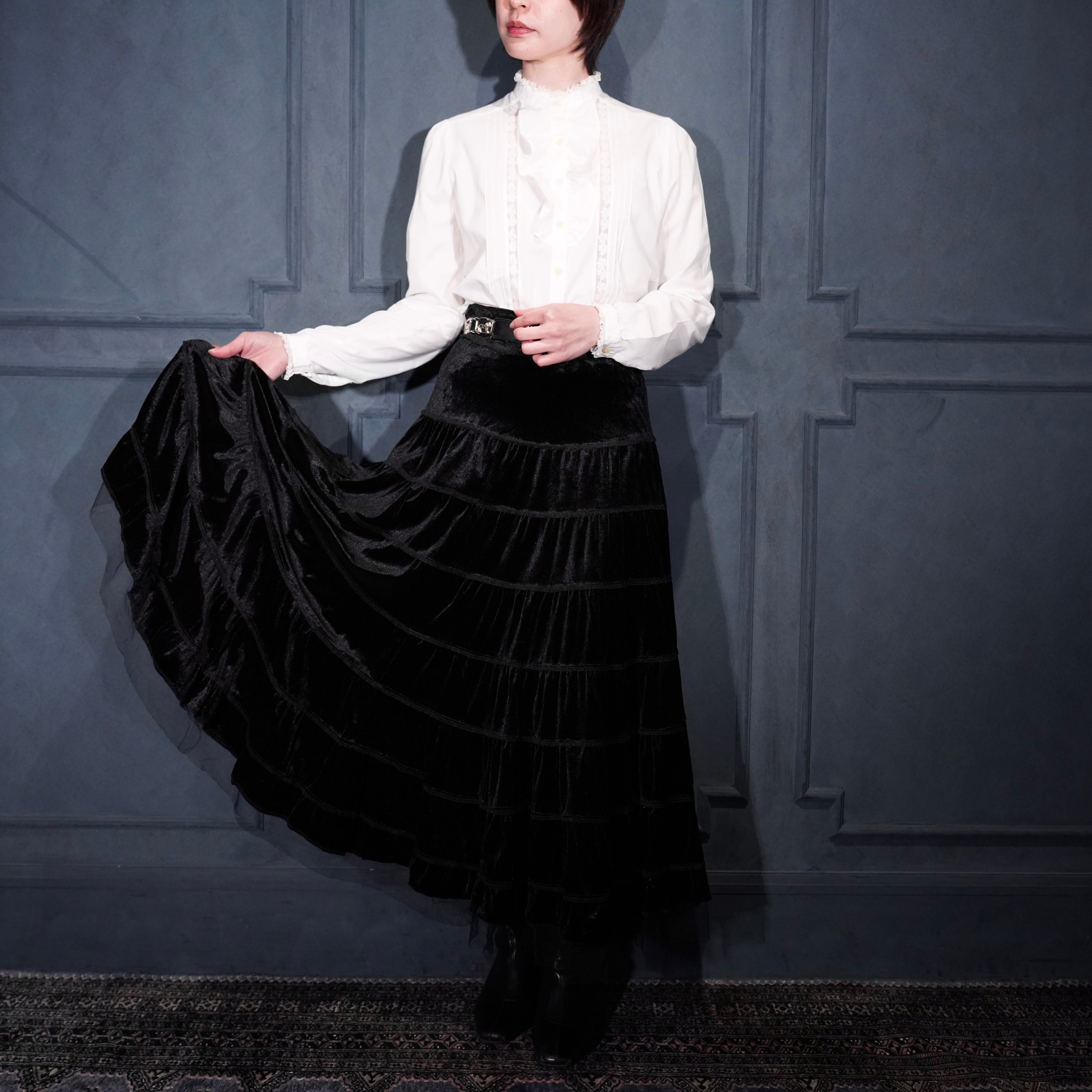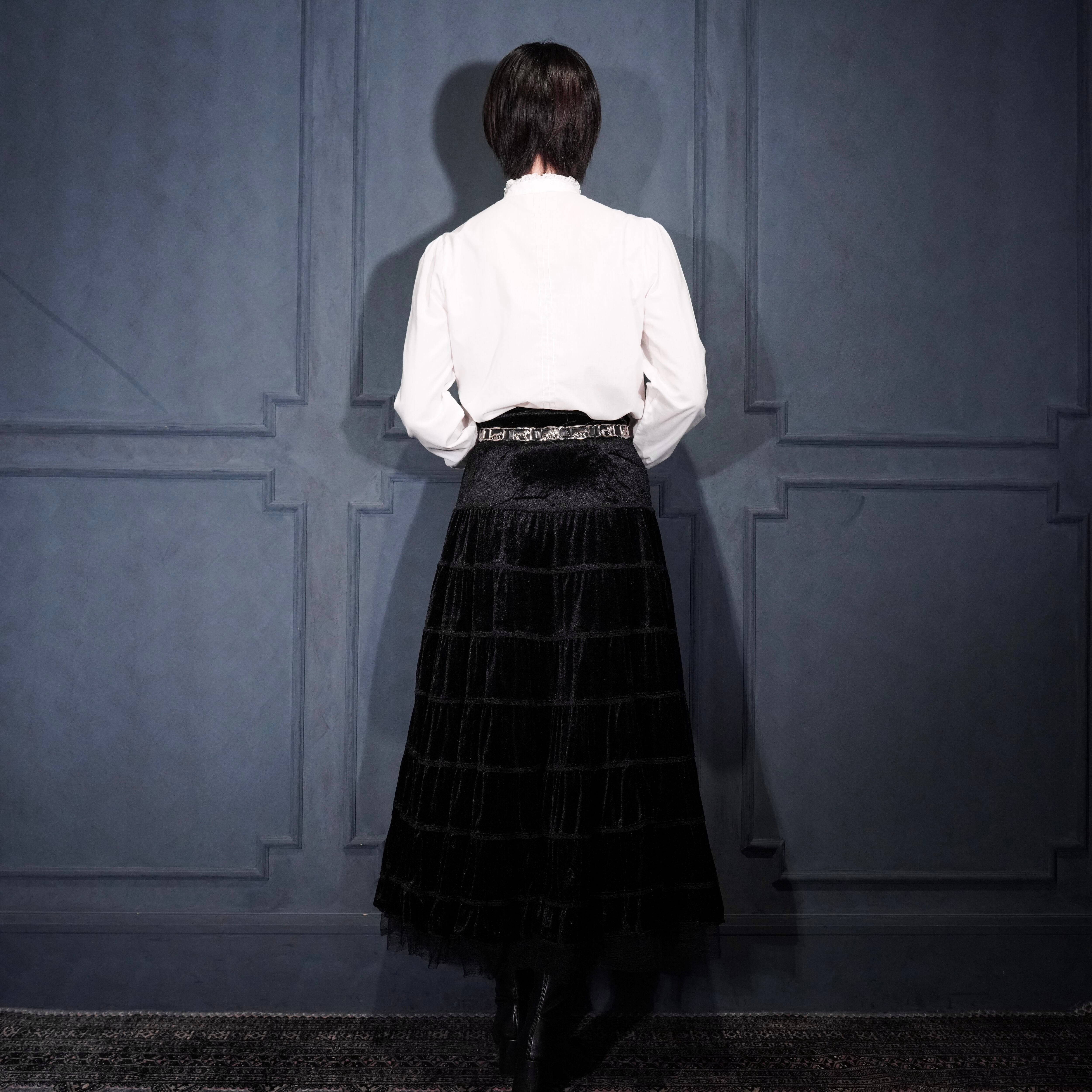 EU VINTAGE TULE DESIGN VELOUR LONG SKIRT/ヨーロッパ古着チュールデザインベロアロングスカート
