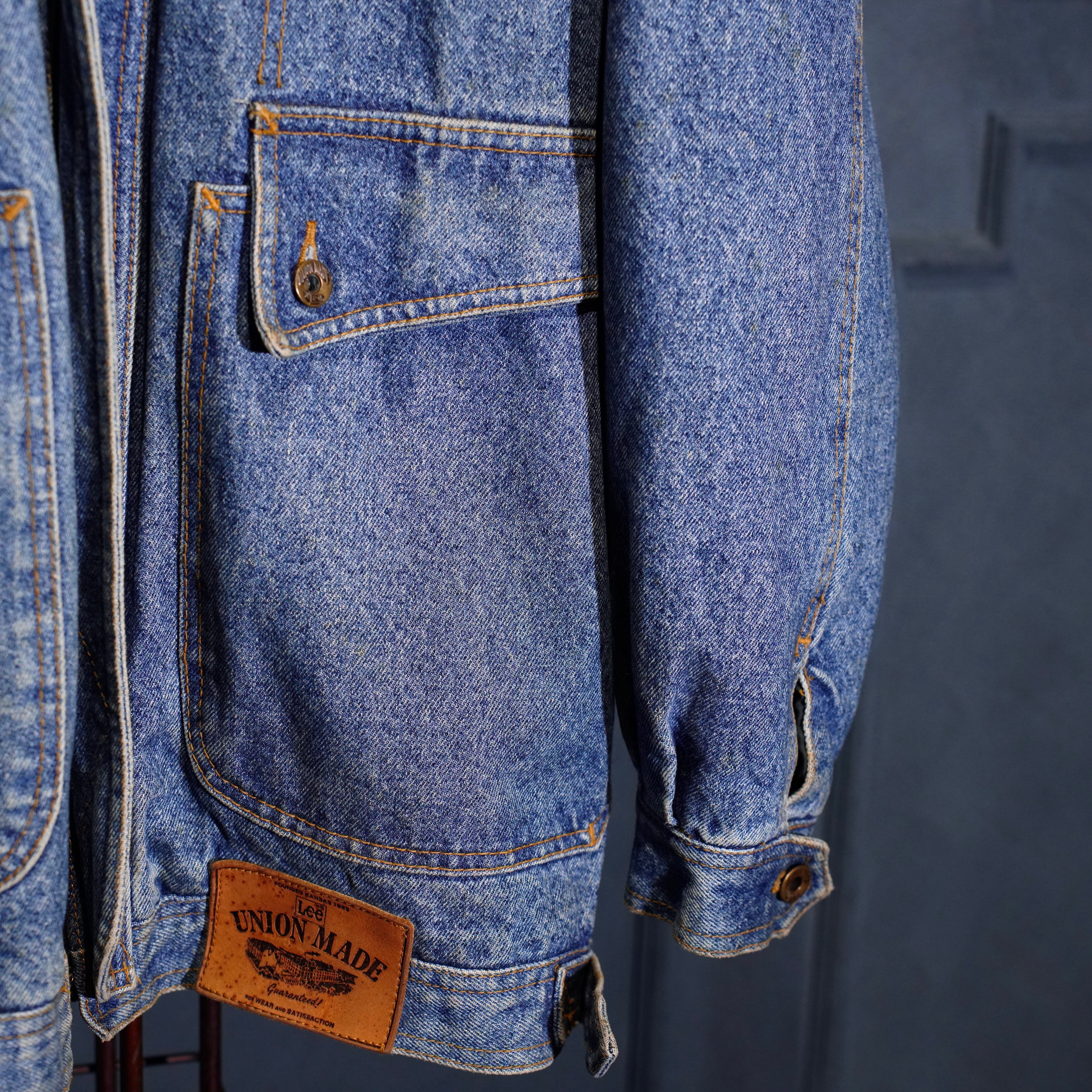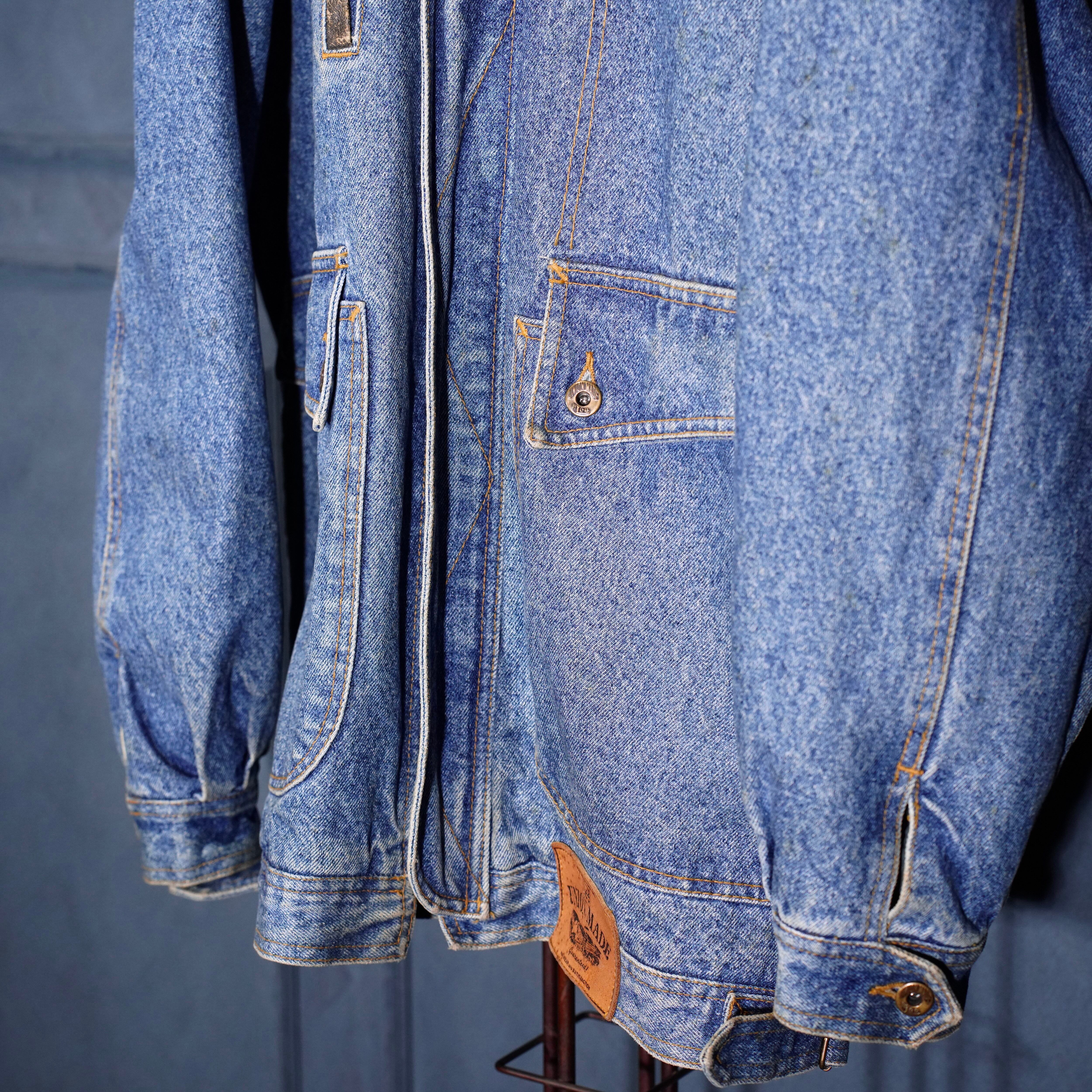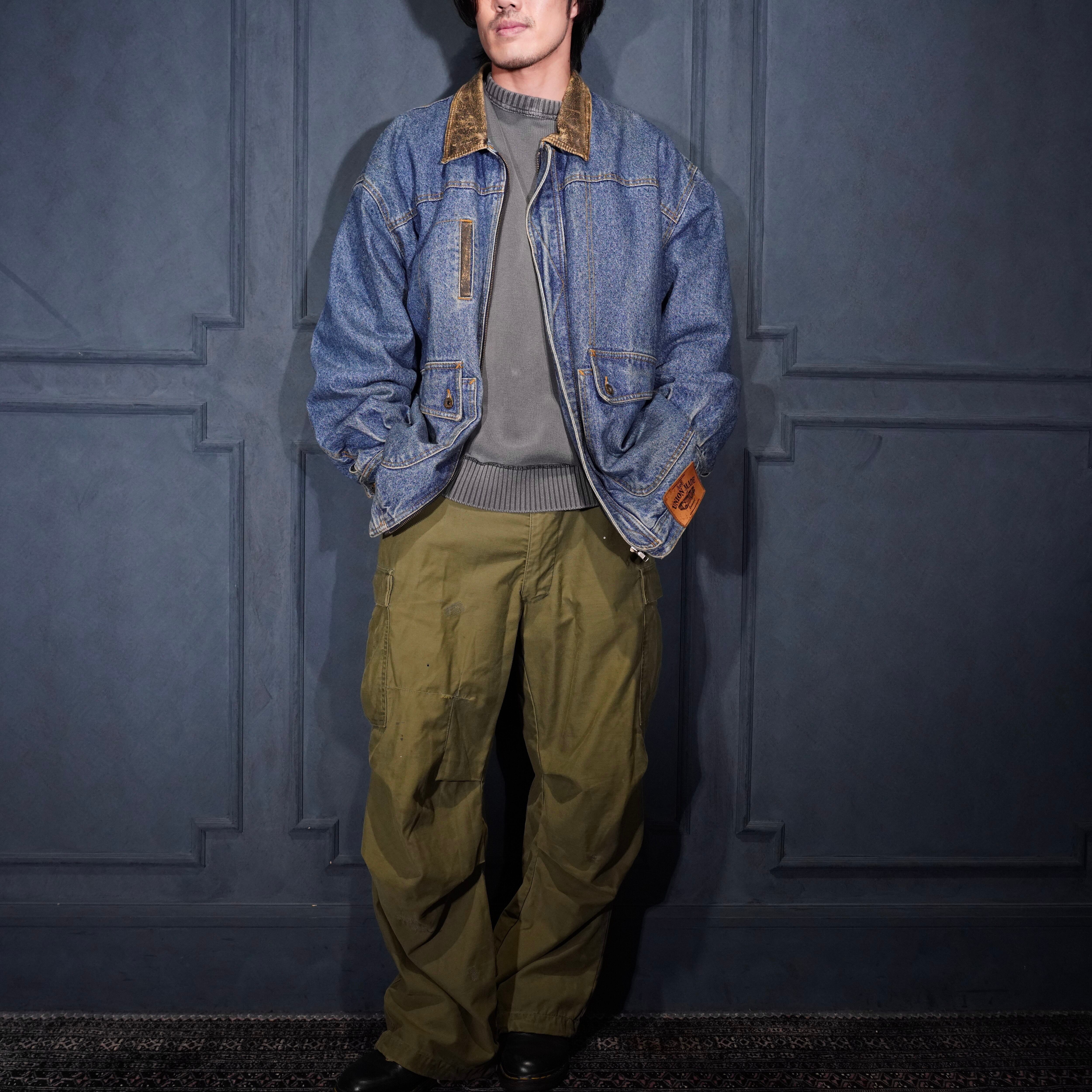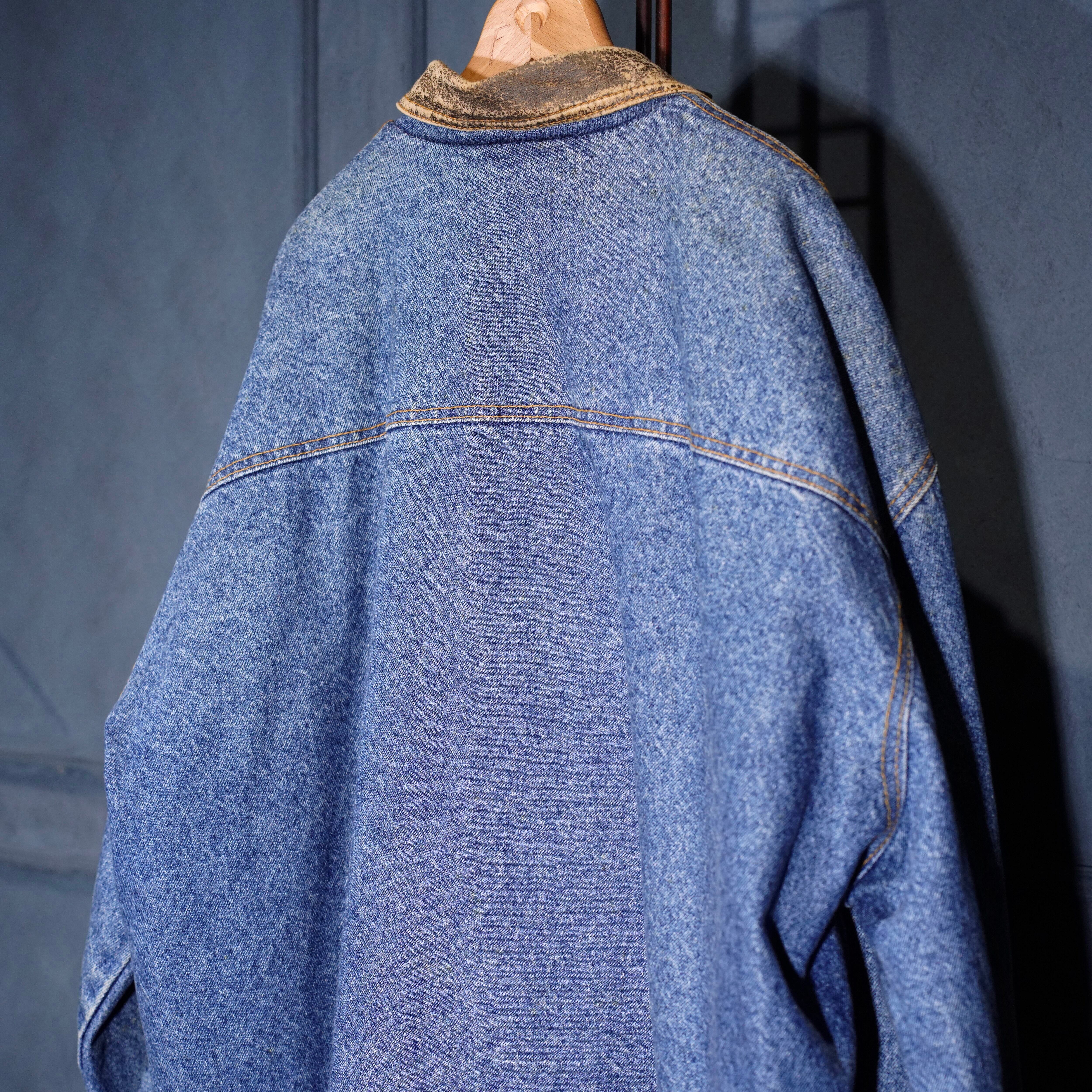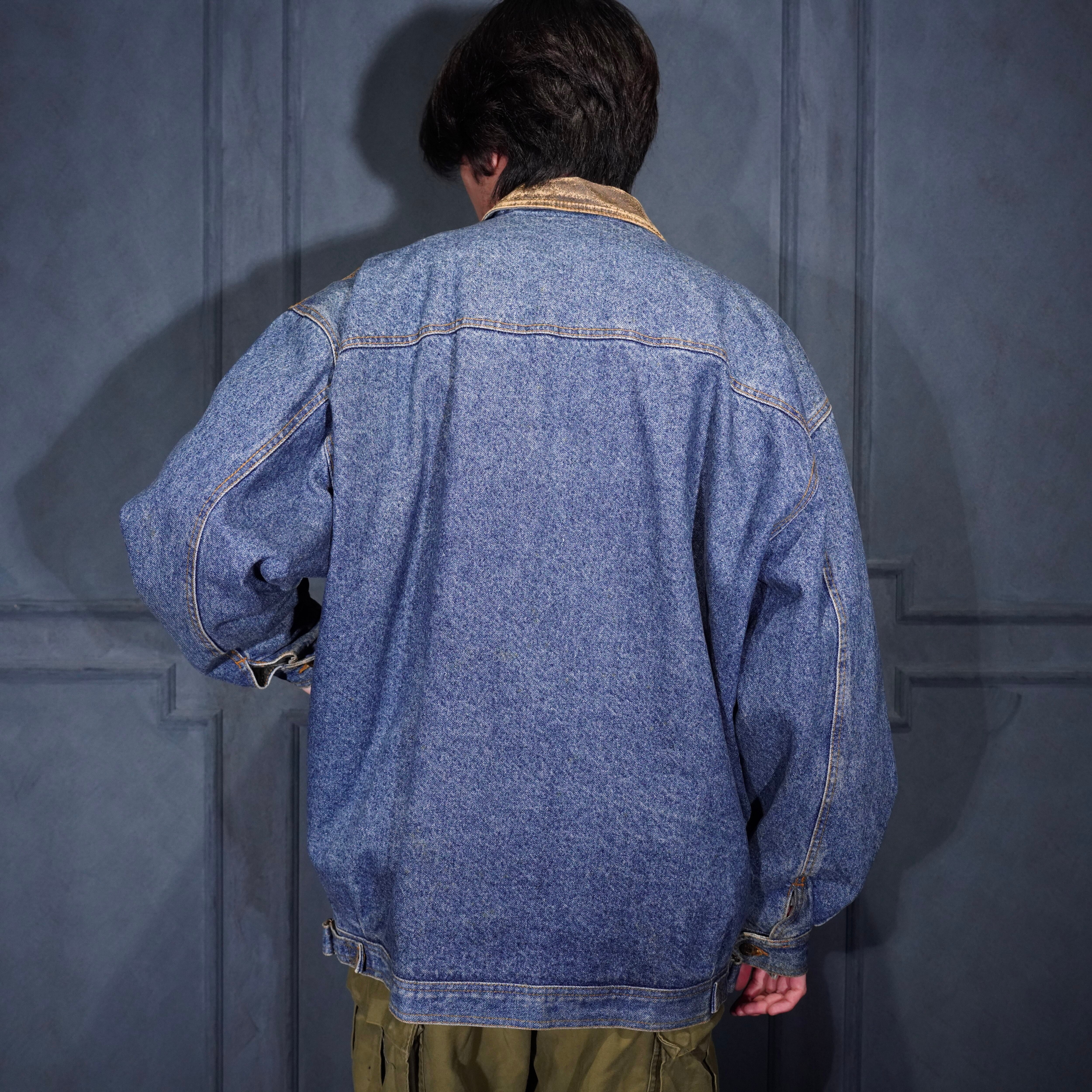 90's USA VINTAGE Lee LEATHER COLLAR ZIP UP DESIGN DENIM BLOUSON/90年代アメリカ古着リーレザー襟ジップアップデザインデニムブルゾン
