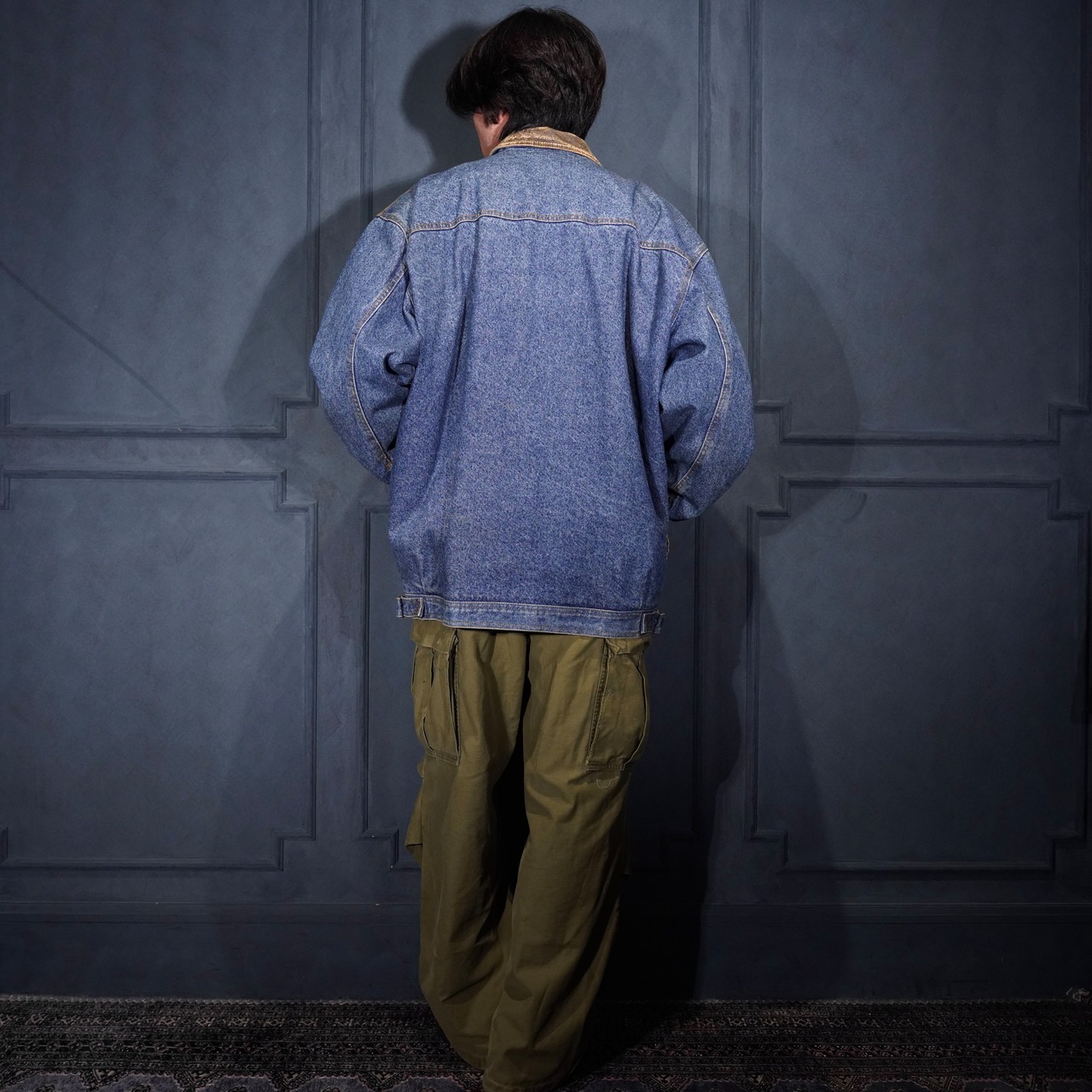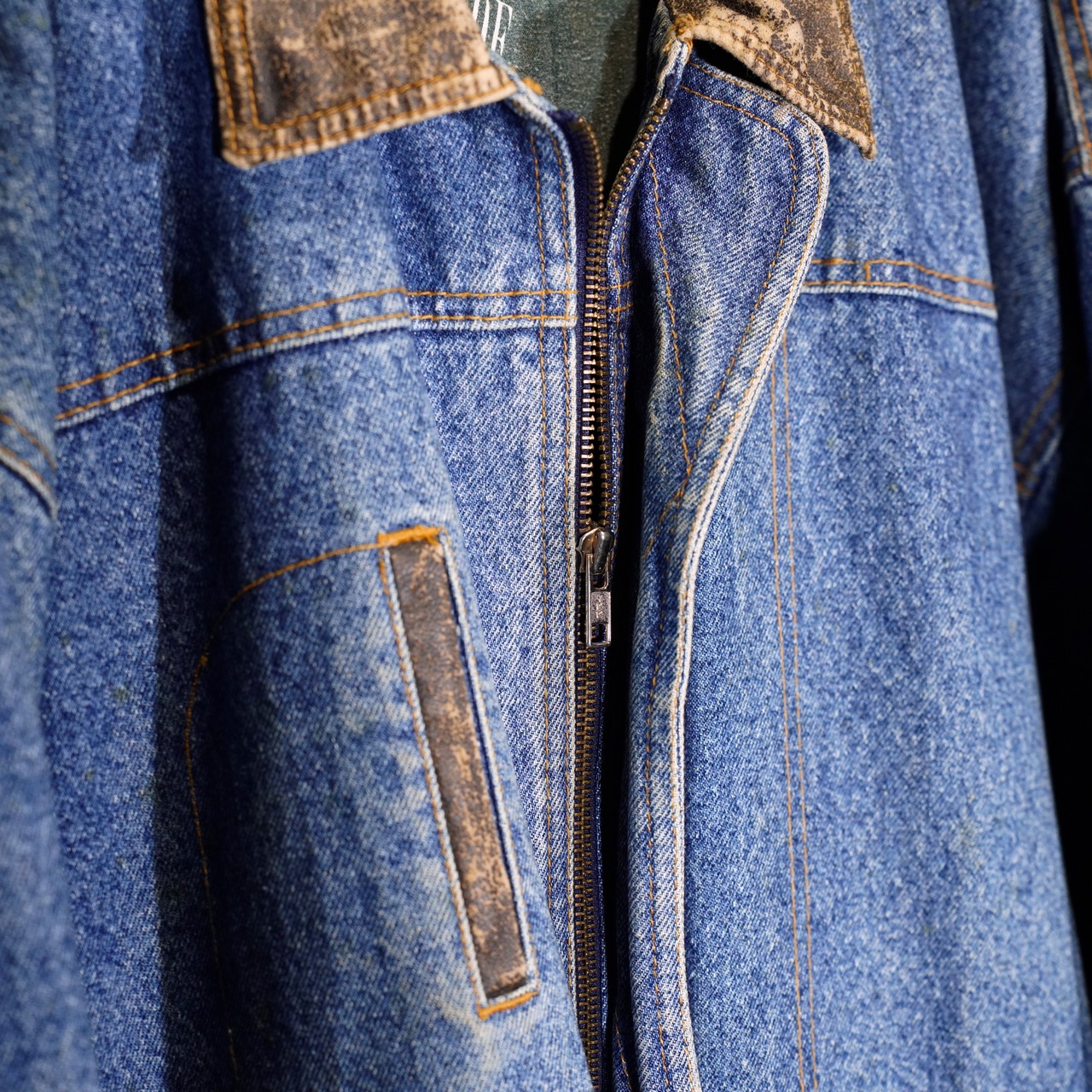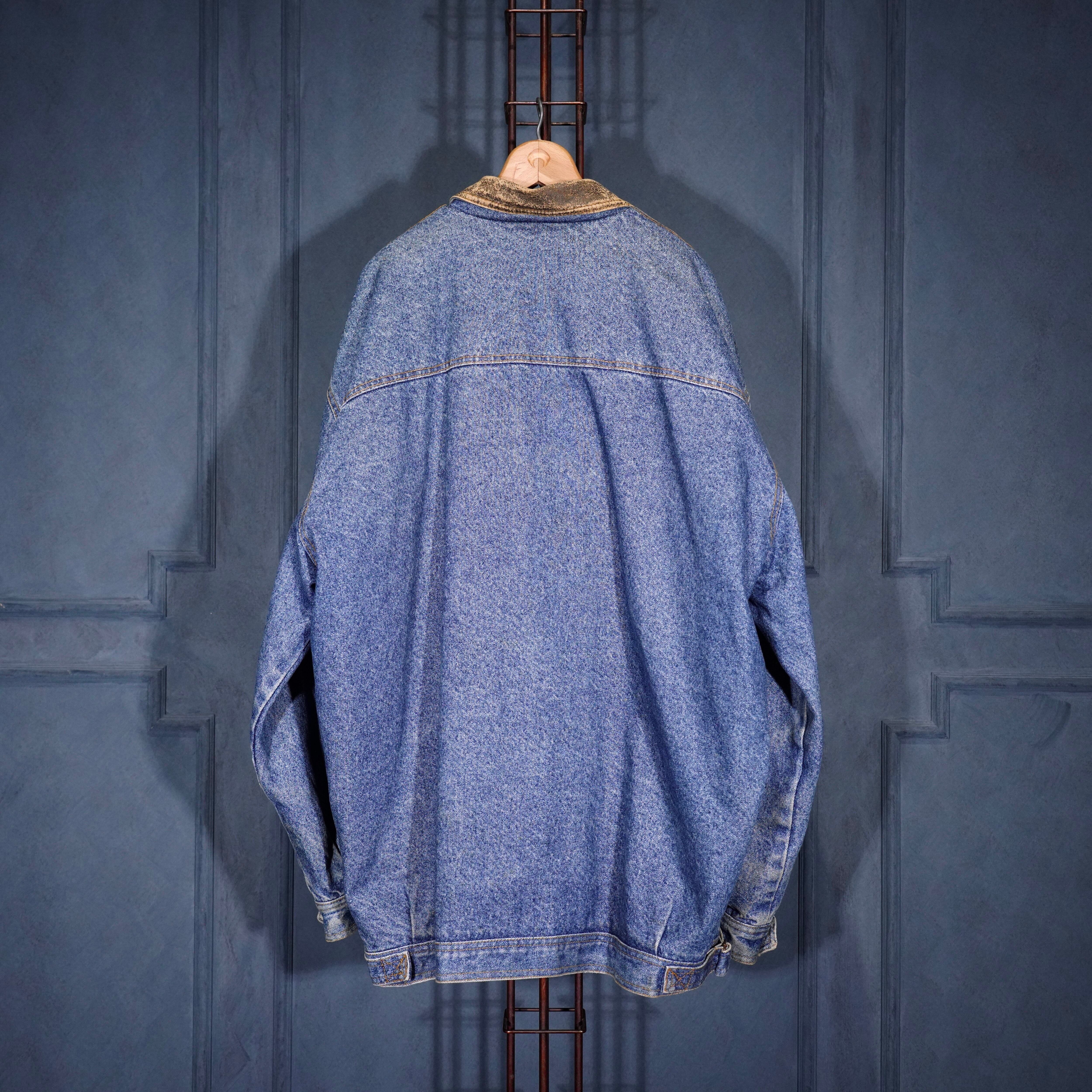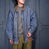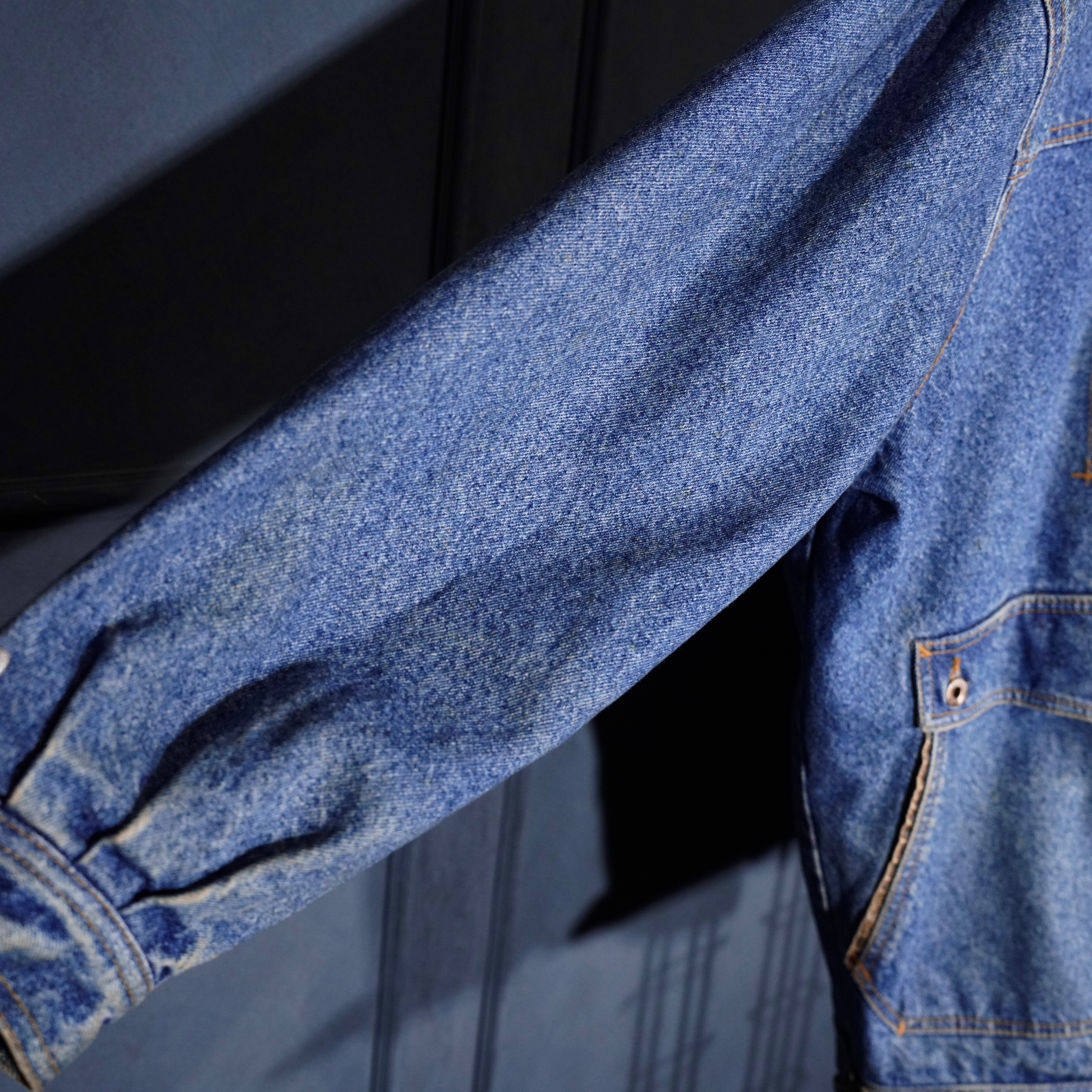 90's USA VINTAGE Lee LEATHER COLLAR ZIP UP DESIGN DENIM BLOUSON/90年代アメリカ古着リーレザー襟ジップアップデザインデニムブルゾン
