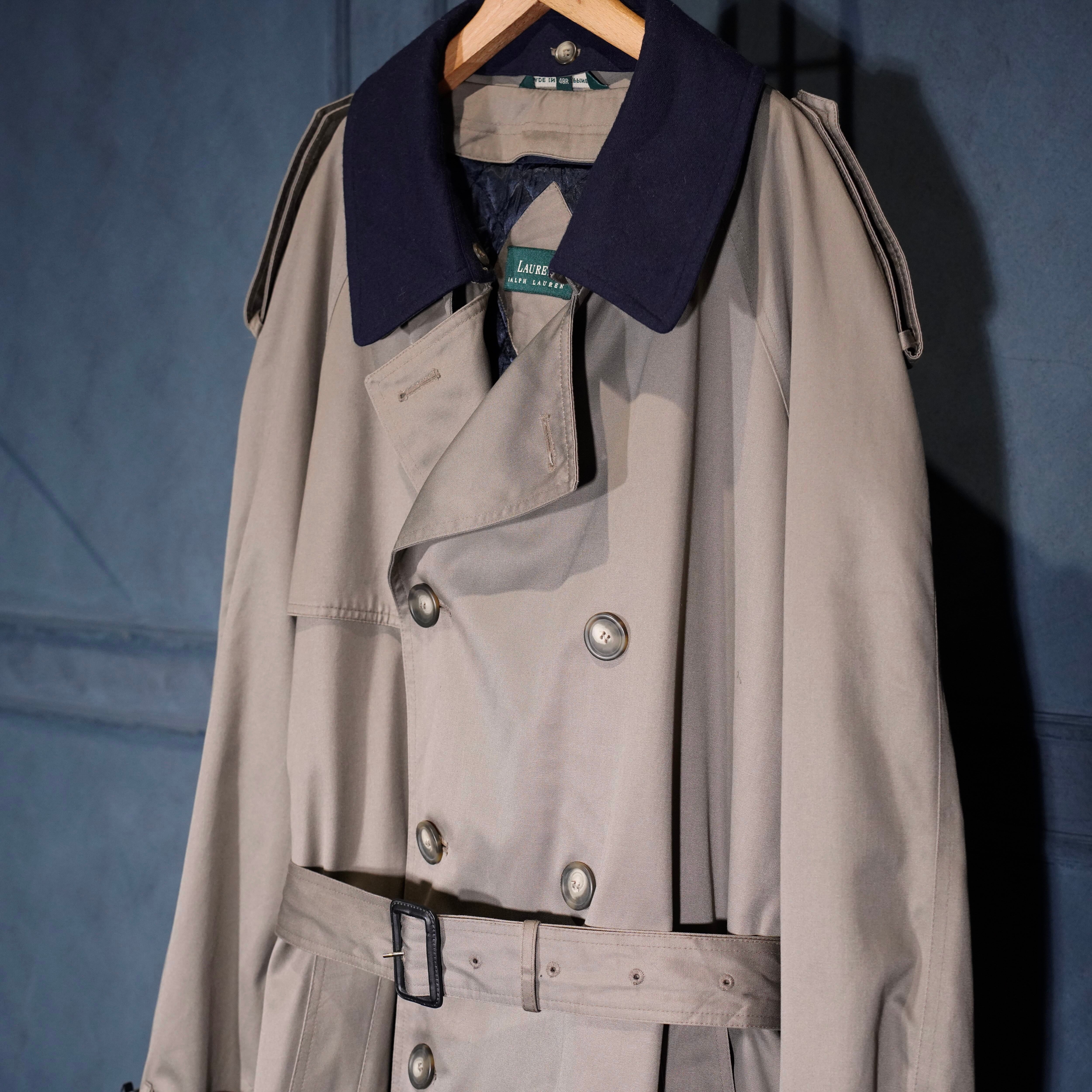 USA VINTAGE LAUREN RALPH LAUREN WOOL COLLAR BELTED DESIGN DOUBLE TRENCH COAT WITH WOOL LINER/アメリカ古着ローレンラルフローレンウール襟ベルテッドデザインウールライナー付ダブルトレンチコート