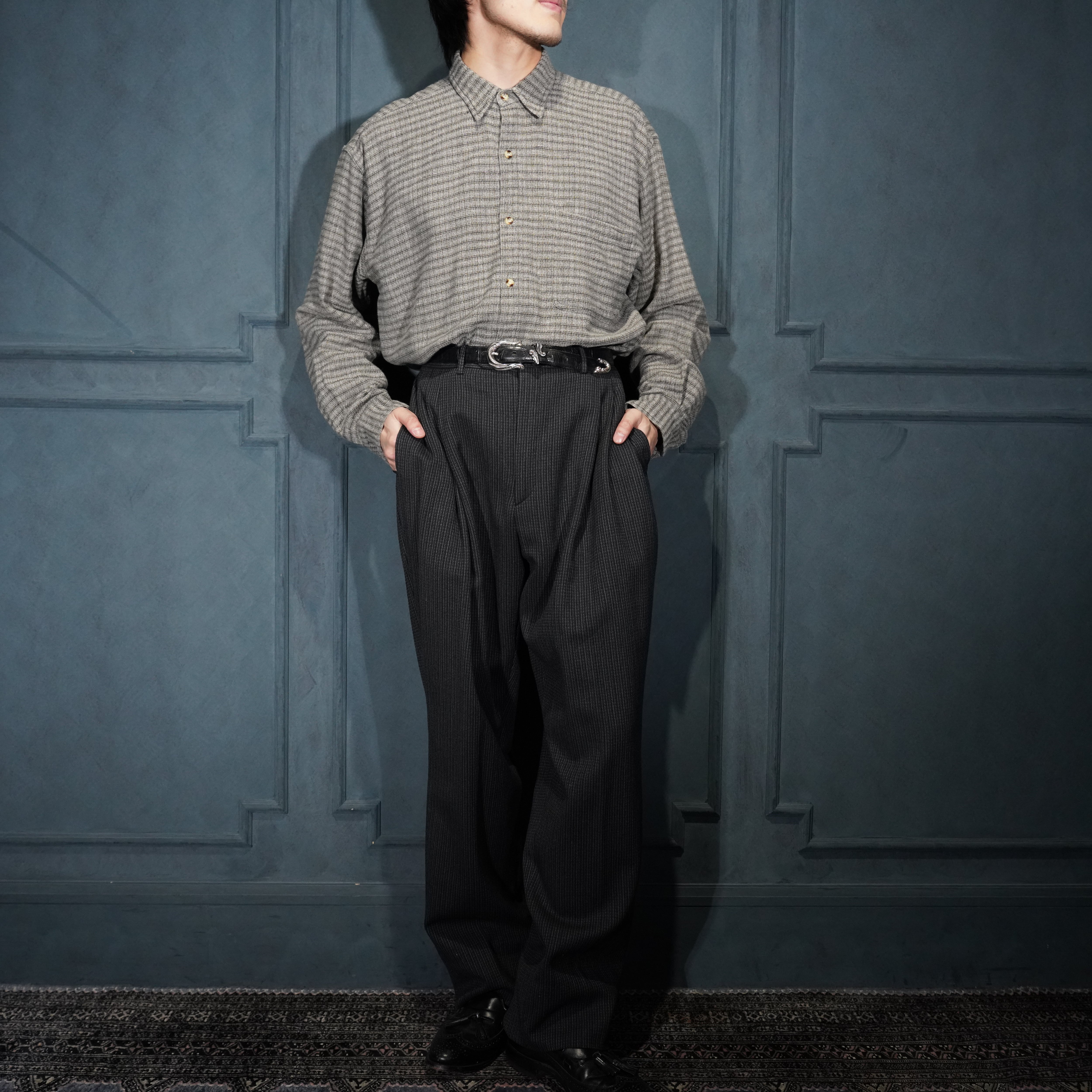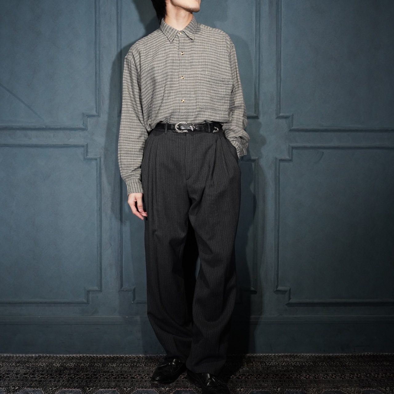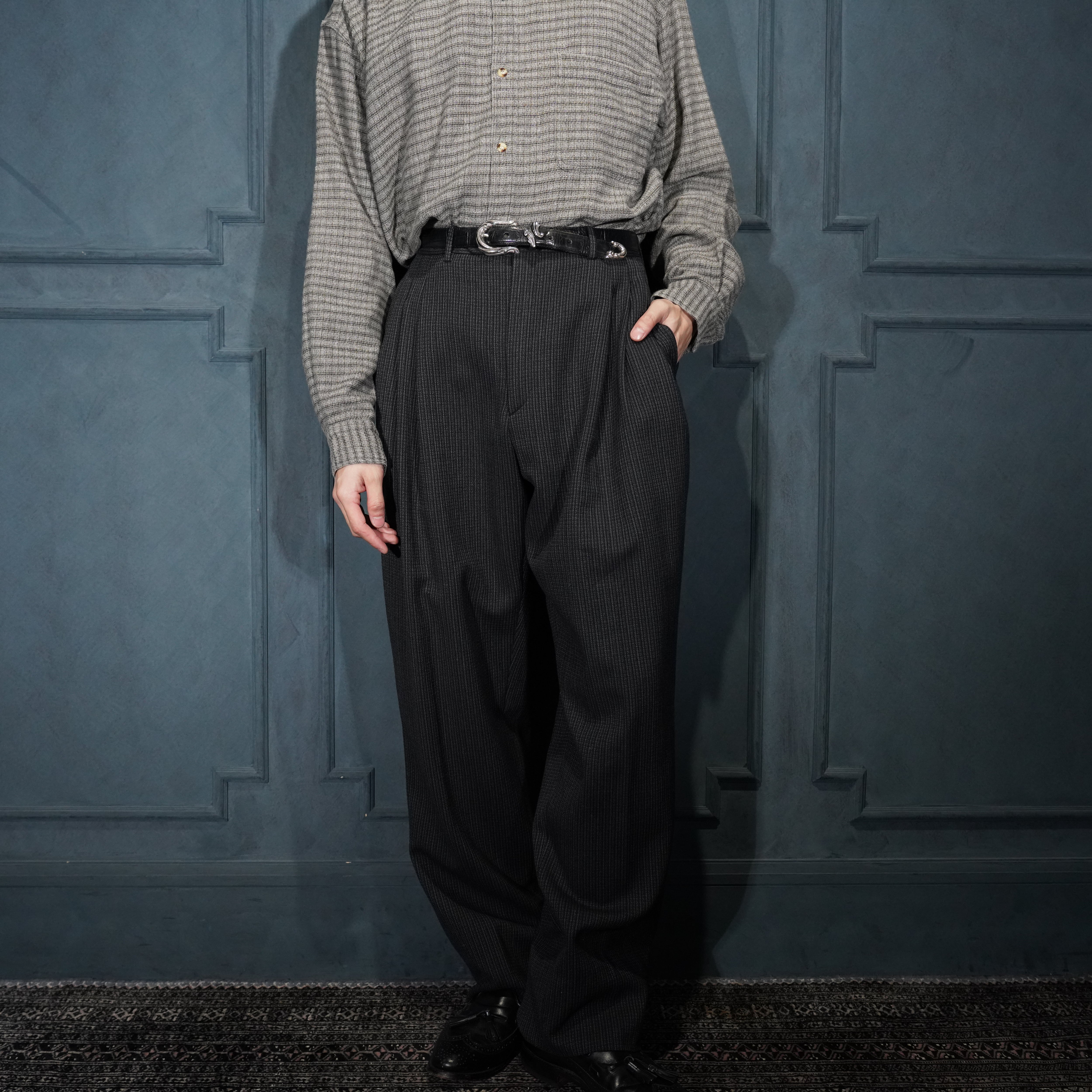 EU VINTAGE GABBANINI FIRENZE TUCK WOVEN DESIGN WOOL WIDE SLACKS PANTS/ヨーロッパ古着タック織デザインウールワイドスラックスパンツ