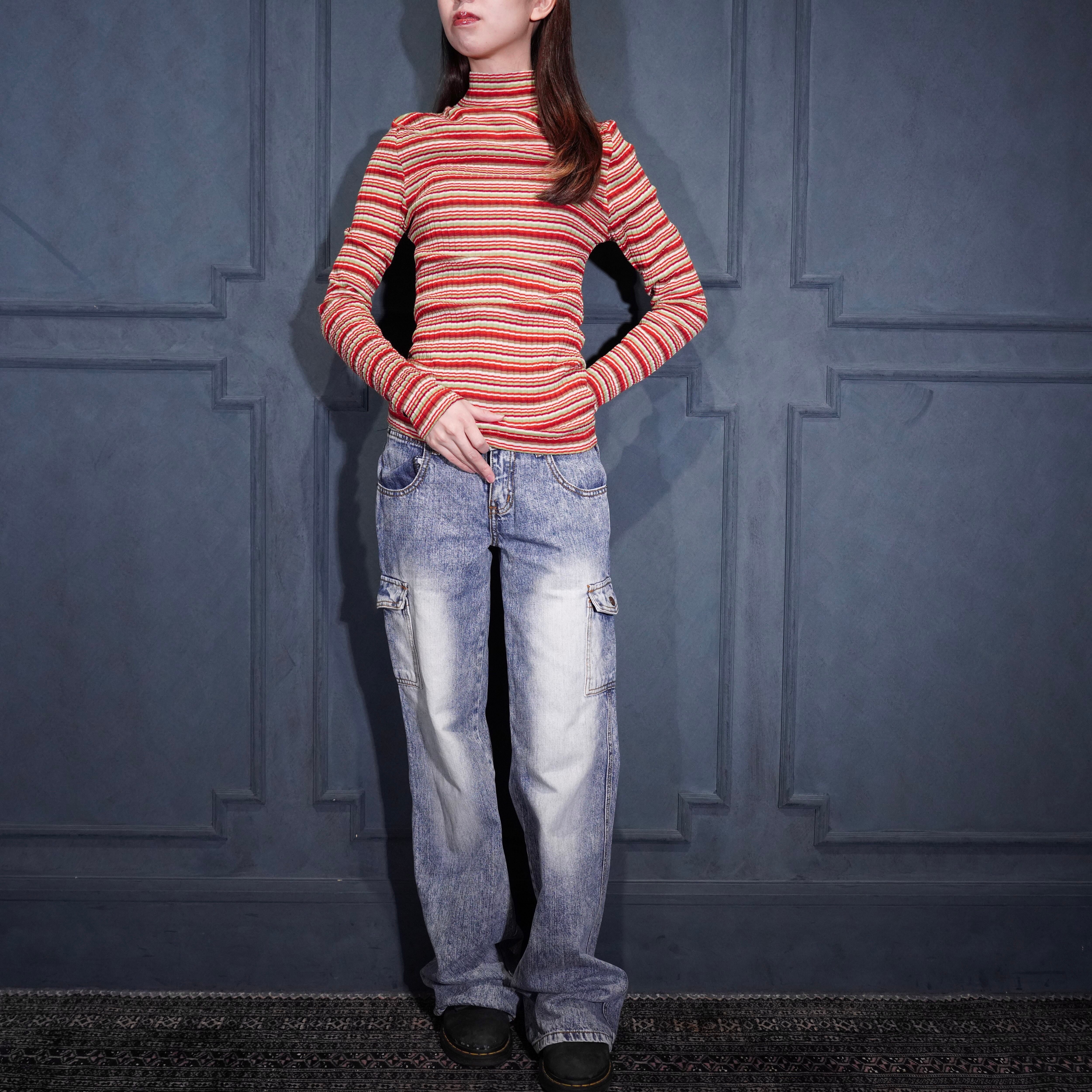EU VINTAGE BORDER PATTERNED KNIT CUT&SEWN/ヨーロッパ古着ボーダー柄ニットソー(カットソー)