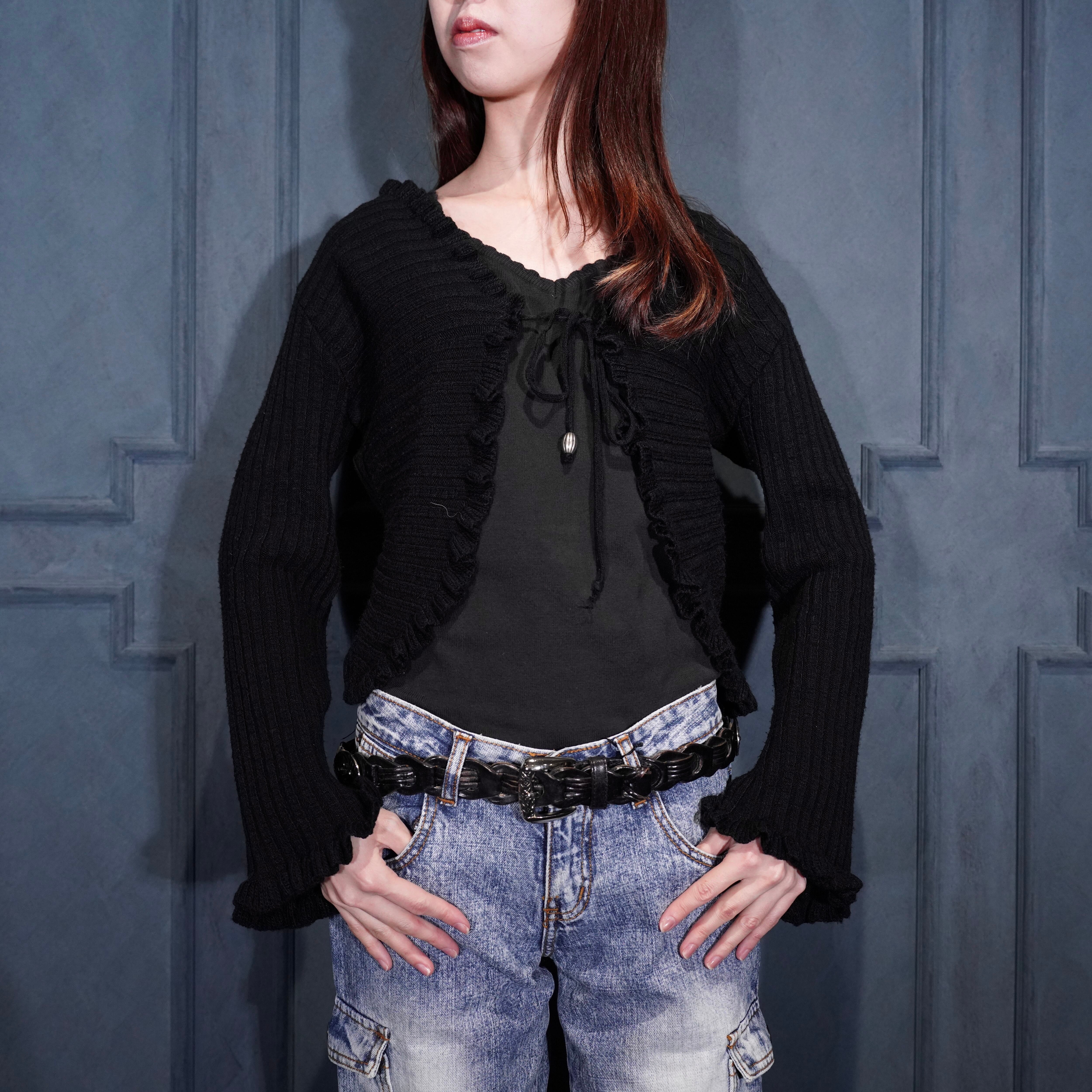 EU VINTAGE DPM By Depech Mod FRILL DESIGN BOLERO CARDIGAN MADE IN FRANCE/ヨーロッパ古着フリルデザインボレロカーディガン