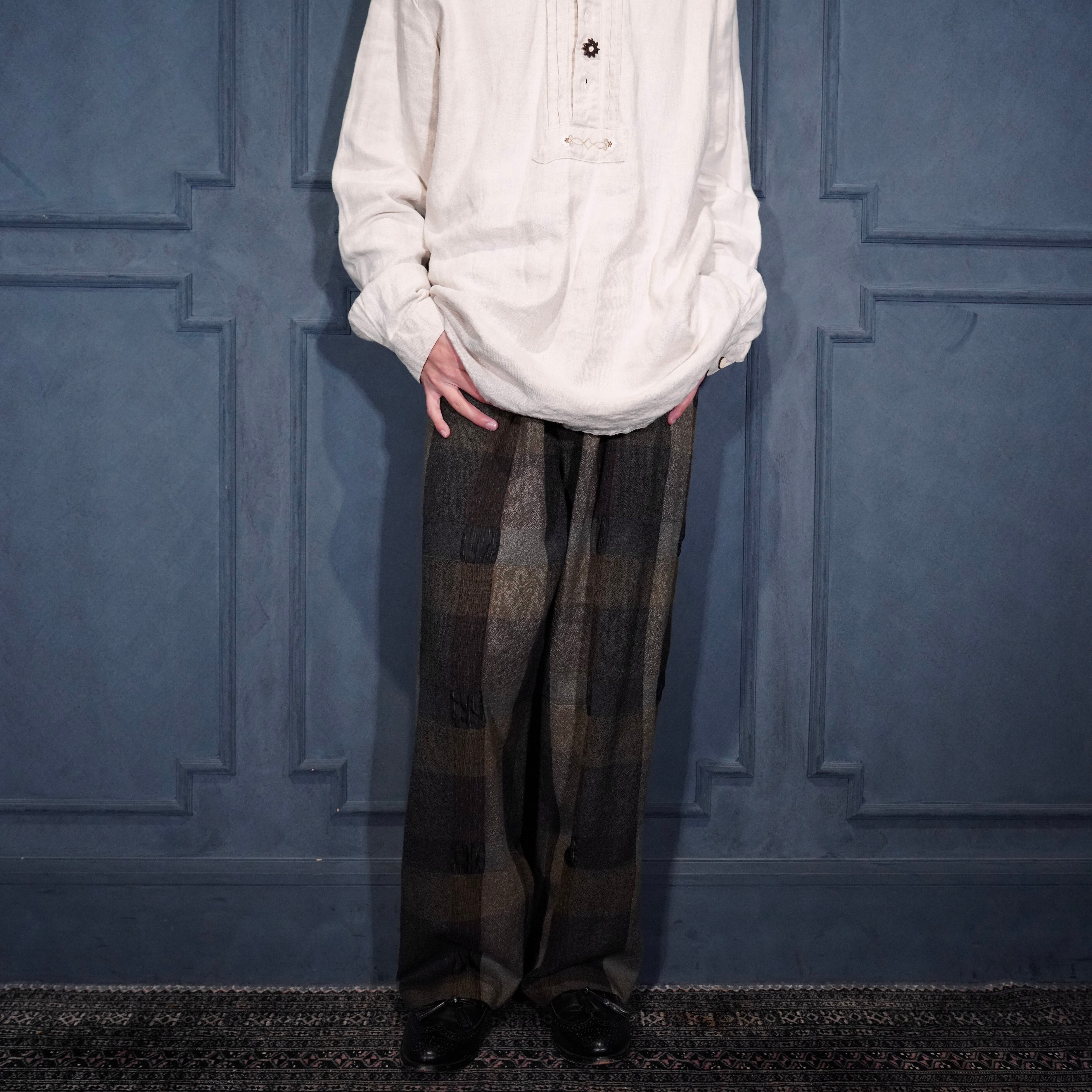 EU VINTAGE ISCHIKO CHECK PATTERNED WOVEN DESIGN PANTS MADE IN AUSTRIA/ヨーロッパ古着チェック柄織デザインパンツ