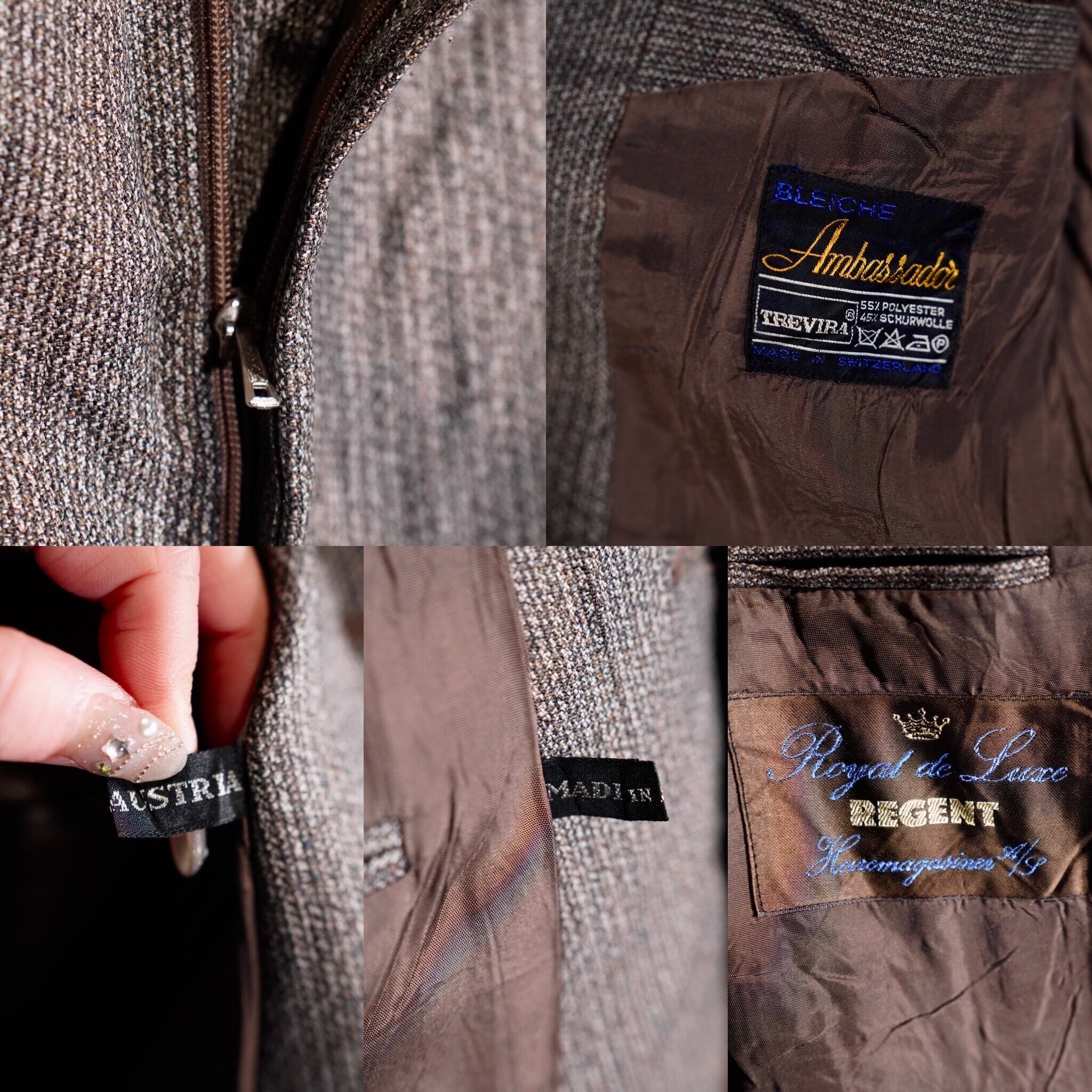 60’s〜70’s EU VINTAGE BLEICHE TREVIRA Ambassador Royal de Luxe REGENT Haremagasiner s. WOVEN DESIGN WOOL SET UP SUIT MADE IN AUSTRIA/60年代〜70年代ヨーロッパ古着織デザインウールセットアップスーツ