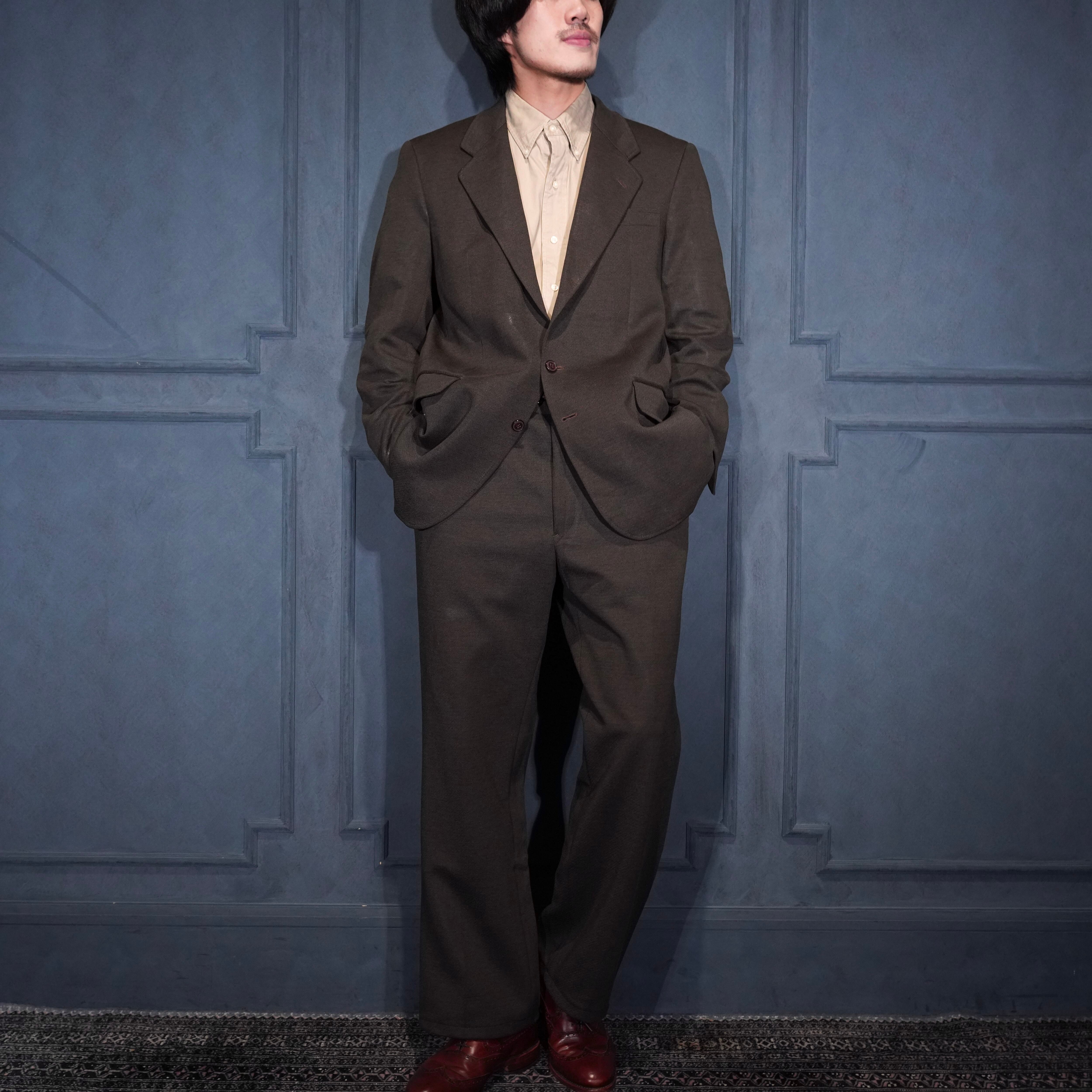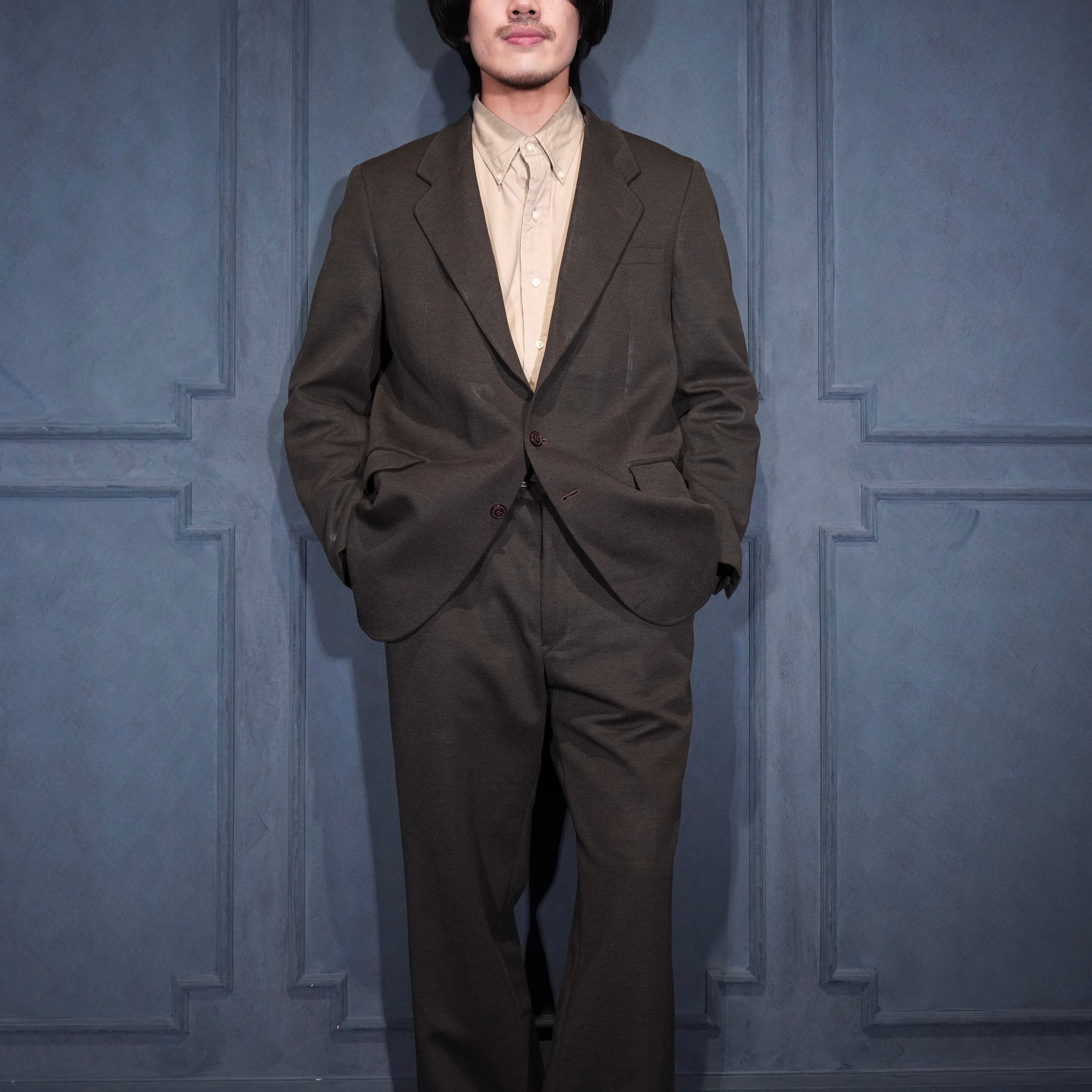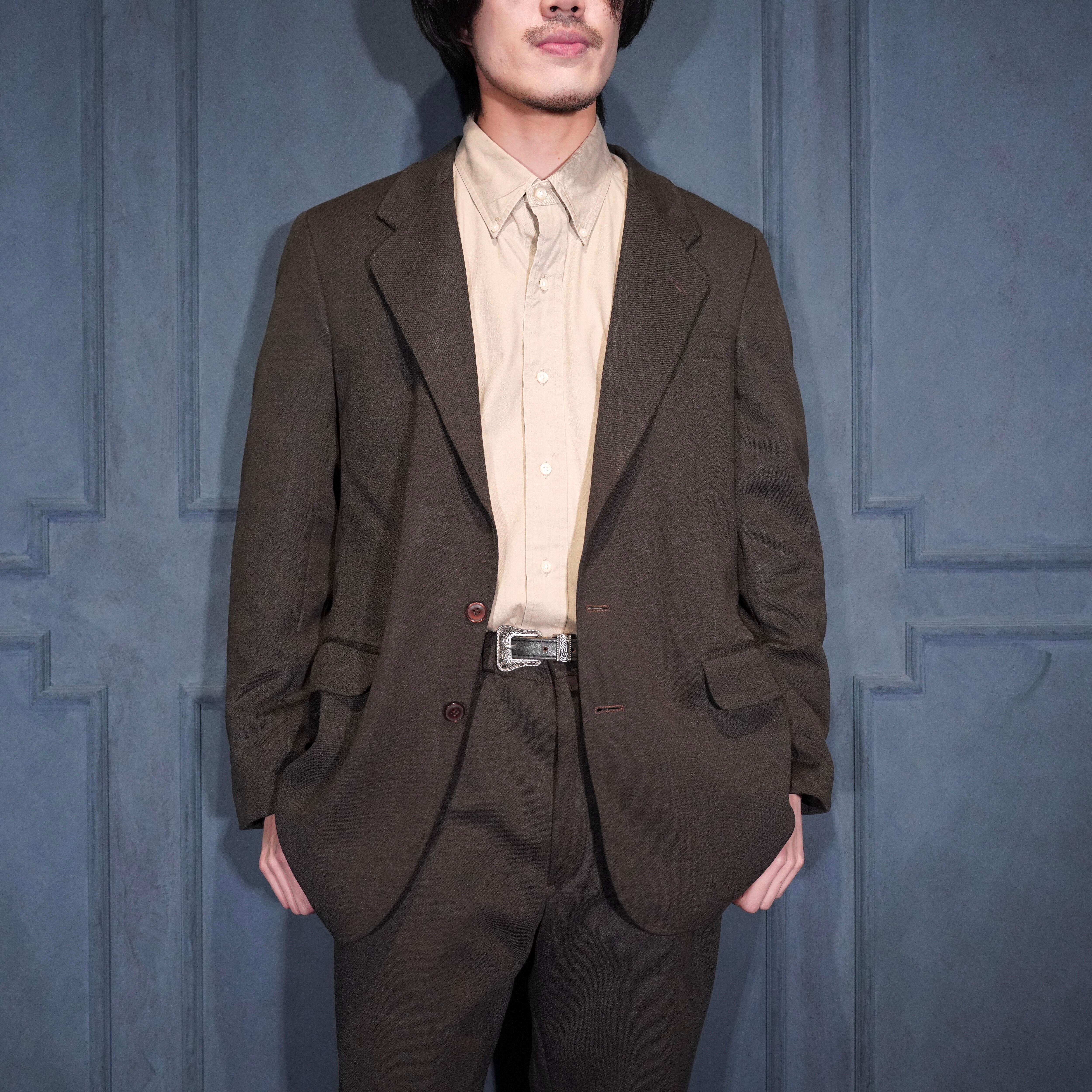 EU VINTAGE BECON BROWN COLOR DESIGN SET UP SUIT/ヨーロッパ古着ブラウンカラーデザインセットアップスーツ