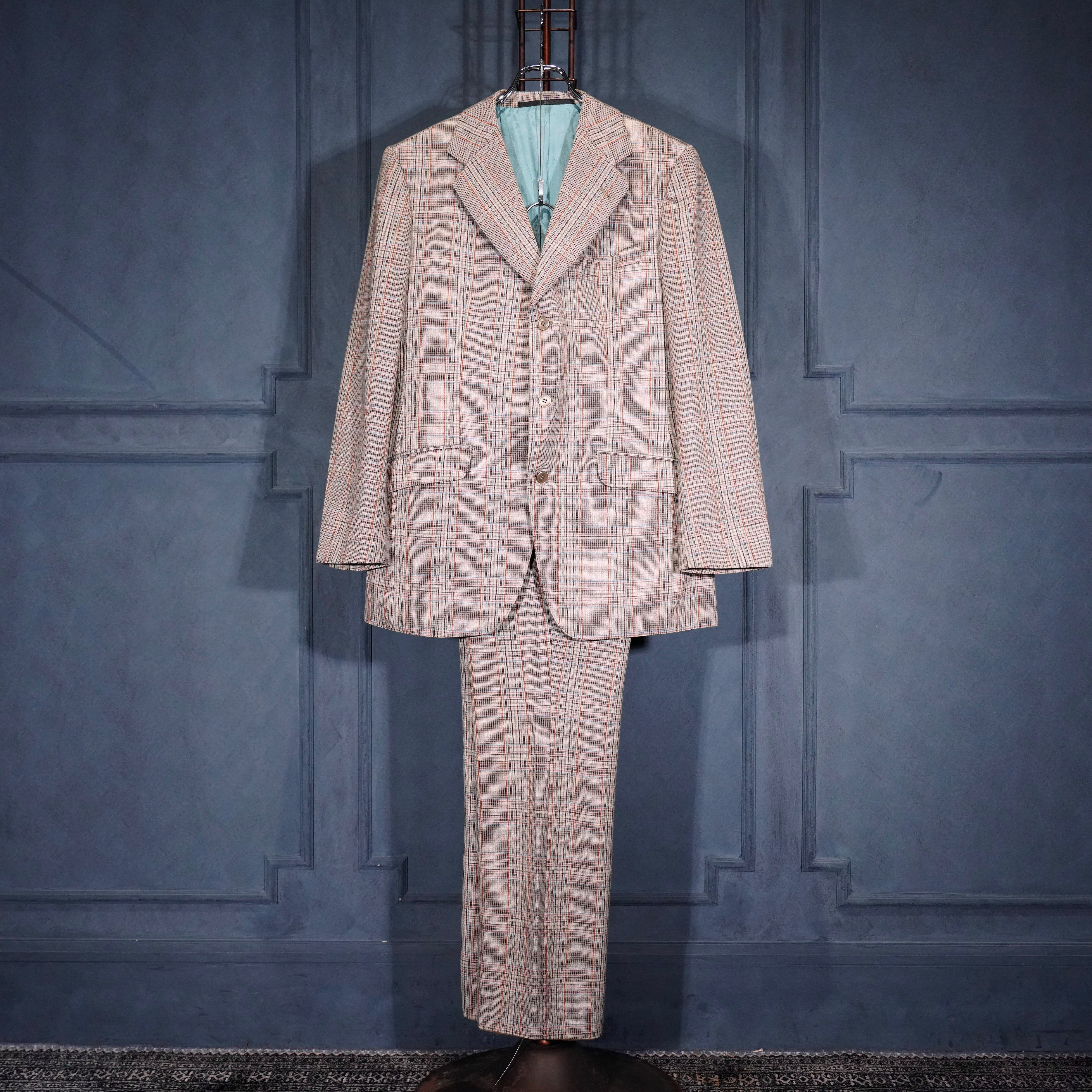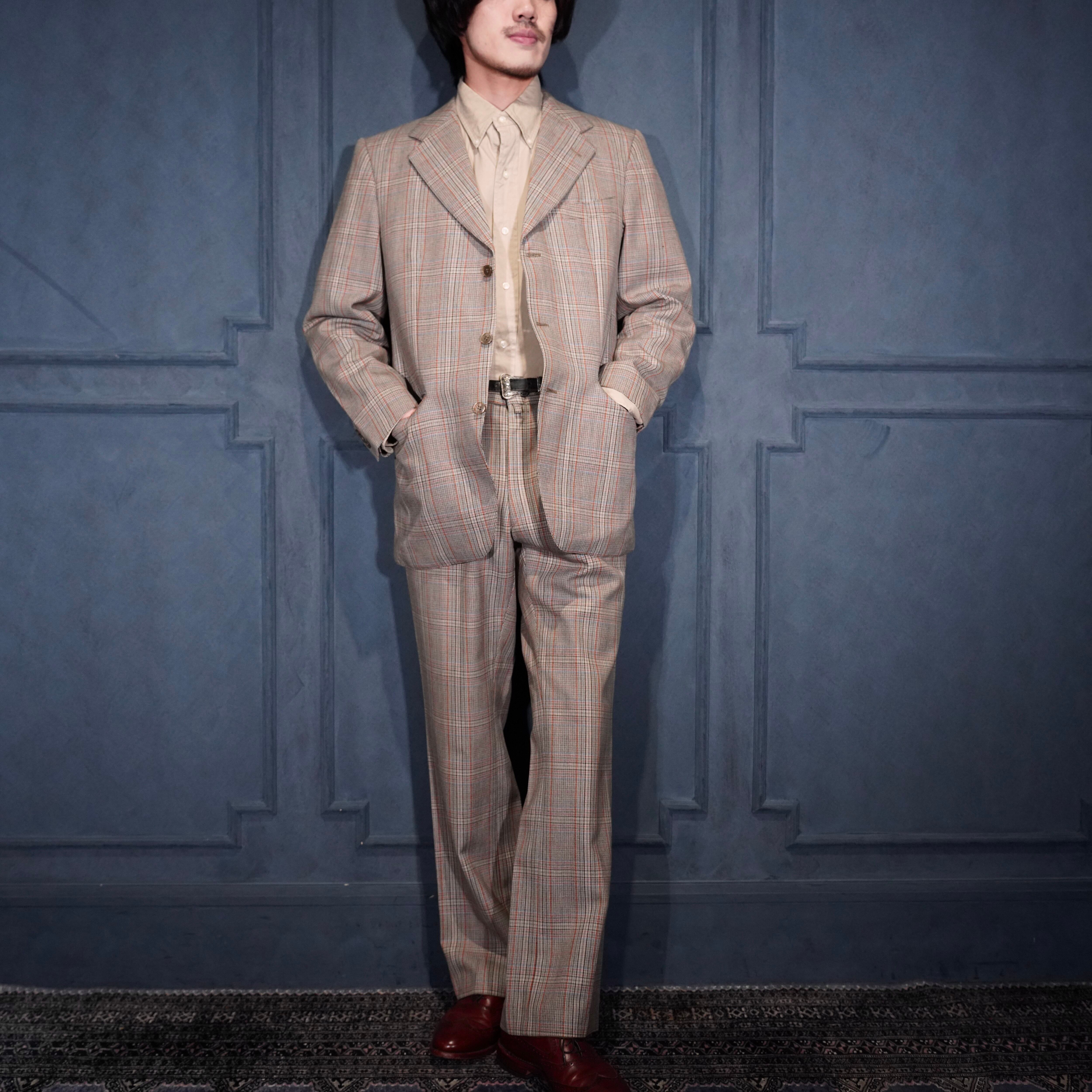60’s〜70’s EU VINTAGE Die Dauerbügelfalte SIROSET CHECK PATTERNED WOOL SET UP SUIT/60年代〜70年代ヨーロッパ古着チェック柄ウールセットアップスーツ