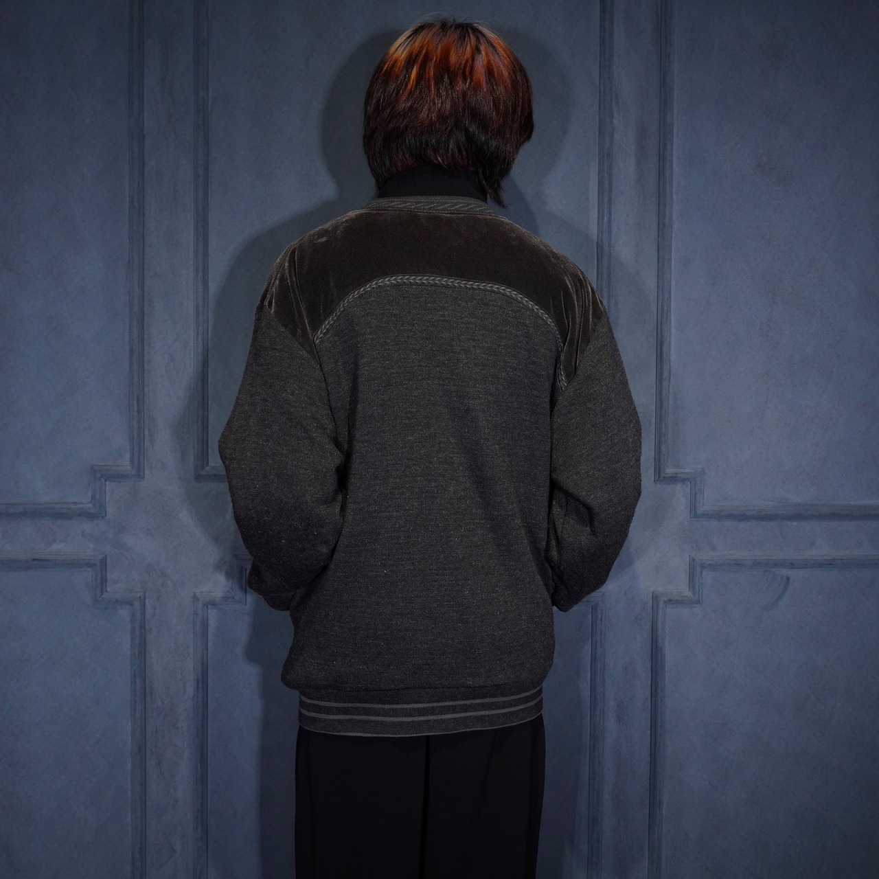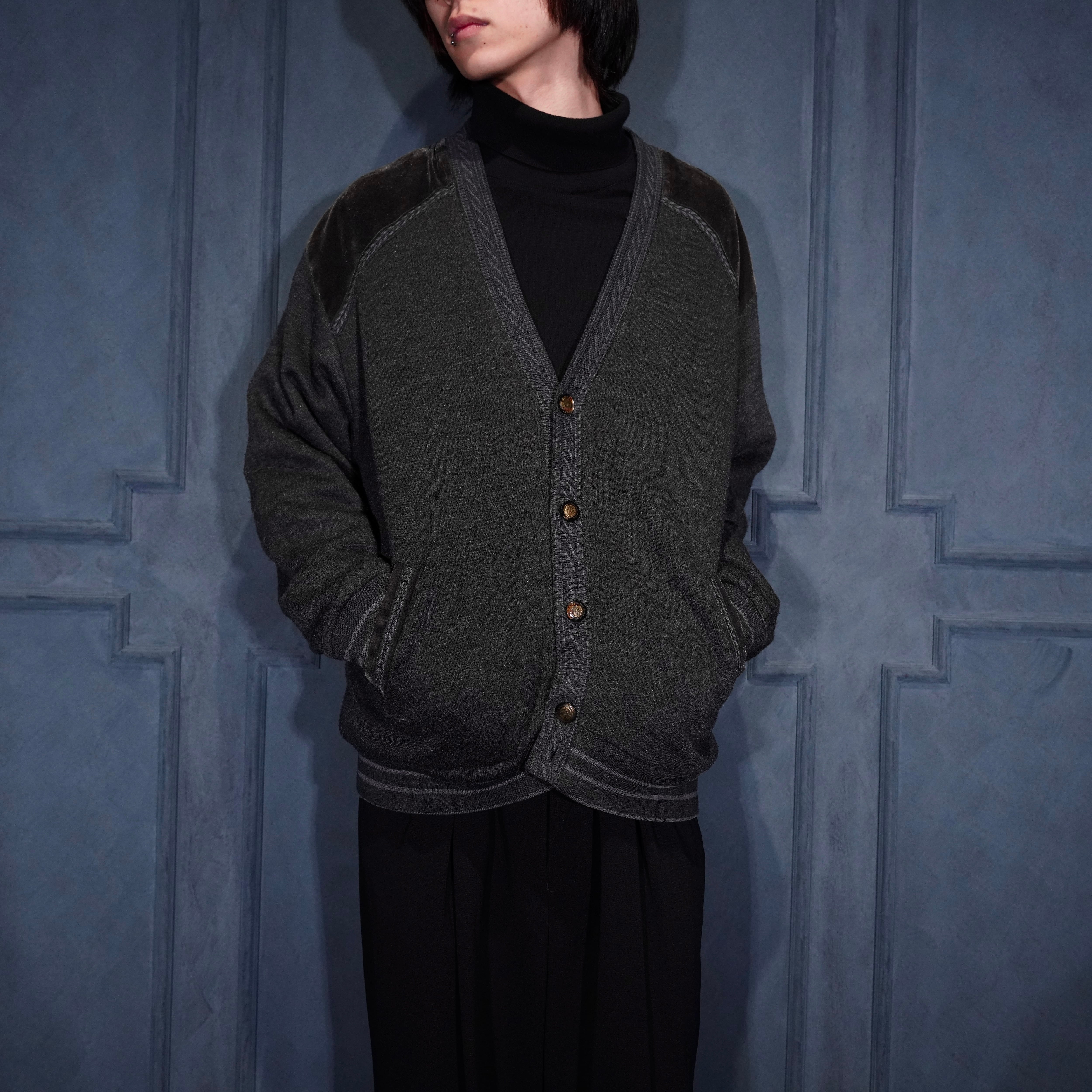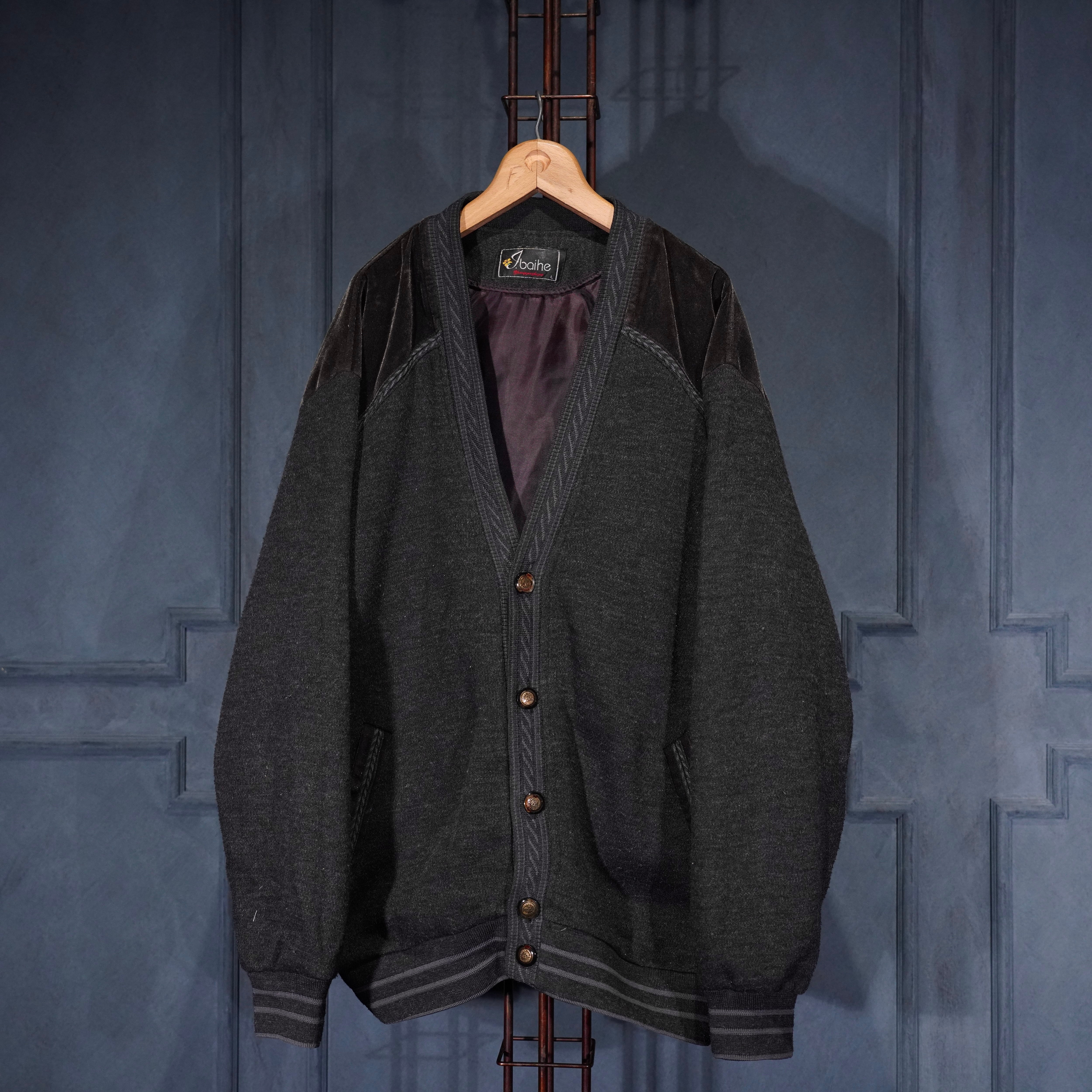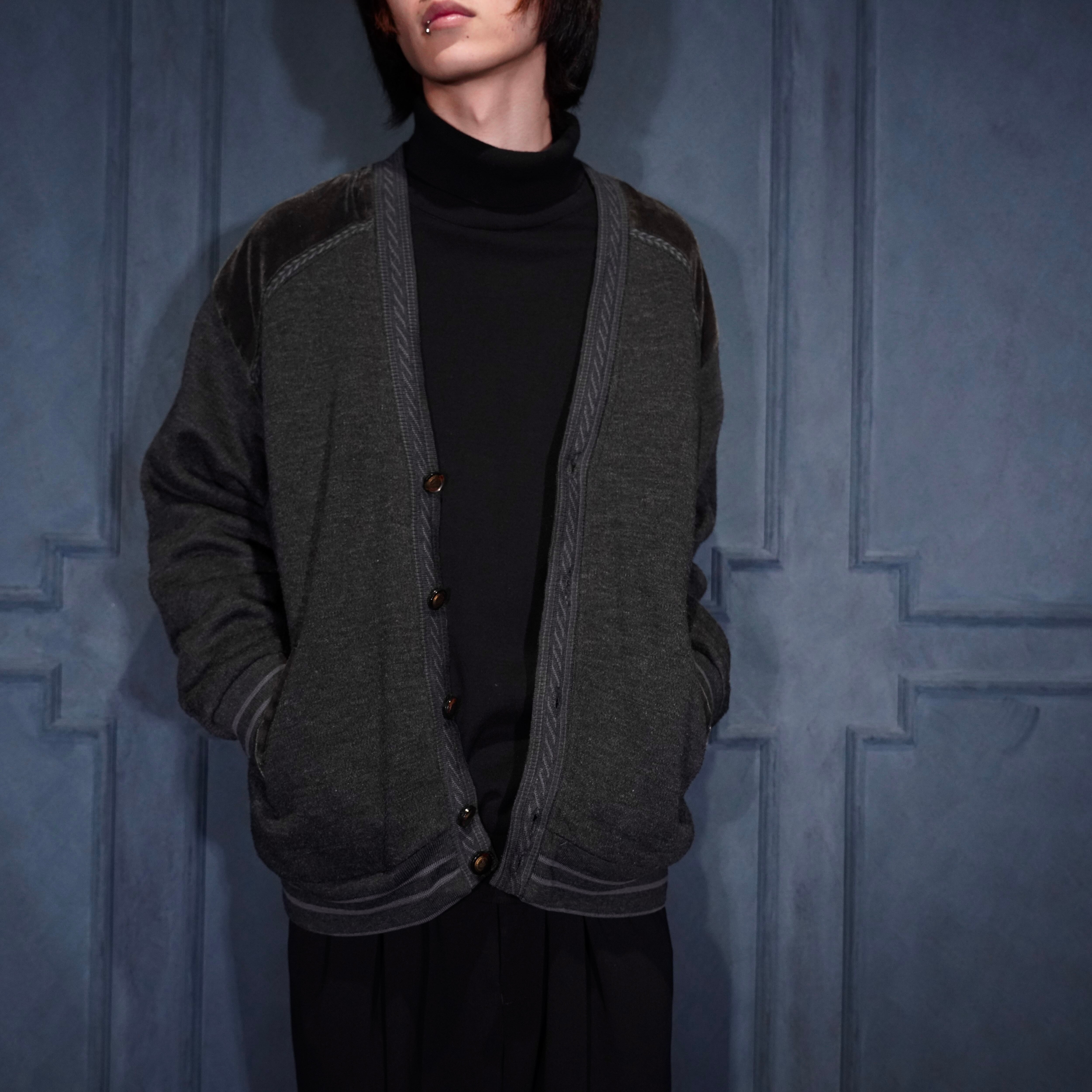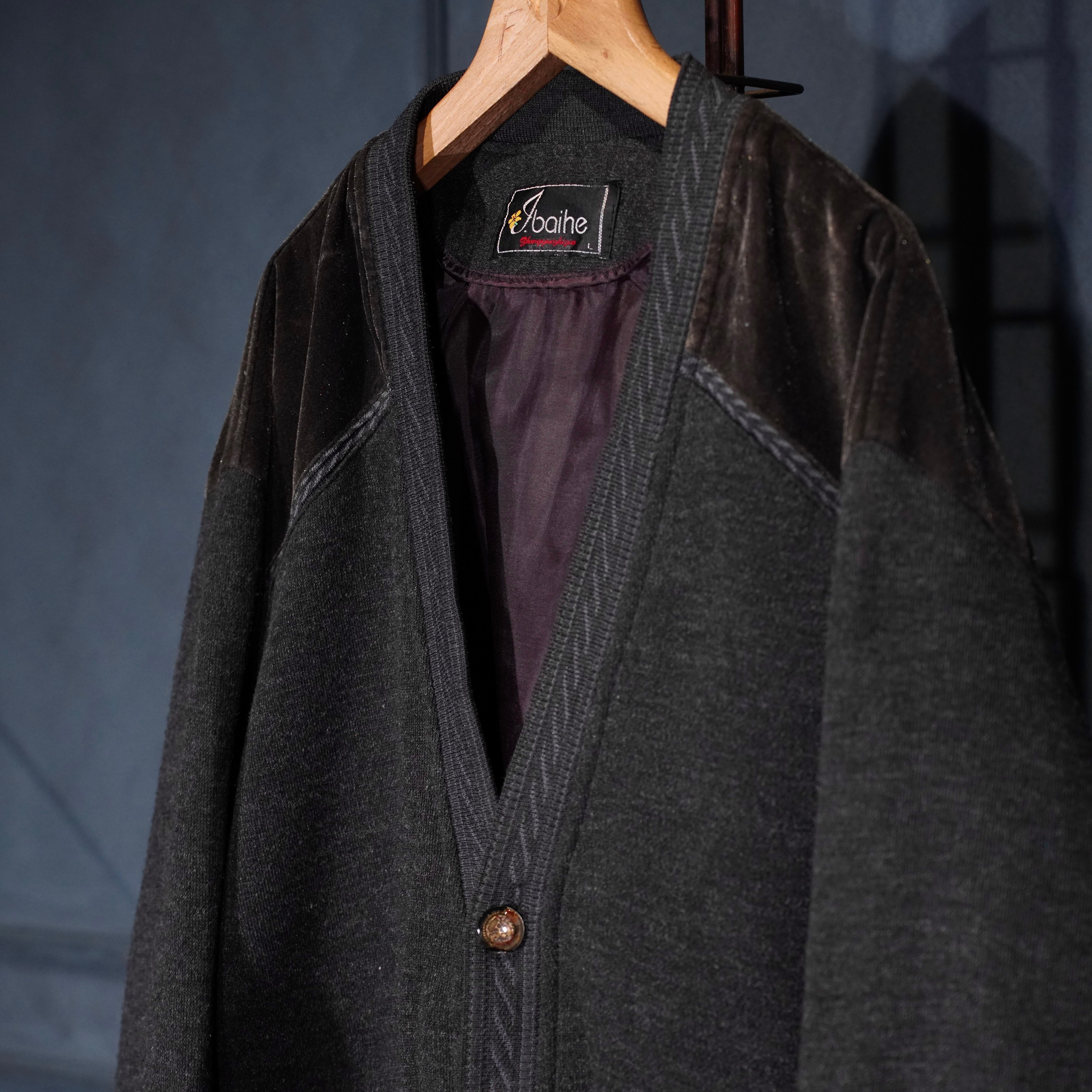 EU VINTAGE Ibaihe VELOUR PATCH DESIGN WOOL KNIT CARDIGAN/ヨーロッパ古着ベロアパッチデザインウールニットカーディガン