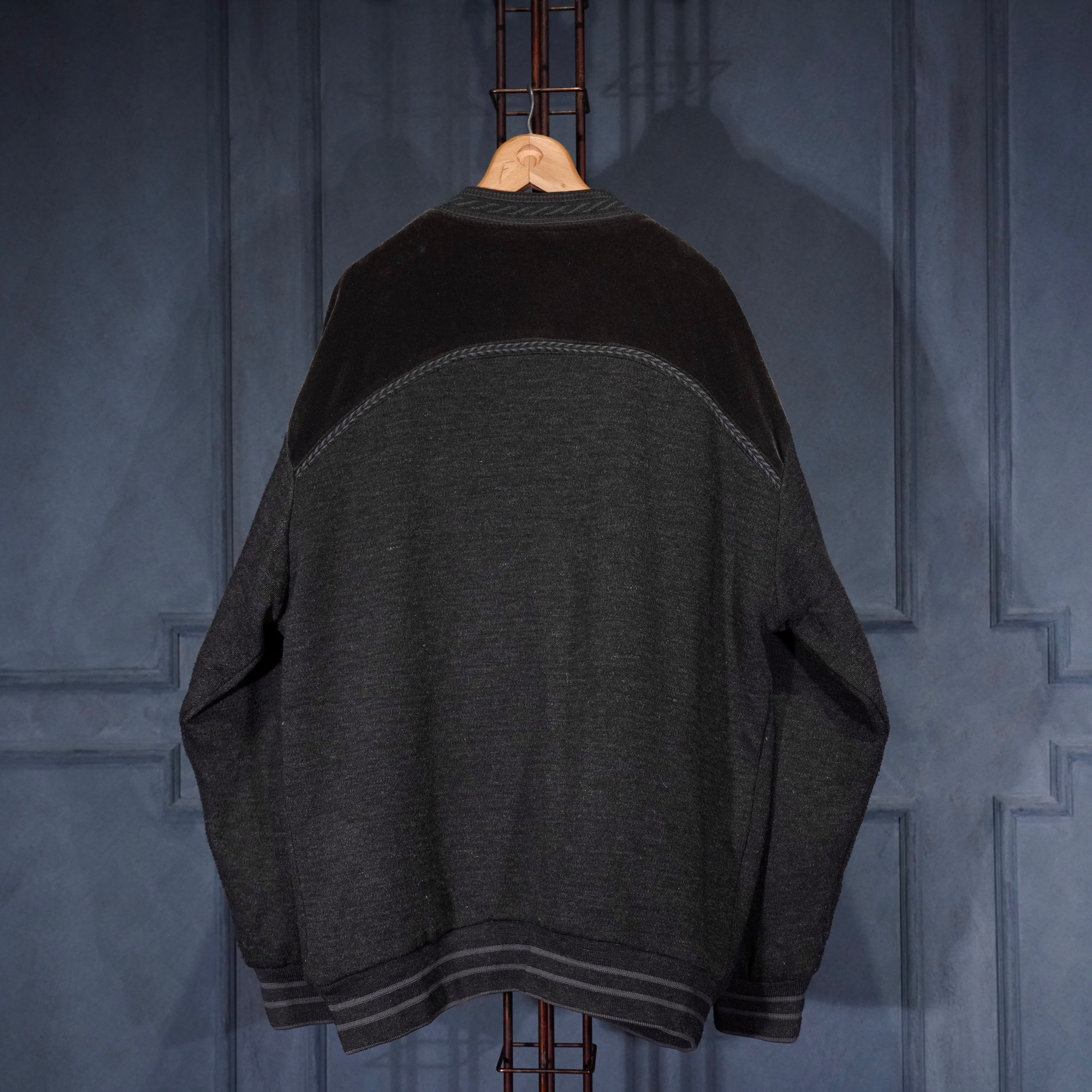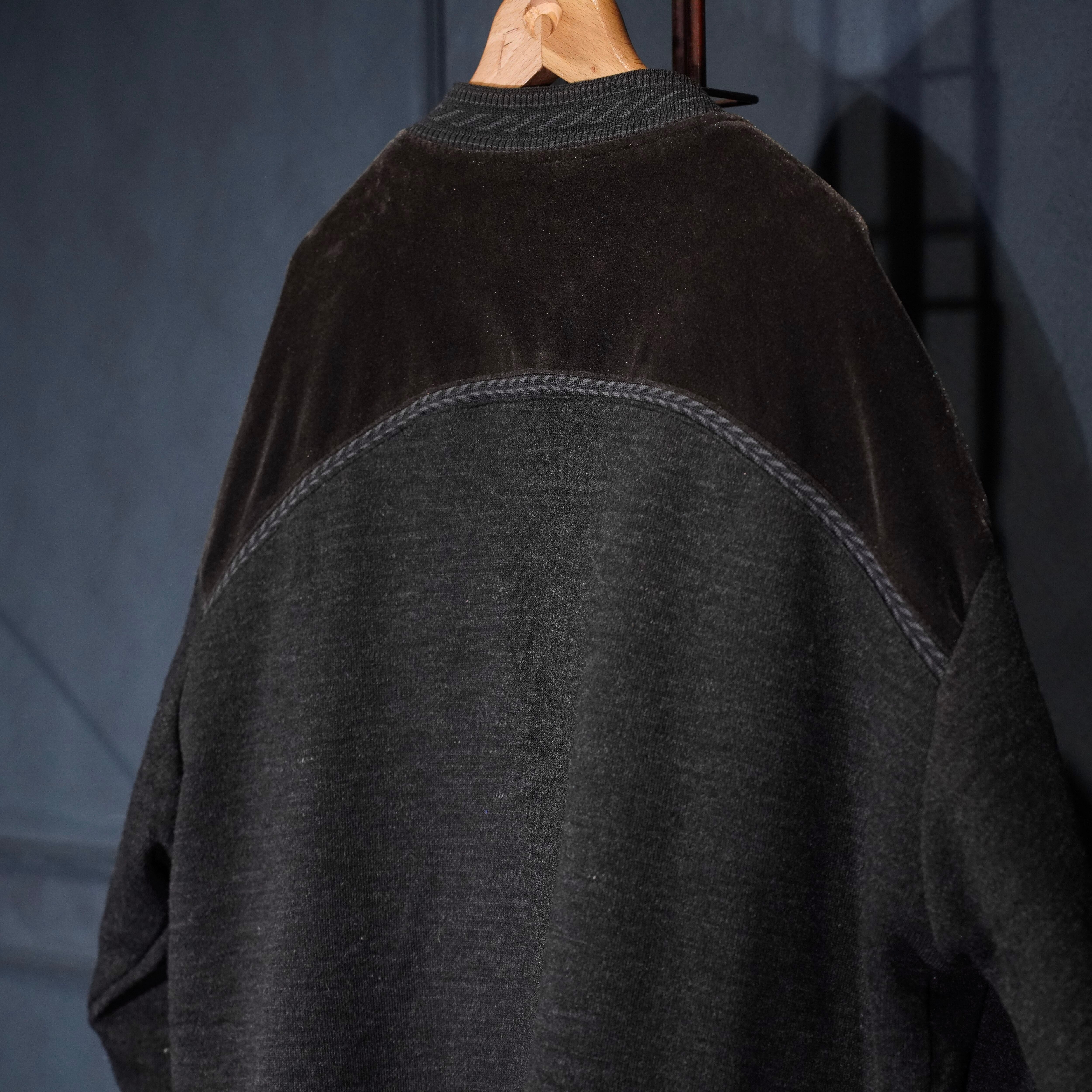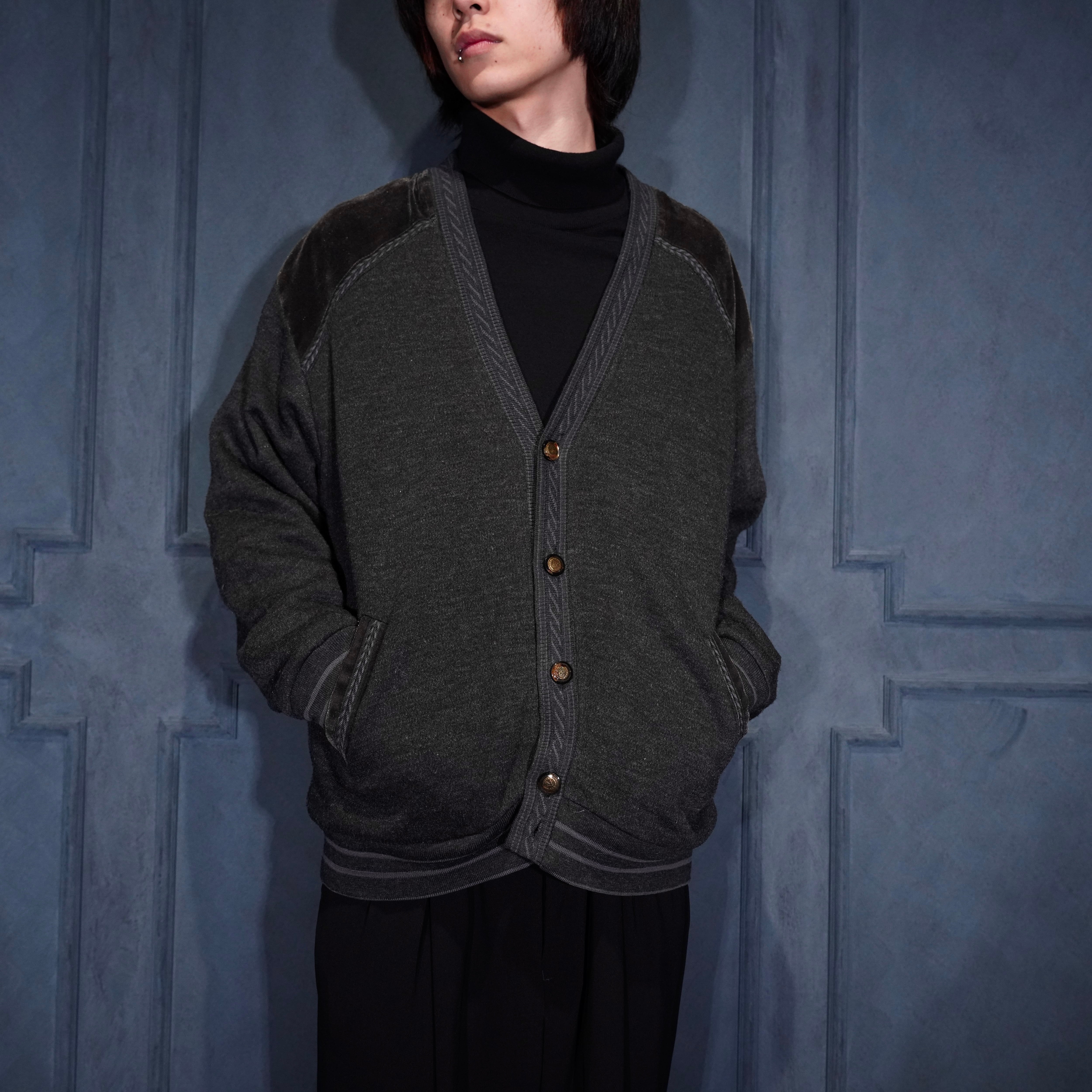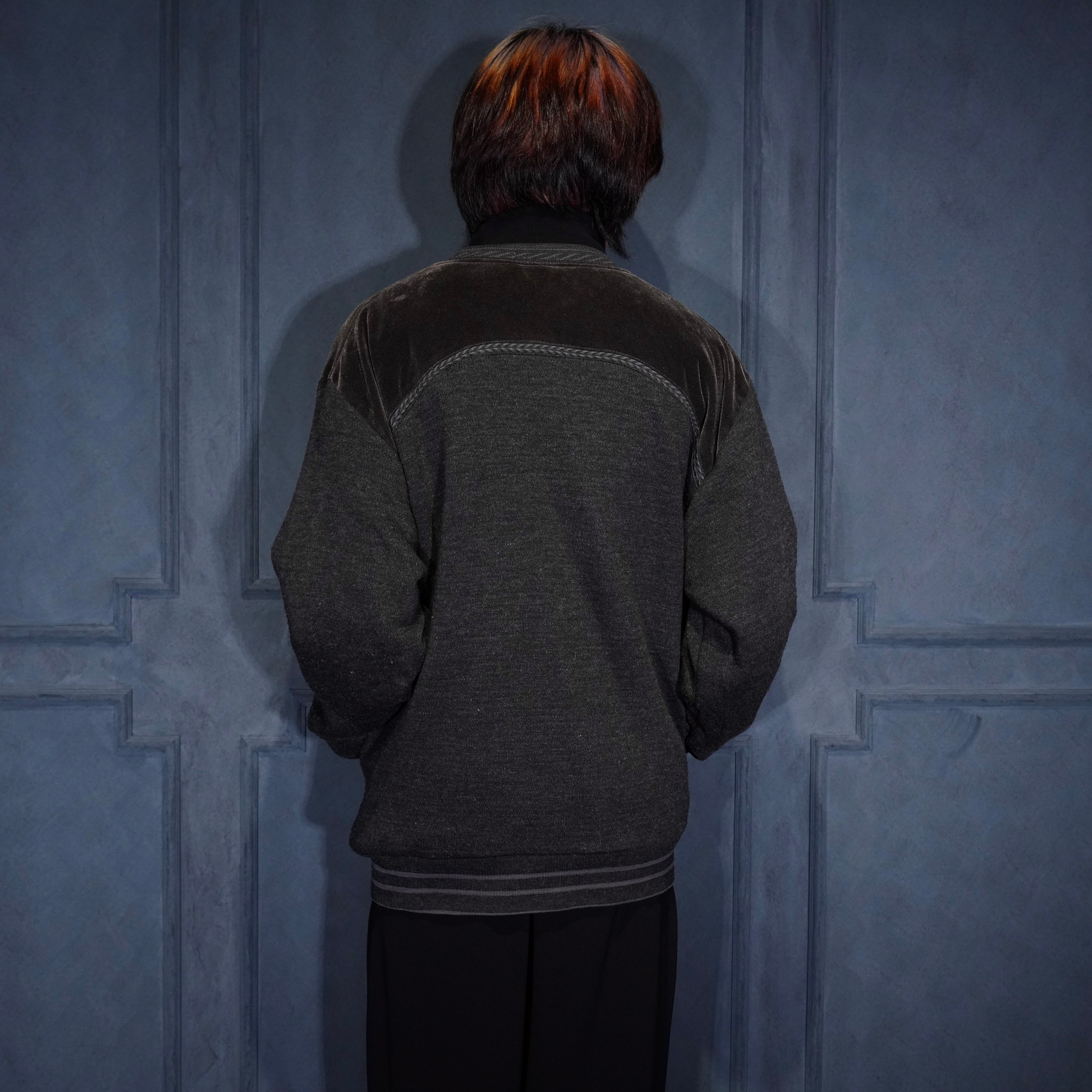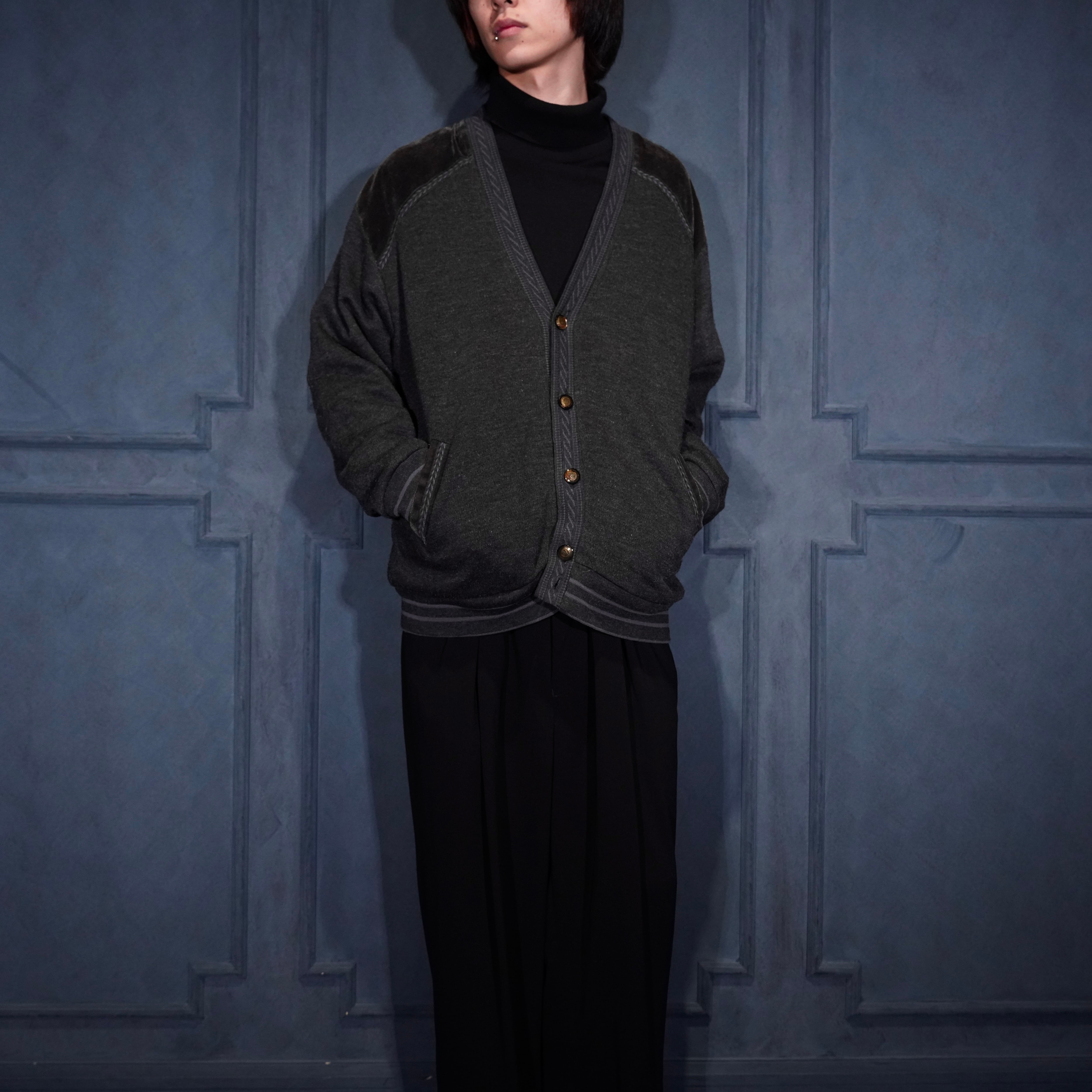 EU VINTAGE Ibaihe VELOUR PATCH DESIGN WOOL KNIT CARDIGAN/ヨーロッパ古着ベロアパッチデザインウールニットカーディガン