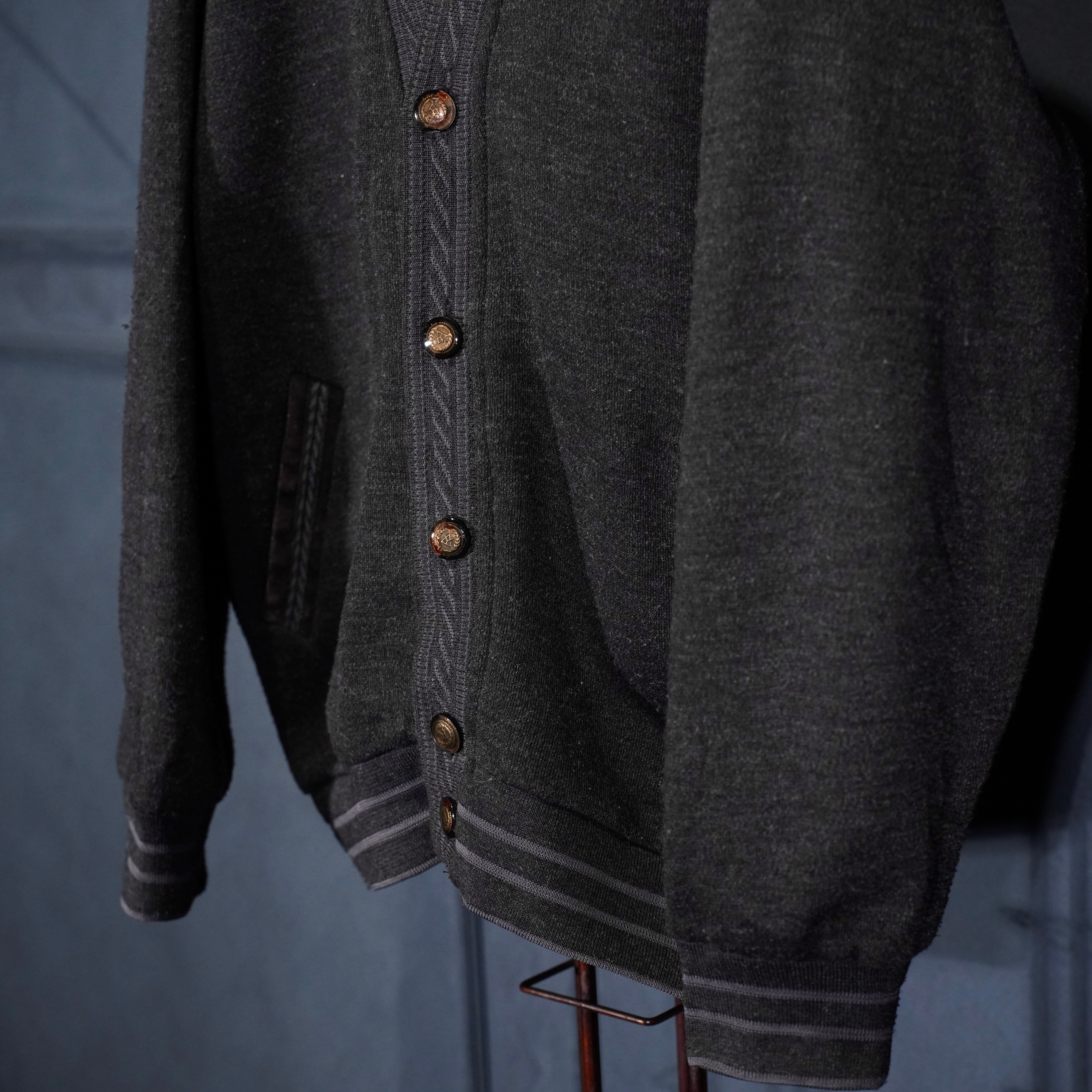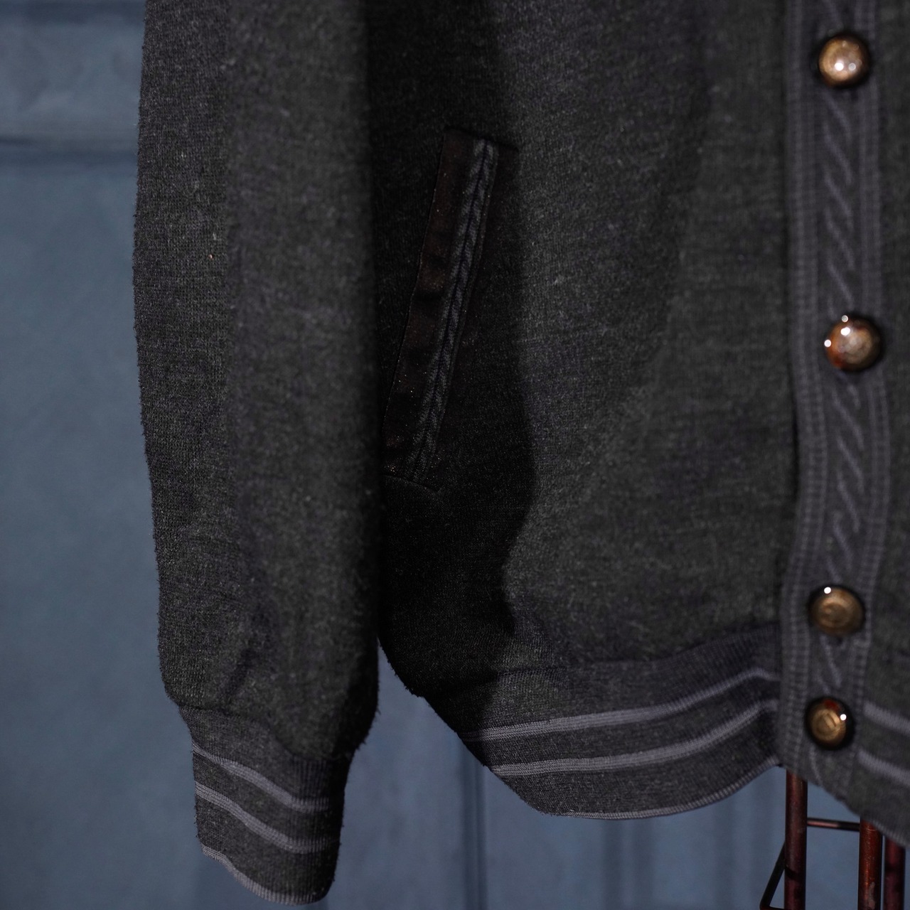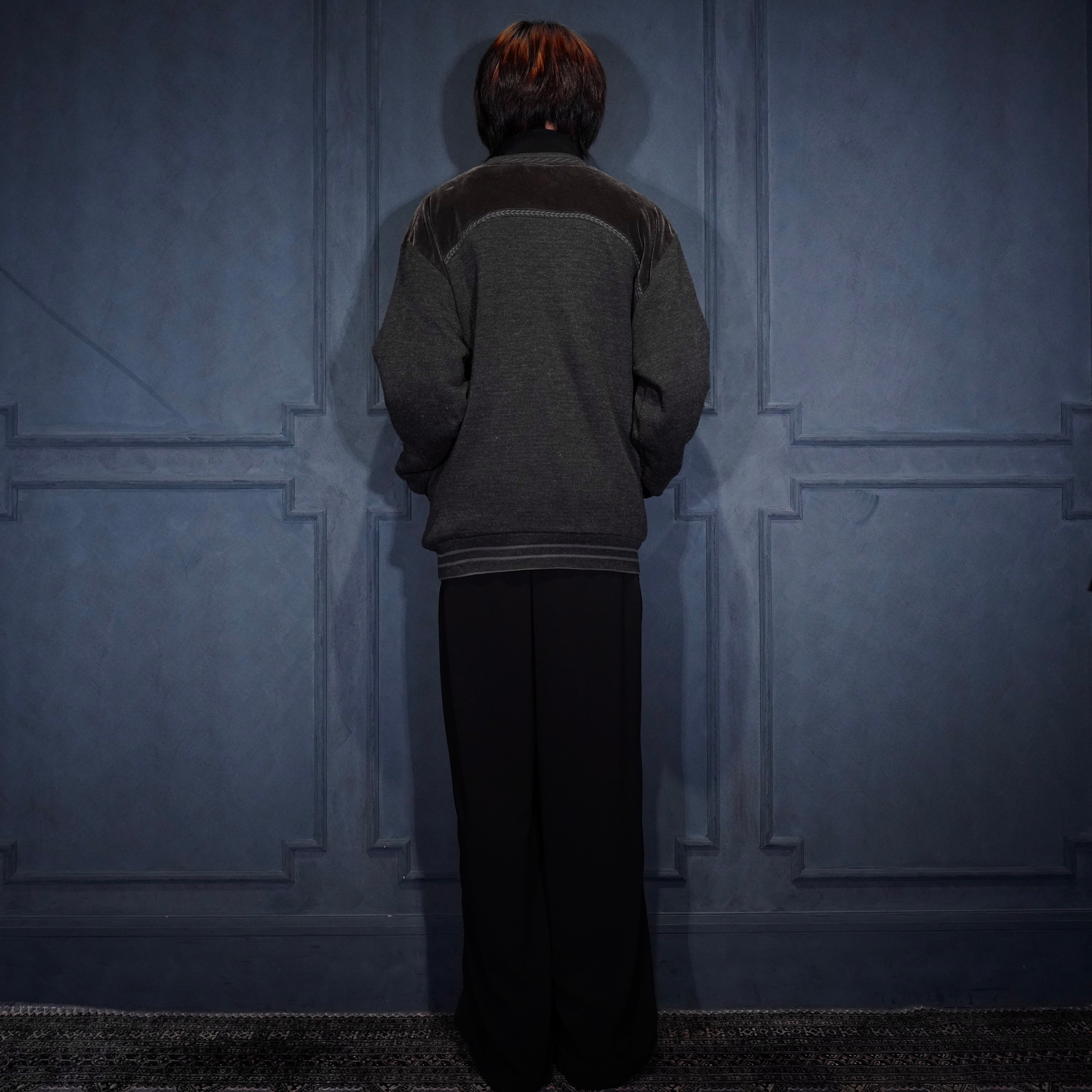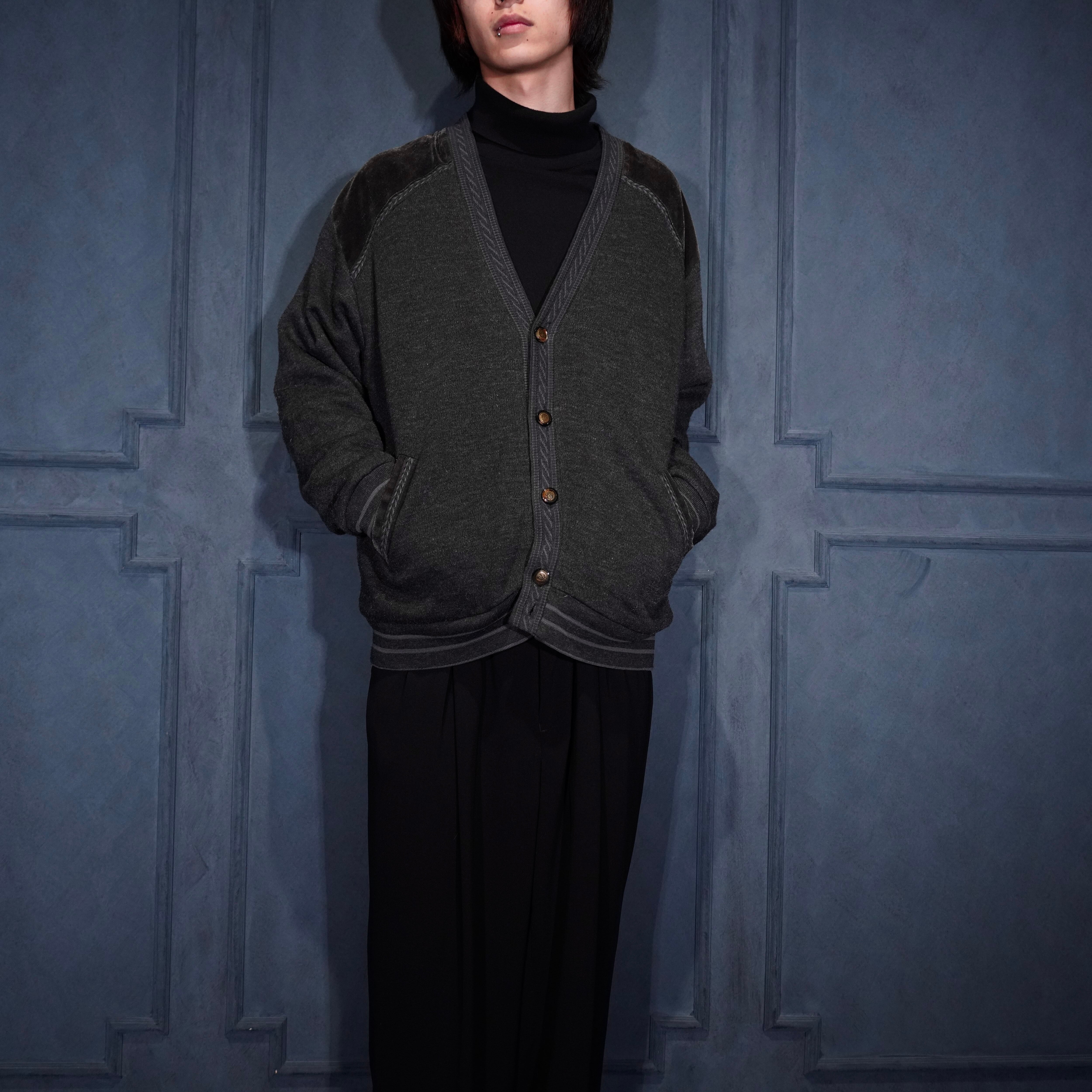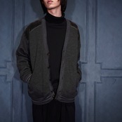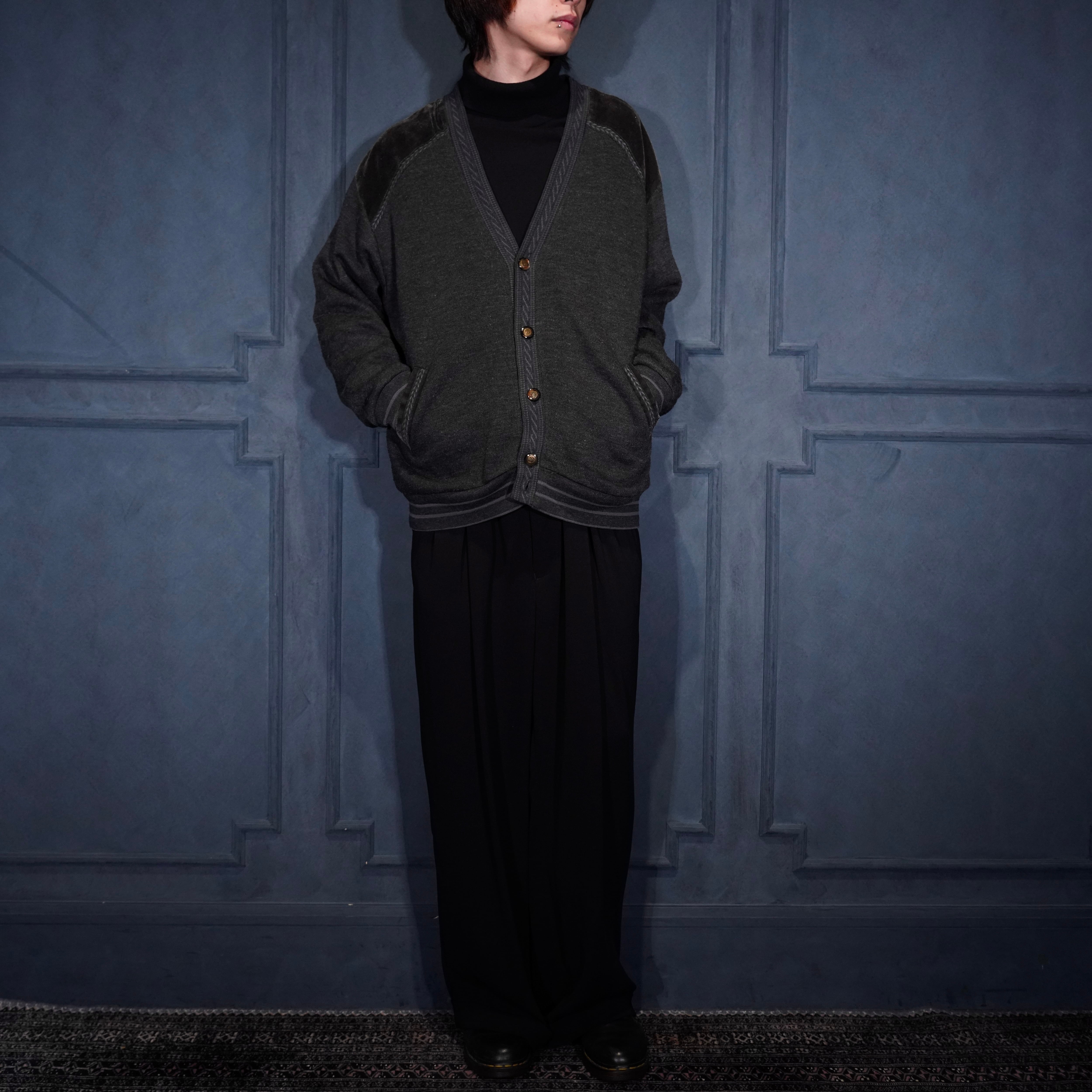 EU VINTAGE Ibaihe VELOUR PATCH DESIGN WOOL KNIT CARDIGAN/ヨーロッパ古着ベロアパッチデザインウールニットカーディガン