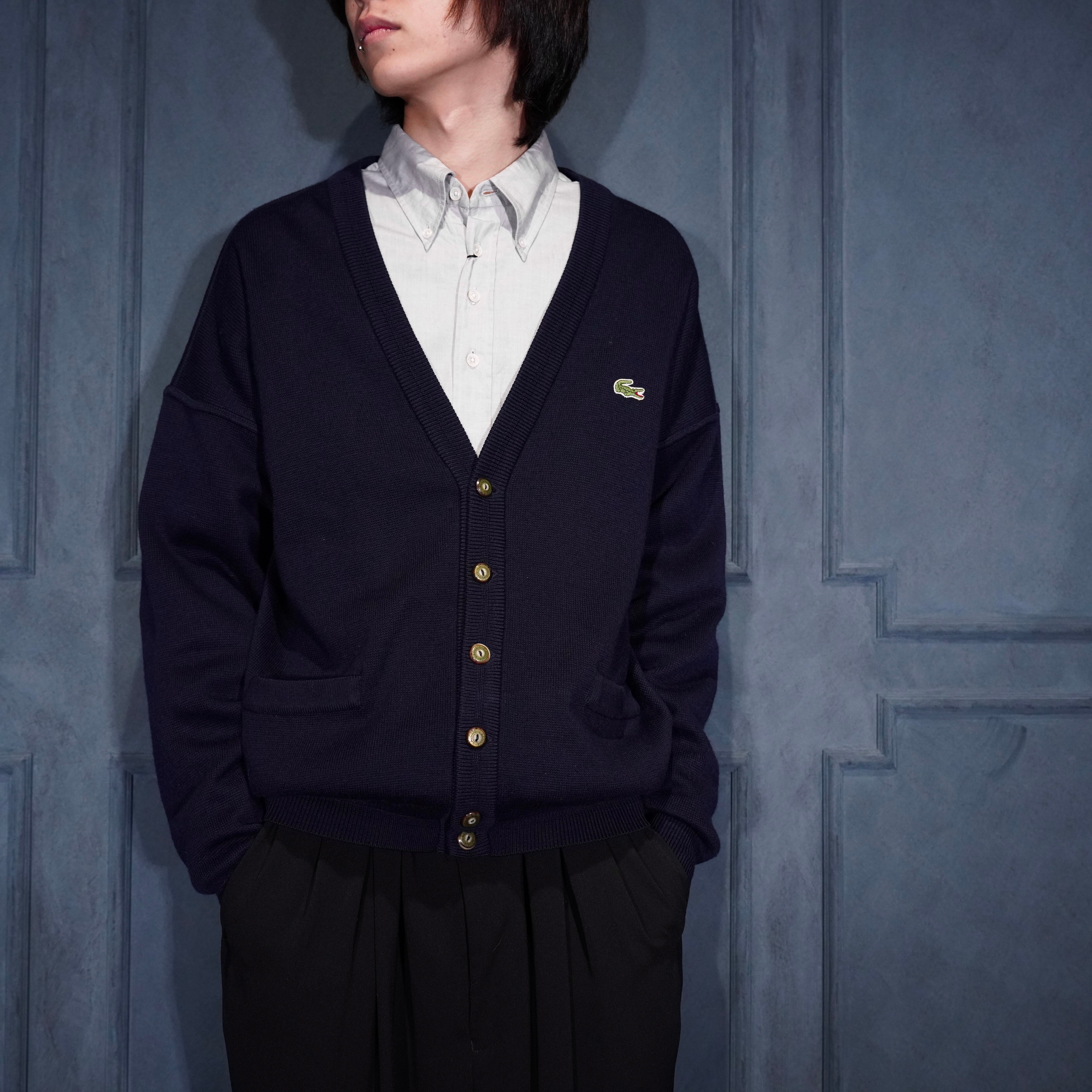 EU VINTAGE CHEMISE LACOSTE LOGO EMBROIDERY DESIGN WOOL KNIT CARDIGAN/ヨーロッパ古着ラコステロゴ刺繍ウールニットカーディガン