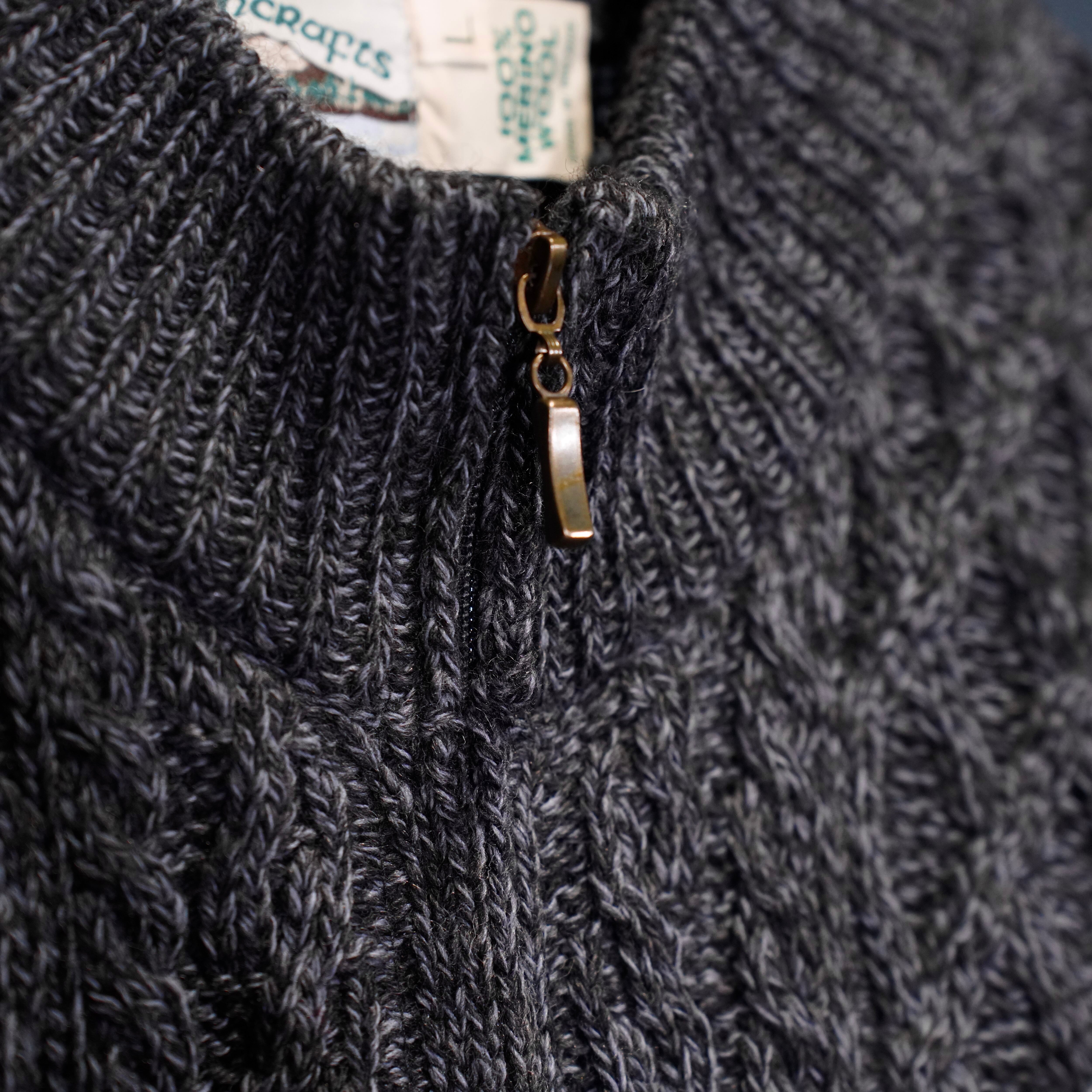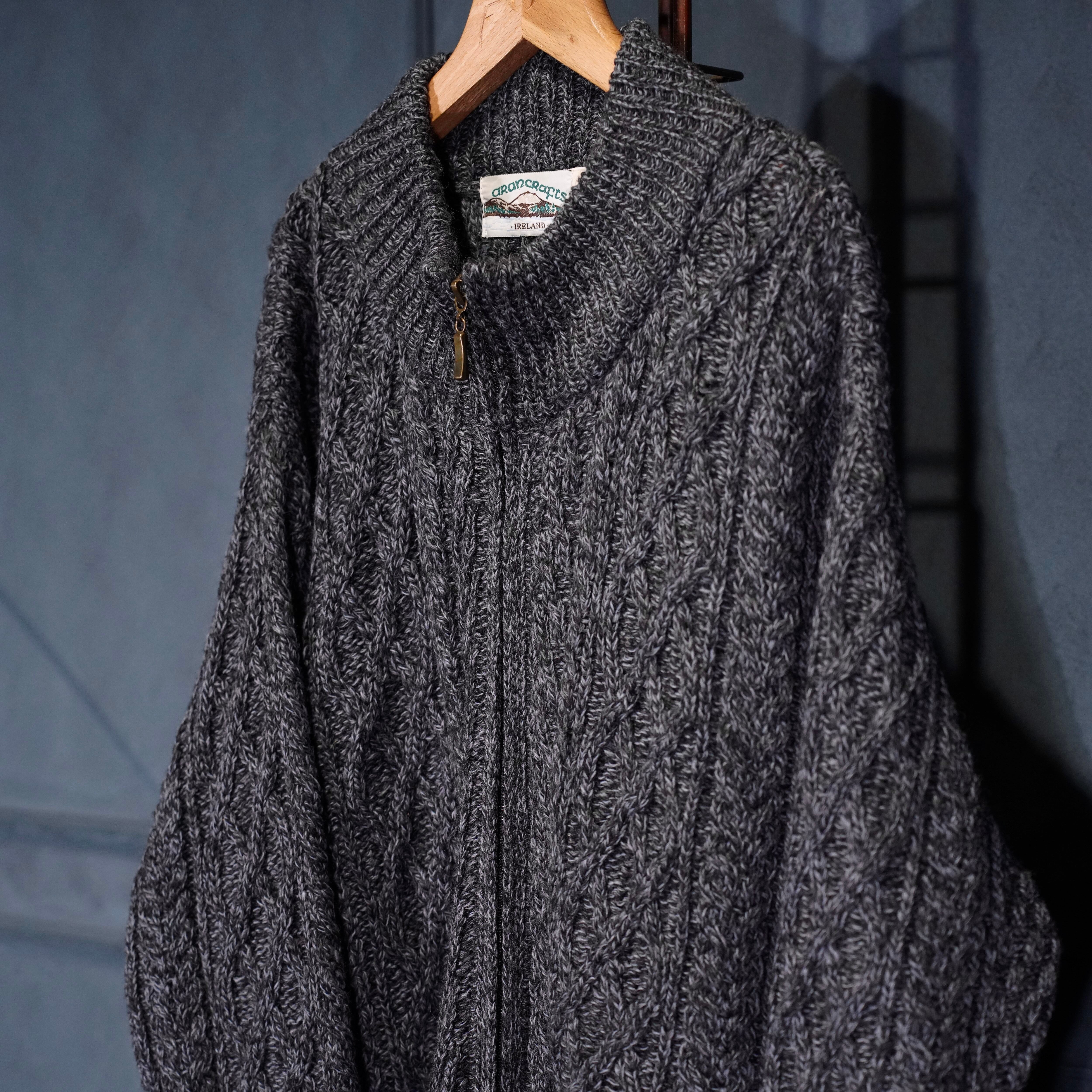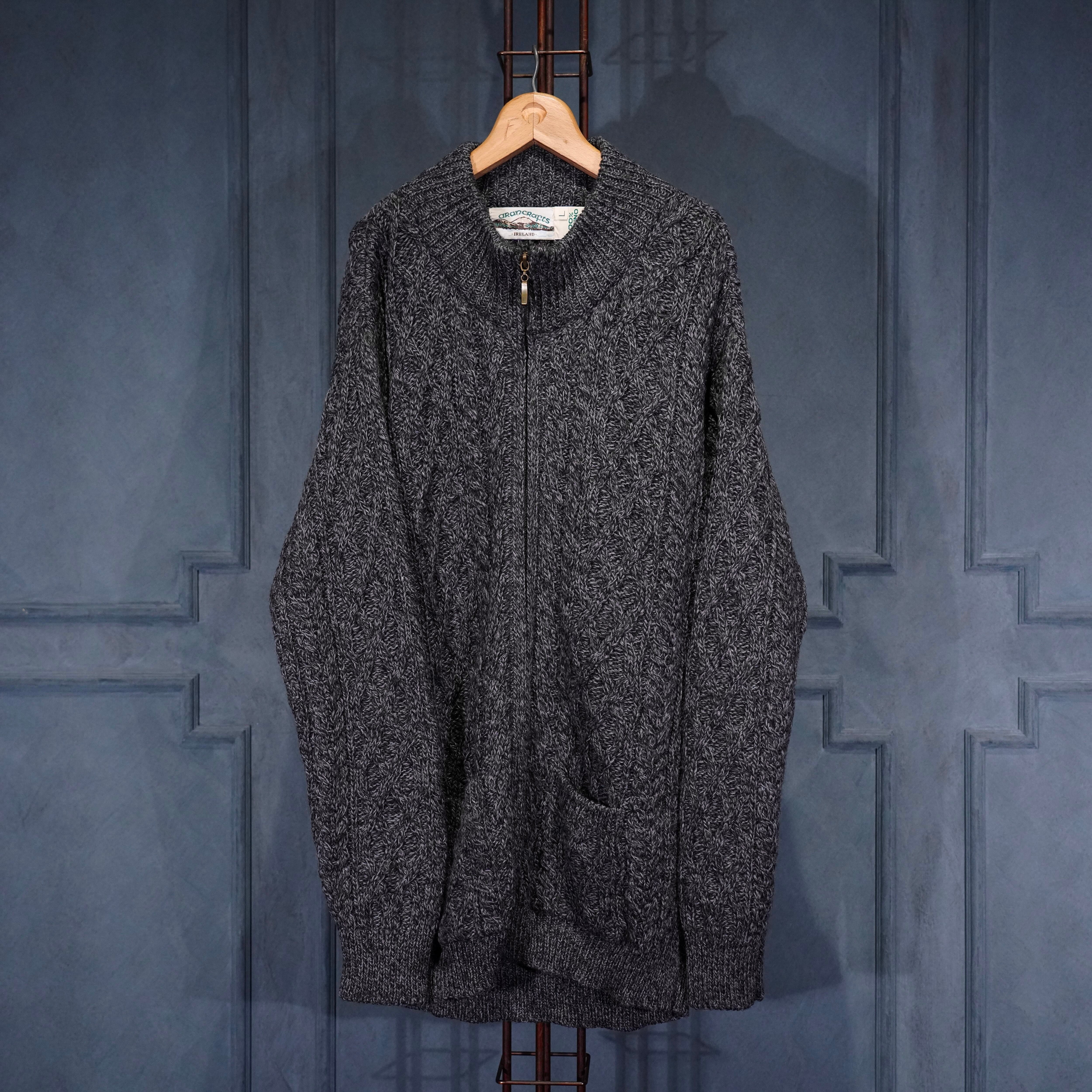 EU VINTAGE ARAN CRAFTS CABLE DESIGN ZIP UP MERINO WOOL DRIVERS KNIT BLOUSON MADE IN IRELAND/ヨーロッパ古着ケーブルデザインメリノウールドライバーズニットブルゾン