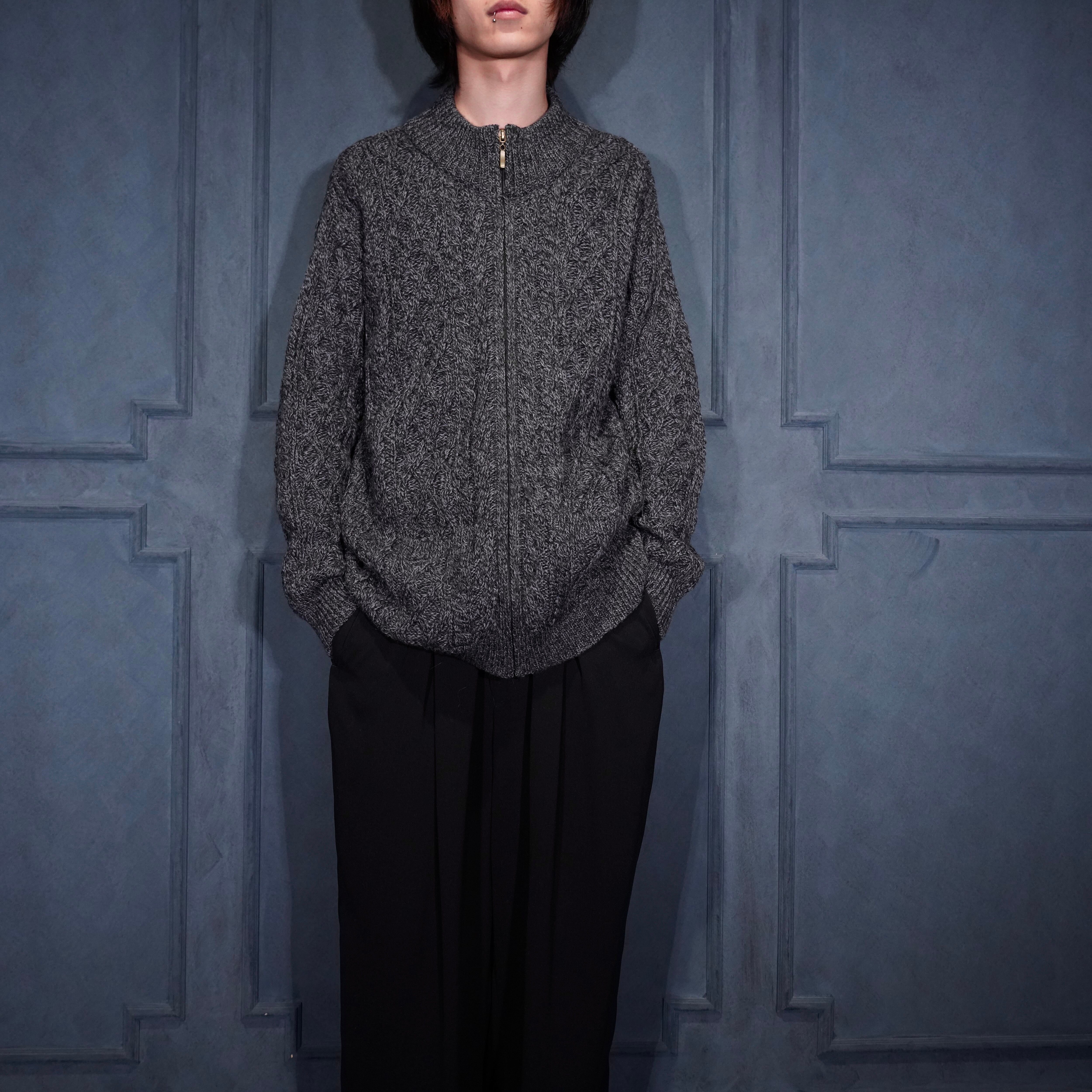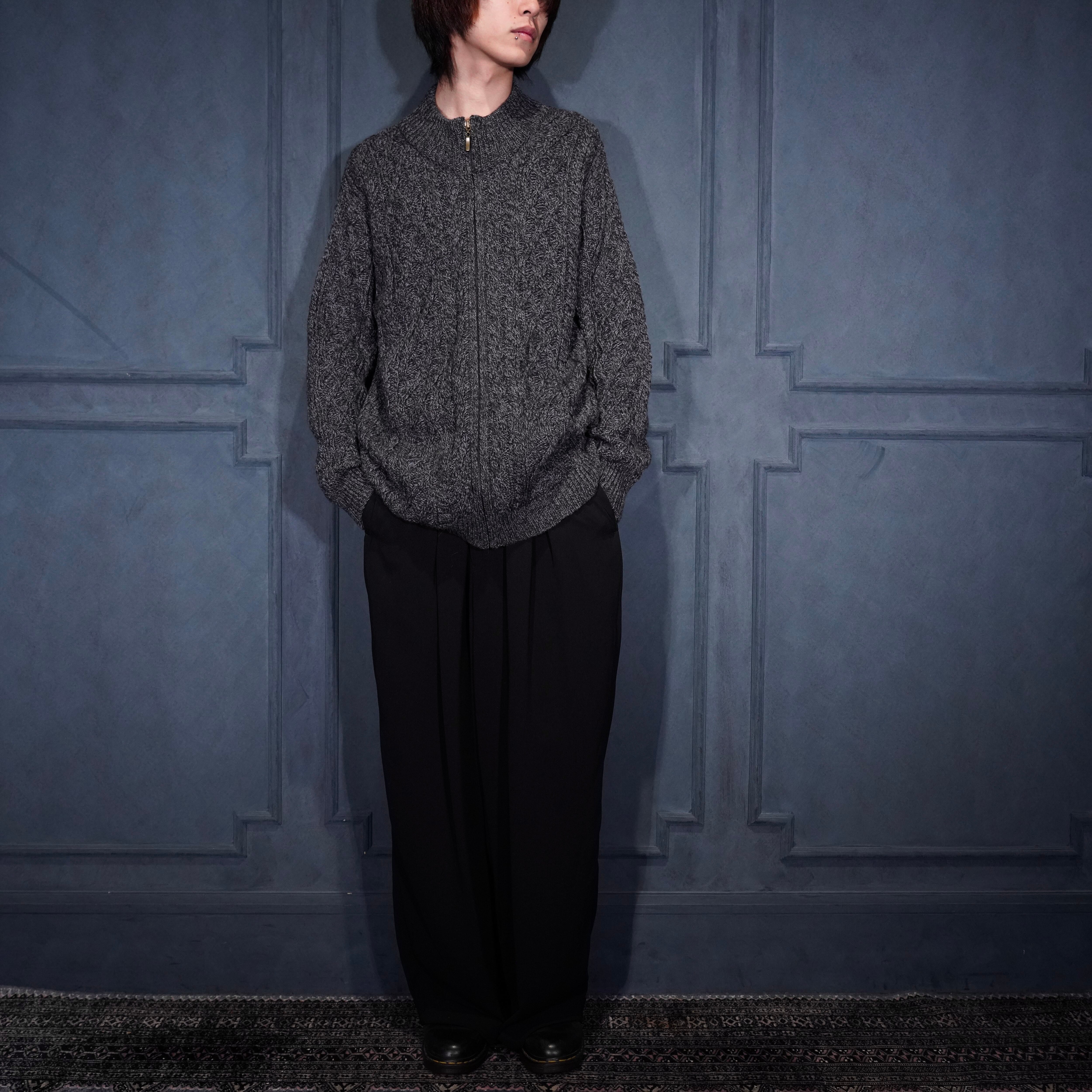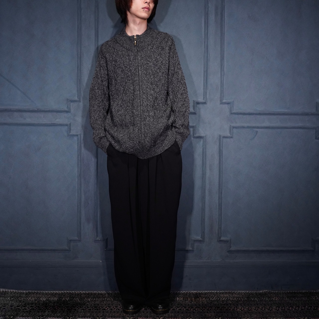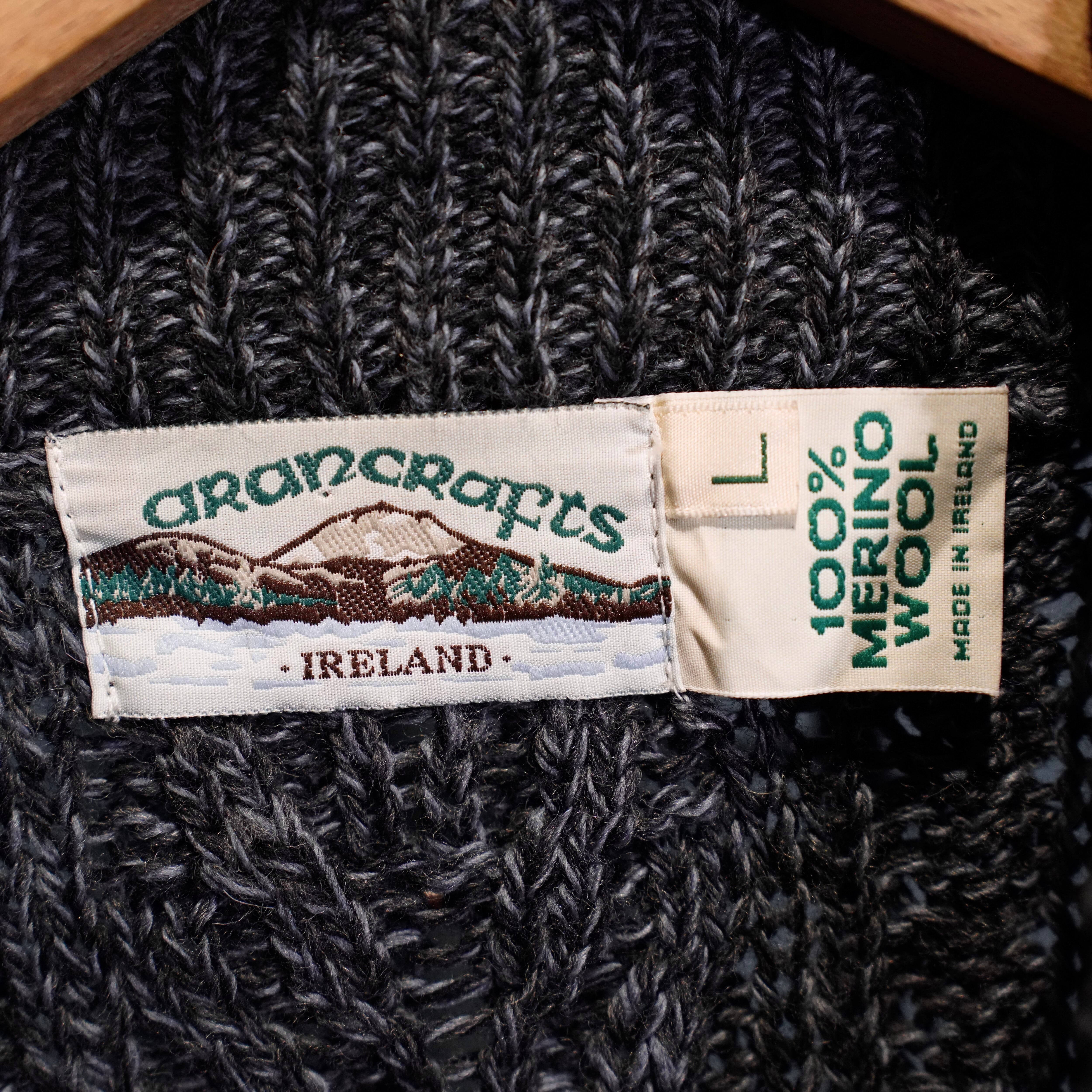EU VINTAGE ARAN CRAFTS CABLE DESIGN ZIP UP MERINO WOOL DRIVERS KNIT BLOUSON MADE IN IRELAND/ヨーロッパ古着ケーブルデザインメリノウールドライバーズニットブルゾン